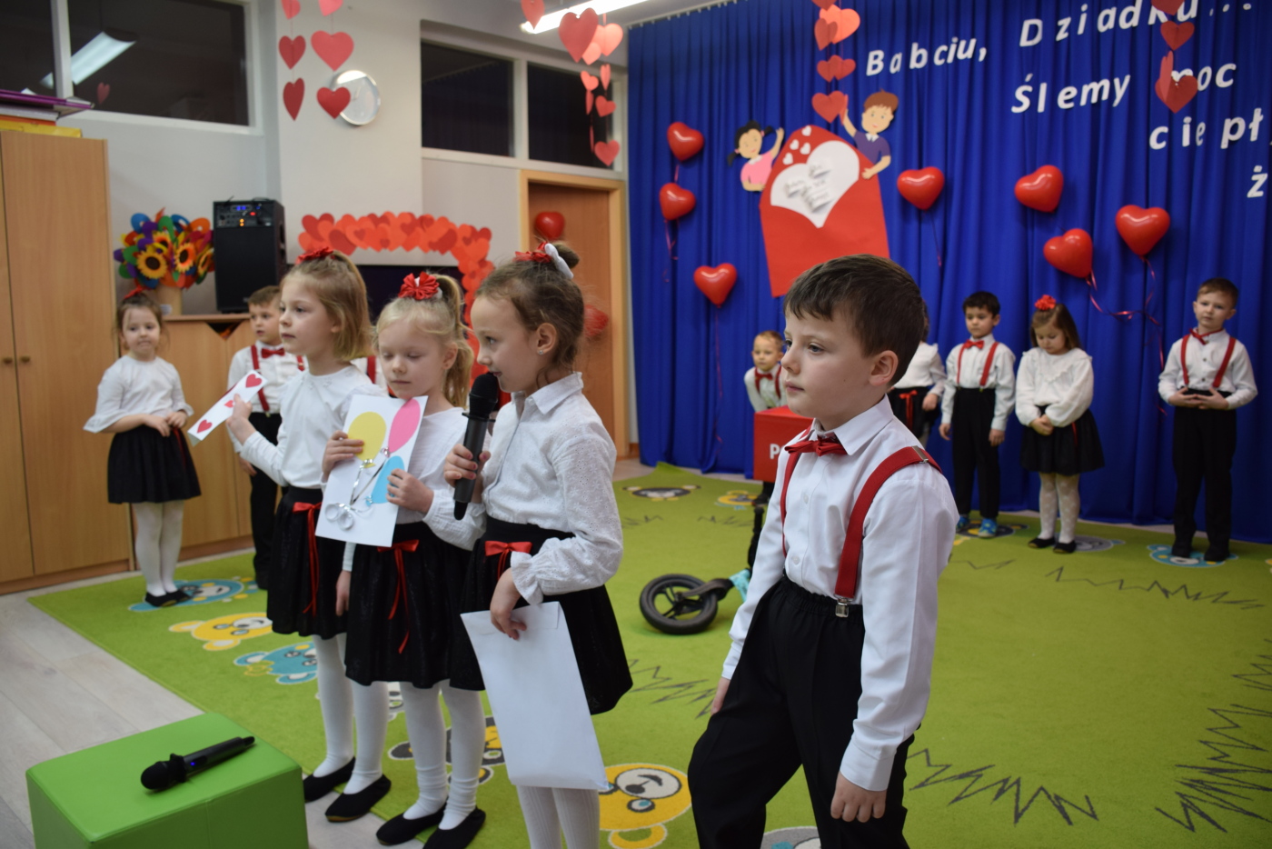 W dniu 30 stycznia nasze przedszkole wypełniło się wyjątkową radością i wzruszeniem – tego dnia gościliśmy Babcie i Dziadków przedszkolaków z grupy III (5-latków). Dzieci, pod czujnym i serdecznym okiem pani Asi i pani Wioli, przygotowały niezwykłą uroczystość, będącą wyrazem miłości, wdzięczności i dziecięcej radości.