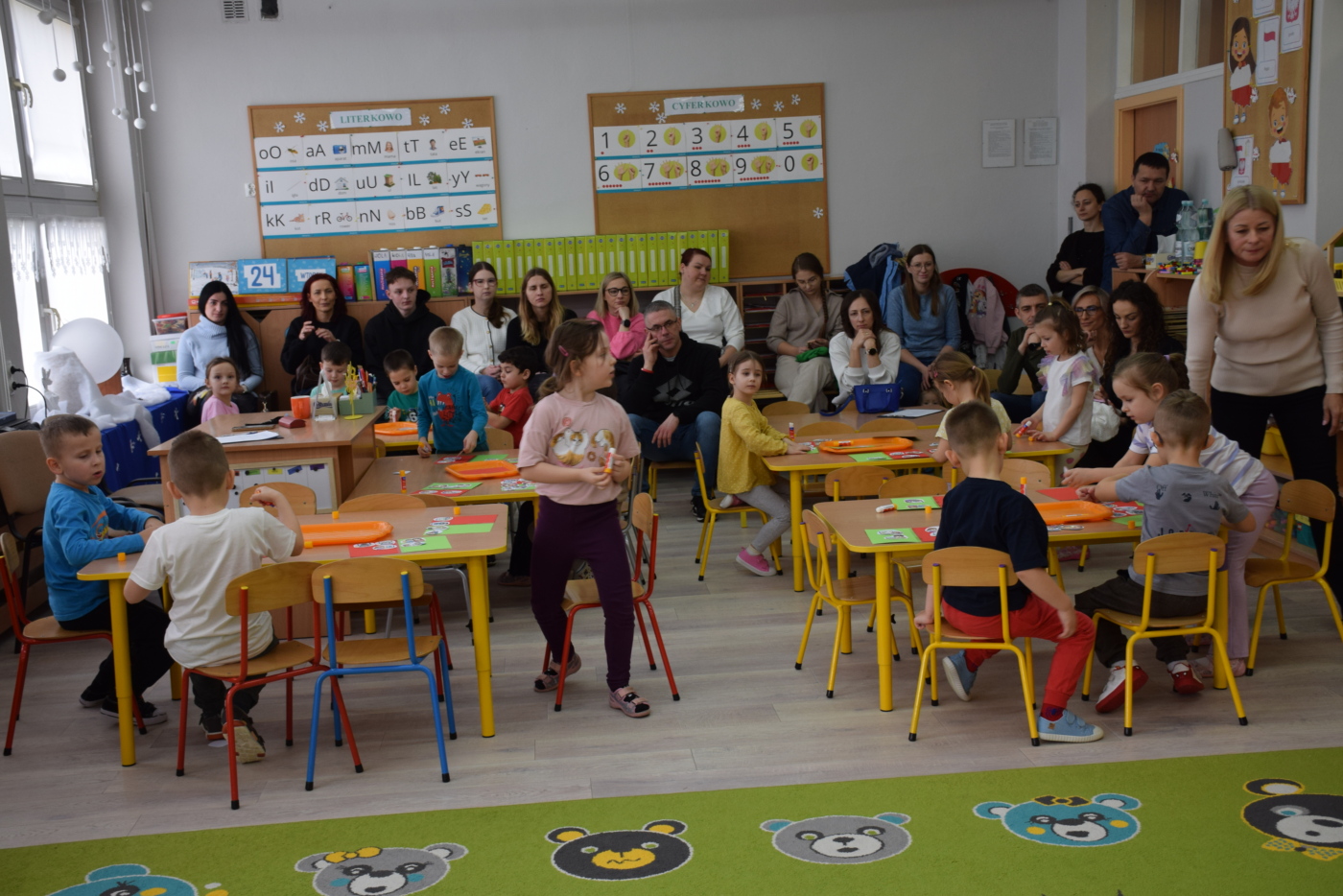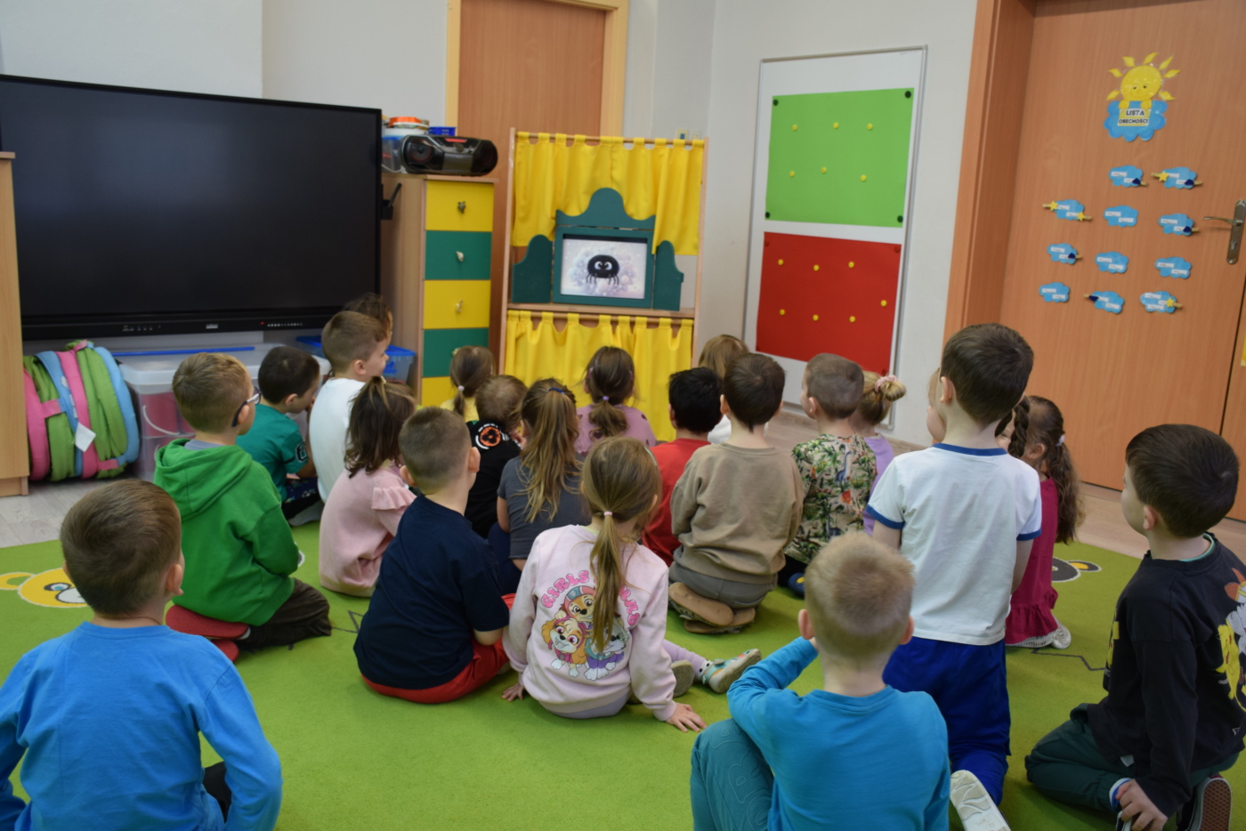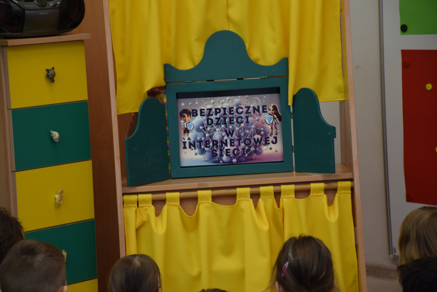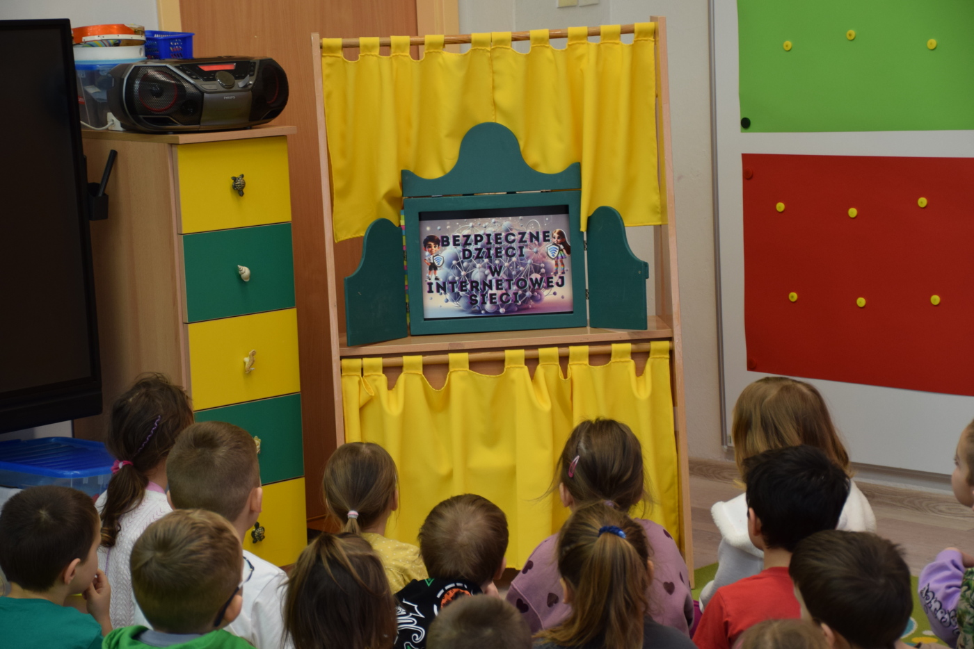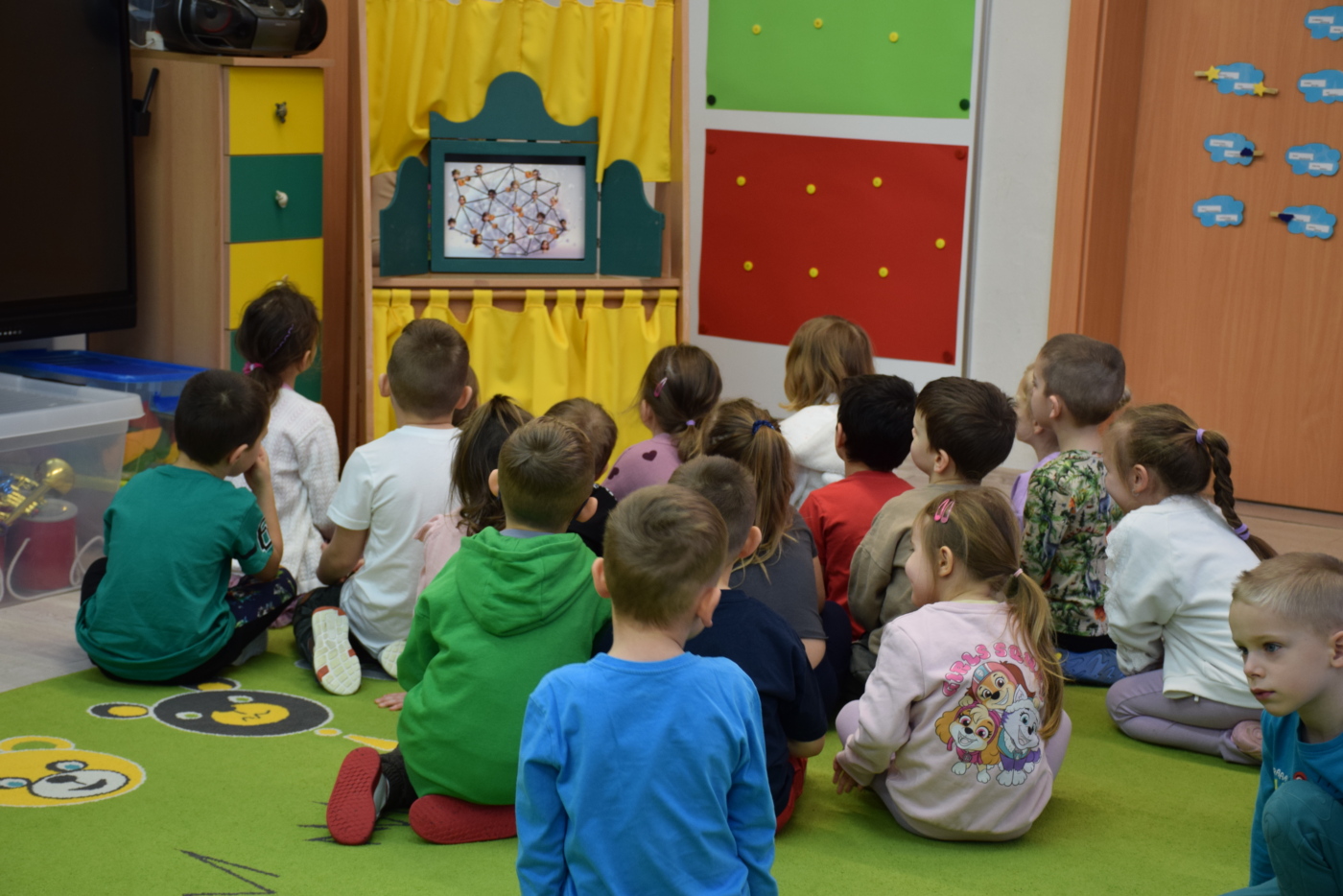Przedszkolaki wysłuchały ilustrowanego słuchowiska „Bezpieczne dzieci w internetowej sieci”, które stało się punktem wyjścia do rozmowy na temat właściwych i niewłaściwych zachowań podczas korzystania z urządzeń cyfrowych. Podczas burzy mózgów dzieci aktywnie dzieliły się swoimi pomysłami i doświadczeniami, a rodzice mogli obserwować, jak ich dzieci rozumieją zasady bezpiecznego korzystania z Internetu.