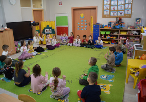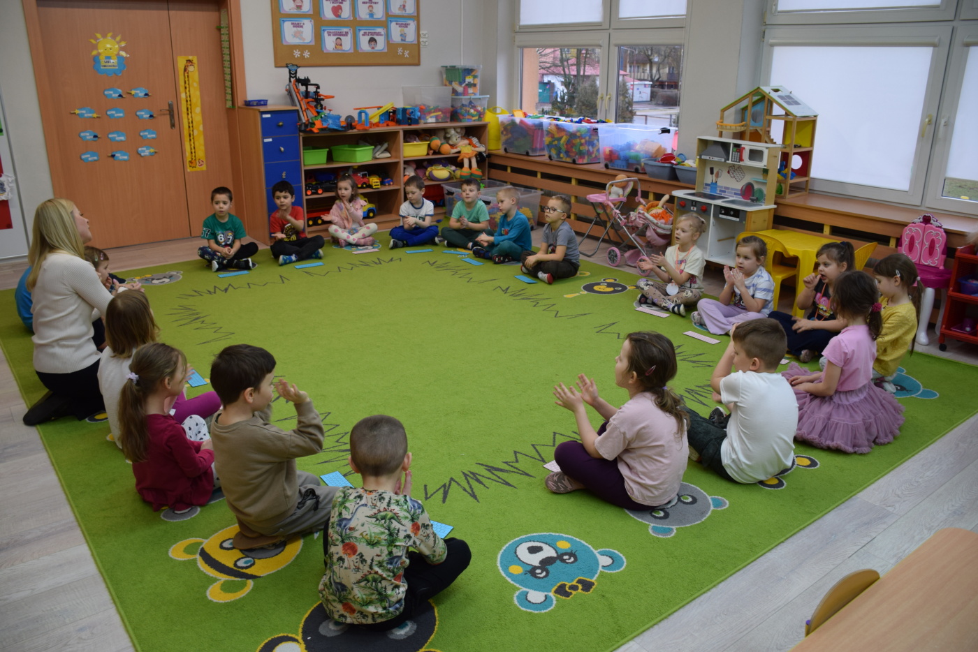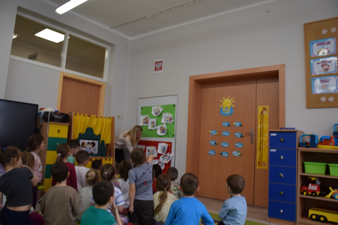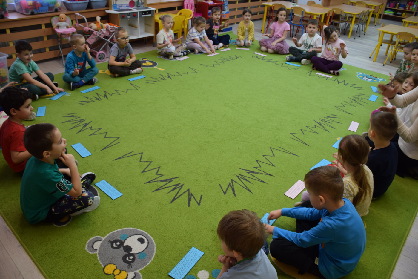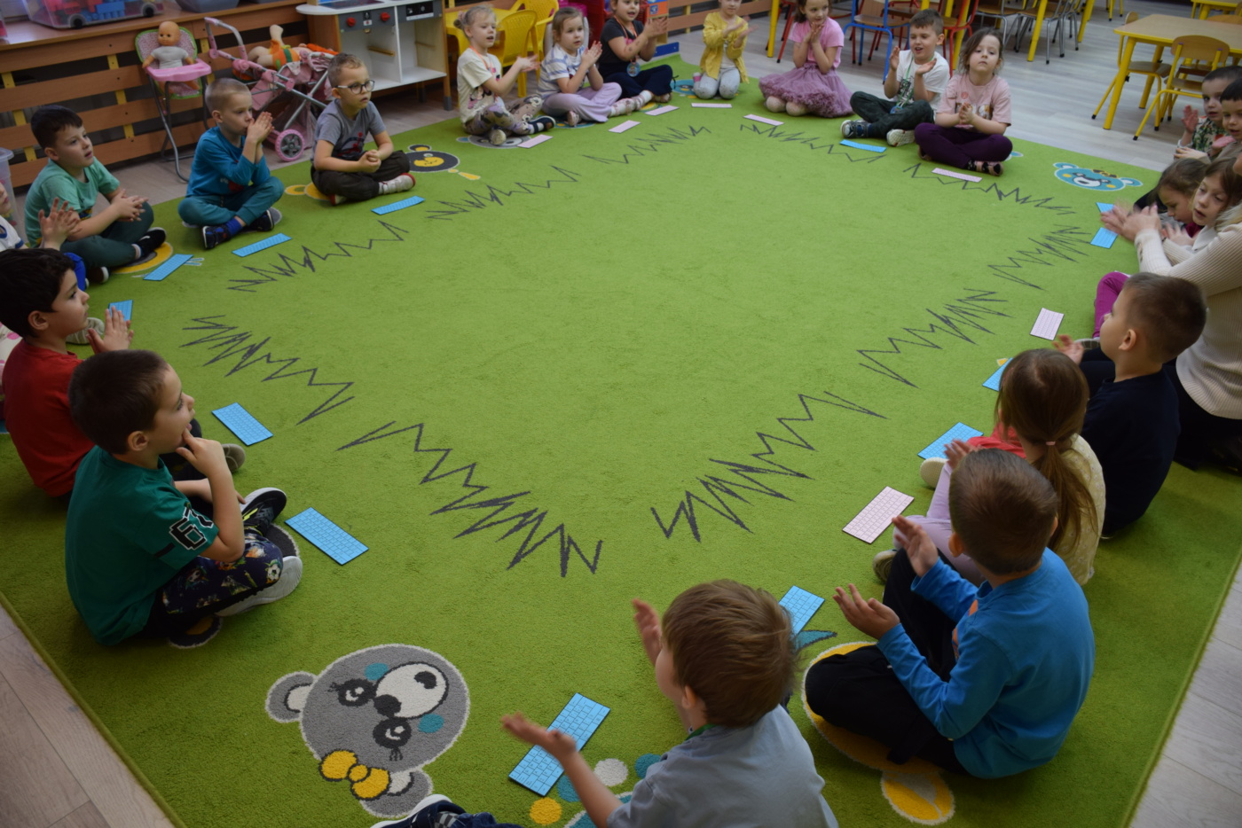 Przedszkolaki wysłuchały ilustrowanego słuchowiska „Bezpieczne dzieci w internetowej sieci”, które stało się punktem wyjścia do rozmowy na temat właściwych i niewłaściwych zachowań podczas korzystania z urządzeń cyfrowych. Podczas burzy mózgów dzieci aktywnie dzieliły się swoimi pomysłami i doświadczeniami, a rodzice mogli obserwować, jak ich dzieci rozumieją zasady bezpiecznego korzystania z Internetu.