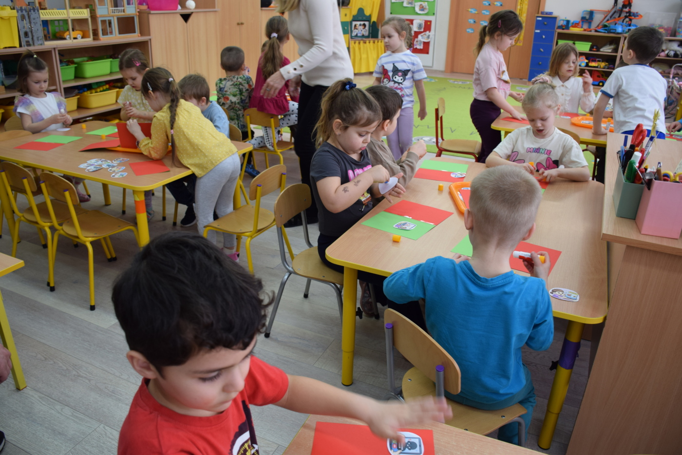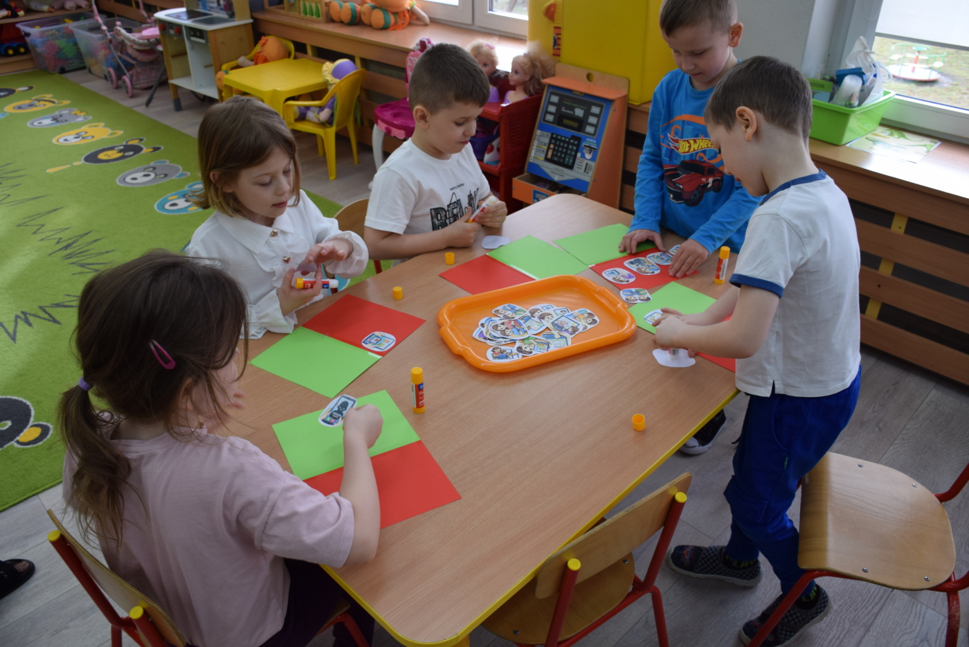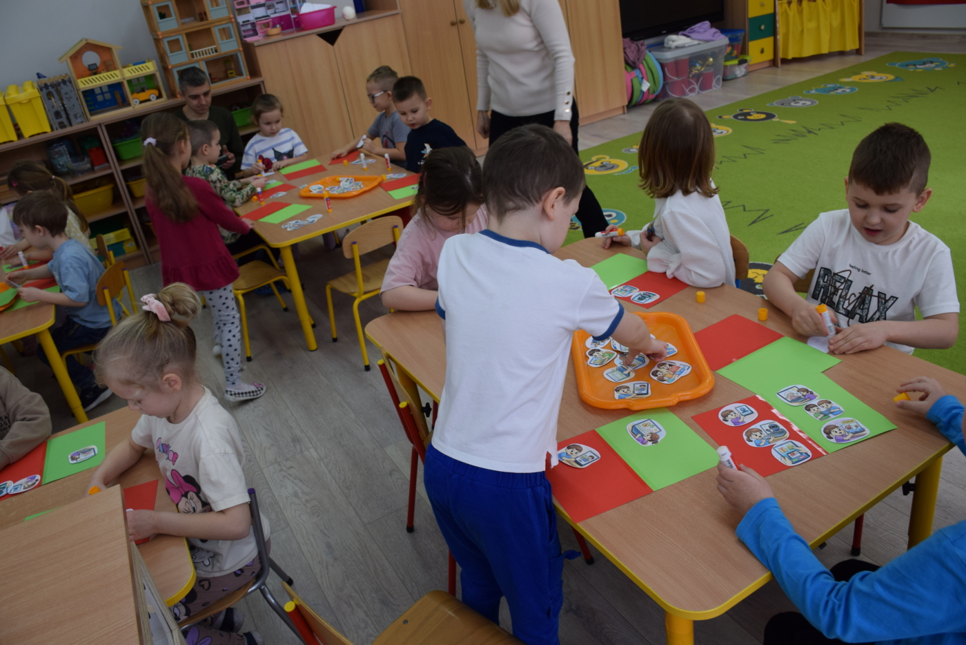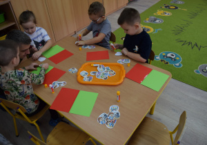 Na zakończenie dzieci wykonały pracę indywidualną, utrwalając poznane zasady poprzez przyklejanie ilustracji przedstawiających właściwe zachowania na kartkę w kolorze zielonym oraz niewłaściwe na kartkę w kolorze czerwonym. Wszystkie przedszkolaki otrzymały medale „Wzorowego użytkownika Internetu”, z czego były bardzo dumne.
