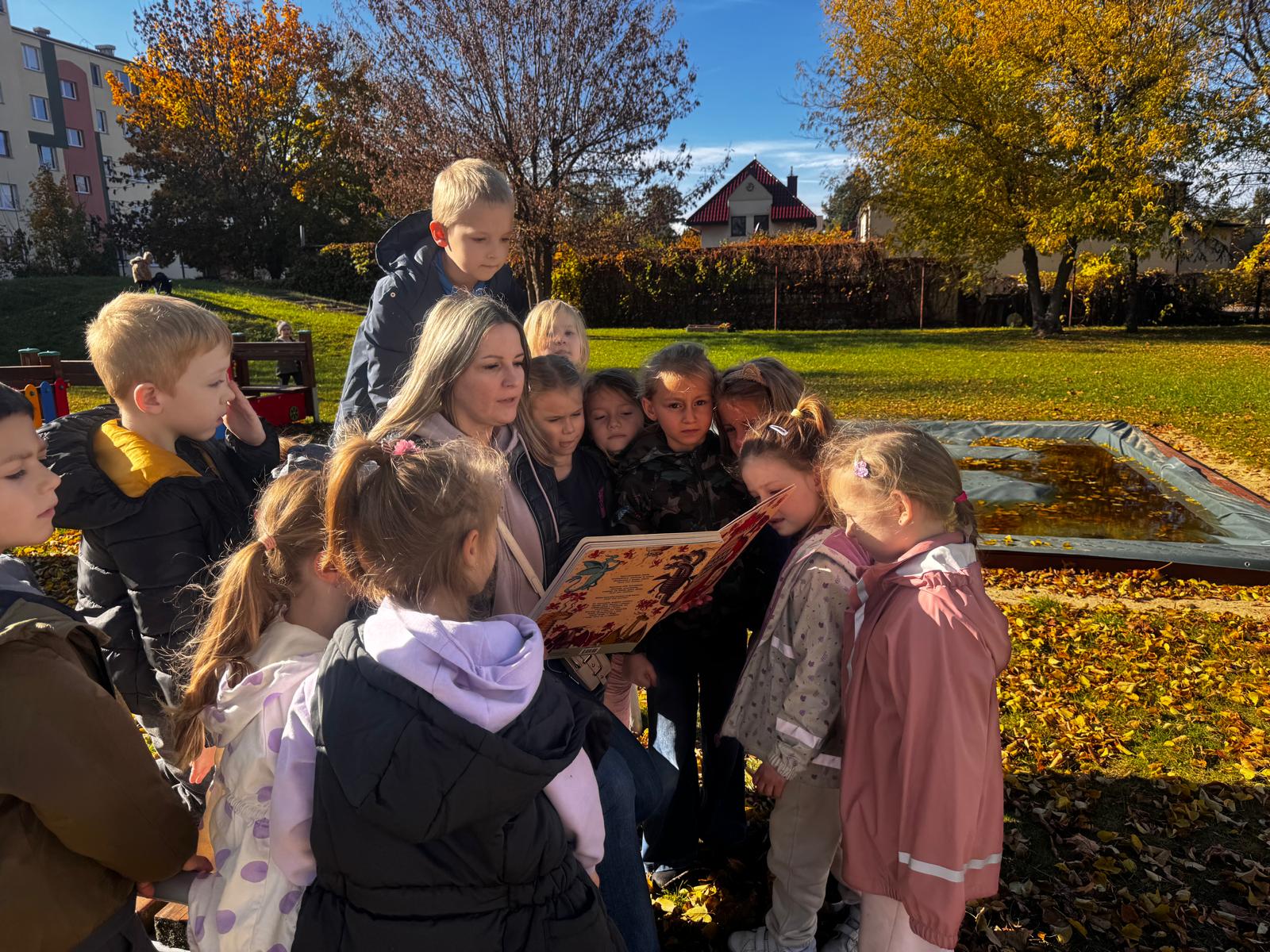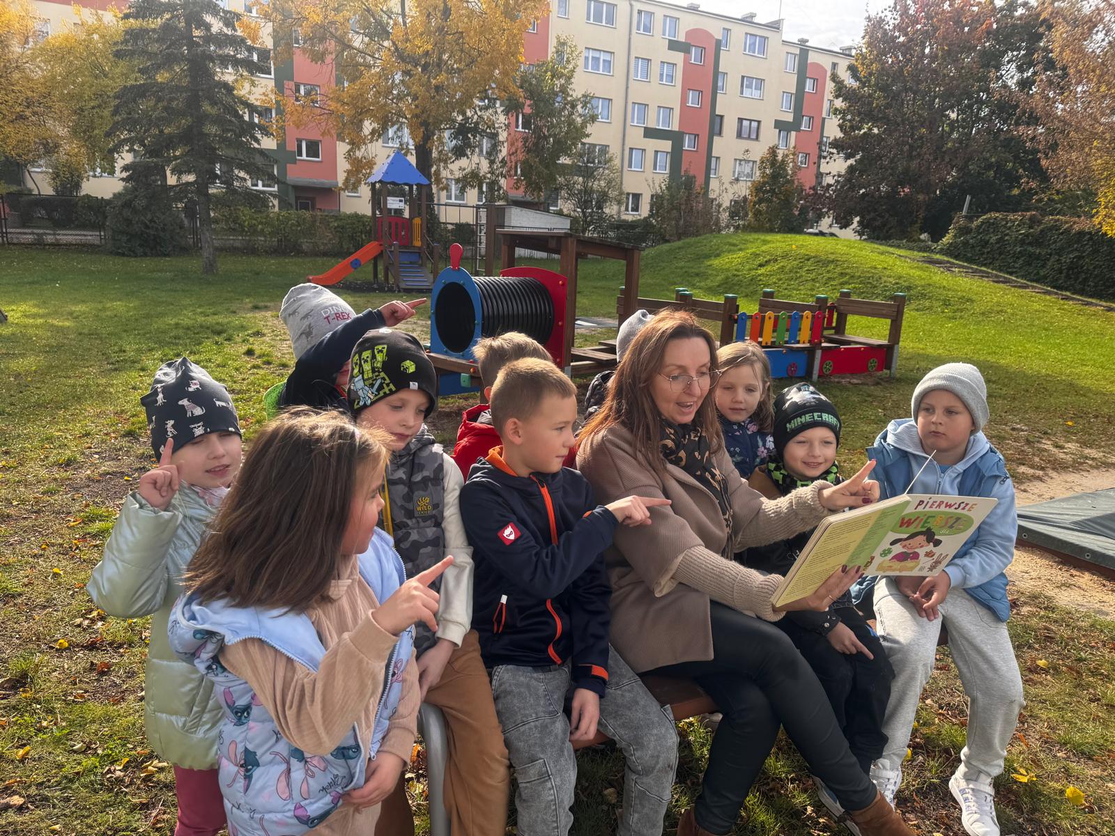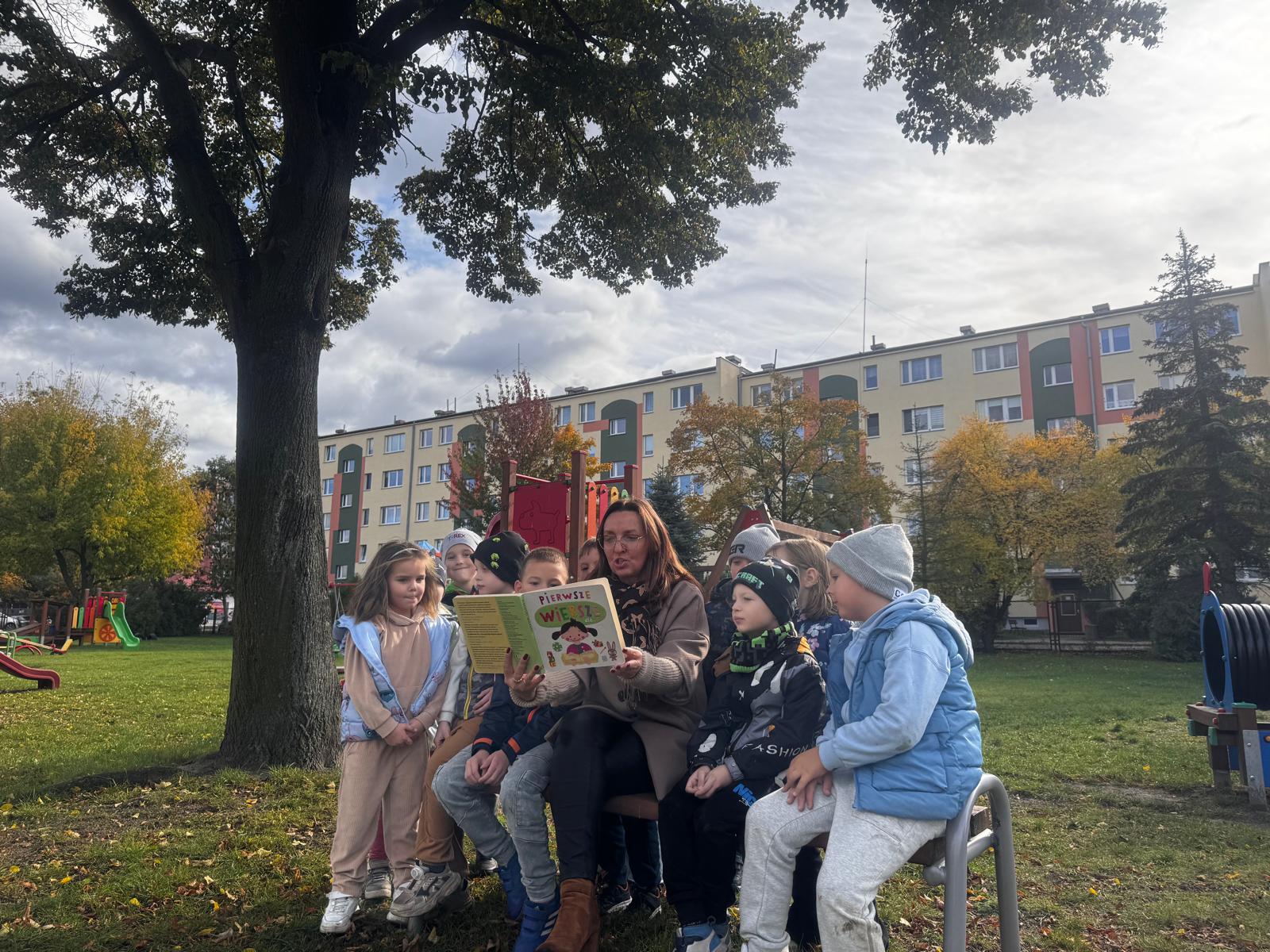 Nasze przedszkolaki uwielbiają wspólne czytanie na świeżym powietrzu! Nauczycielka zabiera dzieci z książkami do ogrodu lub na plac zabaw, gdzie w cieniu drzew wsłuchują się w ciekawe opowieści. Ciepłe promienie słońca, śpiew ptaków i piękne historie tworzą wyjątkowy nastrój. To wspaniały sposób, by połączyć miłość do literatury z radością przebywania na łonie natury. ️