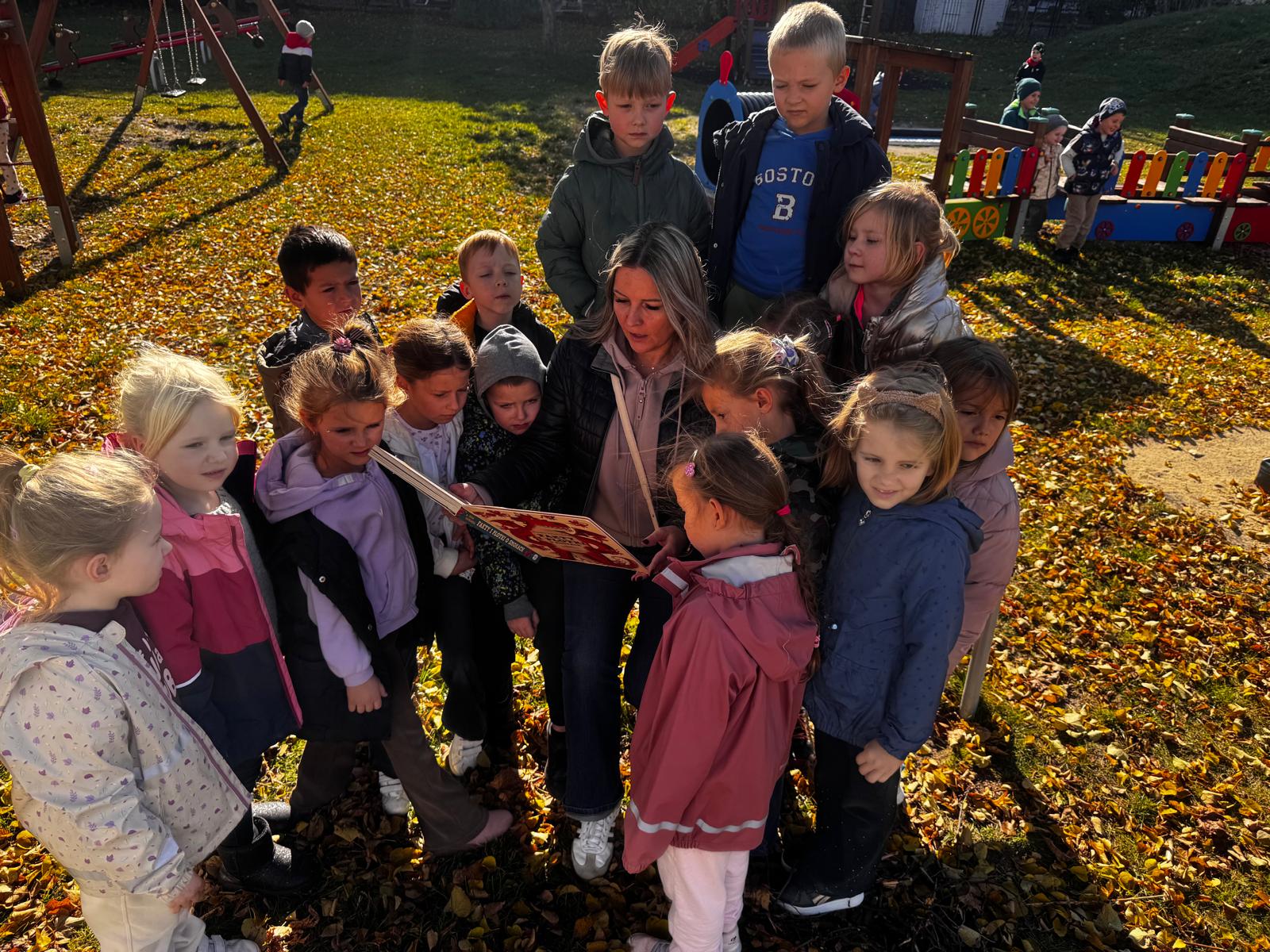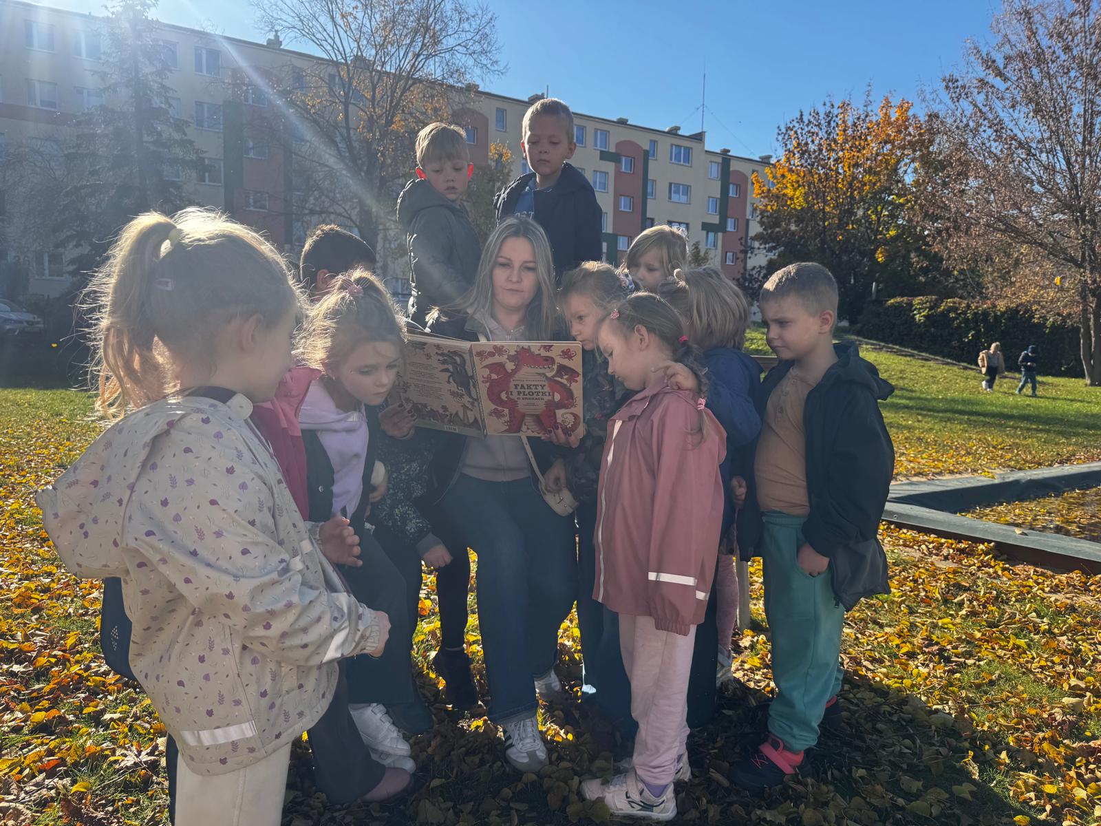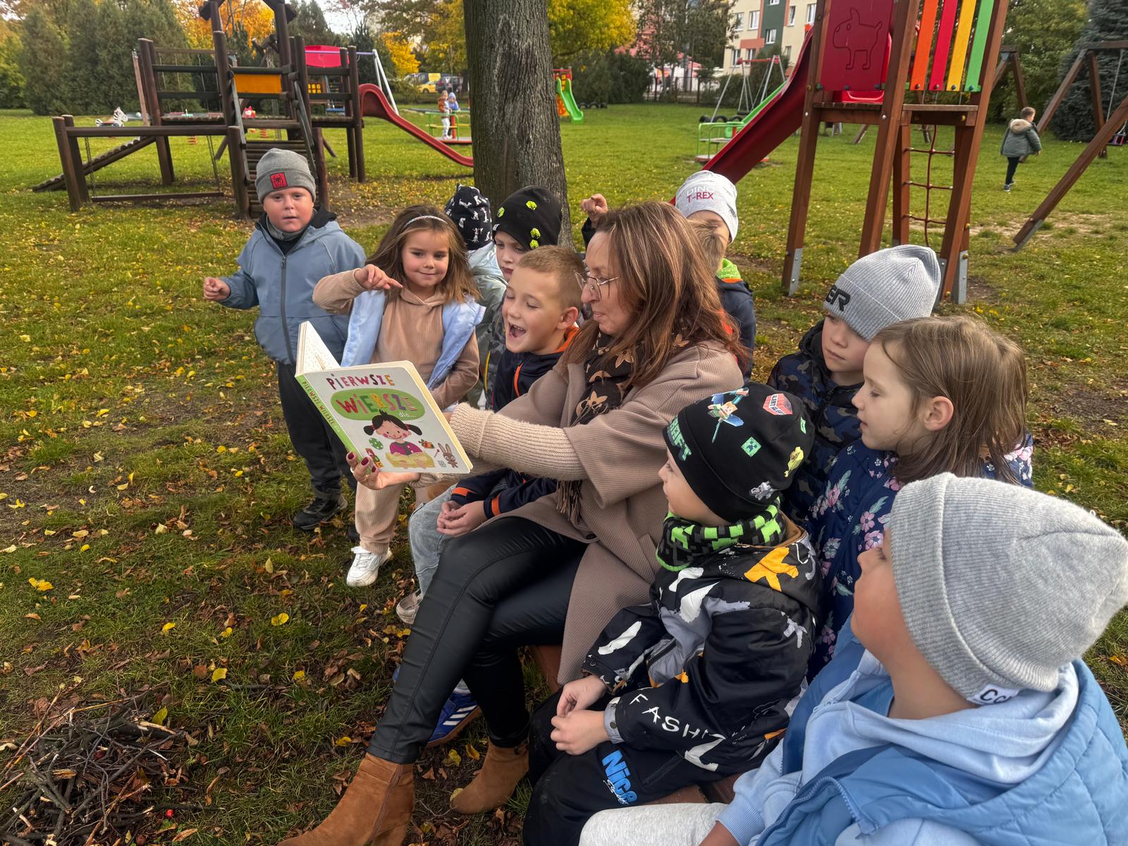 Nasze przedszkolaki uwielbiają wspólne czytanie na świeżym powietrzu! Nauczycielka zabiera dzieci z książkami do ogrodu lub na plac zabaw, gdzie w cieniu drzew wsłuchują się w ciekawe opowieści. Ciepłe promienie słońca, śpiew ptaków i piękne historie tworzą wyjątkowy nastrój. To wspaniały sposób, by połączyć miłość do literatury z radością przebywania na łonie natury. ️