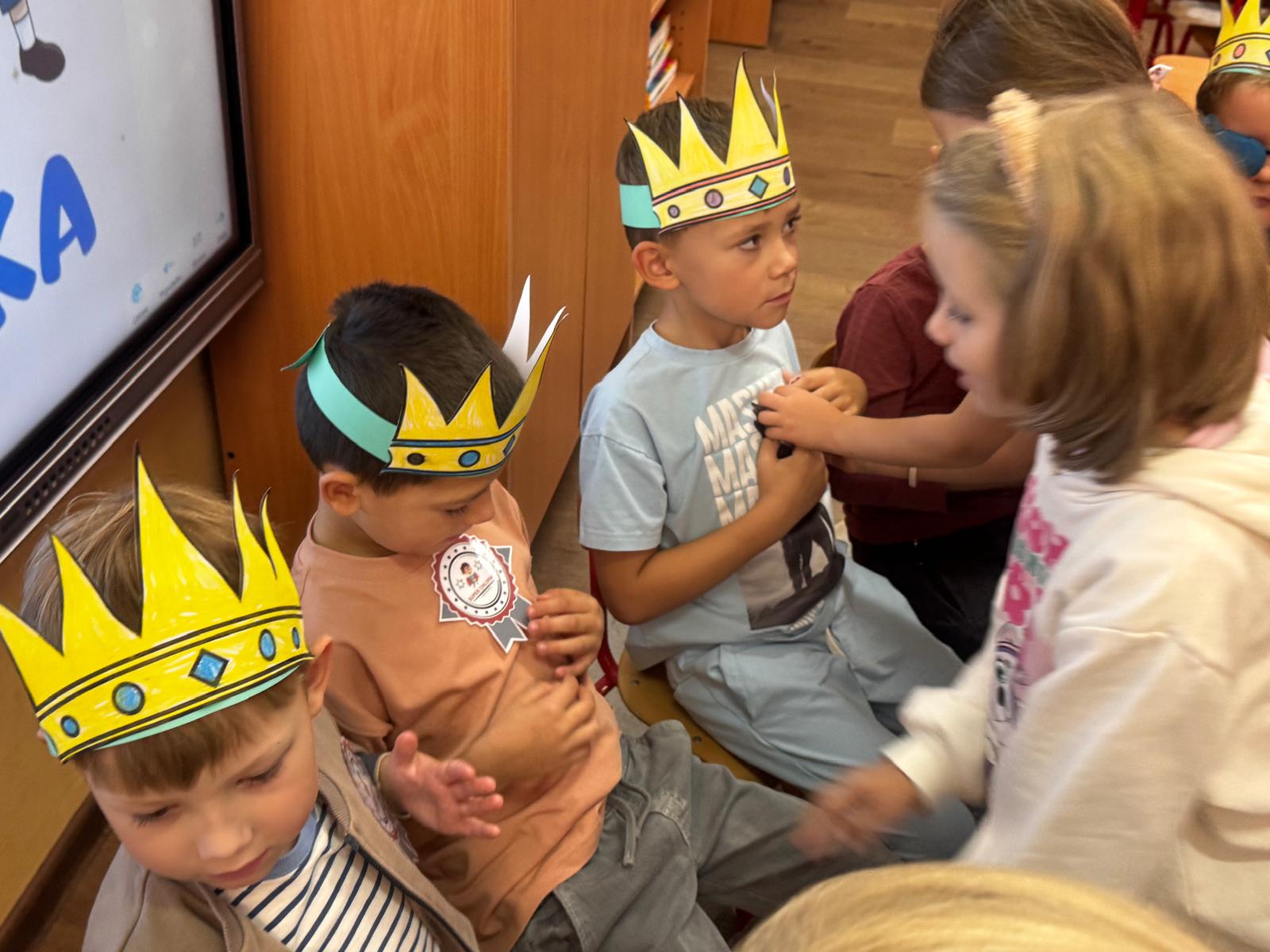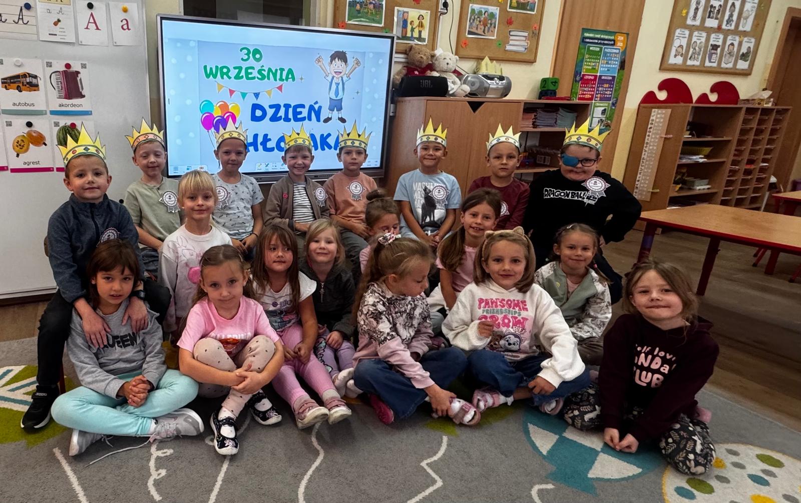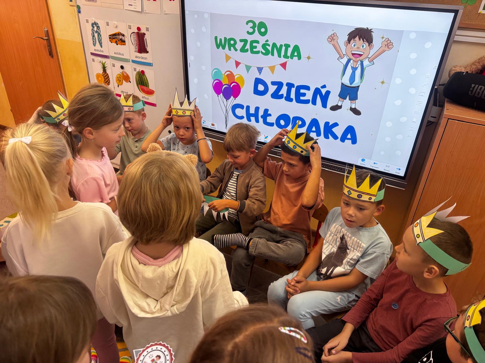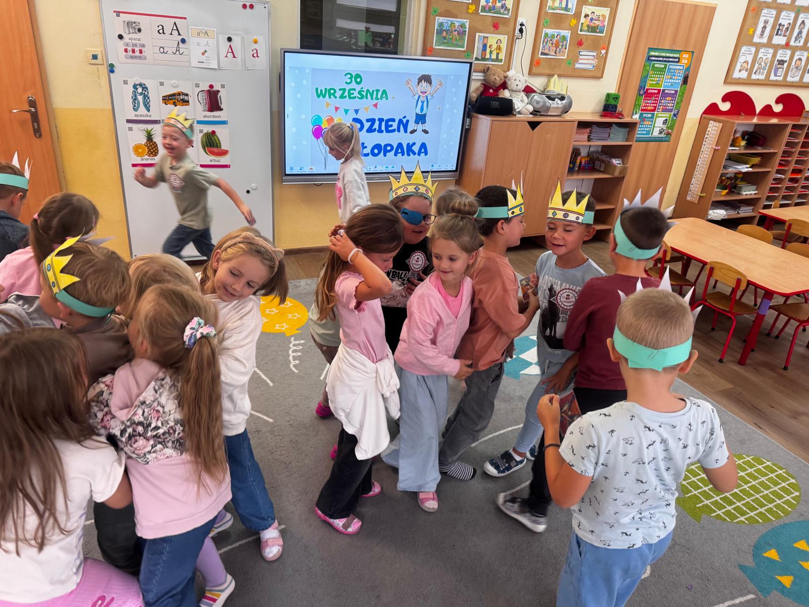Z tej okazji dziewczynki wręczyły kolegom własnoręcznie wykonane korony i medaliony Super Chłopaka, a także drobne upominki. Nie zabrakło serdecznych życzeń, głośnego odśpiewania „Sto lat” oraz wielkiego, wspólnego przytulasa, który wywołał mnóstwo uśmiechów i radości. Był to wyjątkowy dzień pełen życzliwości i dobrej zabawy.