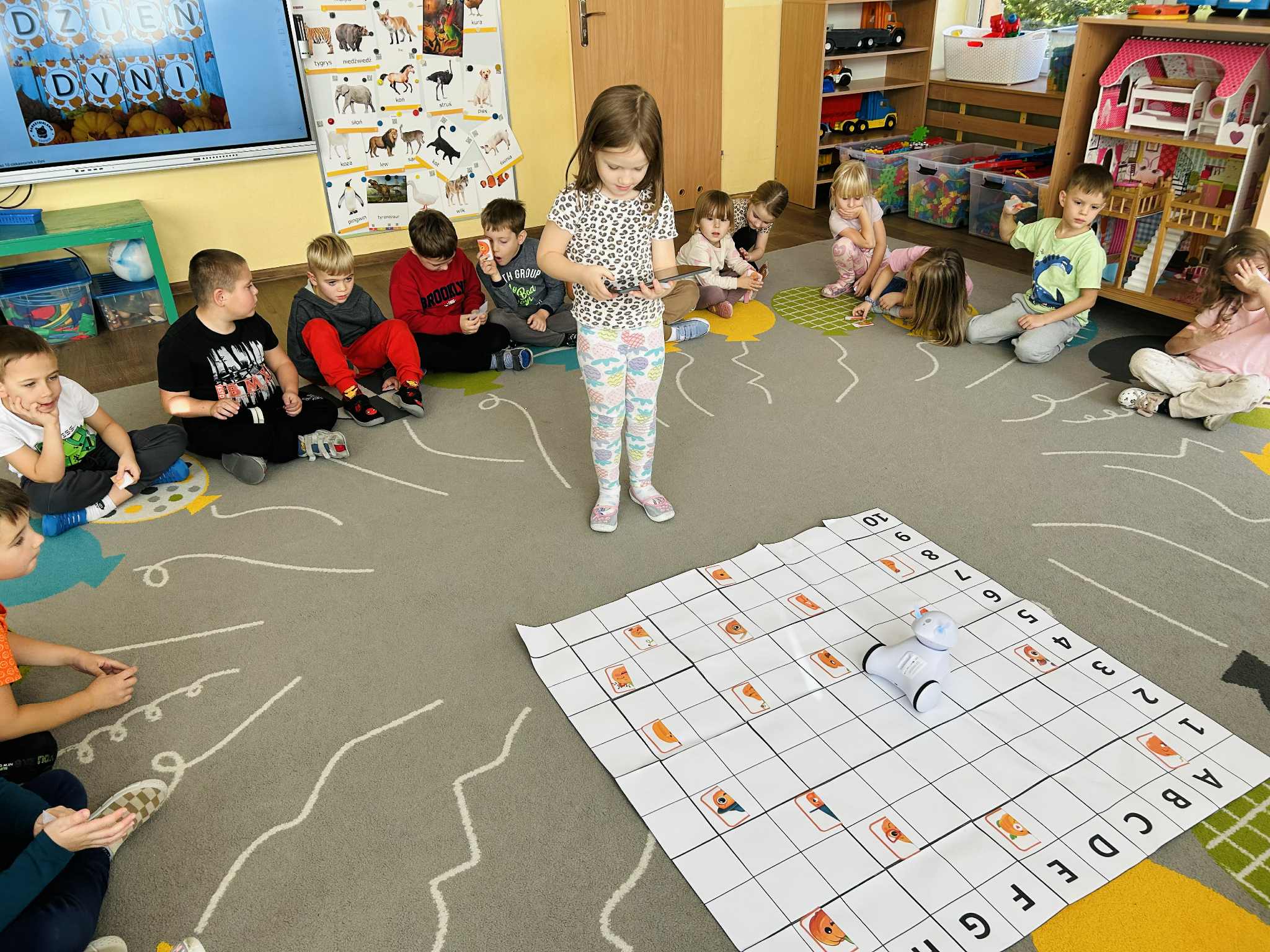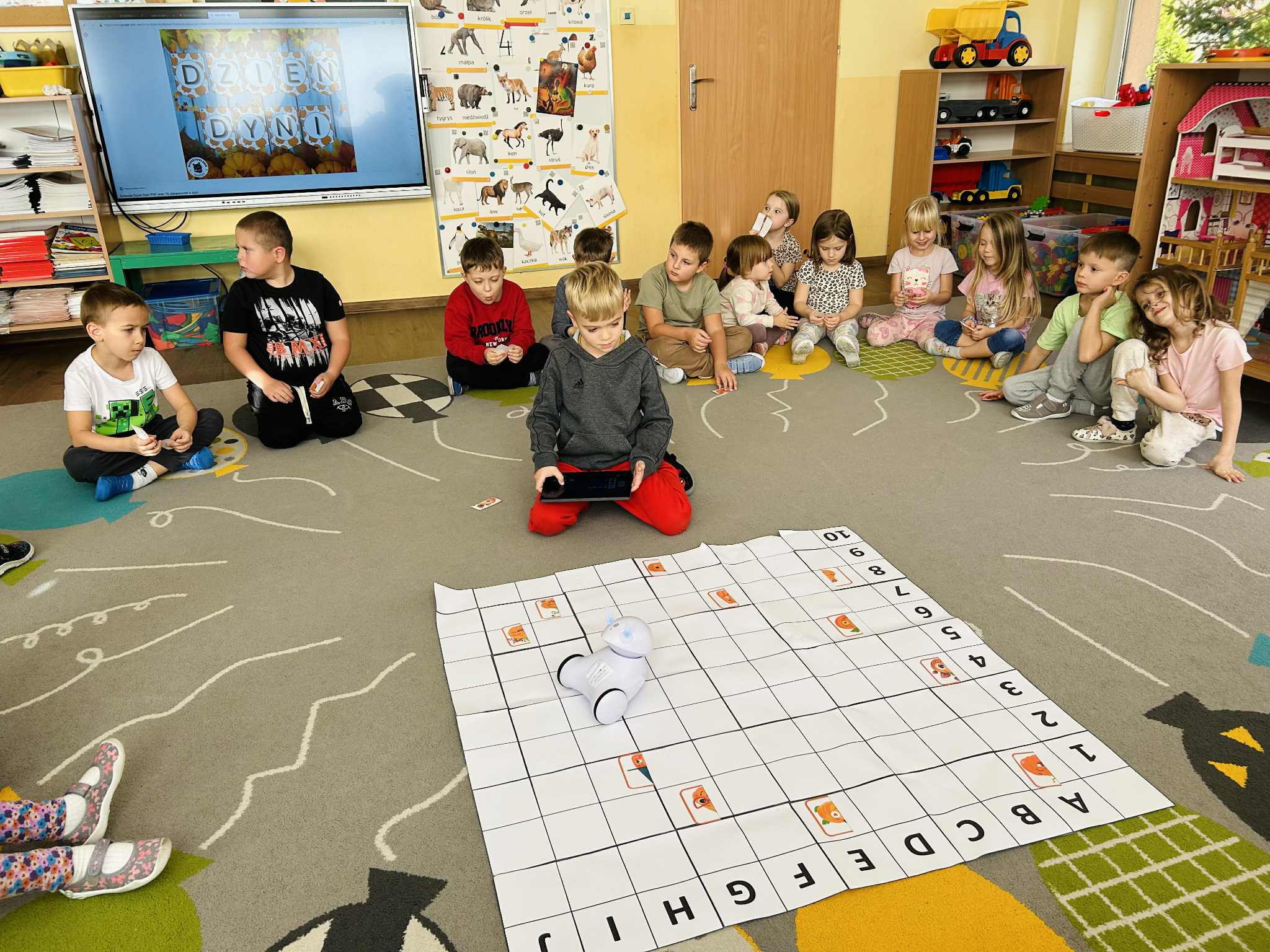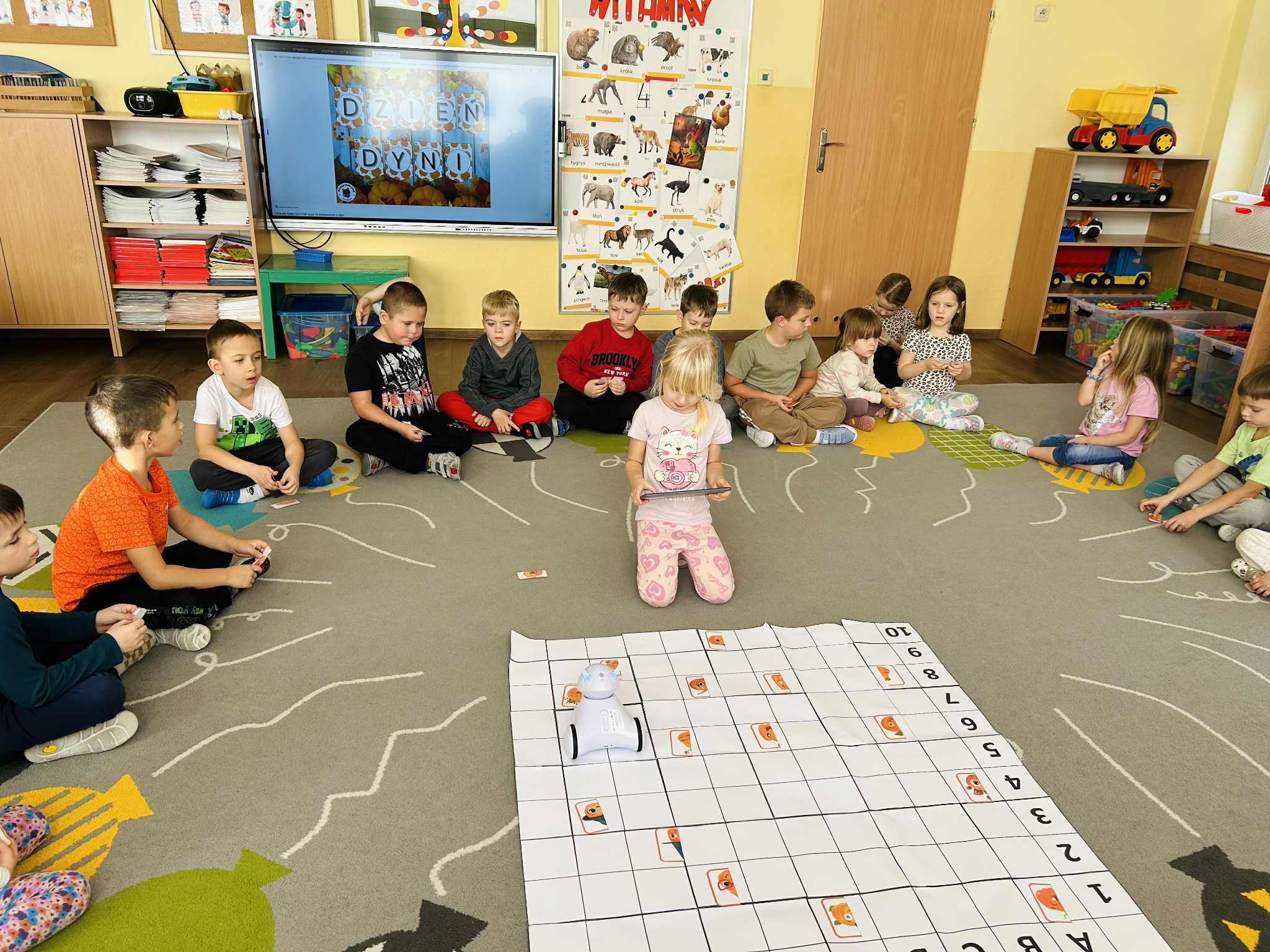 Dzisiejszy dzień upłynął nam w prawdziwie dyniowej atmosferze. Dzieci z grupy V świętowały Dzień Dyni, który był jednocześnie jednym z zadań Międzynarodowego Projektu STEAM. Podczas zabaw przedszkolaki doskonaliły umiejętność kodowania i logicznego myślenia, wykorzystując do tego naszego niezawodnego robota Photona.