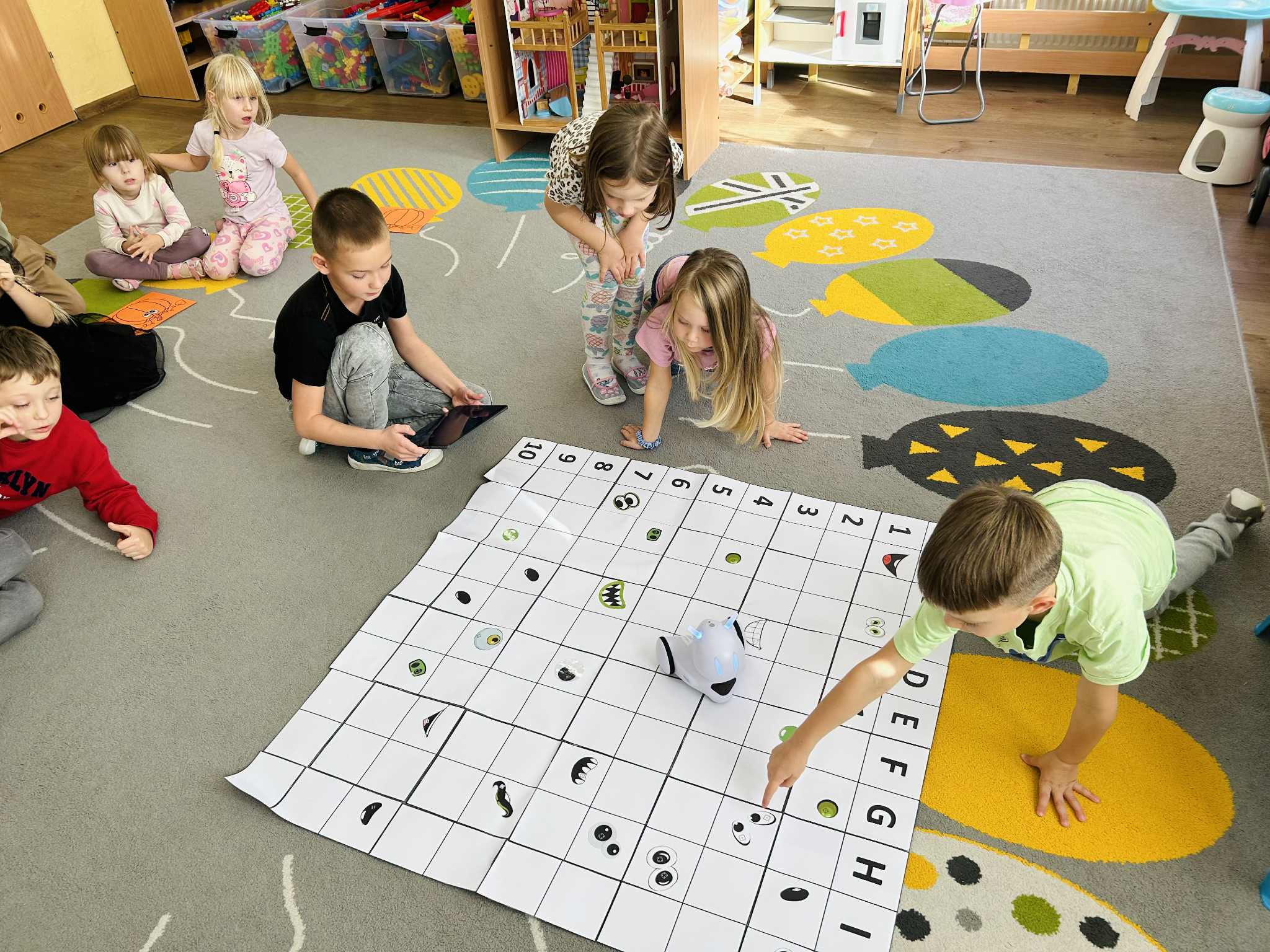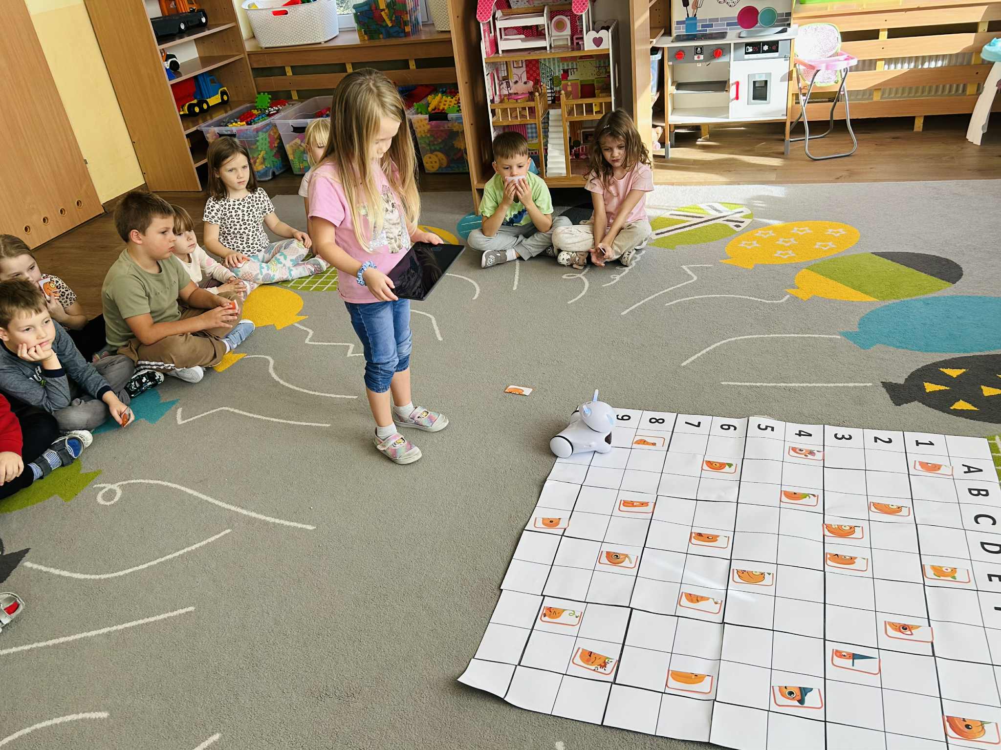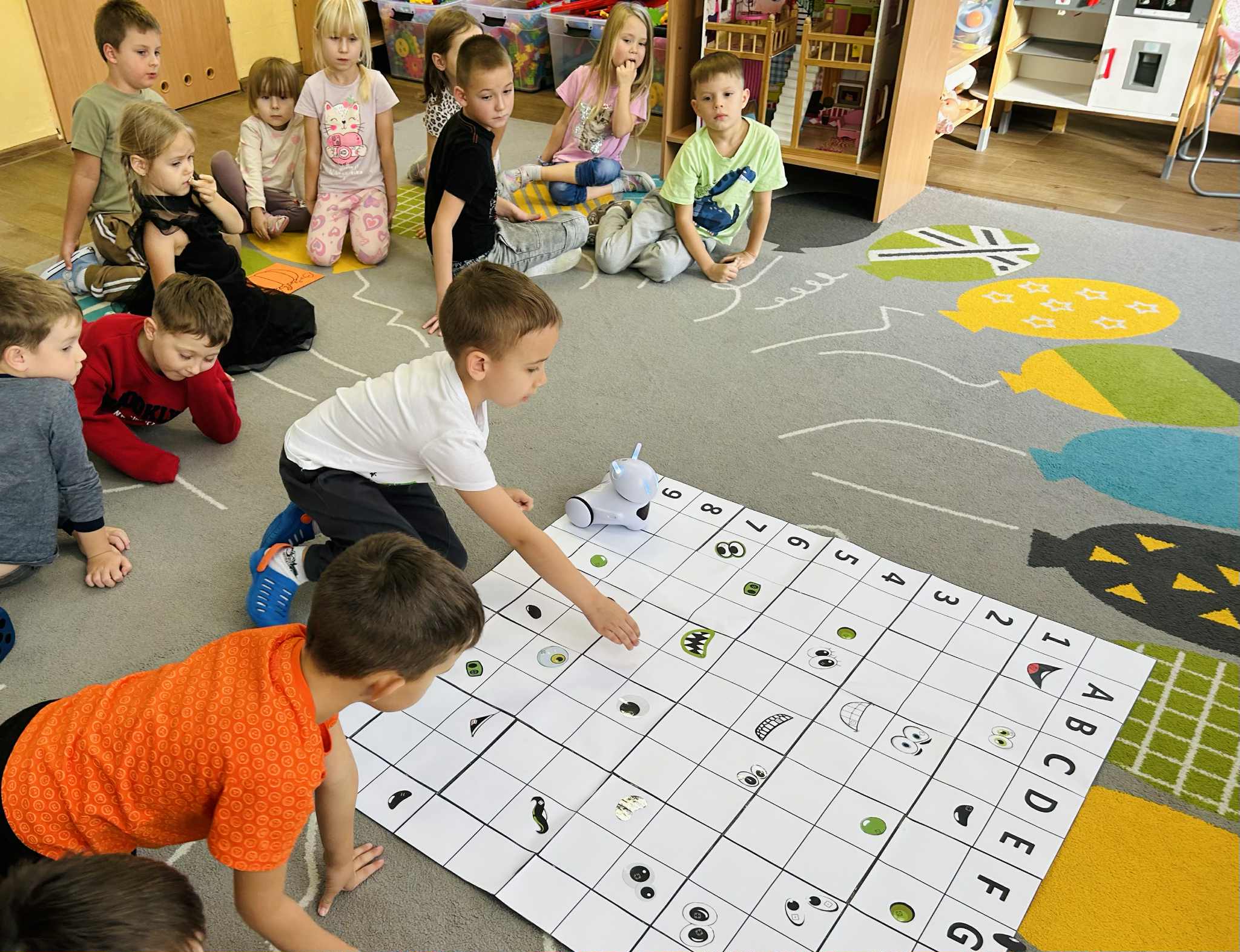 Dzisiejszy dzień upłynął nam w prawdziwie dyniowej atmosferze. Dzieci z grupy V świętowały Dzień Dyni, który był jednocześnie jednym z zadań Międzynarodowego Projektu STEAM. Podczas zabaw przedszkolaki doskonaliły umiejętność kodowania i logicznego myślenia, wykorzystując do tego naszego niezawodnego robota Photona.