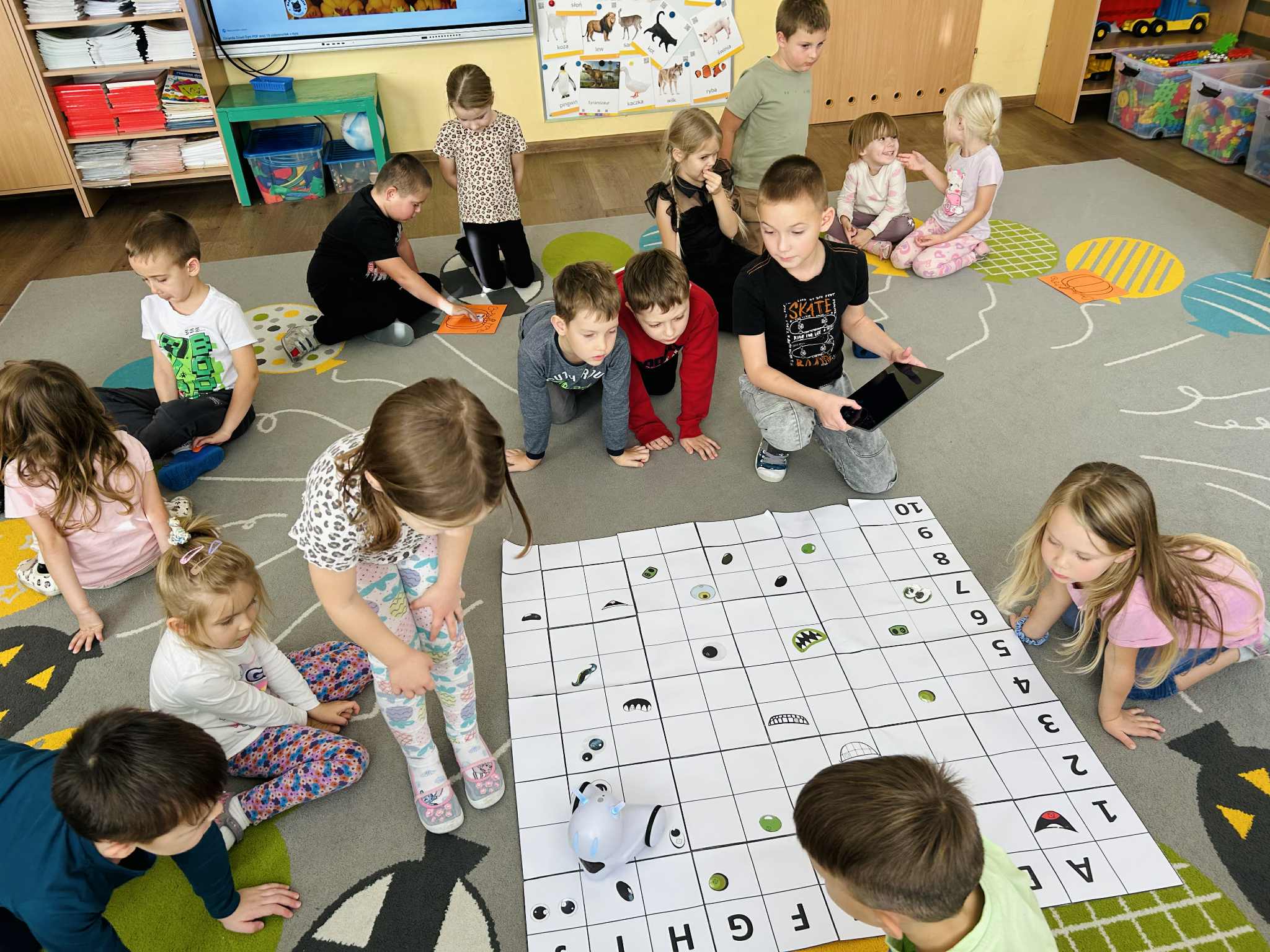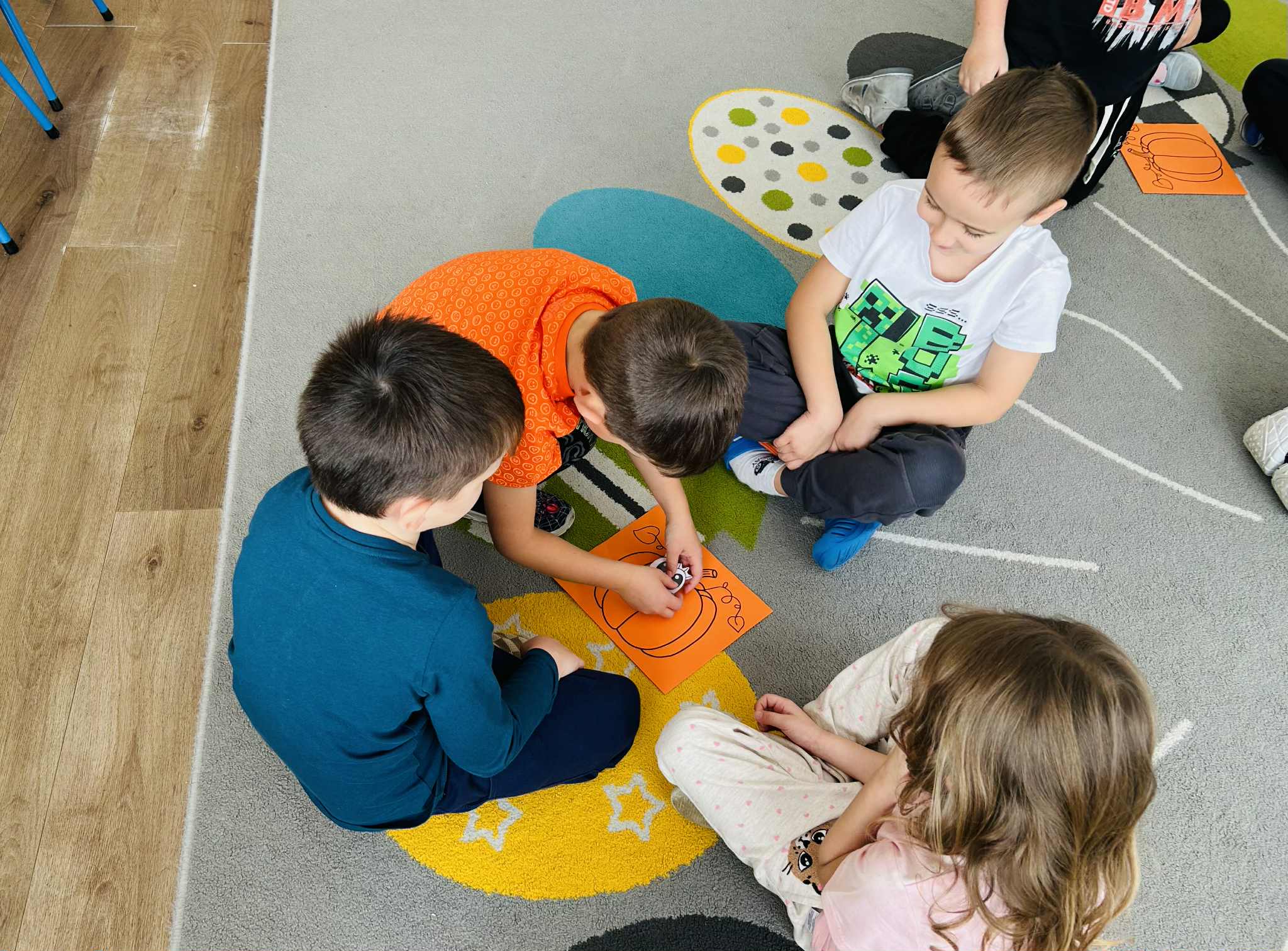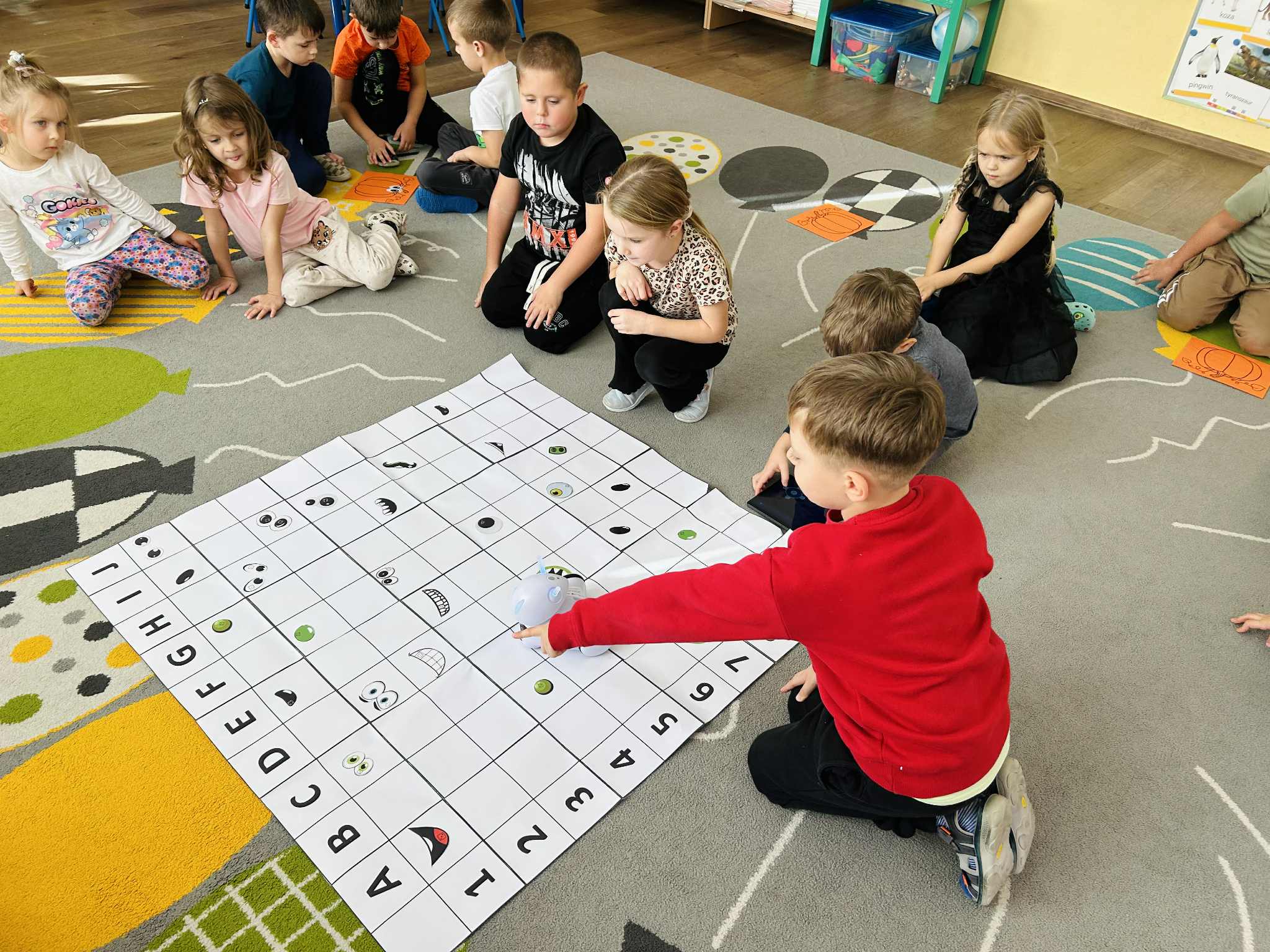 Było mnóstwo radości, nauki przez zabawę i kreatywnych wyzwań. Dzieci z ogromnym zaangażowaniem programowały trasę robota, pomagając mu dotrzeć do ukrytych dyniowych zadań. To był dzień pełen uśmiechów i nowych odkryć.