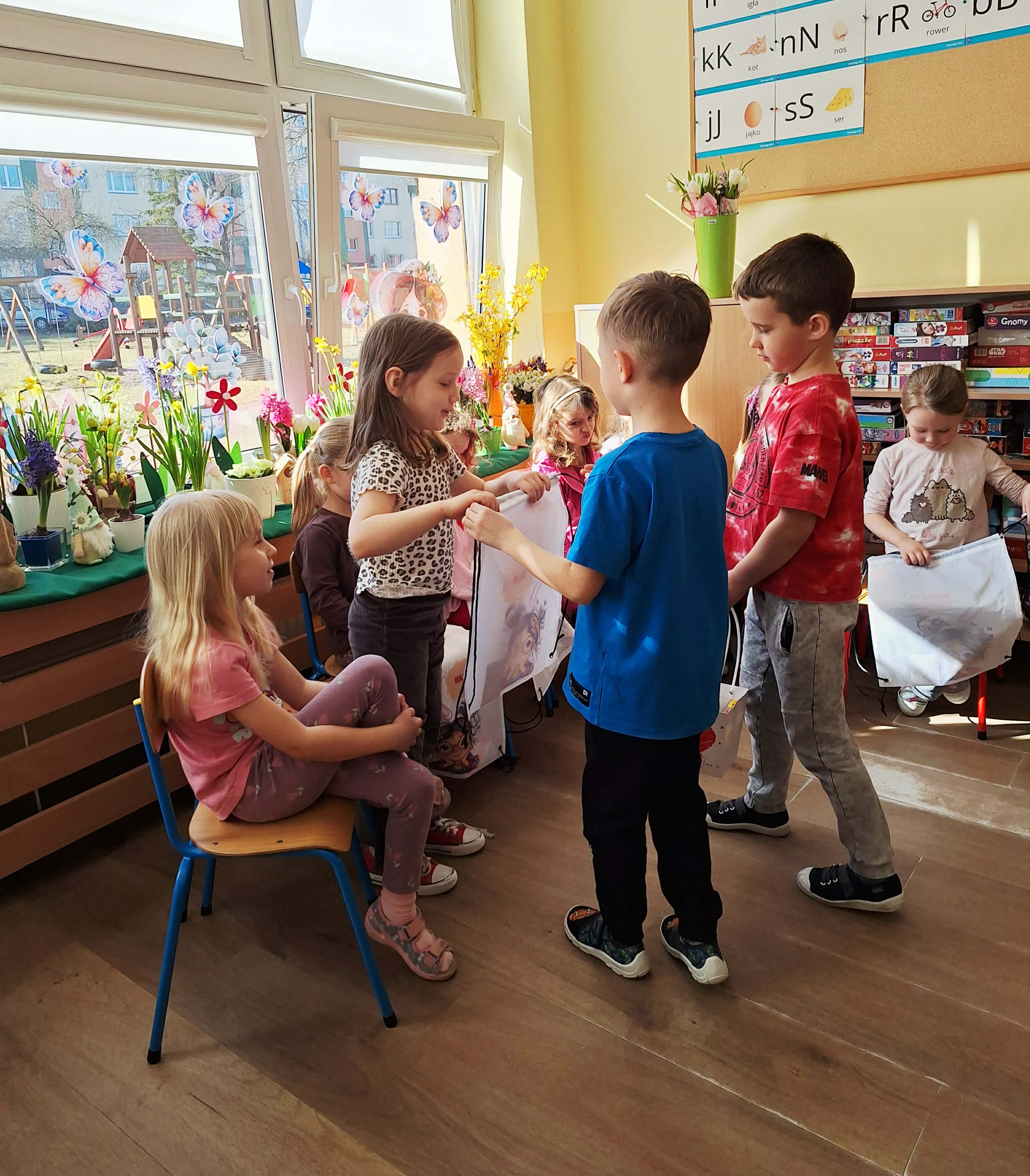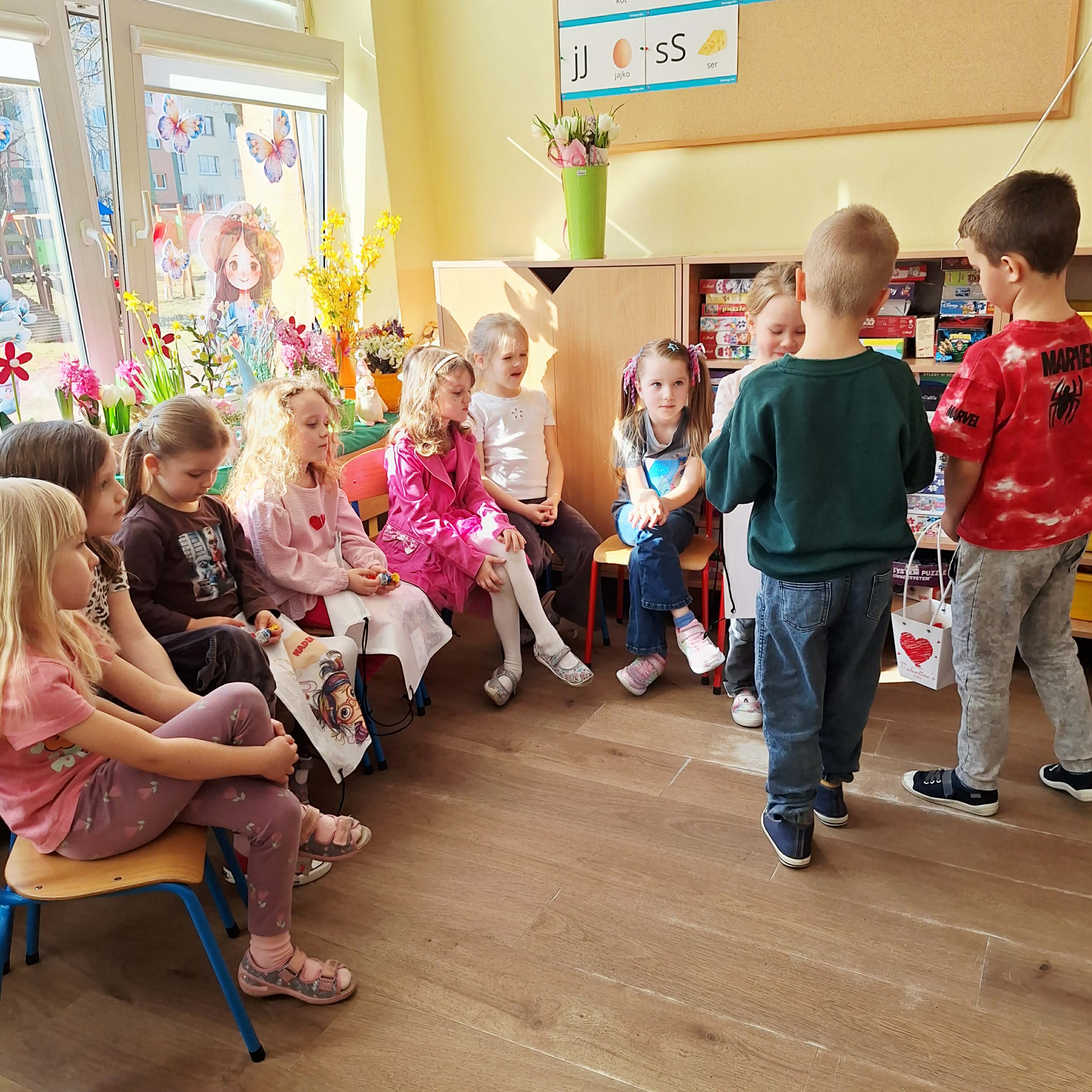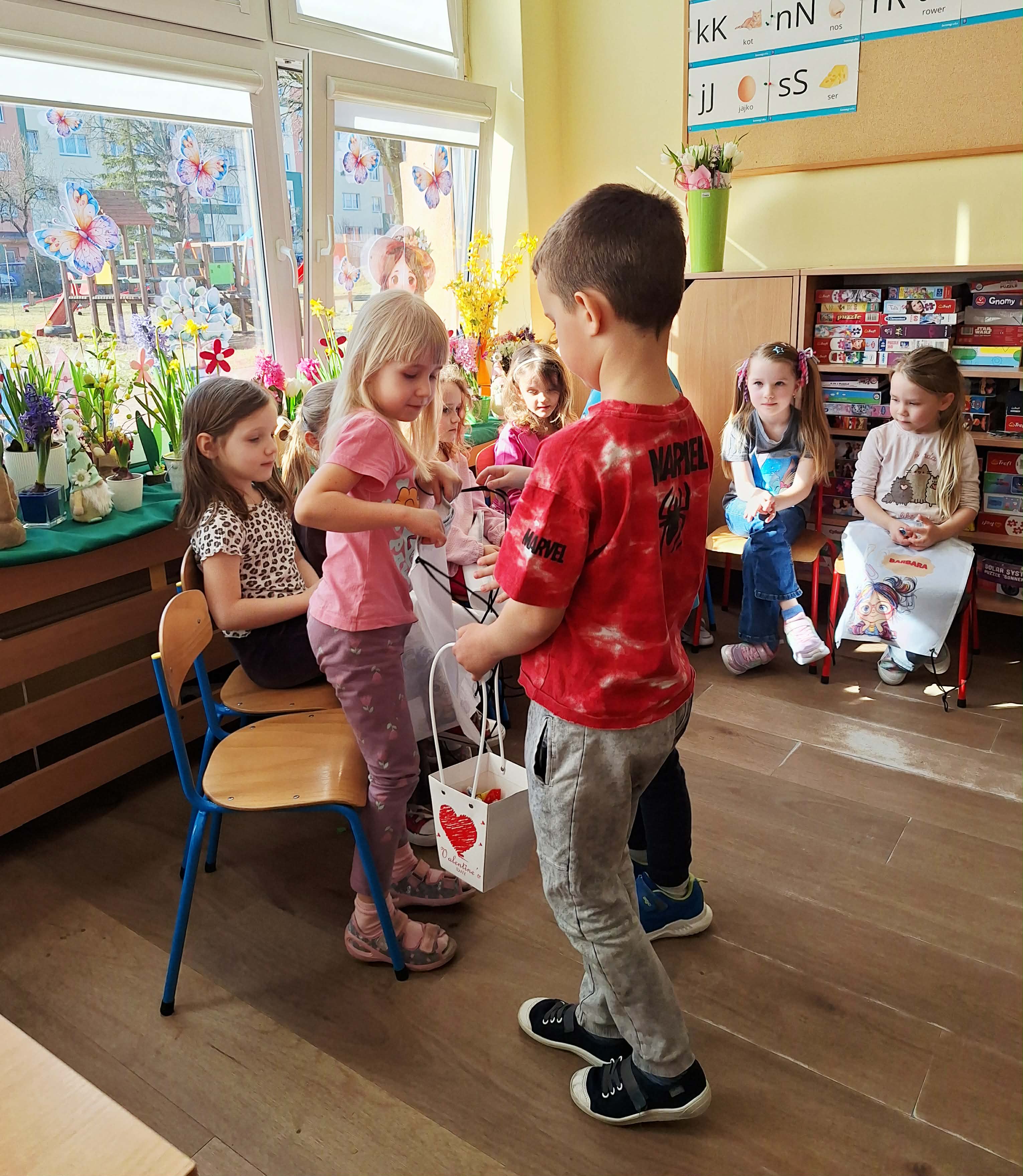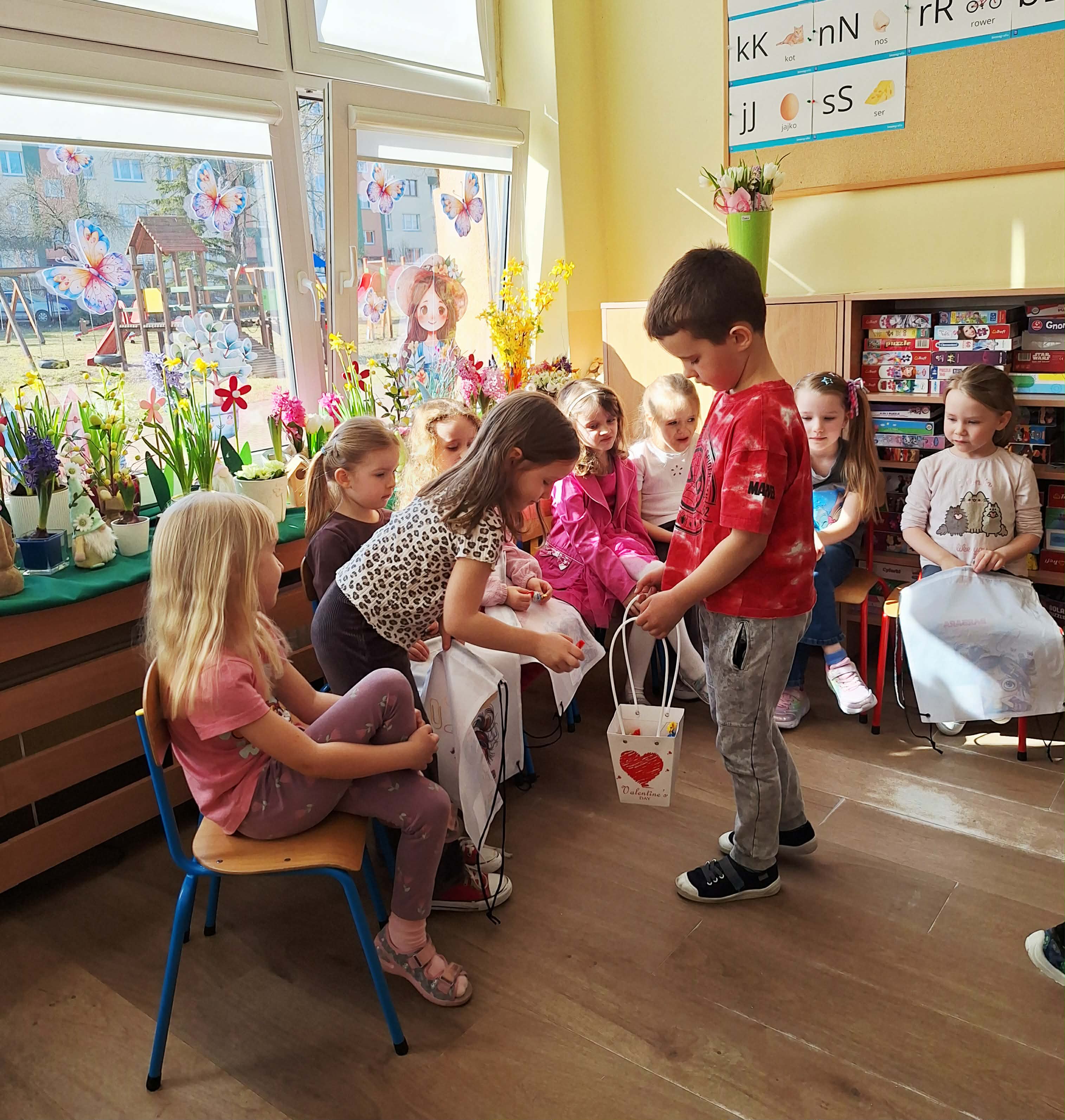 Dzień Kobiet w przedszkolu był pełen radości i uśmiechów. Chłopcy z wielkim zaangażowaniem przygotowali niespodzianki dla dziewczynek – wręczali im drobne upominki i składali serdeczne życzenia. Każda dziewczynka czuła się wyjątkowo w tym szczególnym dniu. Mali dżentelmeni nie zapomnieli również o swoich paniach wychowawczyniach, którym podarowali kwiaty i podziękowali za codzienną troskę oraz opiekę. To był piękny dzień pełen życzliwości i wspólnego świętowania.