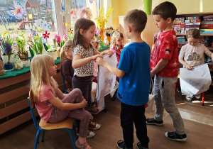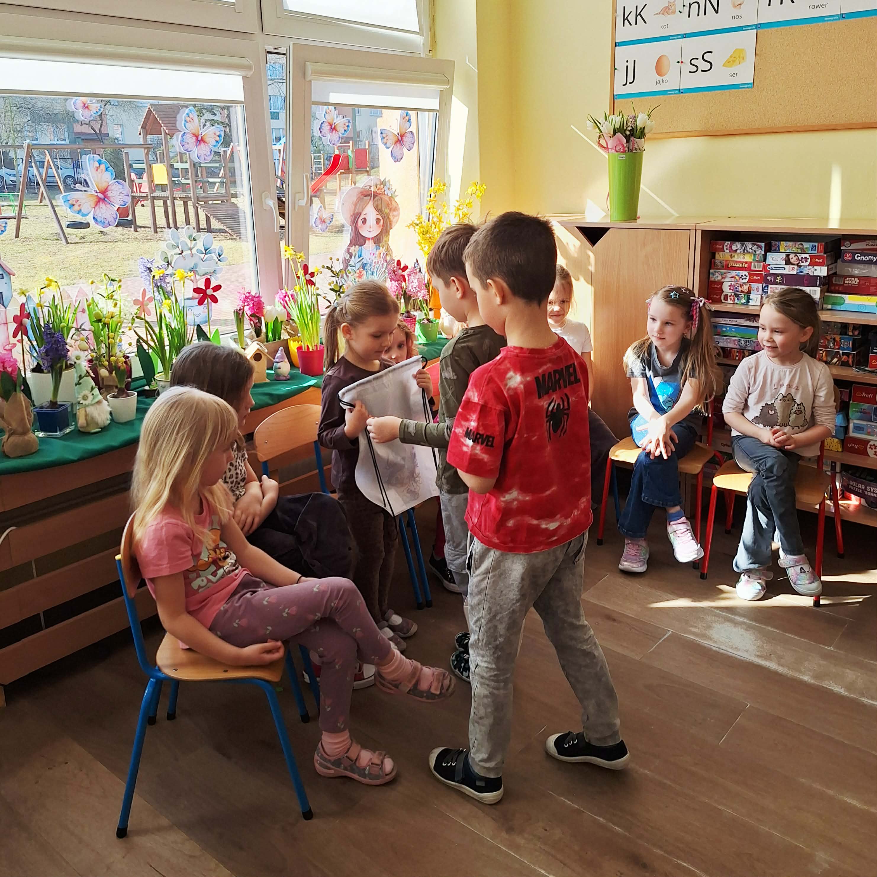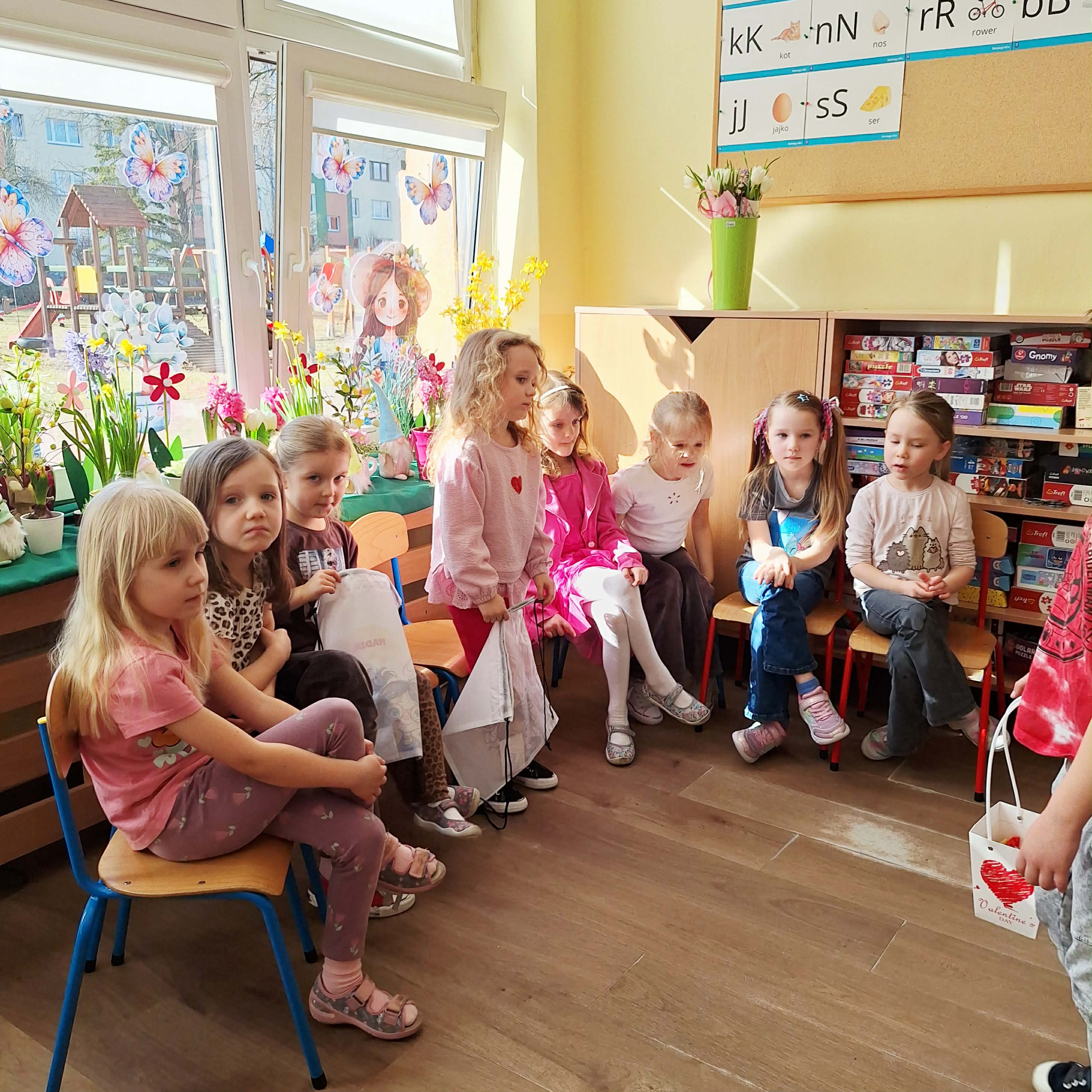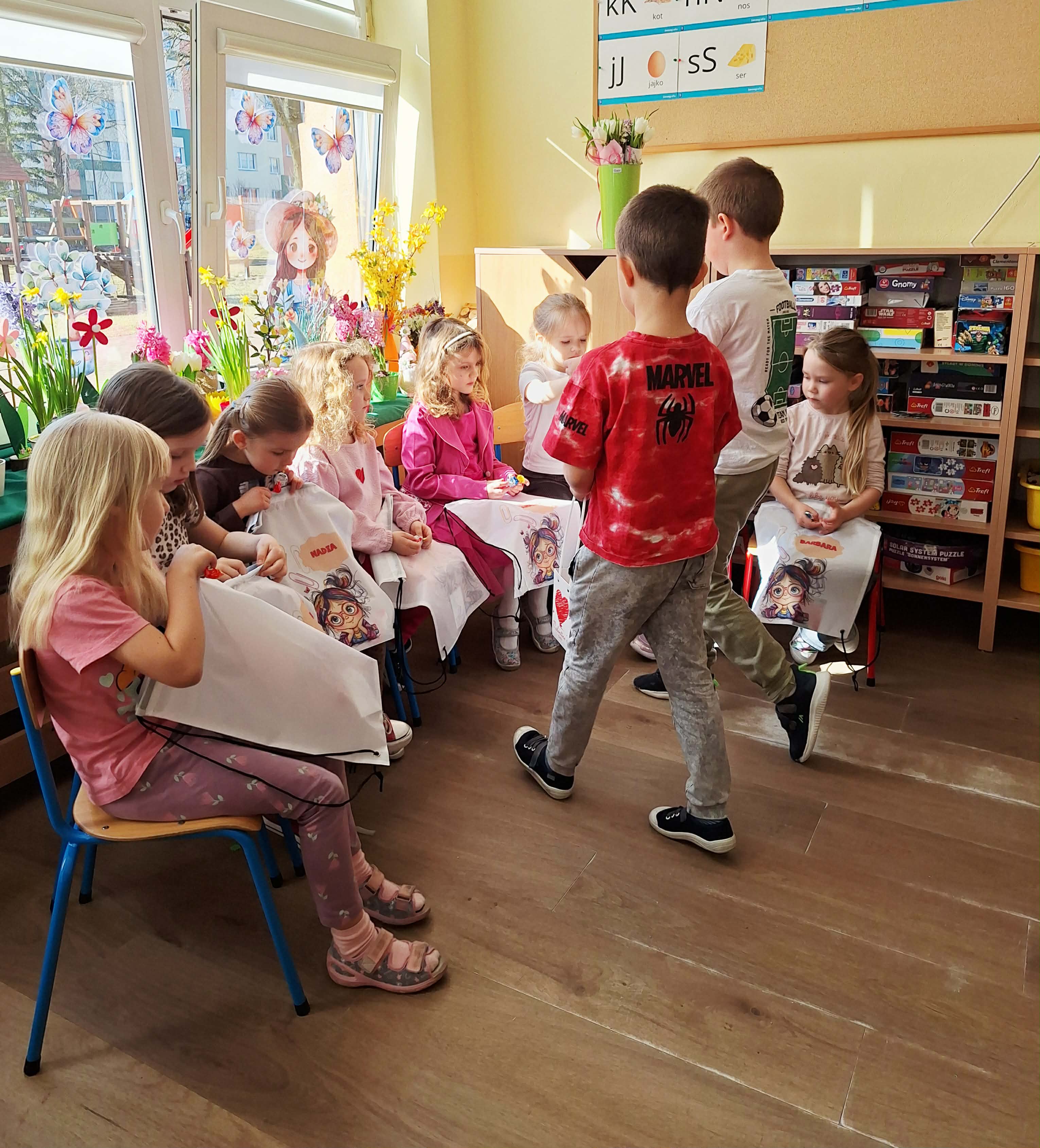 Dzień Kobiet w przedszkolu był pełen radości i uśmiechów. Chłopcy z wielkim zaangażowaniem przygotowali niespodzianki dla dziewczynek – wręczali im drobne upominki i składali serdeczne życzenia. Każda dziewczynka czuła się wyjątkowo w tym szczególnym dniu. Mali dżentelmeni nie zapomnieli również o swoich paniach wychowawczyniach, którym podarowali kwiaty i podziękowali za codzienną troskę oraz opiekę. To był piękny dzień pełen życzliwości i wspólnego świętowania.