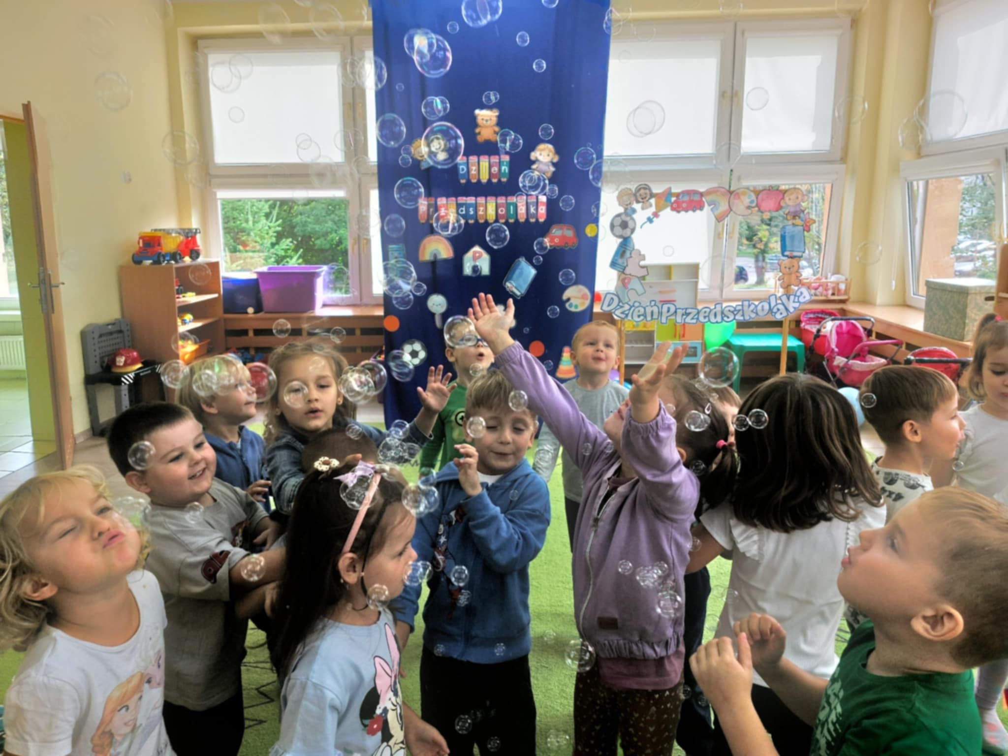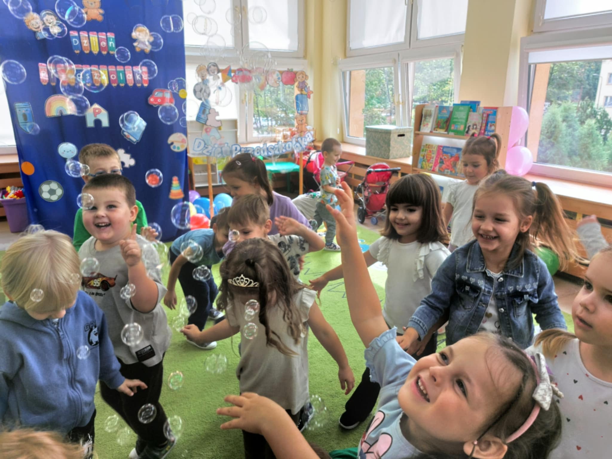 Było mnóstwo radości, tańców i zabaw z kolorowymi balonami. Każdy przedszkolak mógł spróbować swoich sił w wesołych grach i niespodziankach przygotowanych specjalnie na tę okazję. Nie zabrakło pamiątkowych dyplomów oraz wspólnych zdjęć w naszej fotobudce, które będą miłym wspomnieniem tego radosnego dnia!