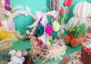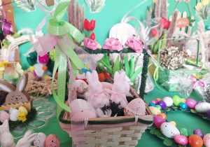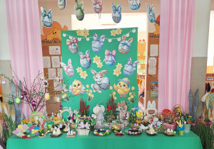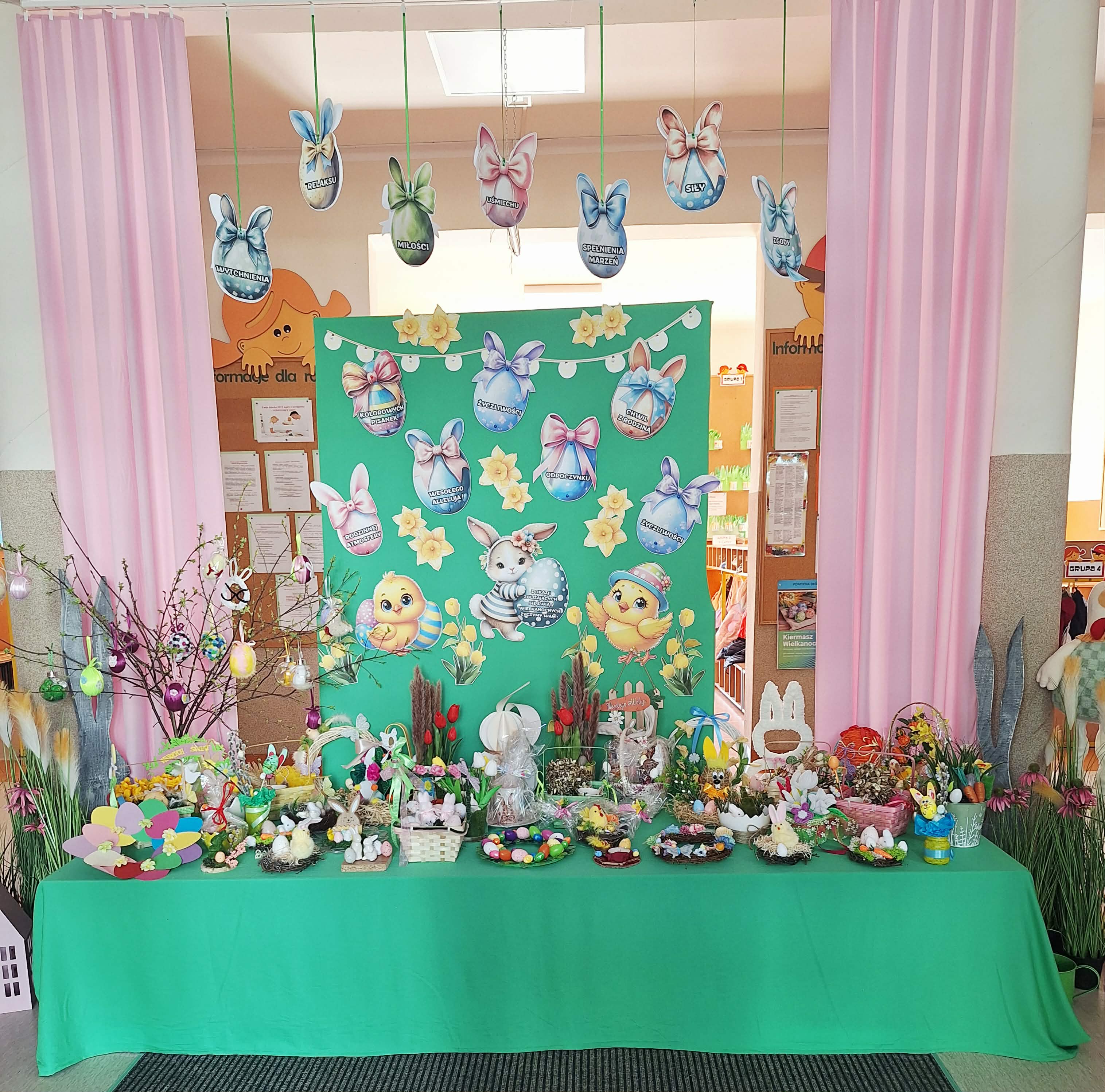W naszym Przedszkolu odbył sie Kiermasz Wielkanocny, który cieszył się dużym zainteresowaniem dzieci, rodziców oraz pracowników placówki.Wydarzenie miało na celu nie tylko wprowadzenie wszystkich w radosną, świąteczną atmosferę, ale także integrację całej społeczności przedszkolnej. Na przygotowanym stoisku można było podziwiać oraz zakupić piękne, ręcznie wykonane ozdoby wielkanocne. Wśród nich znalazły się kolorowe pisanki, stroiki świąteczne, dekoracyjne zajączki, baranki, palmy wielkanocne oraz liczne prace plastyczne wykonane przez dzieci przy wsparciu wychowawców i rodziców. Każda z ozdób była niepowtarzalna i wykonana z ogromnym zaangażowaniem. Dochód ze sprzedaży ozdób zostanie przeznaczony na potrzeby przedszkola oraz organizację kolejnych inicjatyw dla dzieci. Organizatorzy serdecznie dziękują wszystkim, którzy włączyli sie w przygotowanie kiermaszu- dzieciom za ich wspaniale prace, Rodzicom za pomc i wsparcie a nauczycielom za zaangażowanie i pomysłowość.