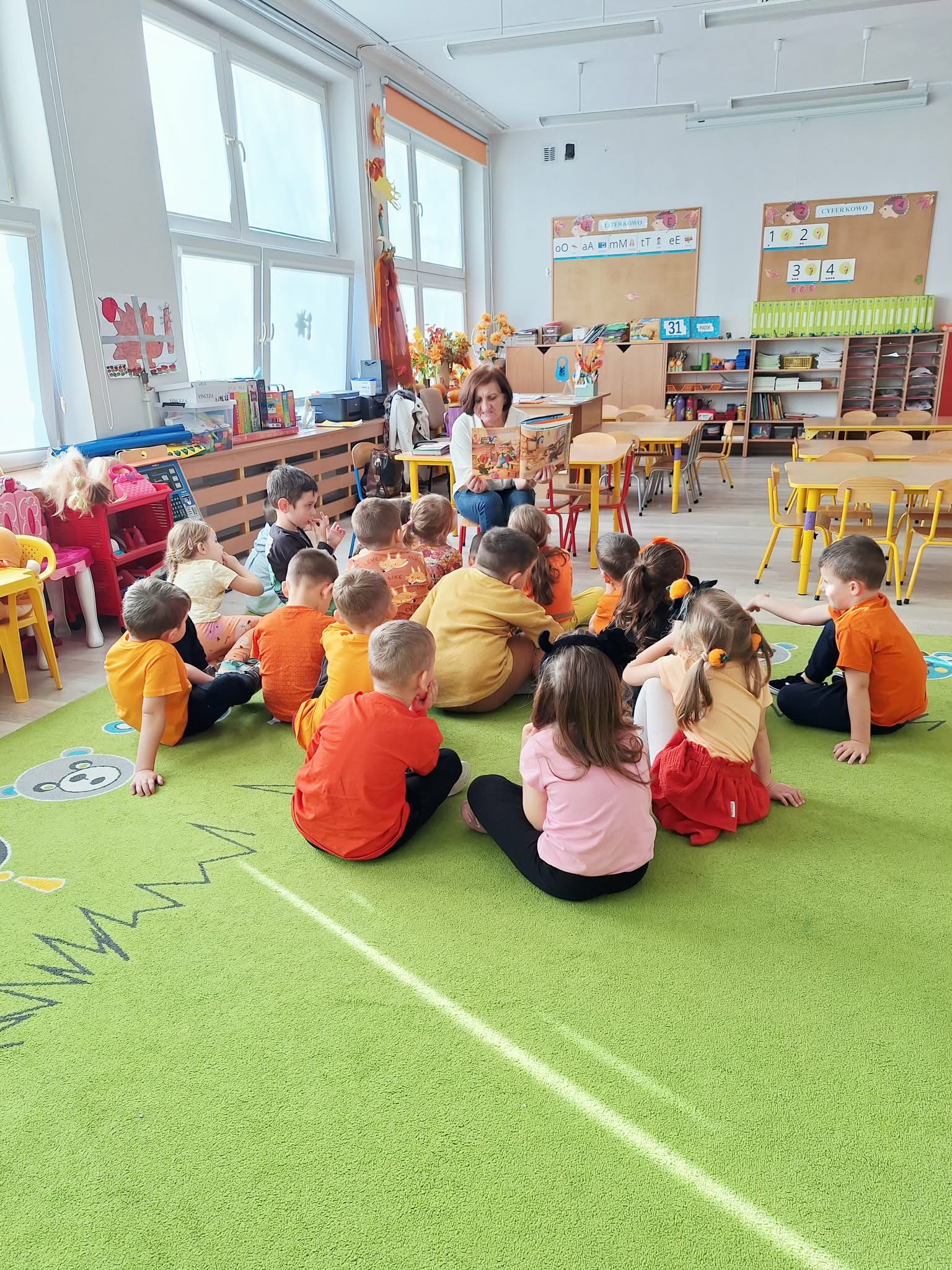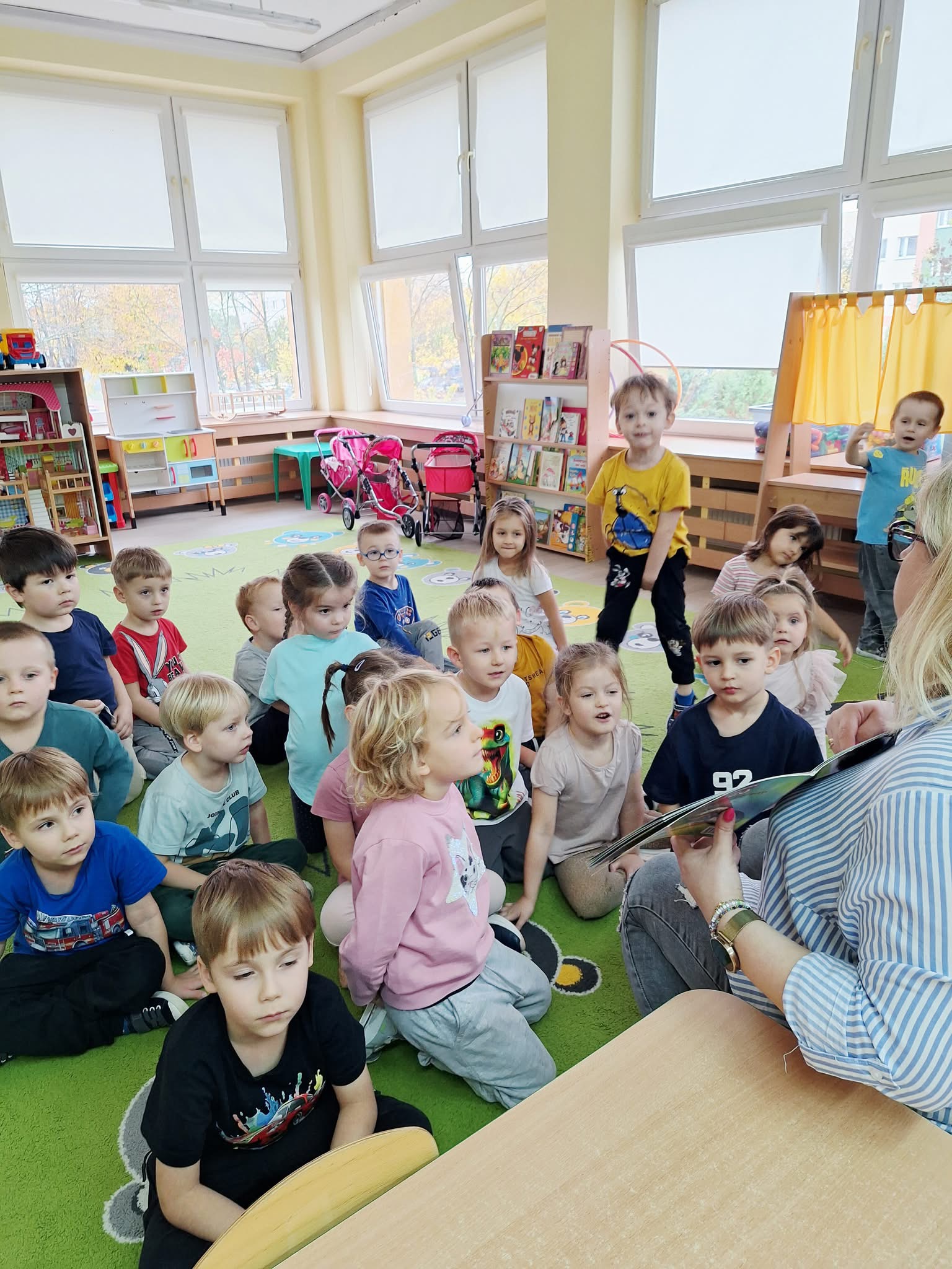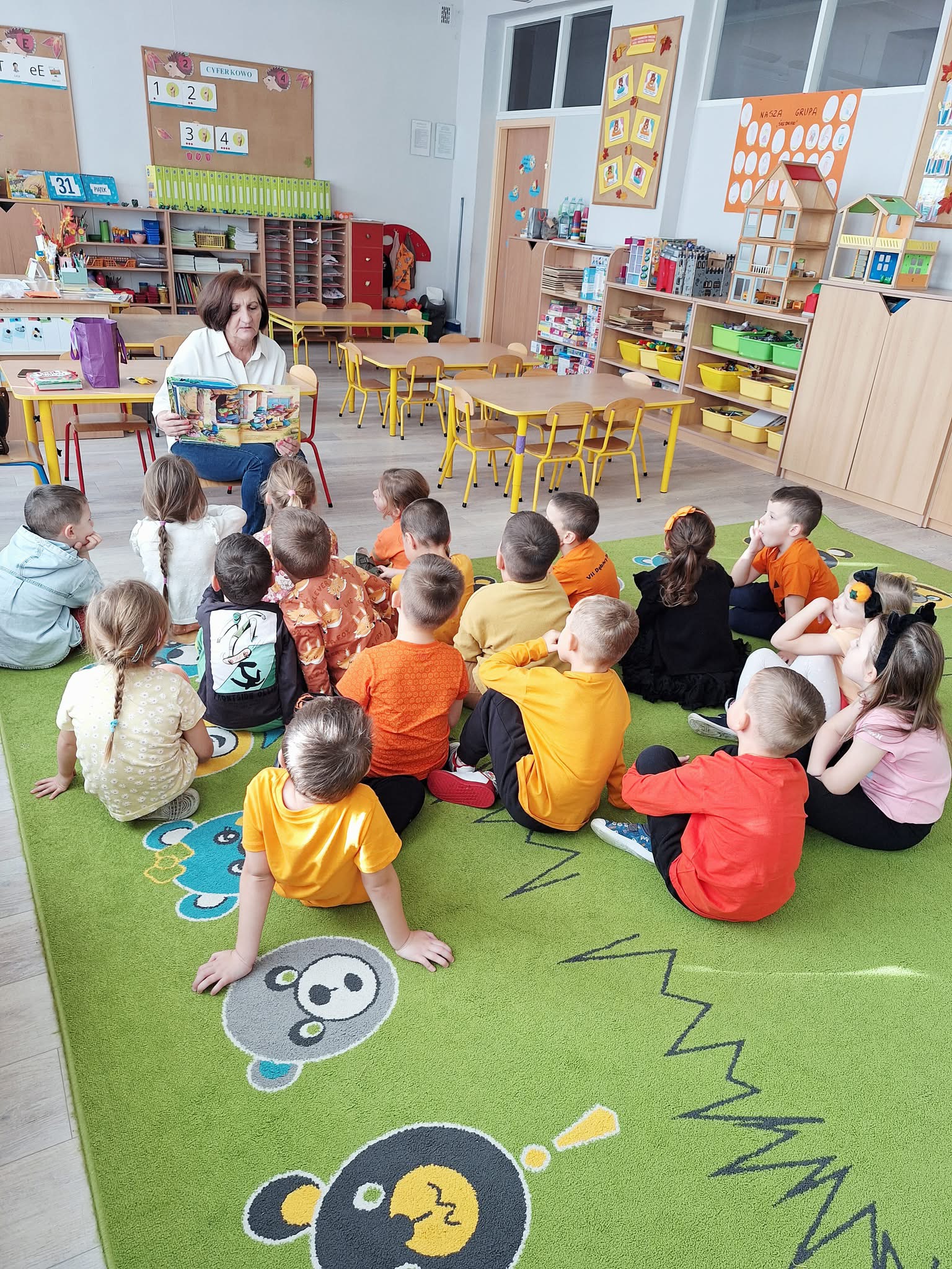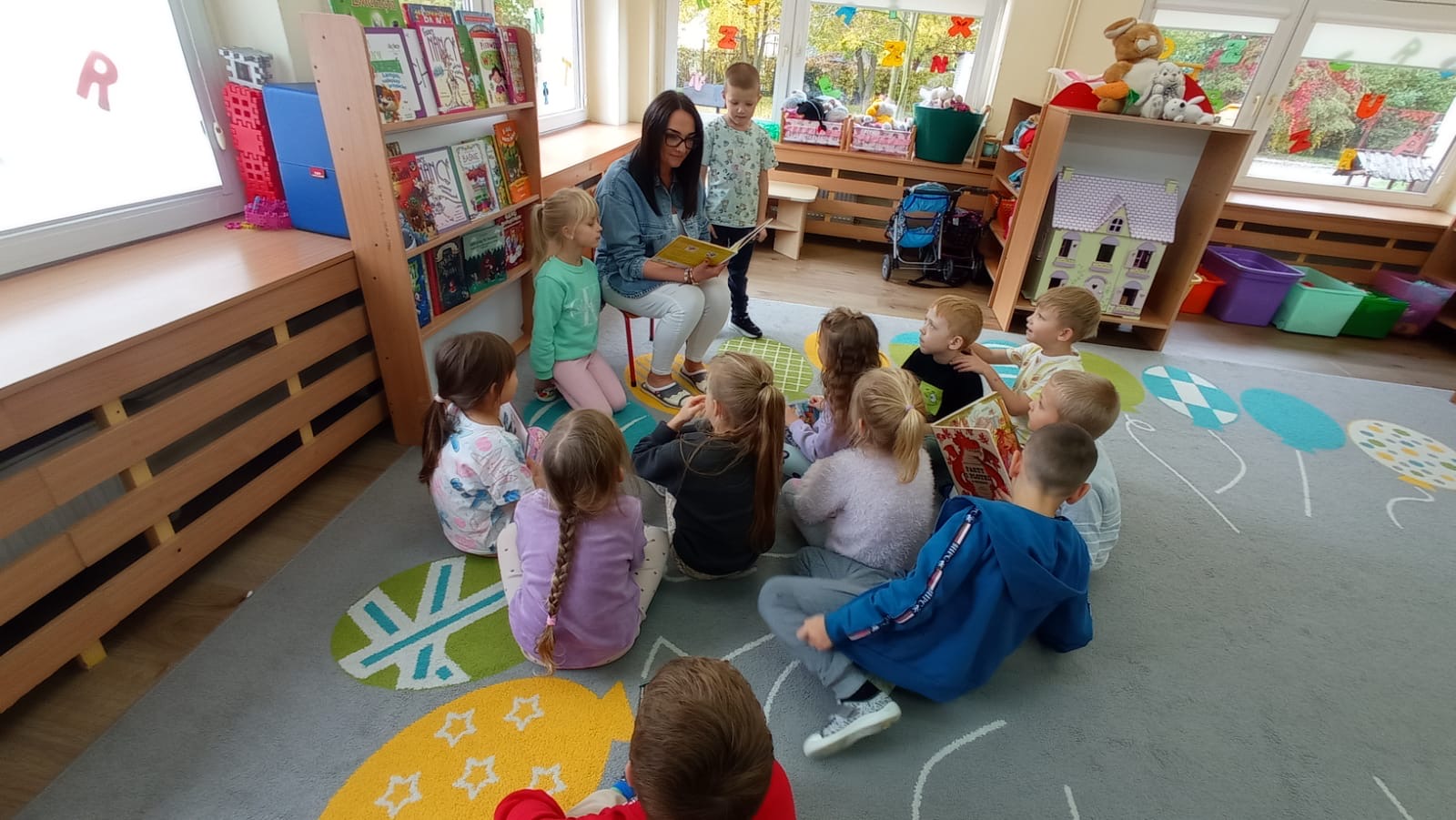 W każdy piątek nasze przedszkolaki przynoszą swoje ulubione książki z domu. To wyjątkowy dzień pełen opowieści, przygód i wyobraźni! Nauczycielka czyta wybrane książki wspólnie z dziećmi, a mali słuchacze z radością dzielą się swoimi ulubionymi historiami. To piękny sposób na rozwijanie miłości do czytania już od najmłodszych lat! ️