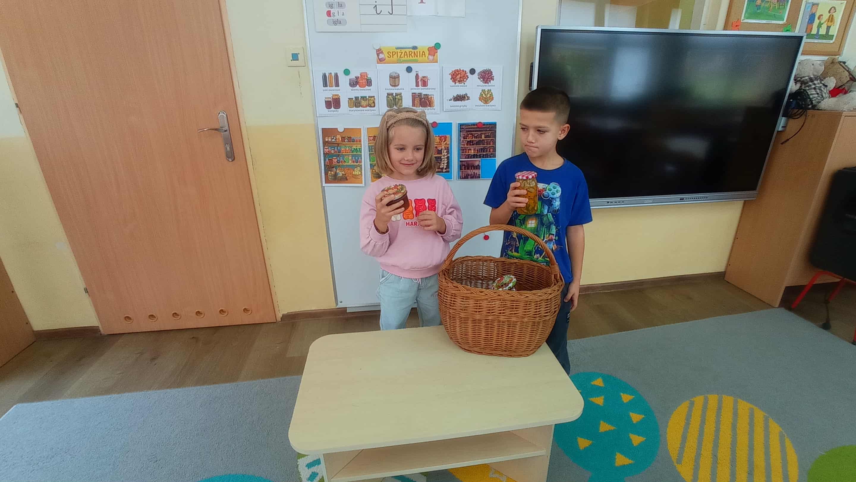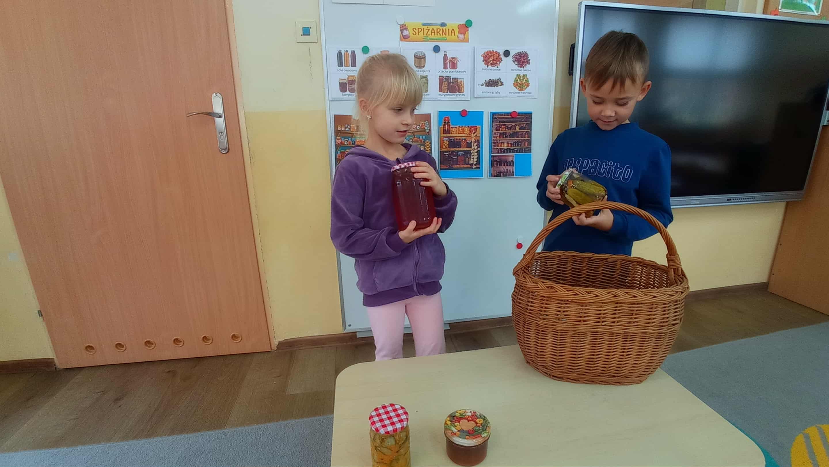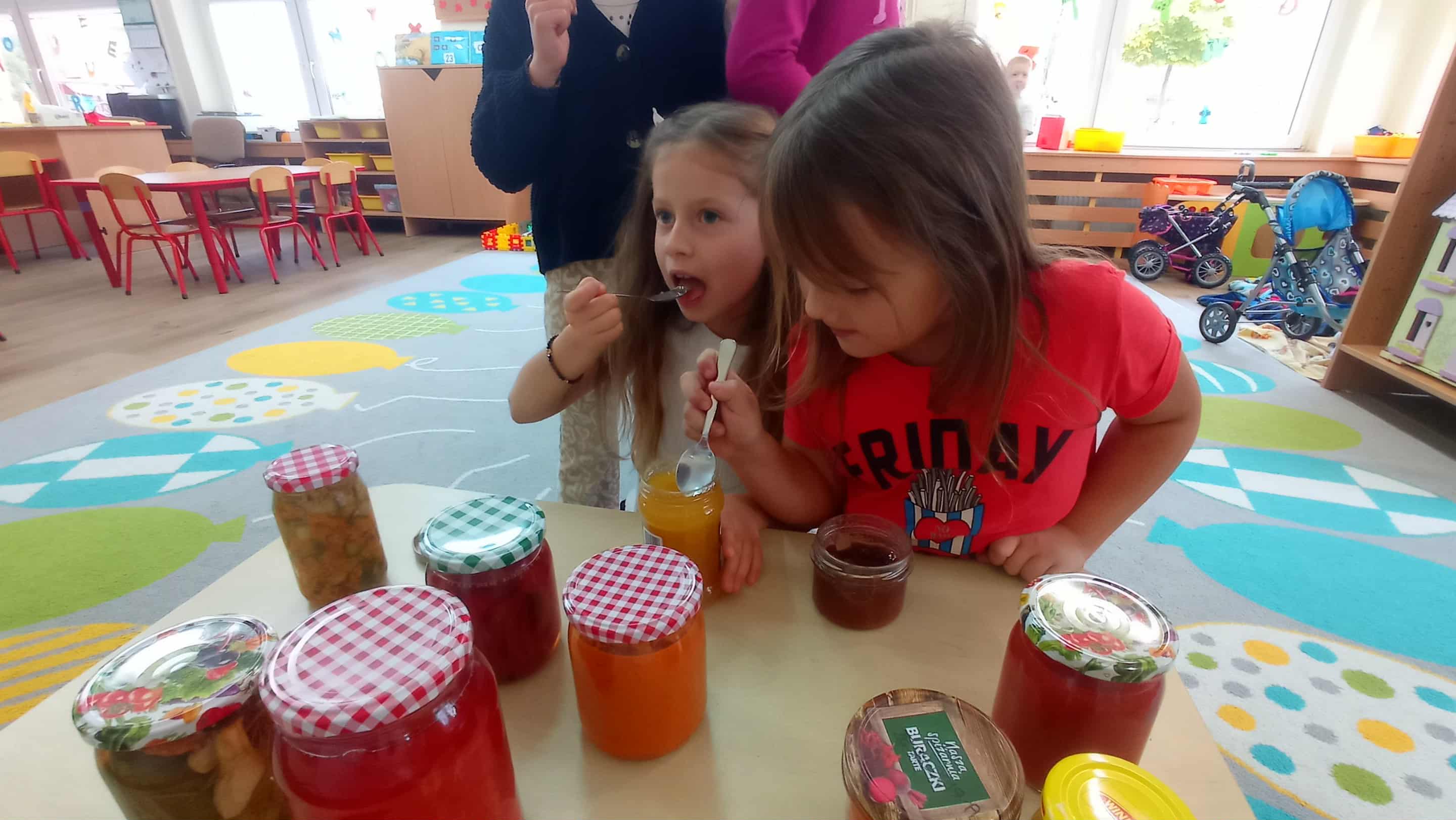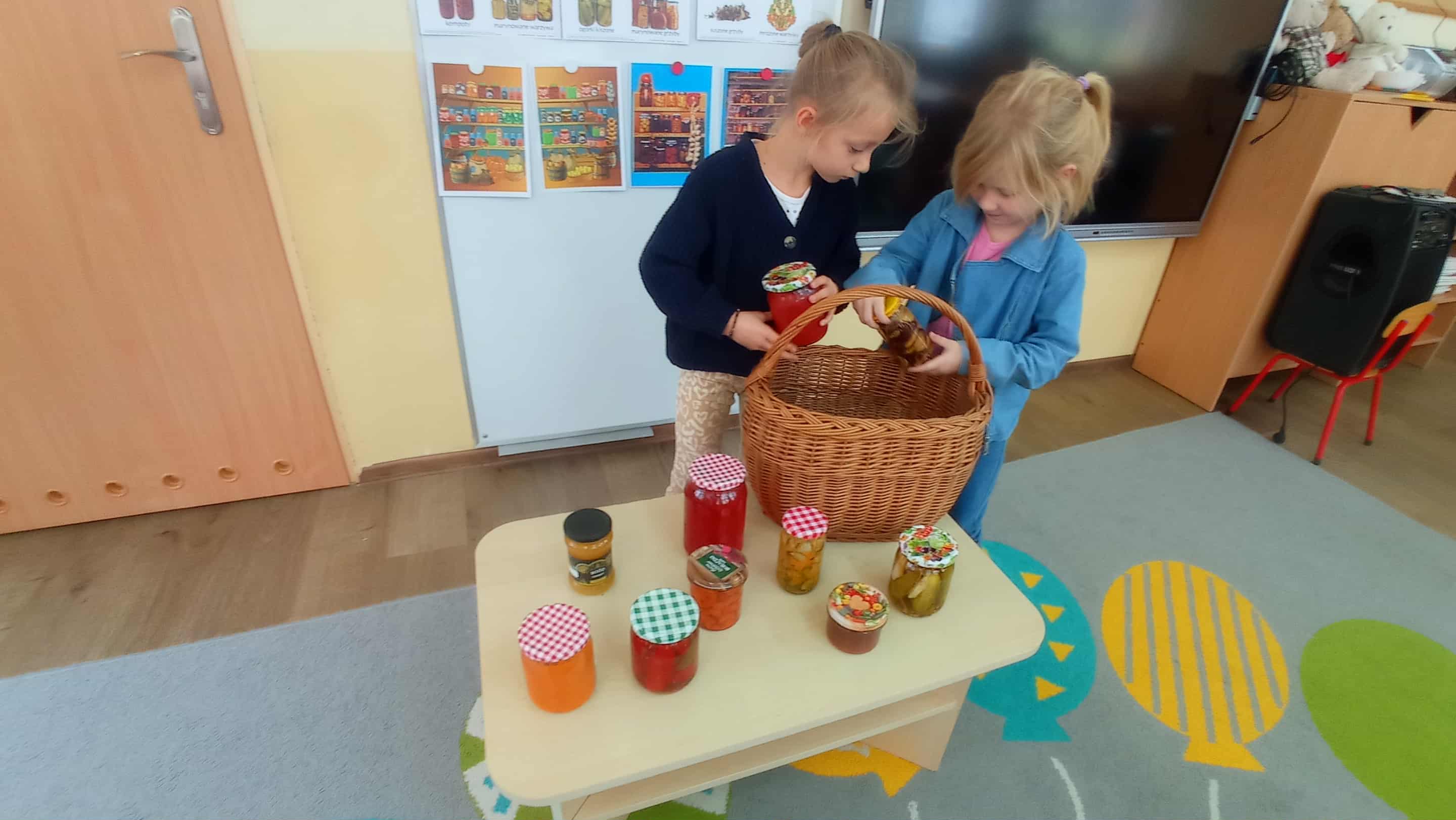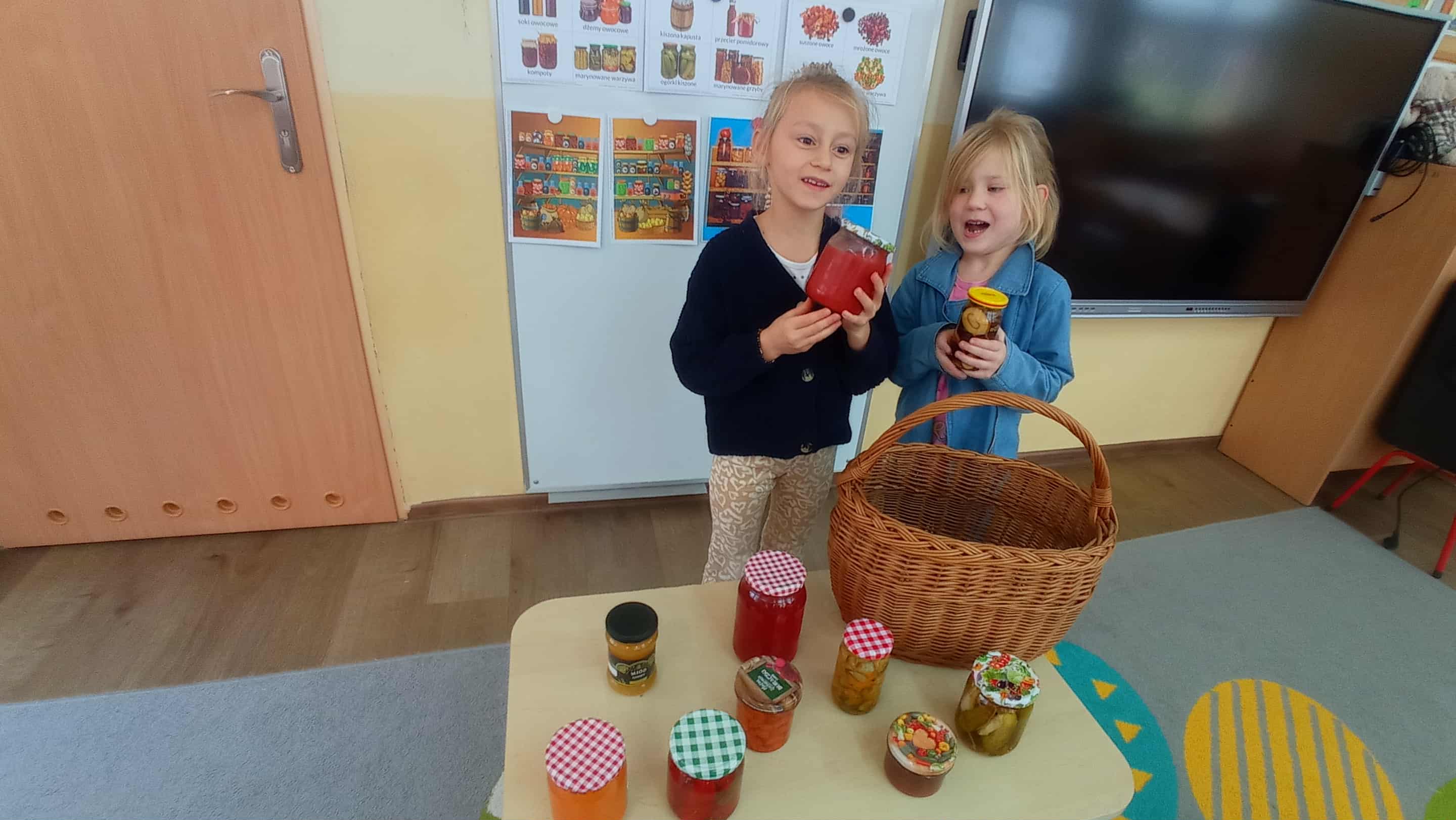 Dziś w naszym przedszkolu odbyły się wyjątkowe zajęcia. Przedszkolaki miały okazję posmakować pysznych przetworów przygotowanych z warzyw i owoców zebranych latem. Na stole pojawiły się kolorowe dżemy, kompoty, marynowane ogórki, sosy i sałatki warzywne. Dzieci z zainteresowaniem oglądały słoiczki, rozpoznawały składniki i z radością degustowały naturalne smaki lata zamknięte w słoikach. Podczas degustacji rozmawialiśmy o tym, jak powstają przetwory, dlaczego warto je robić i jakie mają wartości odżywcze. To była wspaniała lekcja o zdrowym odżywianiu, tradycjach i pracy, jaką trzeba włożyć, by zimą cieszyć się smakami lata. Dzieci wykonały własne, kolorowe słoiki z przetworami, wykorzystując słoiki, papier, bibułę, plastelinę oraz inne materiały plastyczne. W słoiczkach znalazły się soczyste owoce, warzywa i dżemy — wszystko stworzone z wyobraźni i kreatywności naszych małych artystów. To była ciekawa i twórcza zabawa, która połączyła naukę i wyobraźnię .