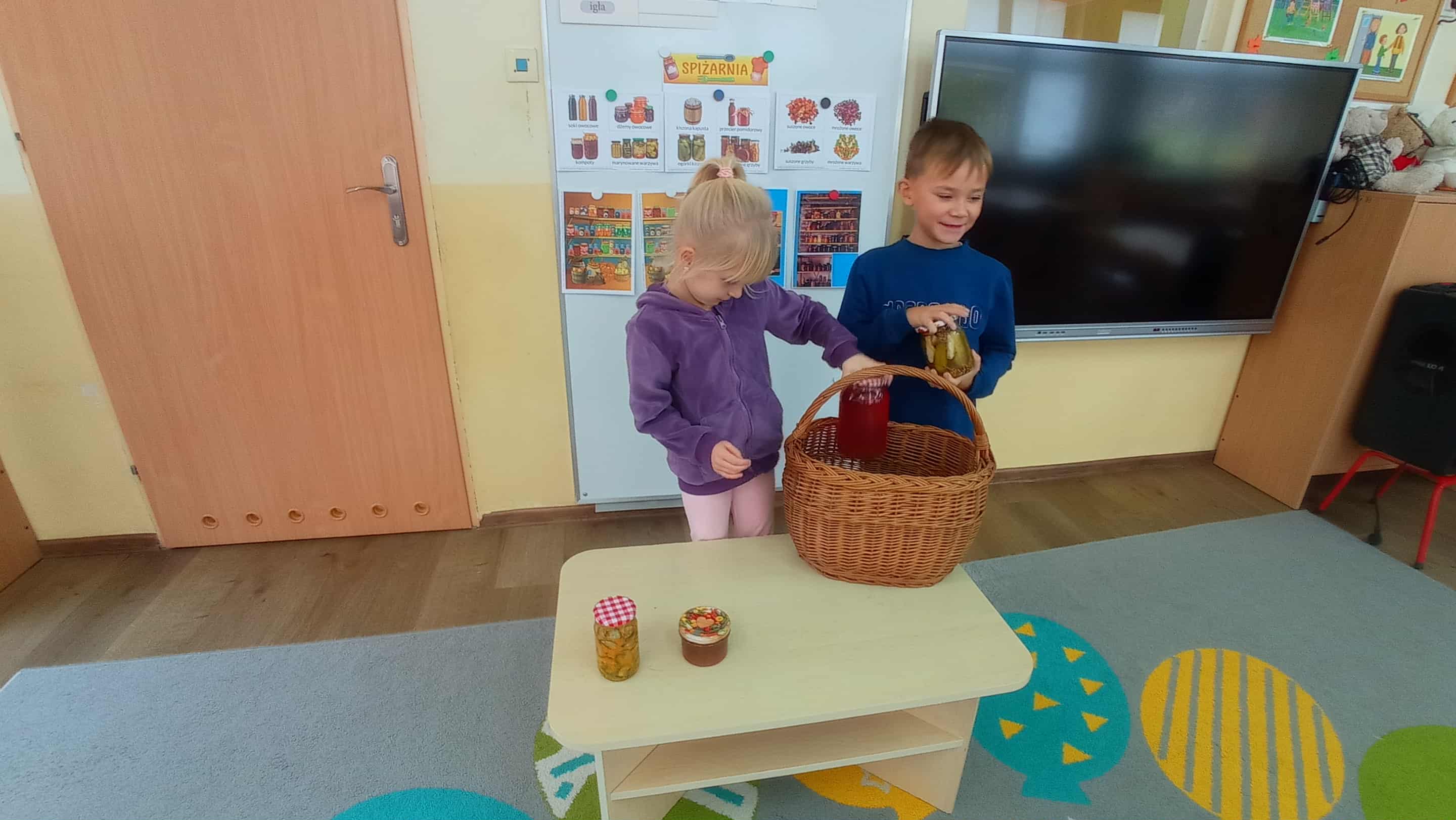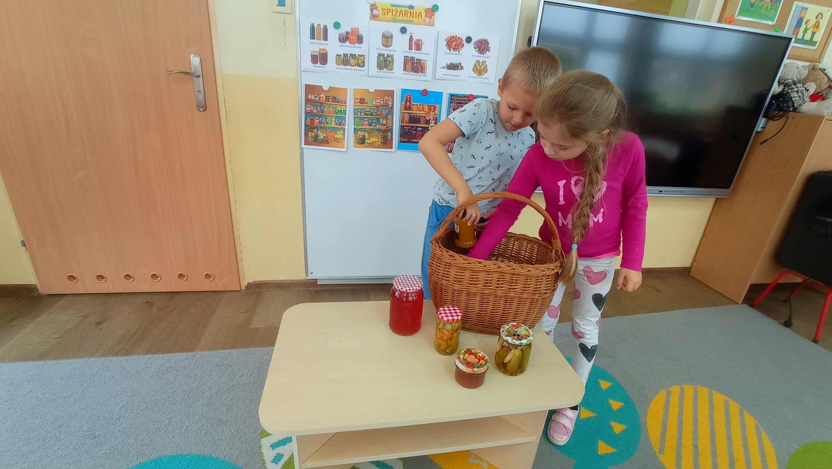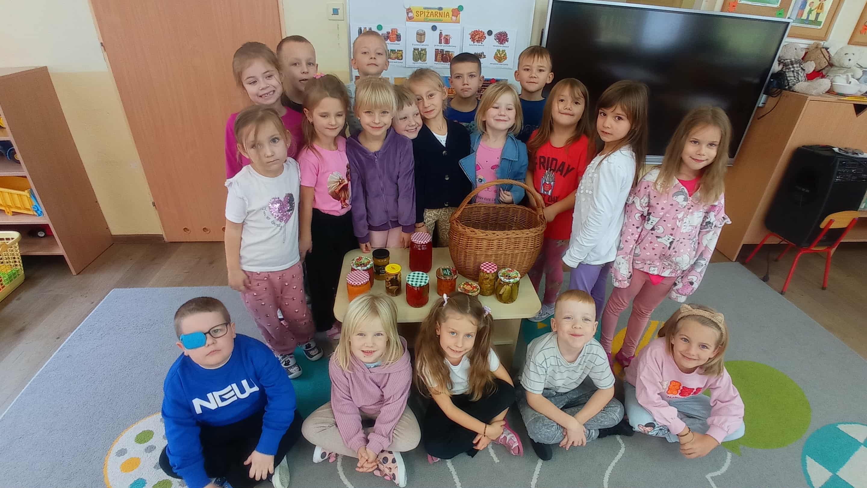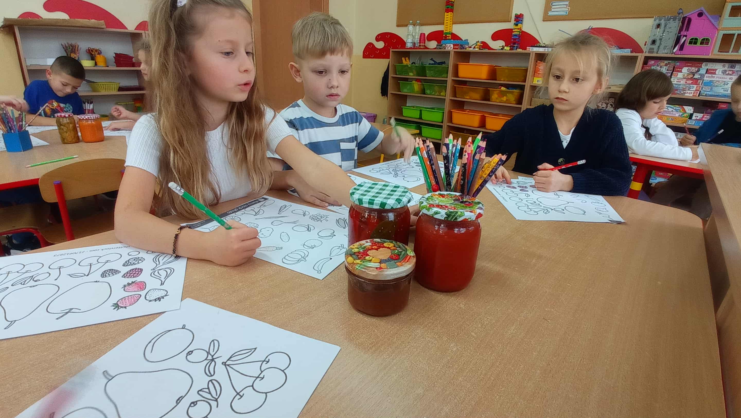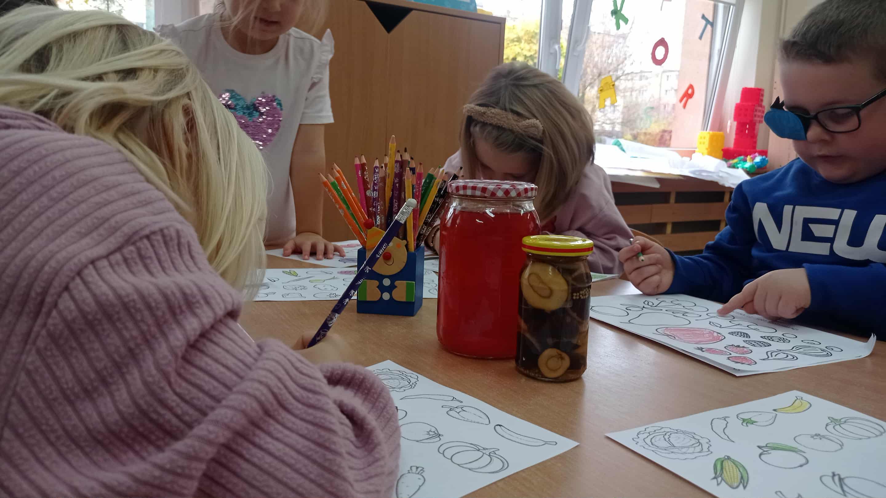 Dziś w naszym przedszkolu odbyły się wyjątkowe zajęcia. Przedszkolaki miały okazję posmakować pysznych przetworów przygotowanych z warzyw i owoców zebranych latem. Na stole pojawiły się kolorowe dżemy, kompoty, marynowane ogórki, sosy i sałatki warzywne. Dzieci z zainteresowaniem oglądały słoiczki, rozpoznawały składniki i z radością degustowały naturalne smaki lata zamknięte w słoikach. Podczas degustacji rozmawialiśmy o tym, jak powstają przetwory, dlaczego warto je robić i jakie mają wartości odżywcze. To była wspaniała lekcja o zdrowym odżywianiu, tradycjach i pracy, jaką trzeba włożyć, by zimą cieszyć się smakami lata. Dzieci wykonały własne, kolorowe słoiki z przetworami, wykorzystując słoiki, papier, bibułę, plastelinę oraz inne materiały plastyczne. W słoiczkach znalazły się soczyste owoce, warzywa i dżemy — wszystko stworzone z wyobraźni i kreatywności naszych małych artystów. To była ciekawa i twórcza zabawa, która połączyła naukę i wyobraźnię .