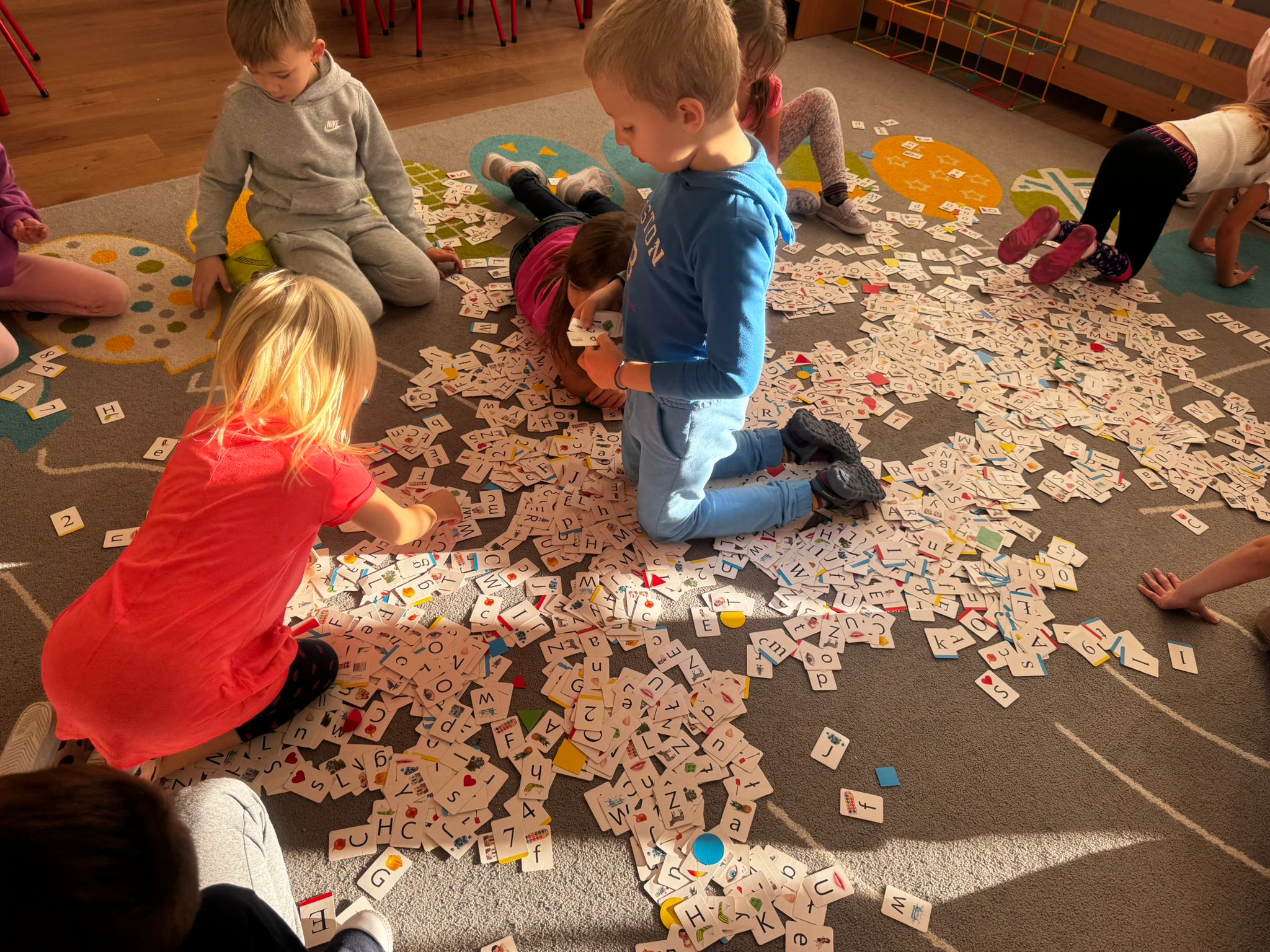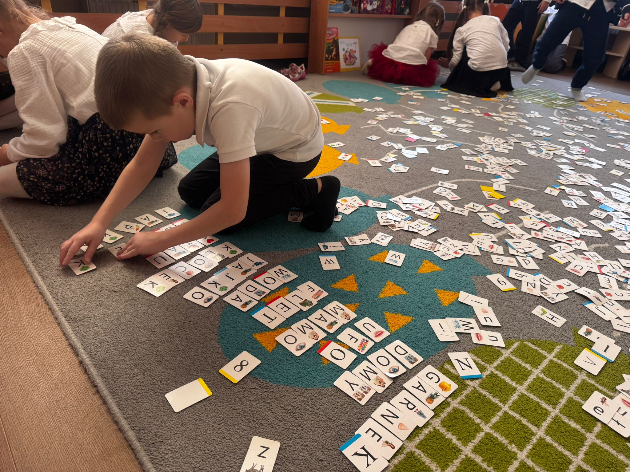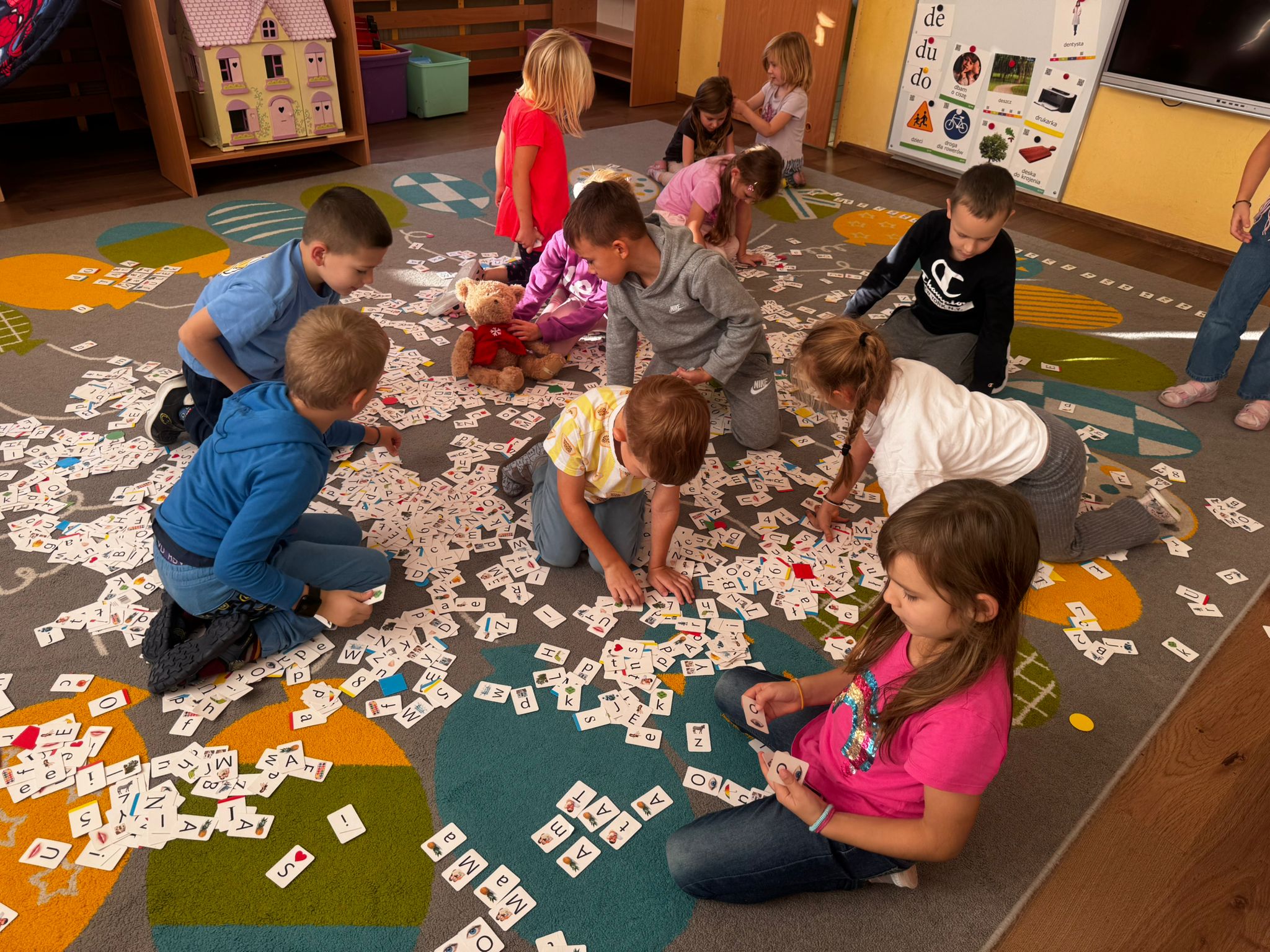 - znajomość wszystkich liter i cyfr oraz ich pisanych odpowiedników (bez umiejętności spontanicznego ich kreślenia bez wzoru).