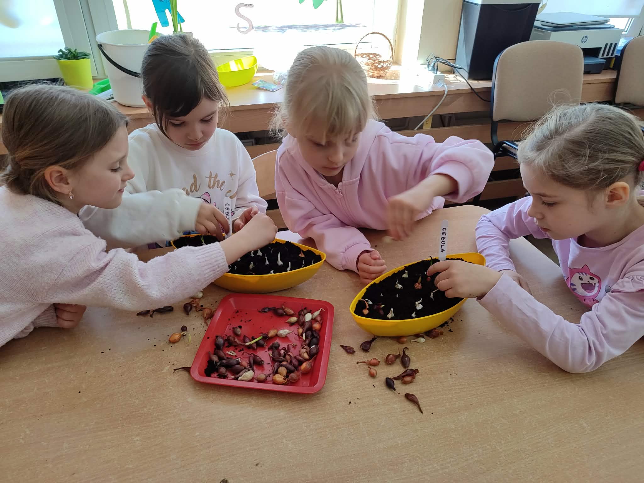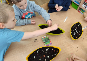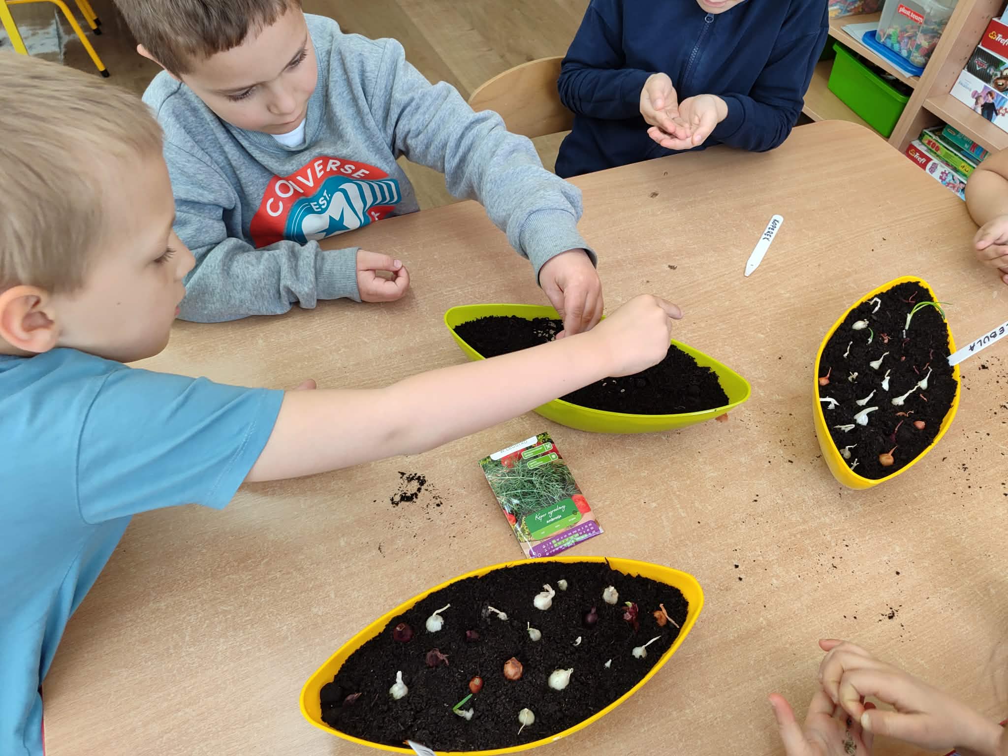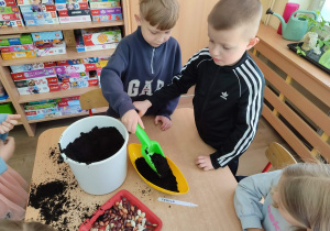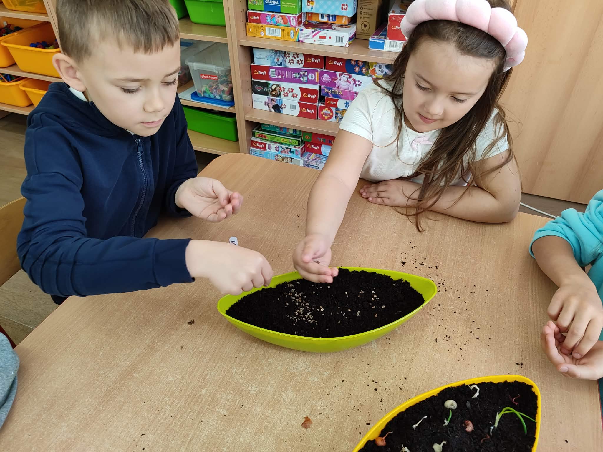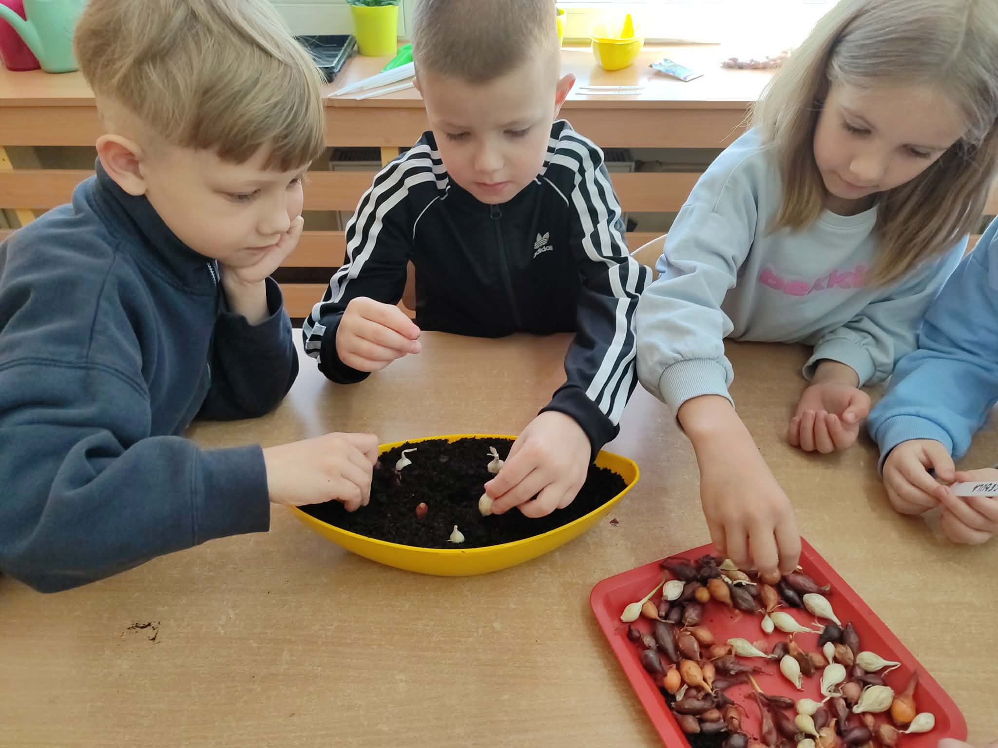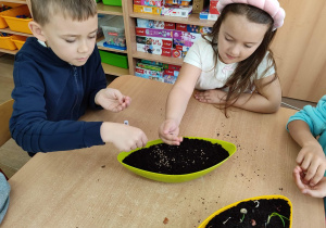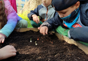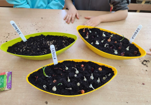 Przedszkolaki z grupy IV z zaangażowaniem wcielają się w rolę małych ogrodników. Samodzielnie pielęgnują swoje rozsady, sieją nasiona i sadzą rośliny, zakładając kolejny raz zielony kącik w swojej sali oraz ogródek na placu przedszkolnym.