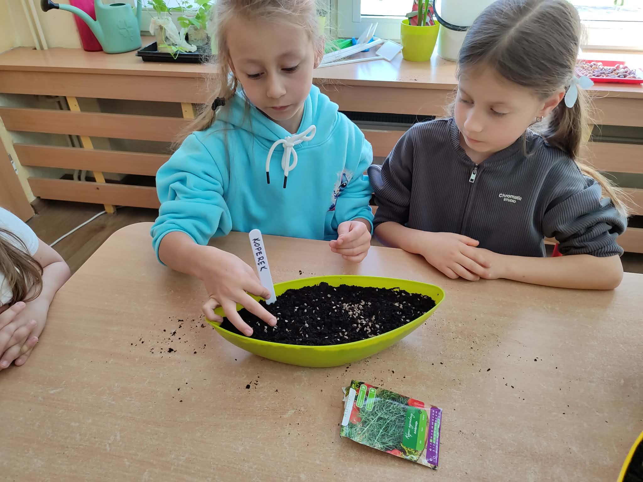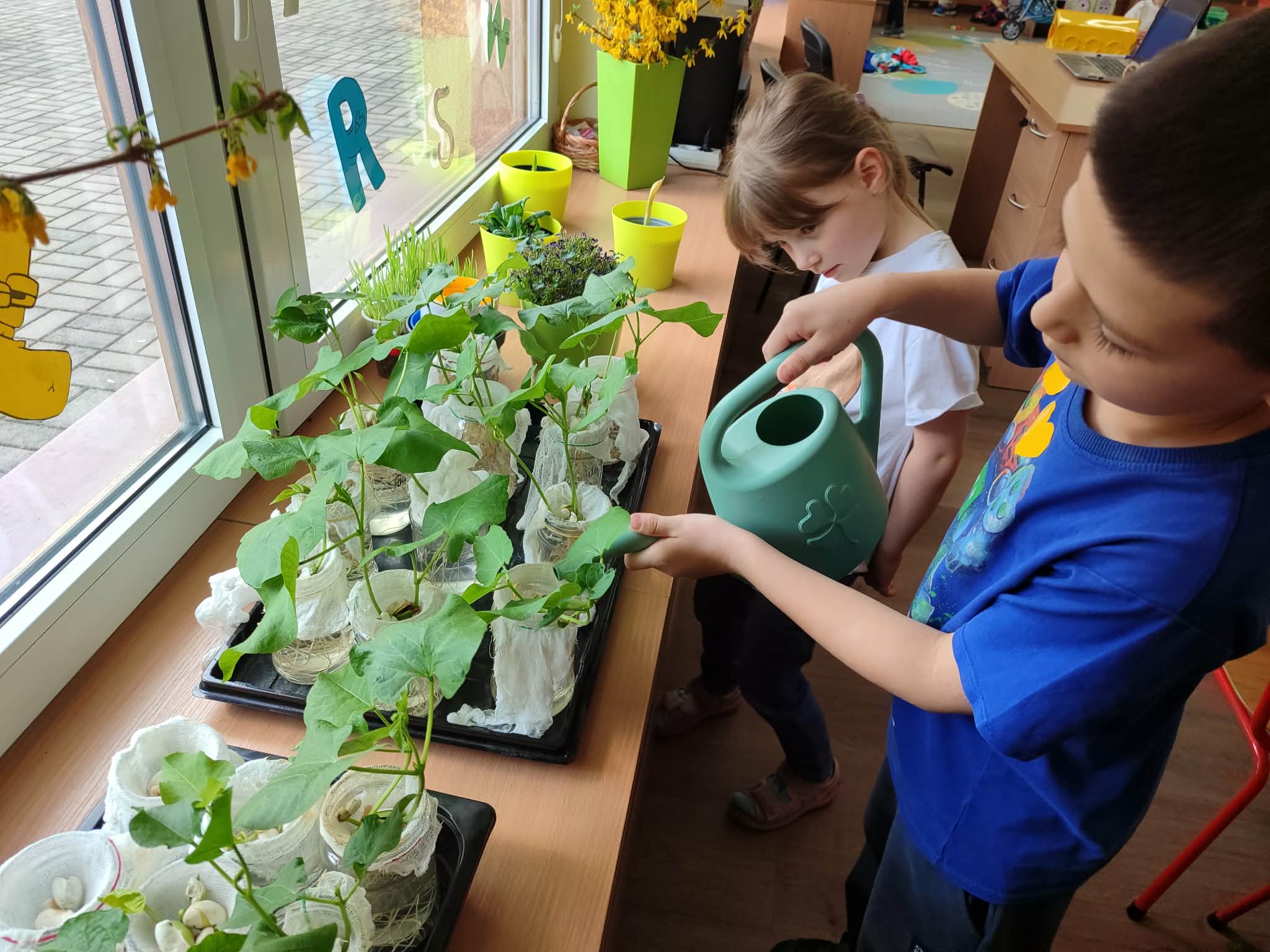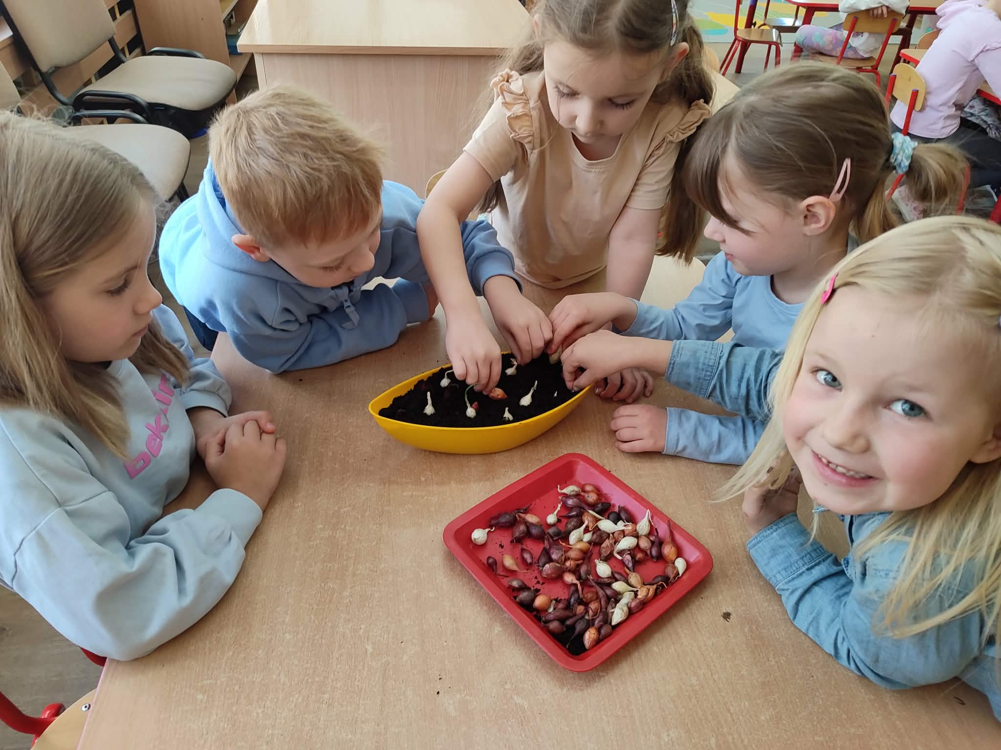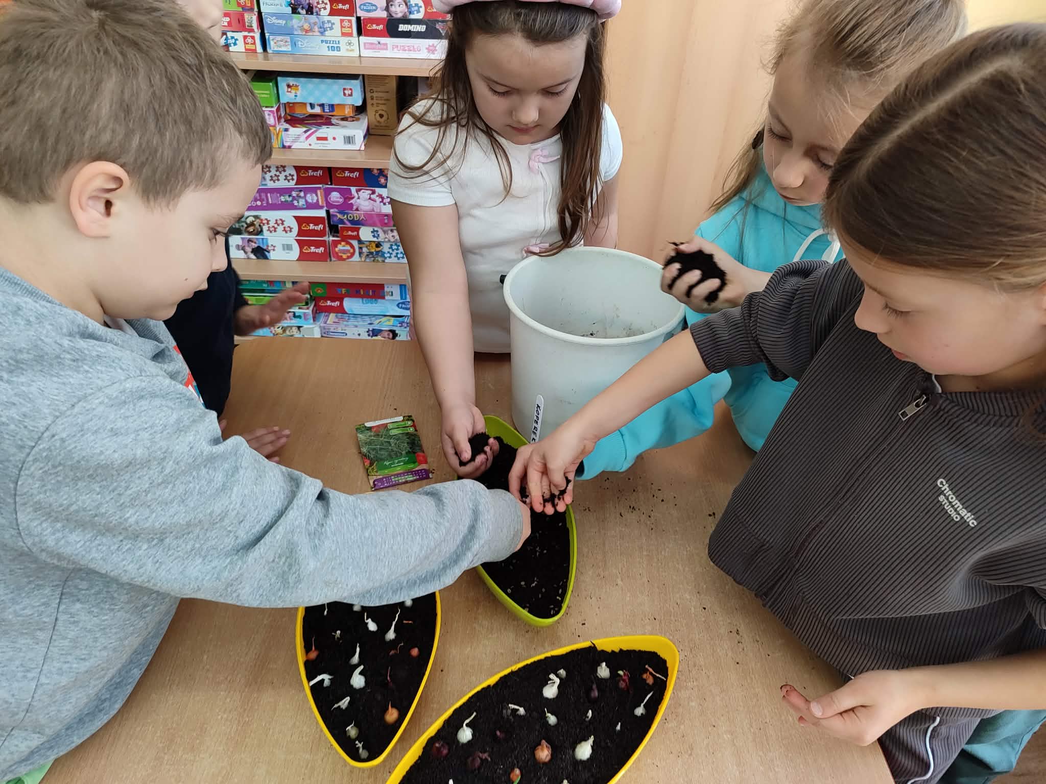 Przedszkolaki z grupy IV z zaangażowaniem wcielają się w rolę małych ogrodników. Samodzielnie pielęgnują swoje rozsady, sieją nasiona i sadzą rośliny, zakładając kolejny raz zielony kącik w swojej sali oraz ogródek na placu przedszkolnym.