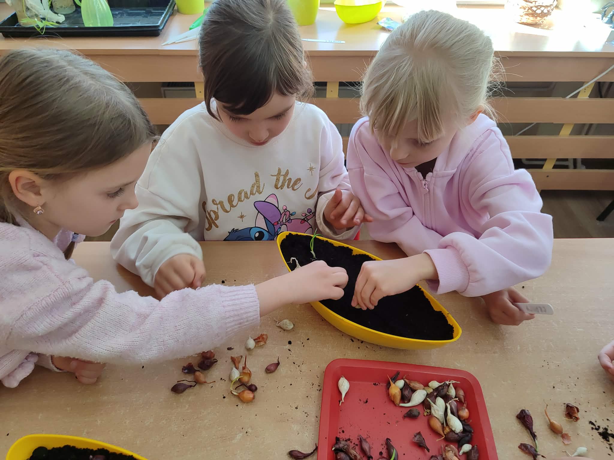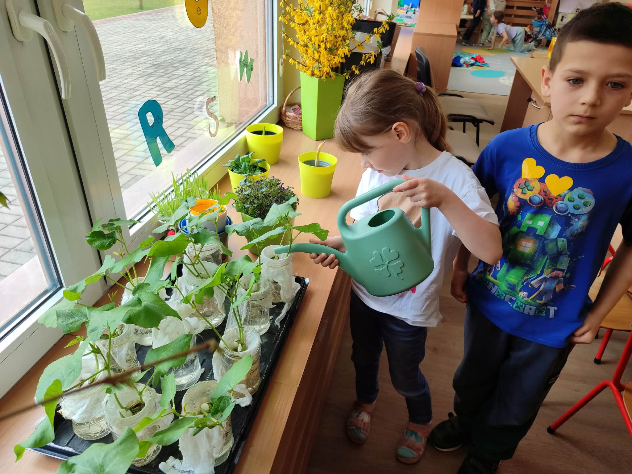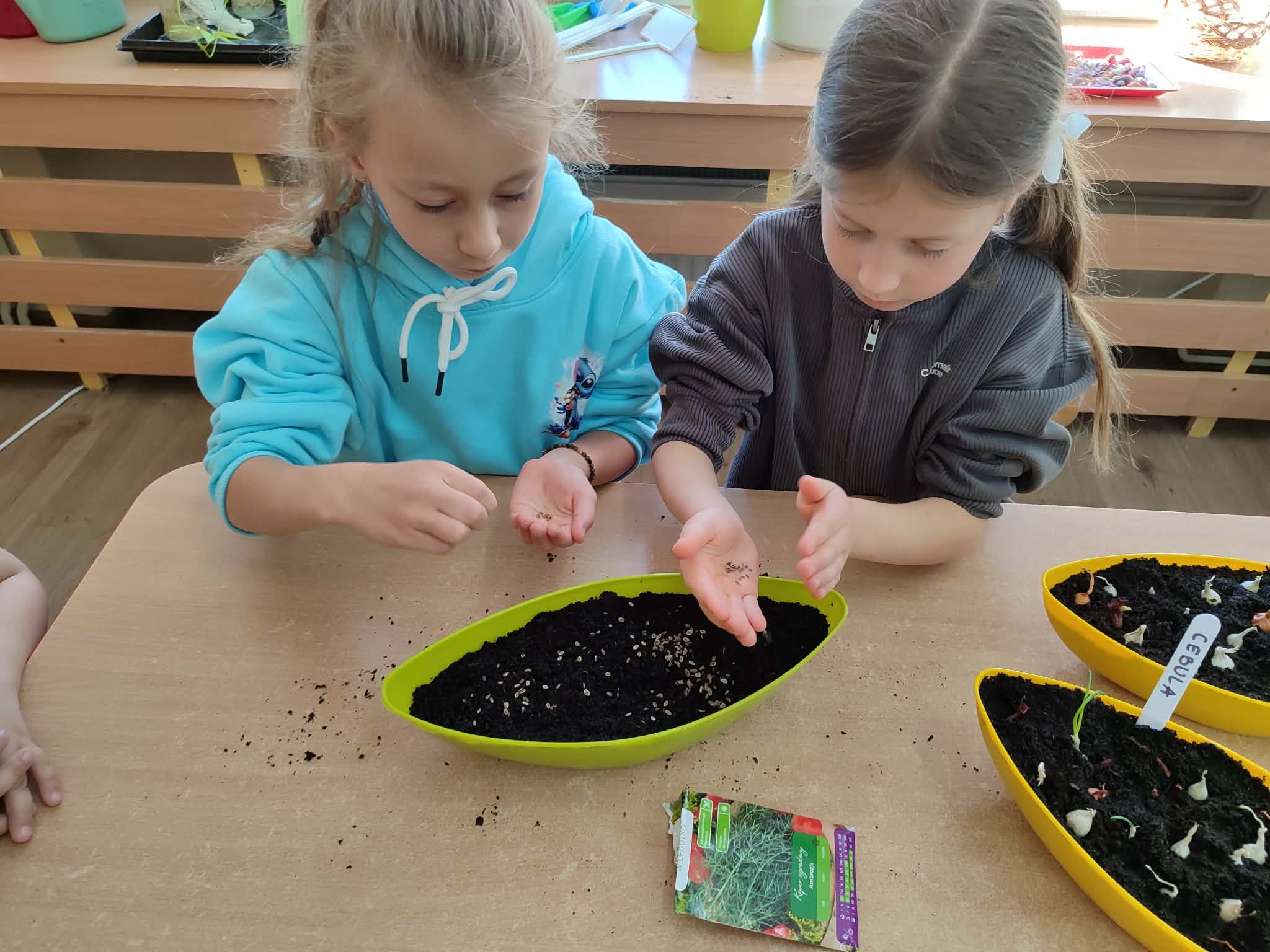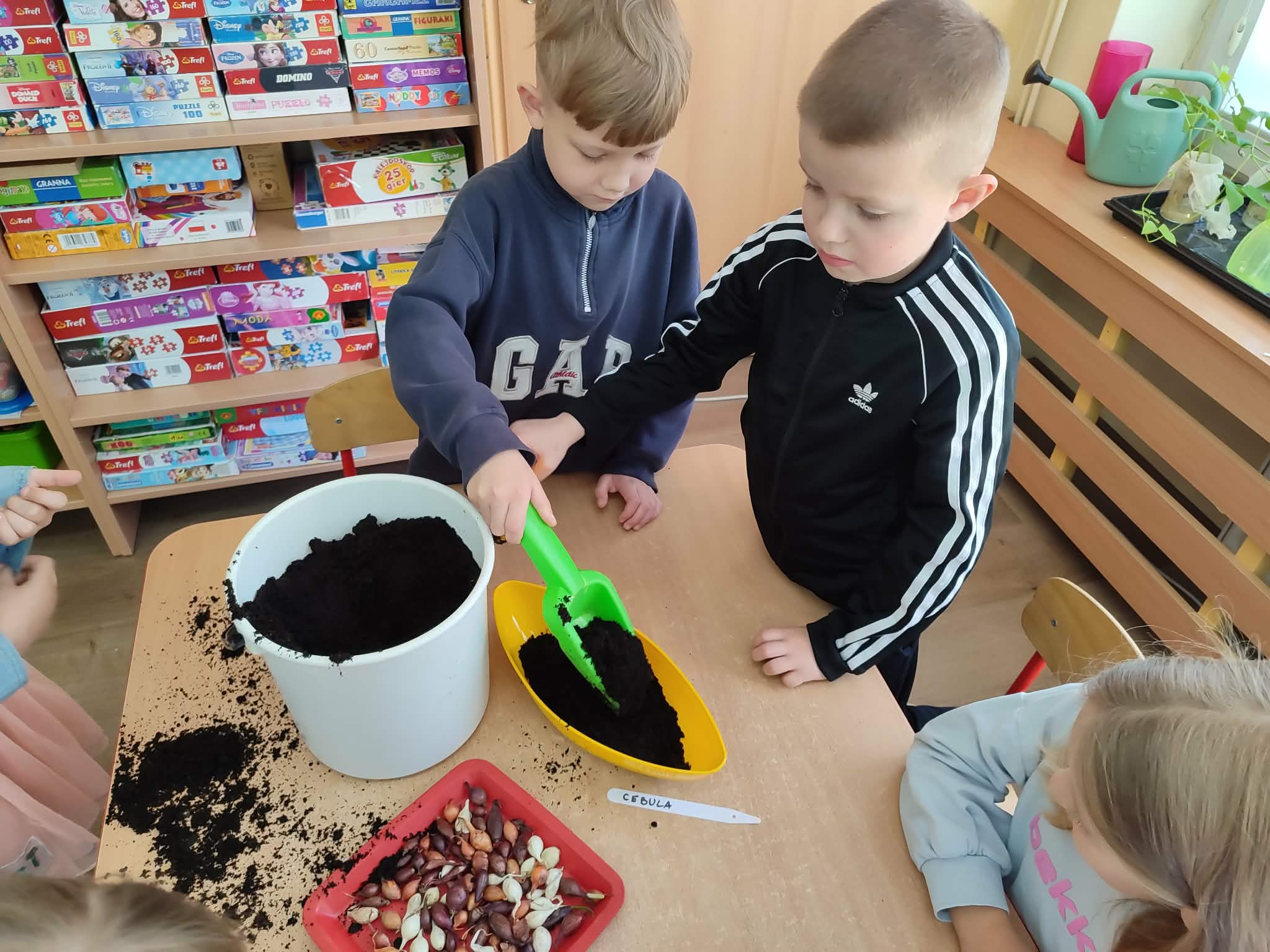 Przedszkolaki z grupy IV z zaangażowaniem wcielają się w rolę małych ogrodników. Samodzielnie pielęgnują swoje rozsady, sieją nasiona i sadzą rośliny, zakładając kolejny raz zielony kącik w swojej sali oraz ogródek na placu przedszkolnym.