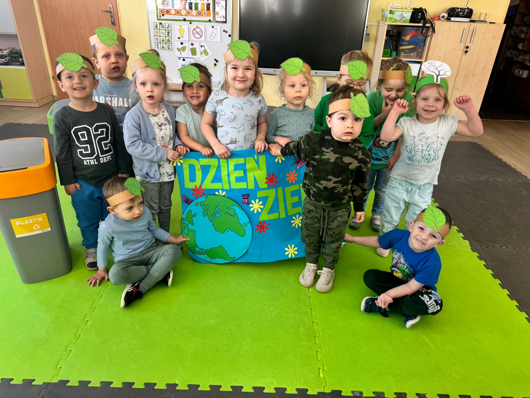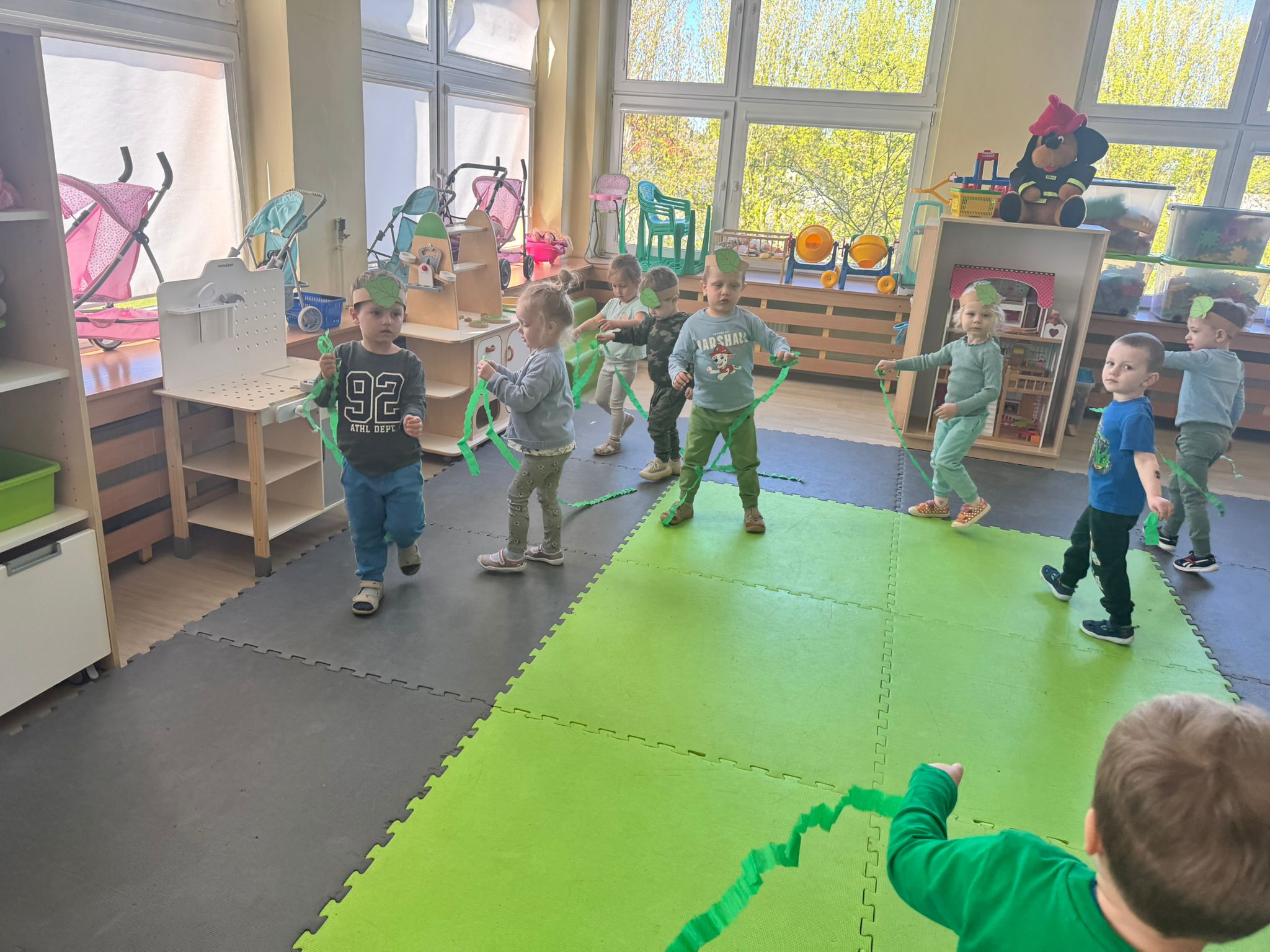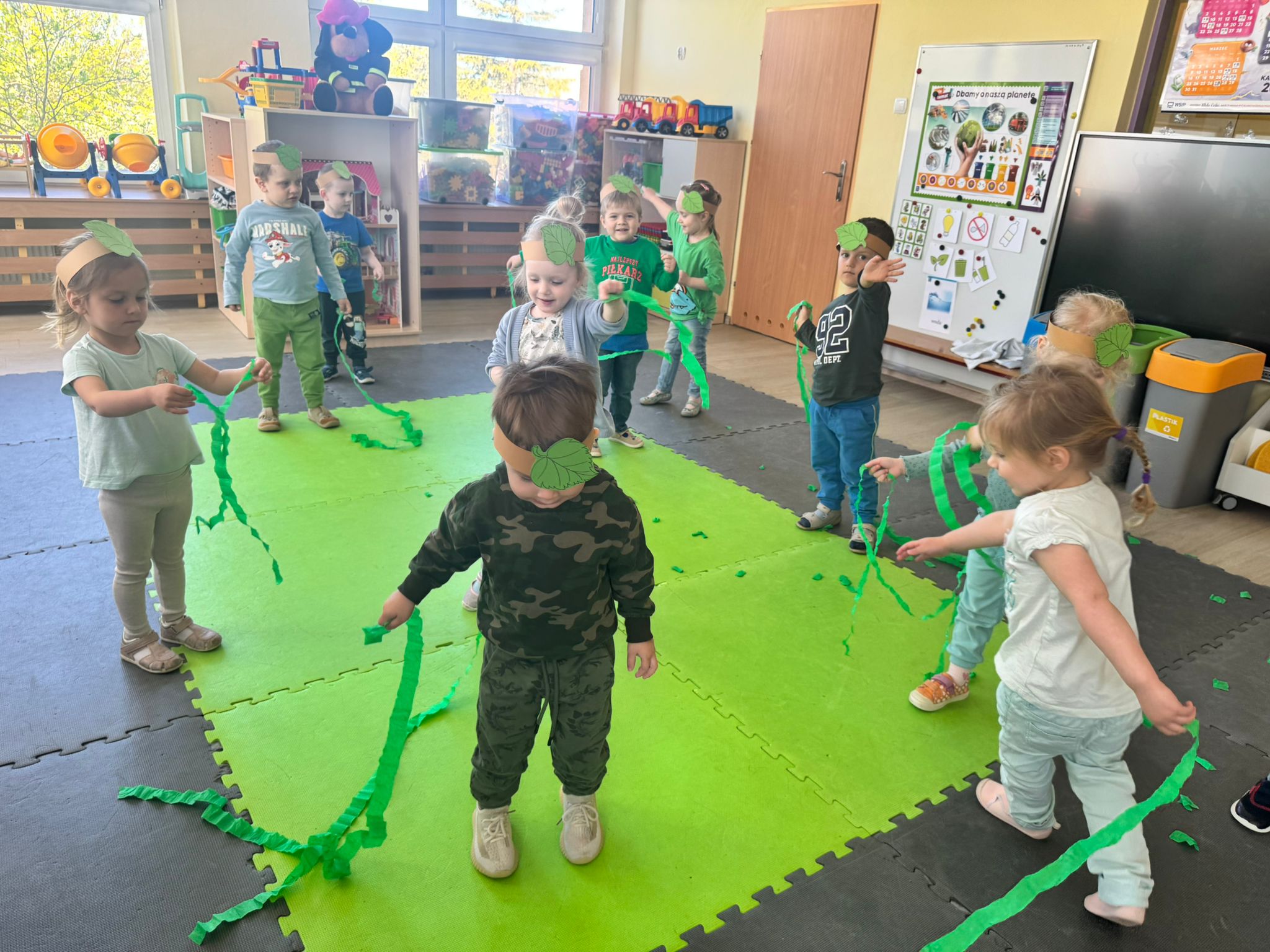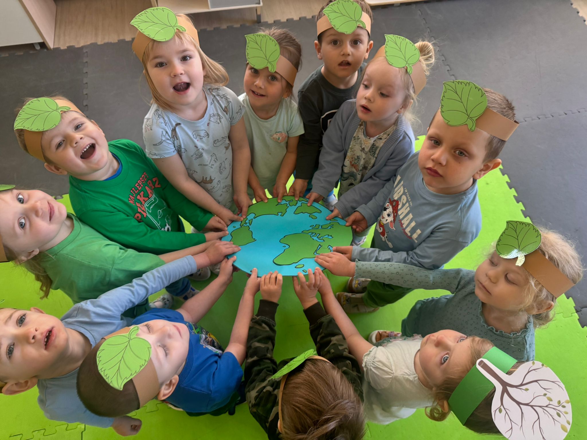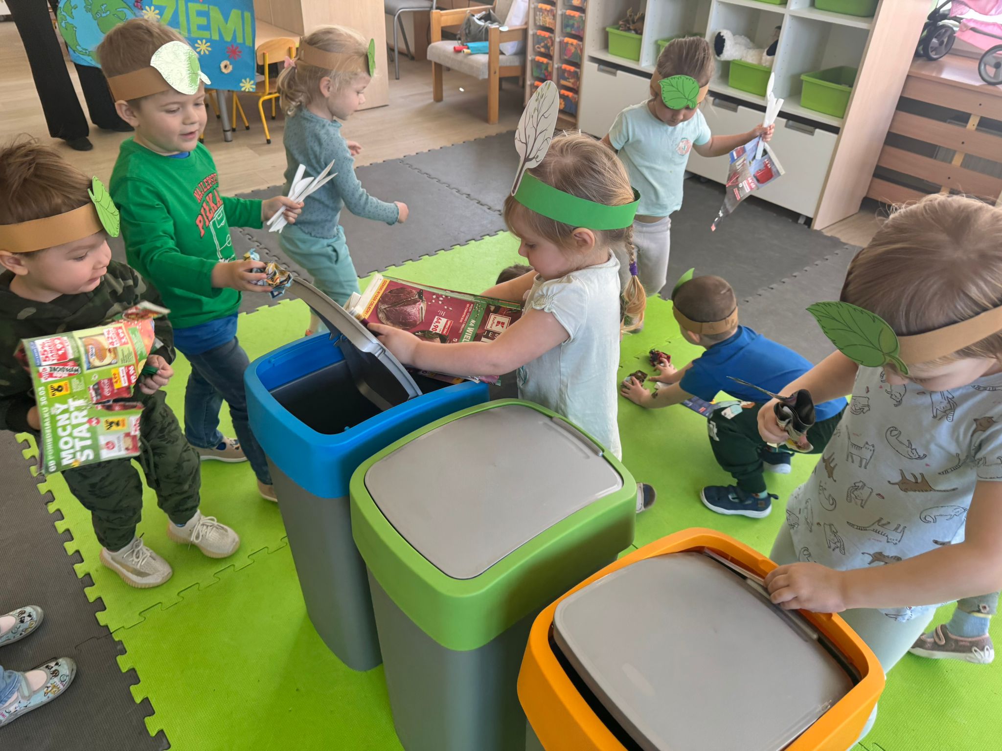 Maluszki świętowały Dzień Ziemi w radosnej i edukacyjnej atmosferze. Dzieci poznały podstawowe zasady dbania o naszą planetę oraz dowiedziały się, jak ważna jest ochrona środowiska. Uczyły się również segregować śmieci, rozpoznając odpowiednie kolory pojemników. Na zakończenie wspólnie zatańczyły „zielony taniec”, który był ich symboliczną obietnicą troski o przyrodę i dbania o Ziemię każdego dnia.