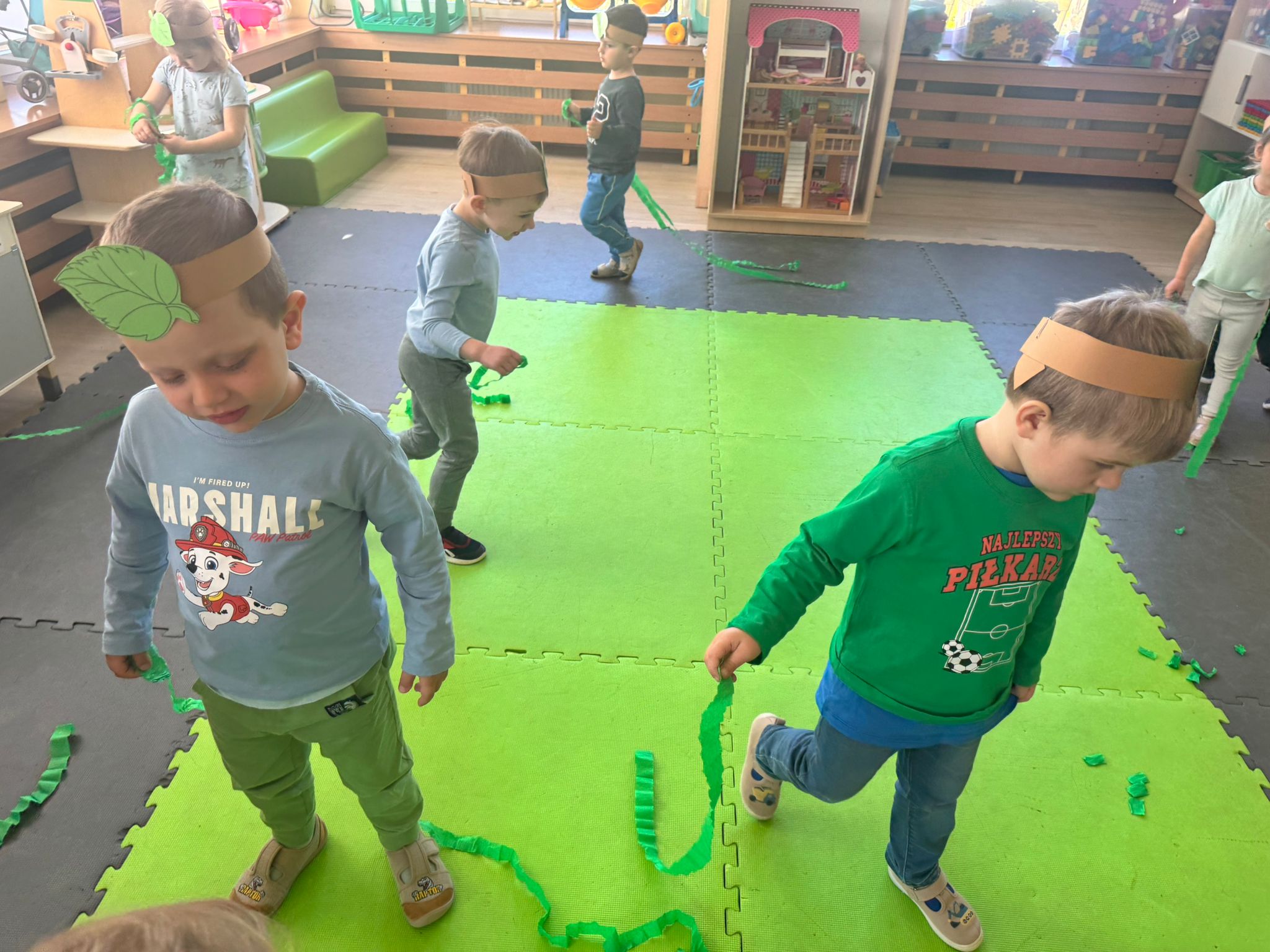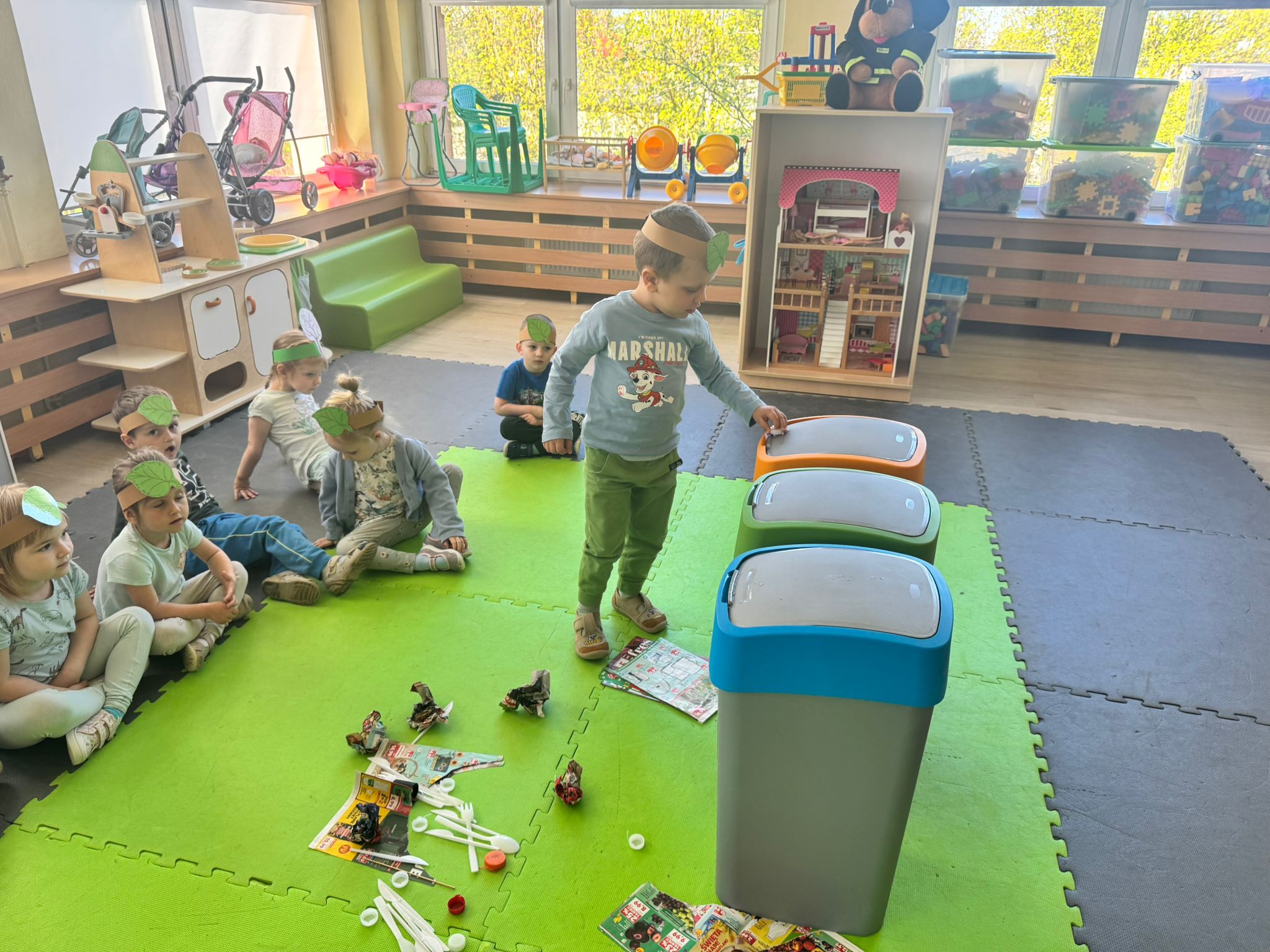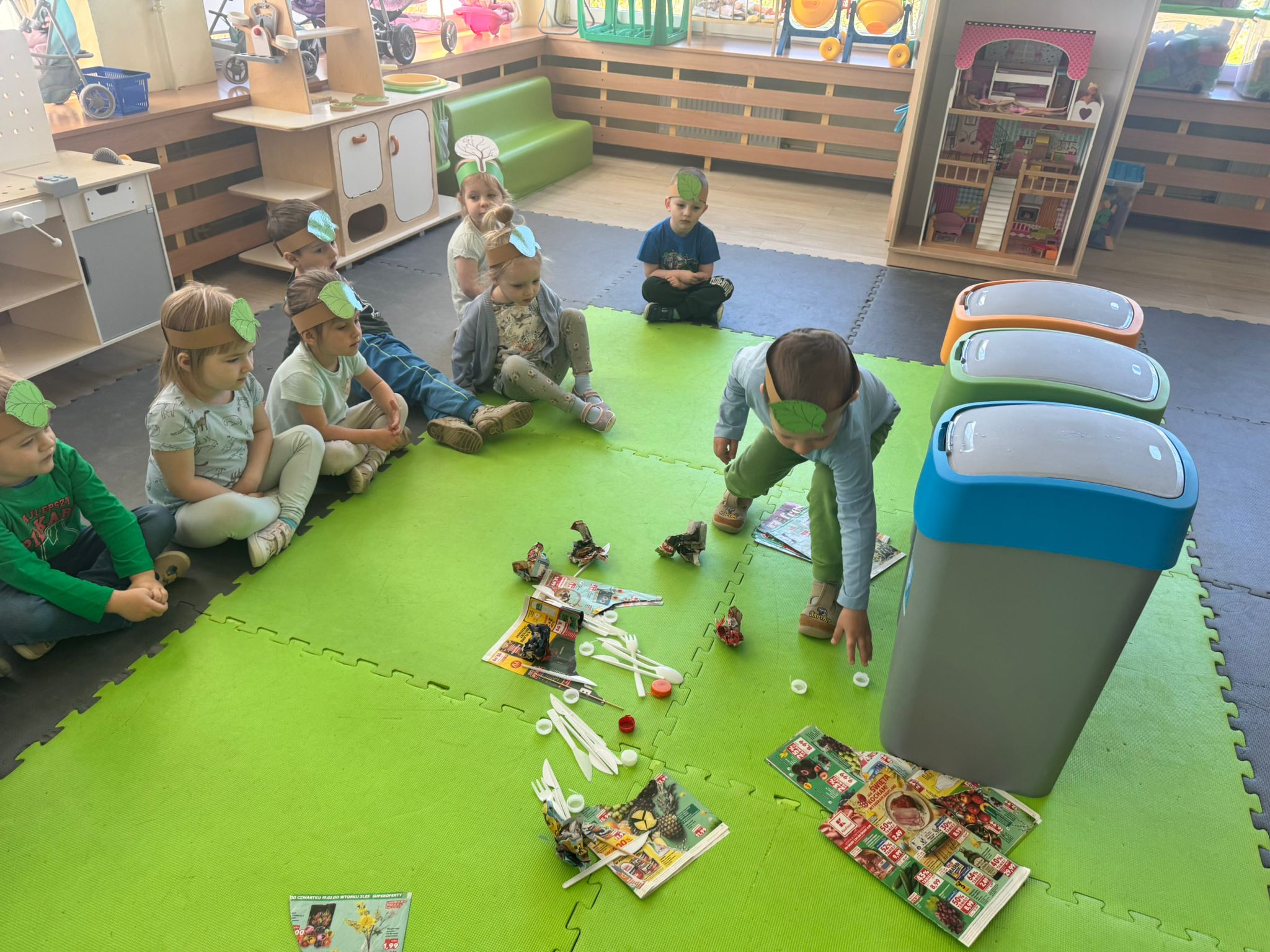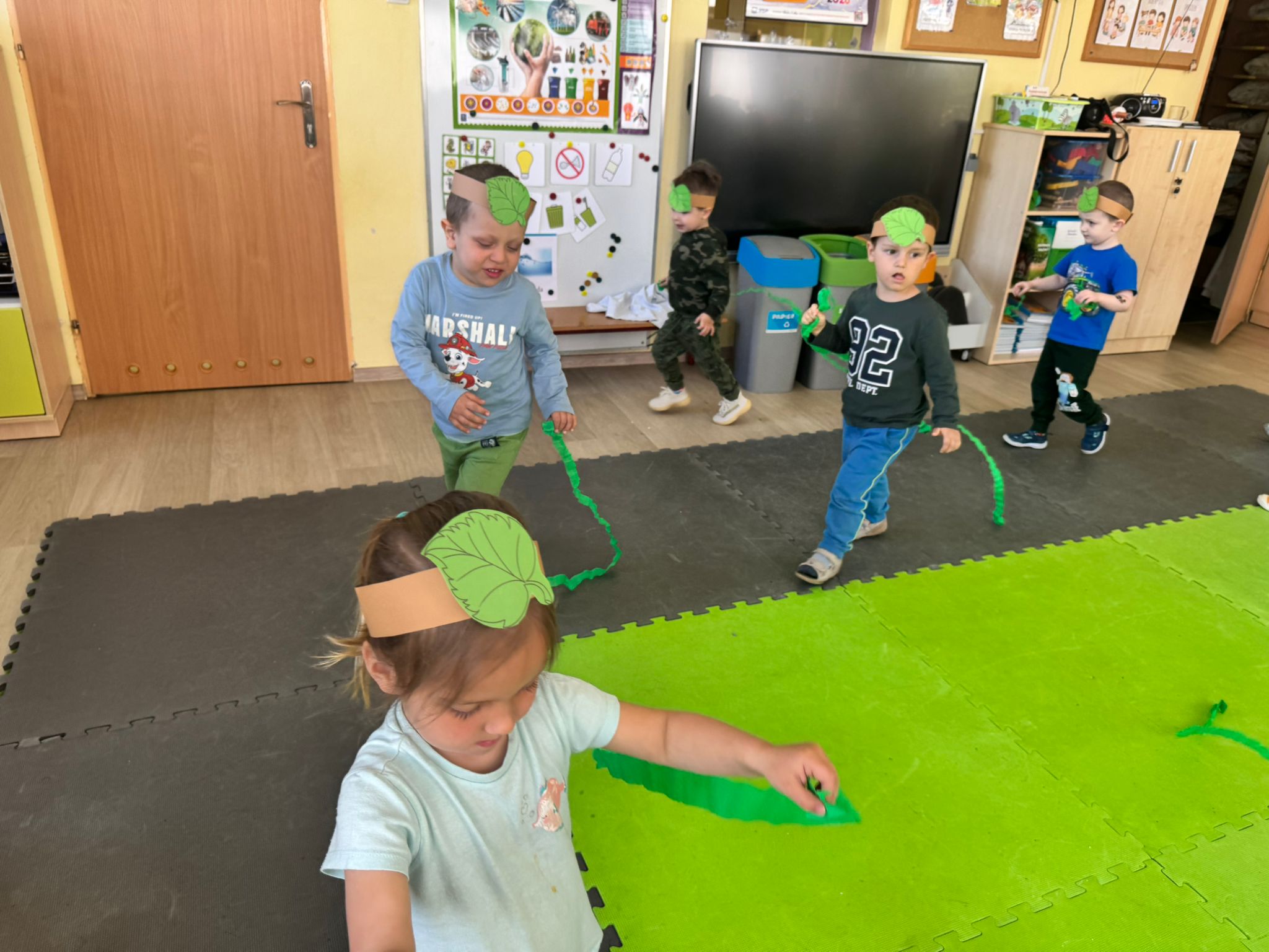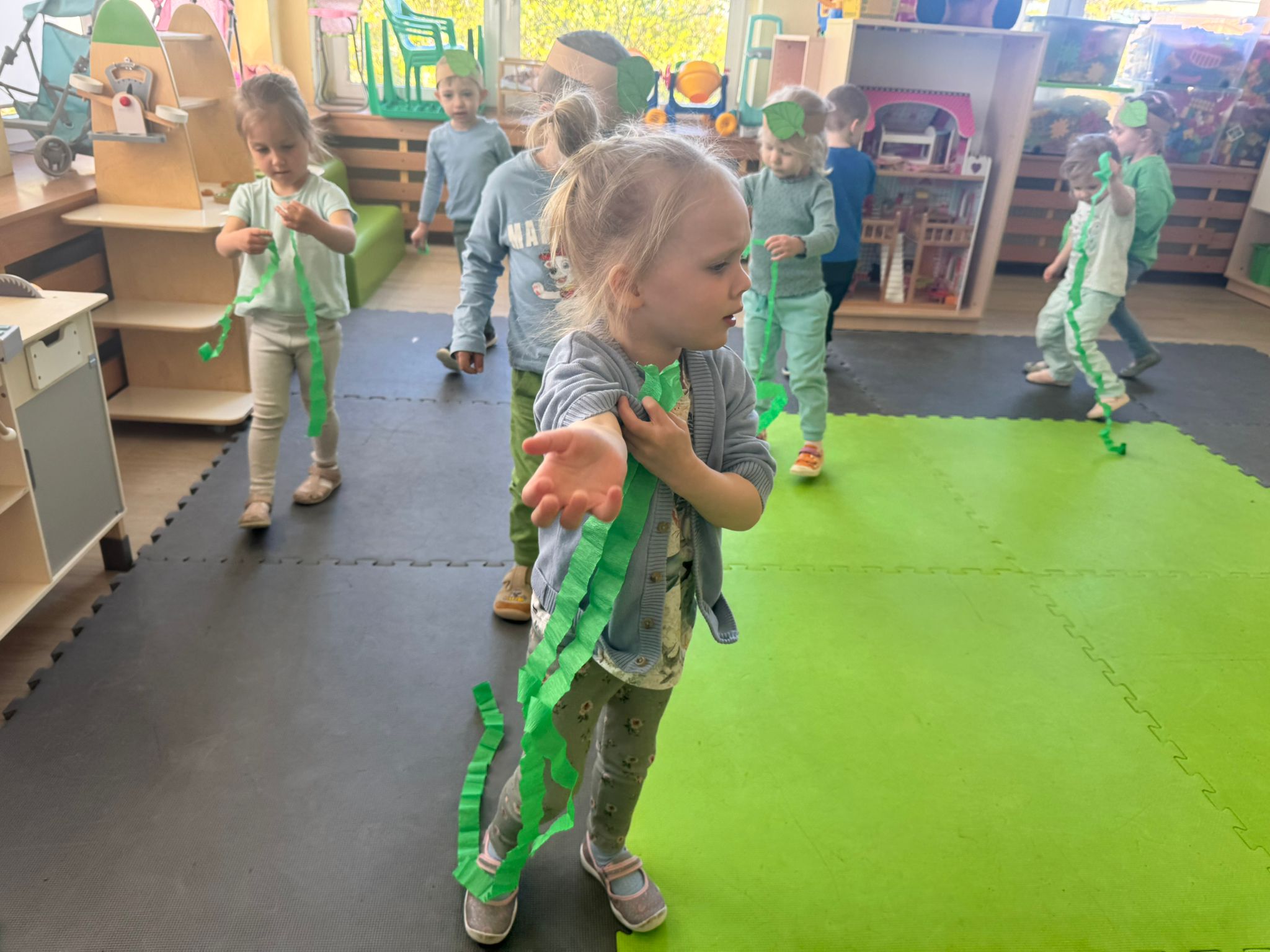 Maluszki świętowały Dzień Ziemi w radosnej i edukacyjnej atmosferze. Dzieci poznały podstawowe zasady dbania o naszą planetę oraz dowiedziały się, jak ważna jest ochrona środowiska. Uczyły się również segregować śmieci, rozpoznając odpowiednie kolory pojemników. Na zakończenie wspólnie zatańczyły „zielony taniec”, który był ich symboliczną obietnicą troski o przyrodę i dbania o Ziemię każdego dnia.