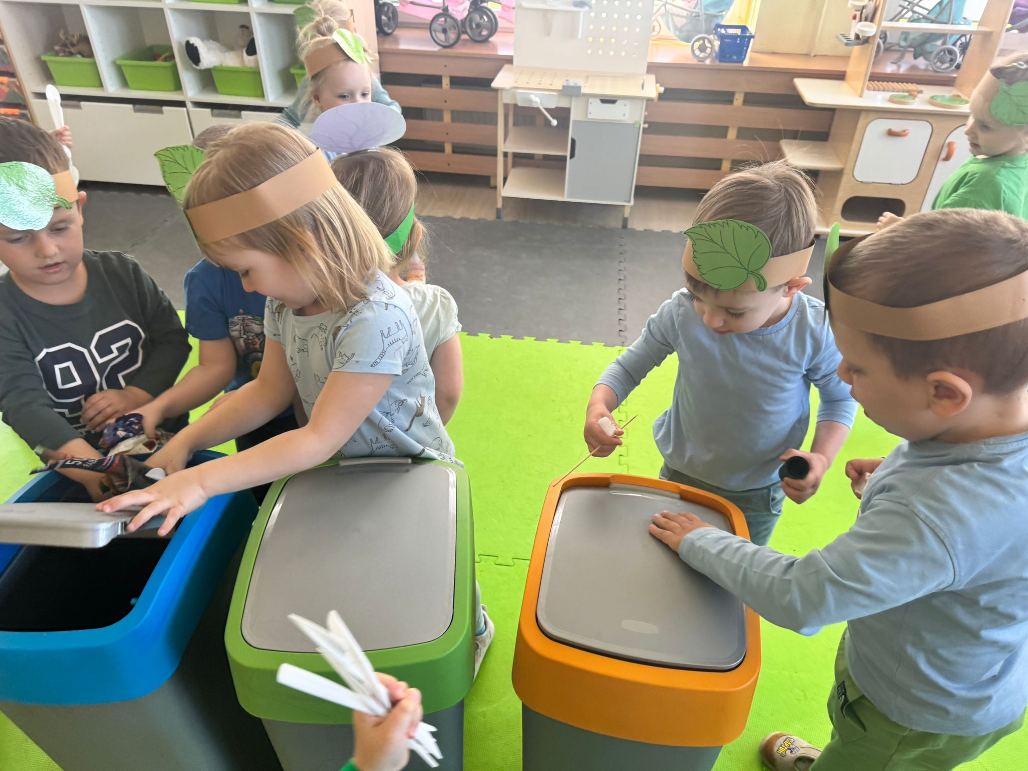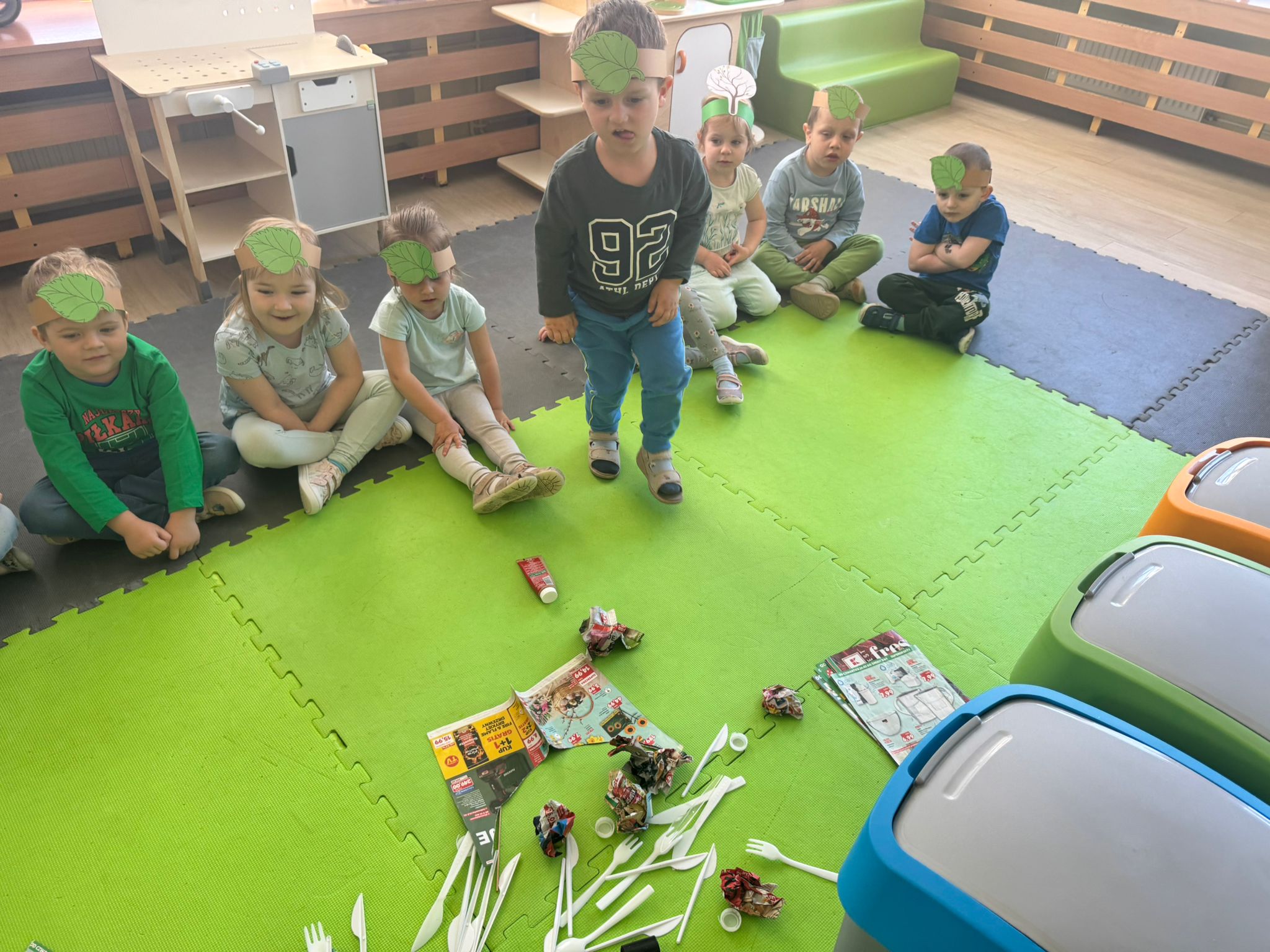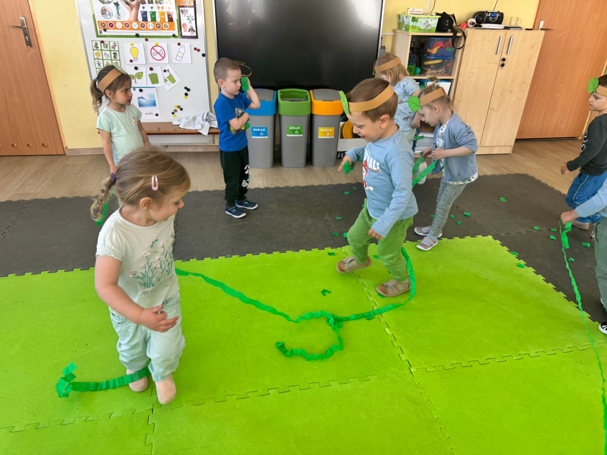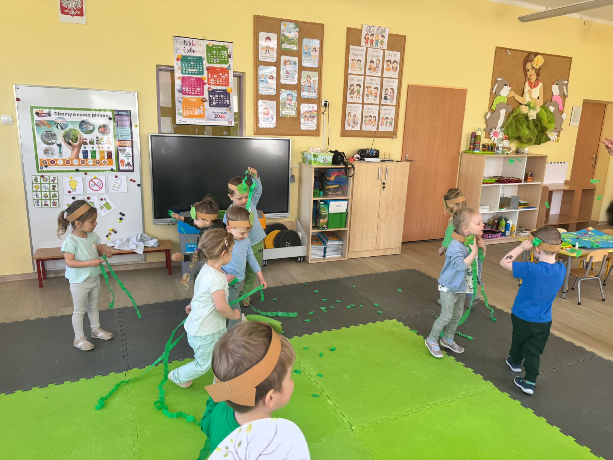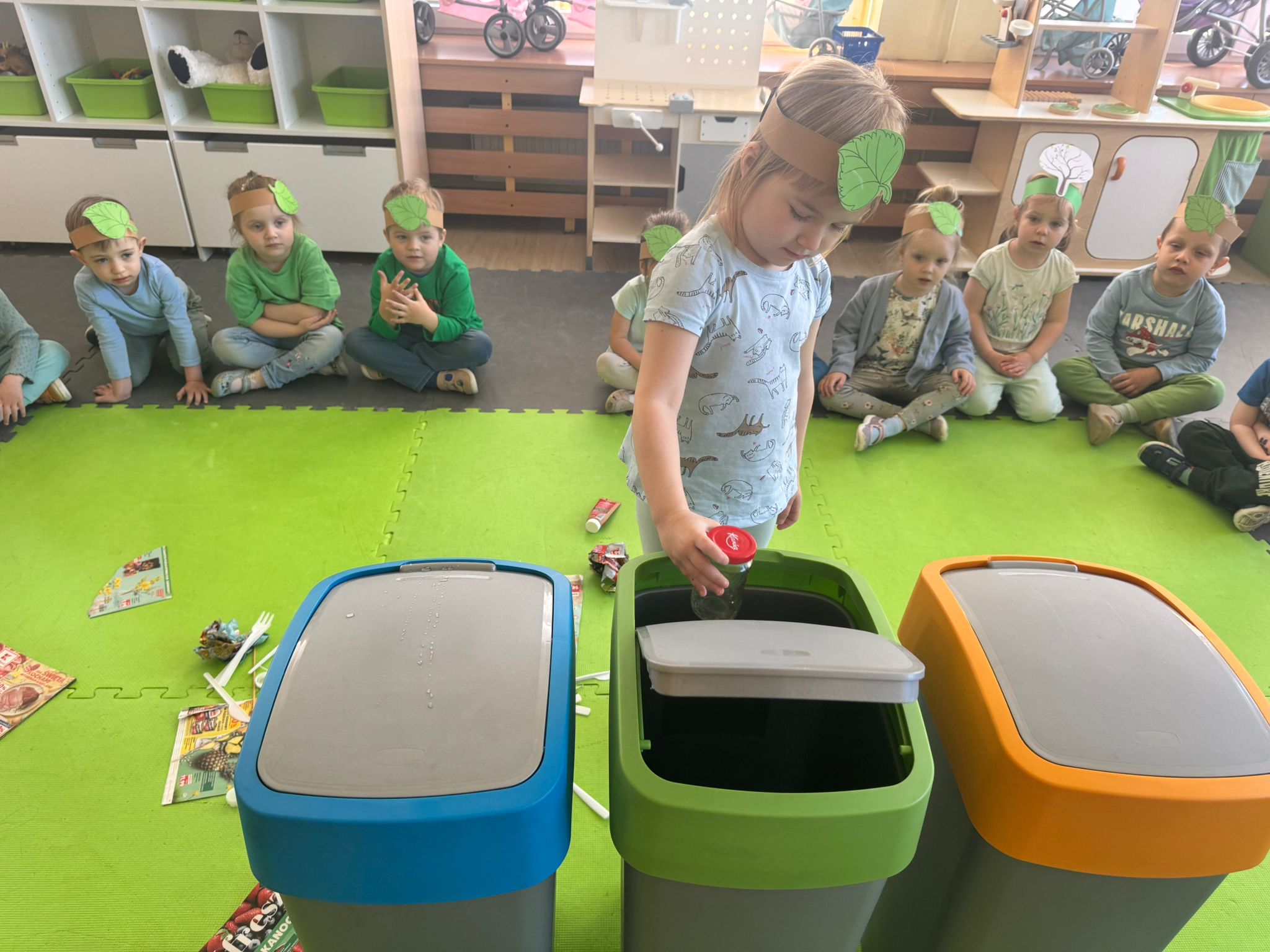 Maluszki świętowały Dzień Ziemi w radosnej i edukacyjnej atmosferze. Dzieci poznały podstawowe zasady dbania o naszą planetę oraz dowiedziały się, jak ważna jest ochrona środowiska. Uczyły się również segregować śmieci, rozpoznając odpowiednie kolory pojemników. Na zakończenie wspólnie zatańczyły „zielony taniec”, który był ich symboliczną obietnicą troski o przyrodę i dbania o Ziemię każdego dnia.