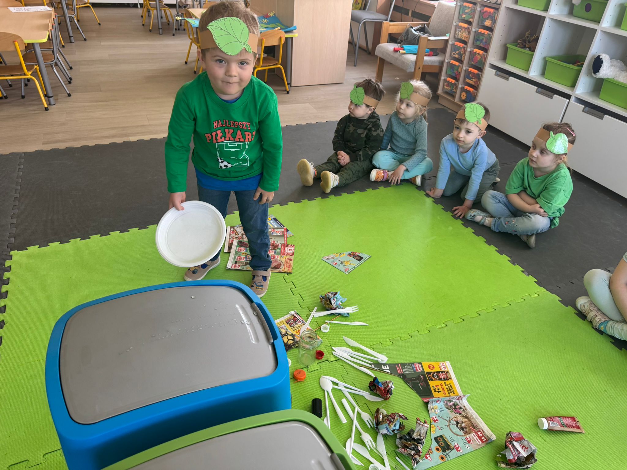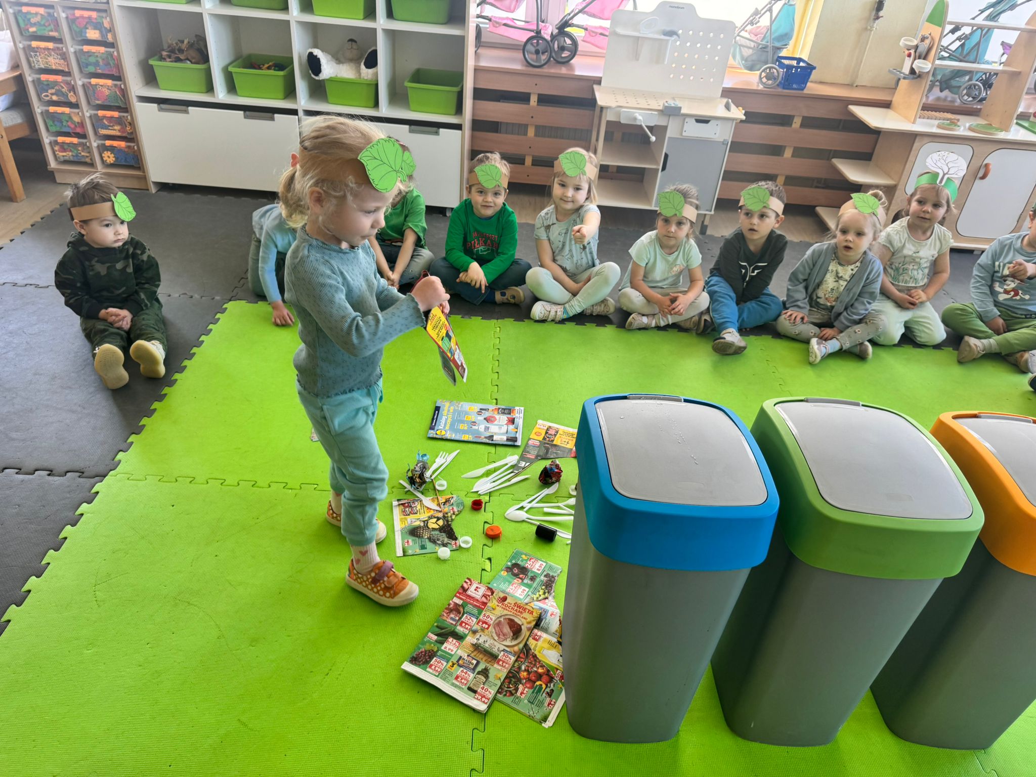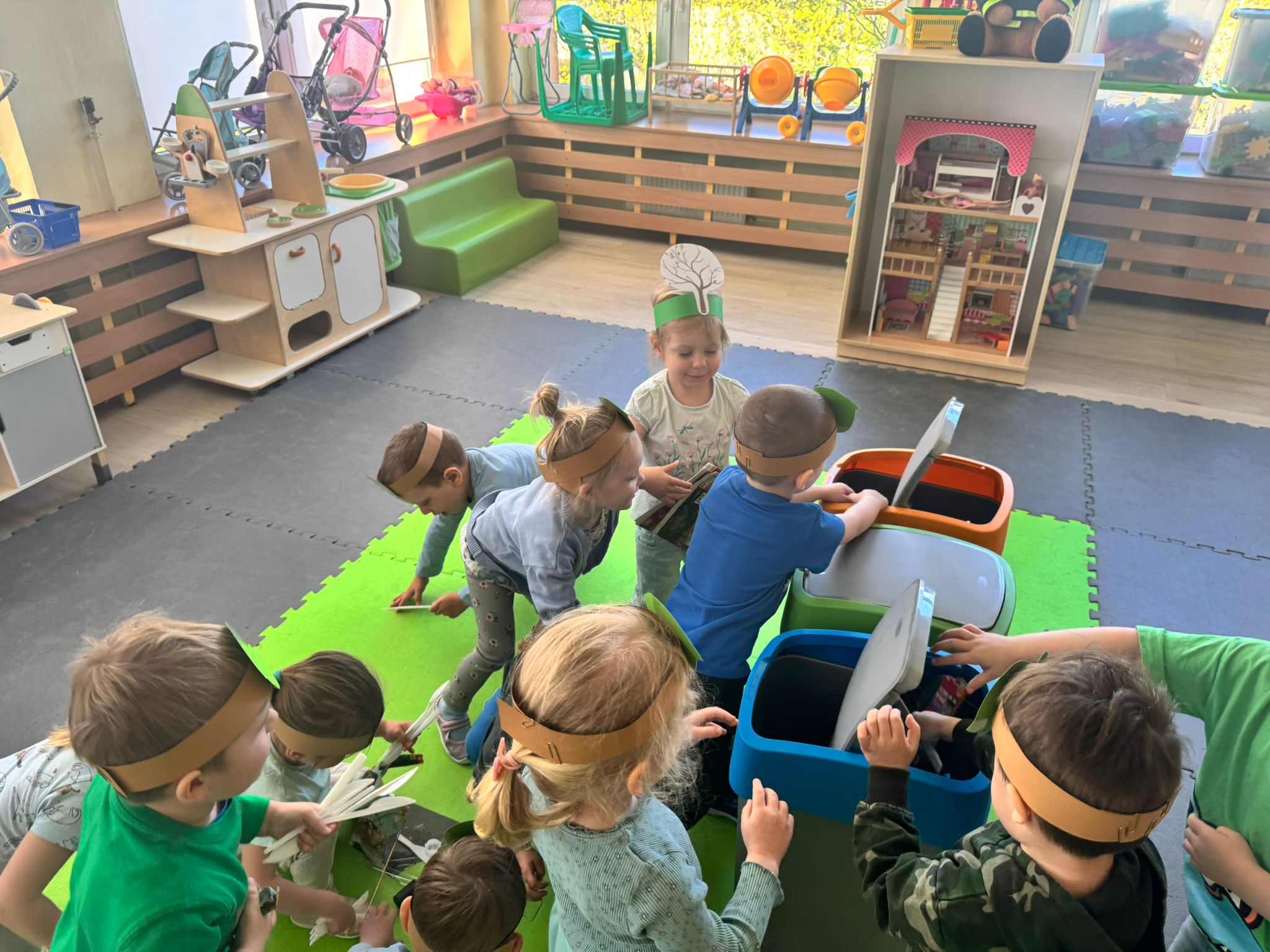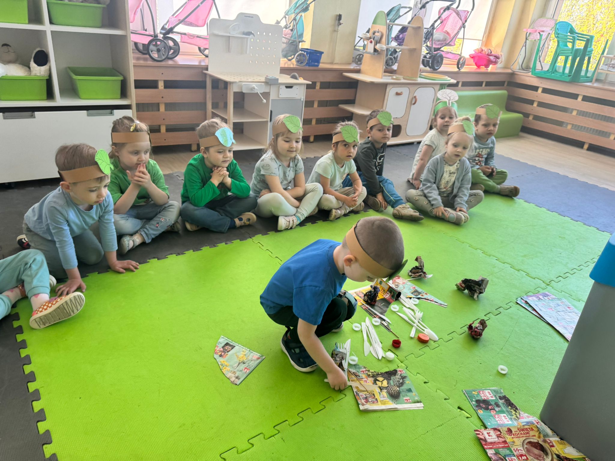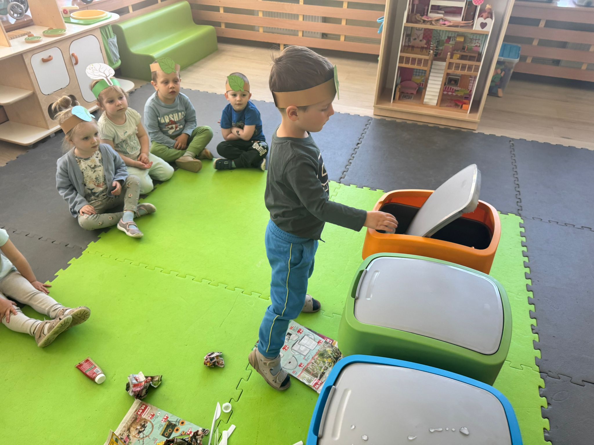 Maluszki świętowały Dzień Ziemi w radosnej i edukacyjnej atmosferze. Dzieci poznały podstawowe zasady dbania o naszą planetę oraz dowiedziały się, jak ważna jest ochrona środowiska. Uczyły się również segregować śmieci, rozpoznając odpowiednie kolory pojemników. Na zakończenie wspólnie zatańczyły „zielony taniec”, który był ich symboliczną obietnicą troski o przyrodę i dbania o Ziemię każdego dnia.
