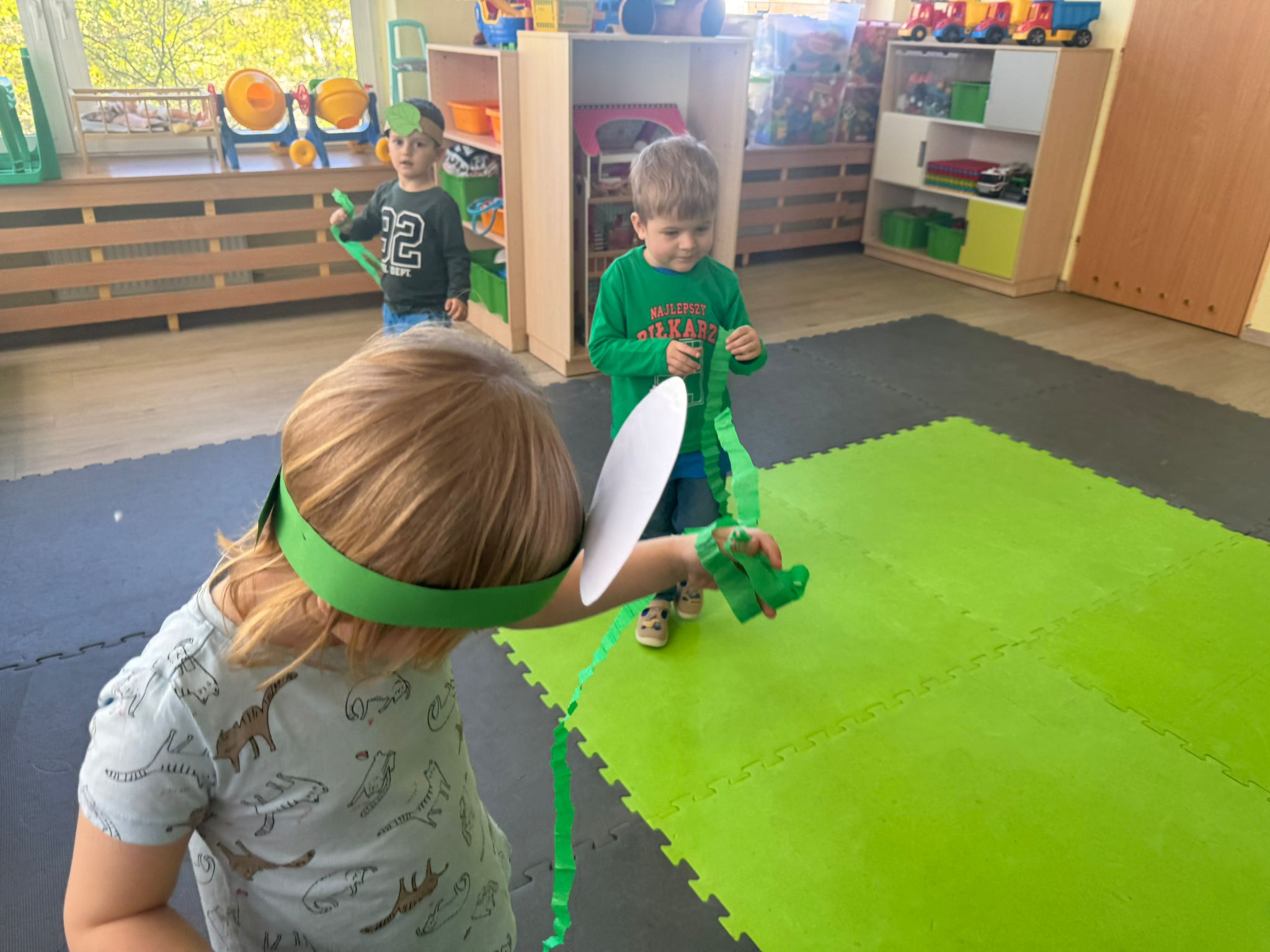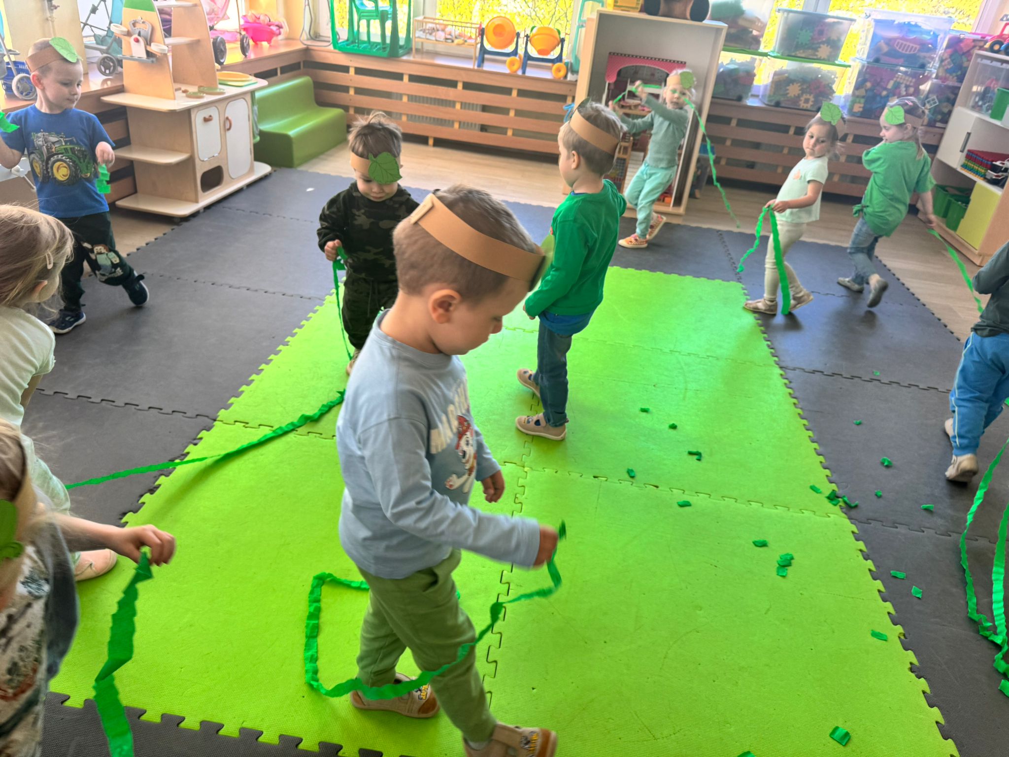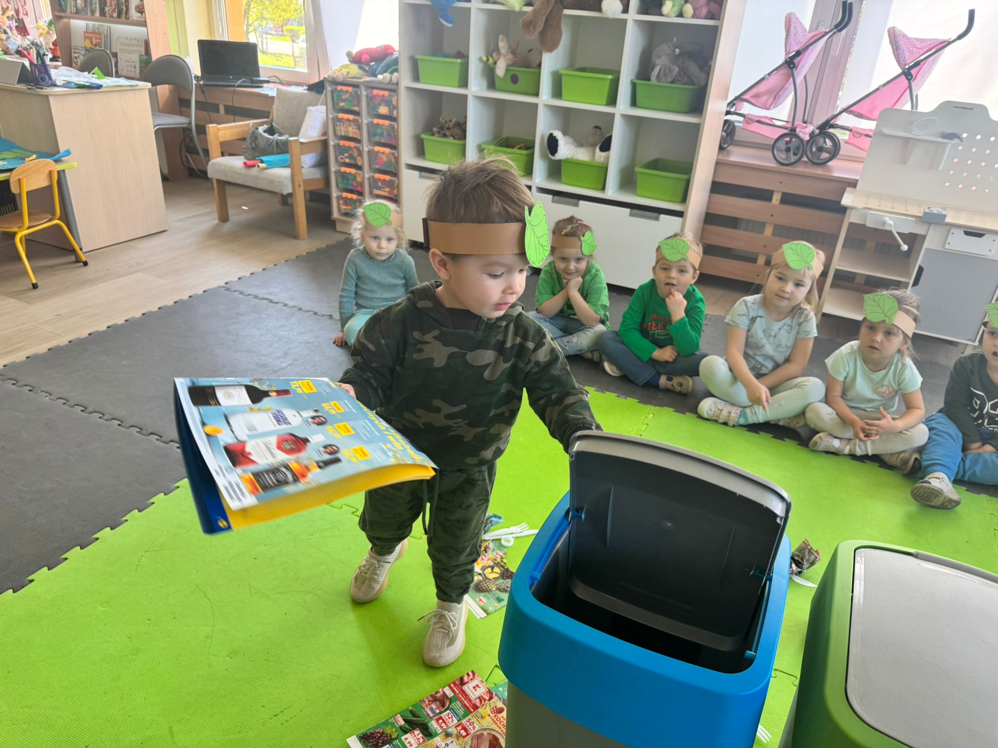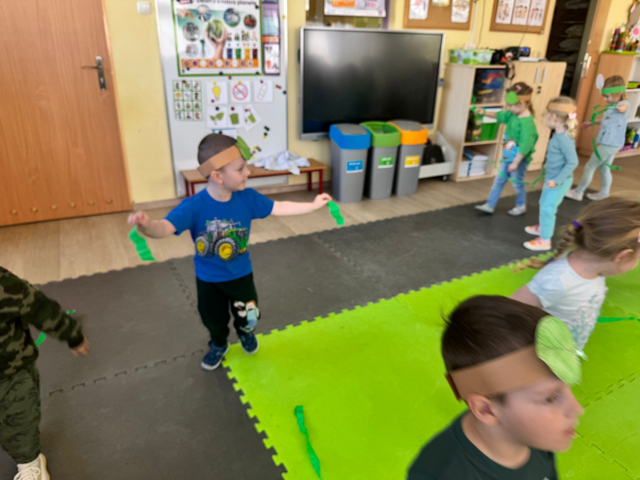 Maluszki świętowały Dzień Ziemi w radosnej i edukacyjnej atmosferze. Dzieci poznały podstawowe zasady dbania o naszą planetę oraz dowiedziały się, jak ważna jest ochrona środowiska. Uczyły się również segregować śmieci, rozpoznając odpowiednie kolory pojemników. Na zakończenie wspólnie zatańczyły „zielony taniec”, który był ich symboliczną obietnicą troski o przyrodę i dbania o Ziemię każdego dnia.