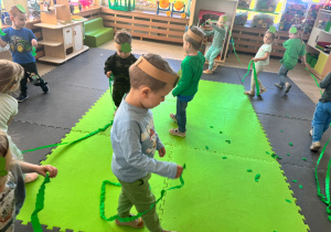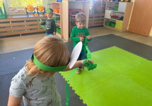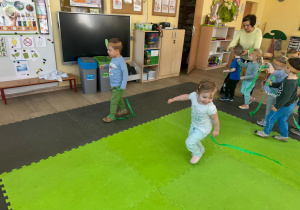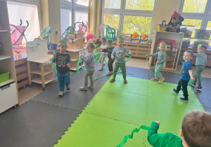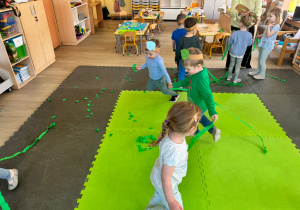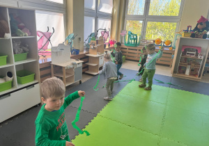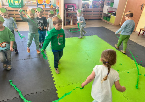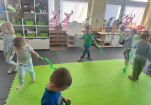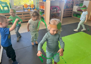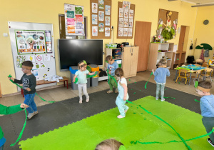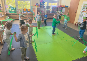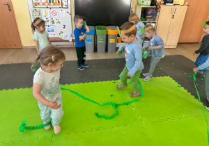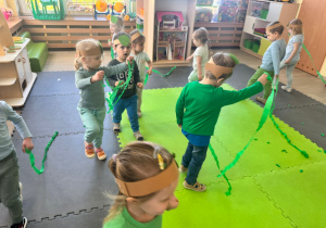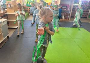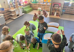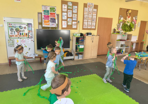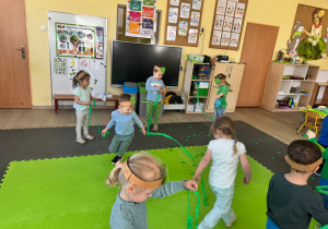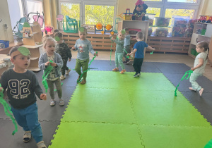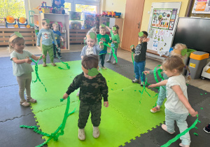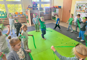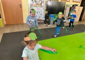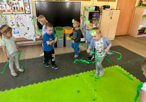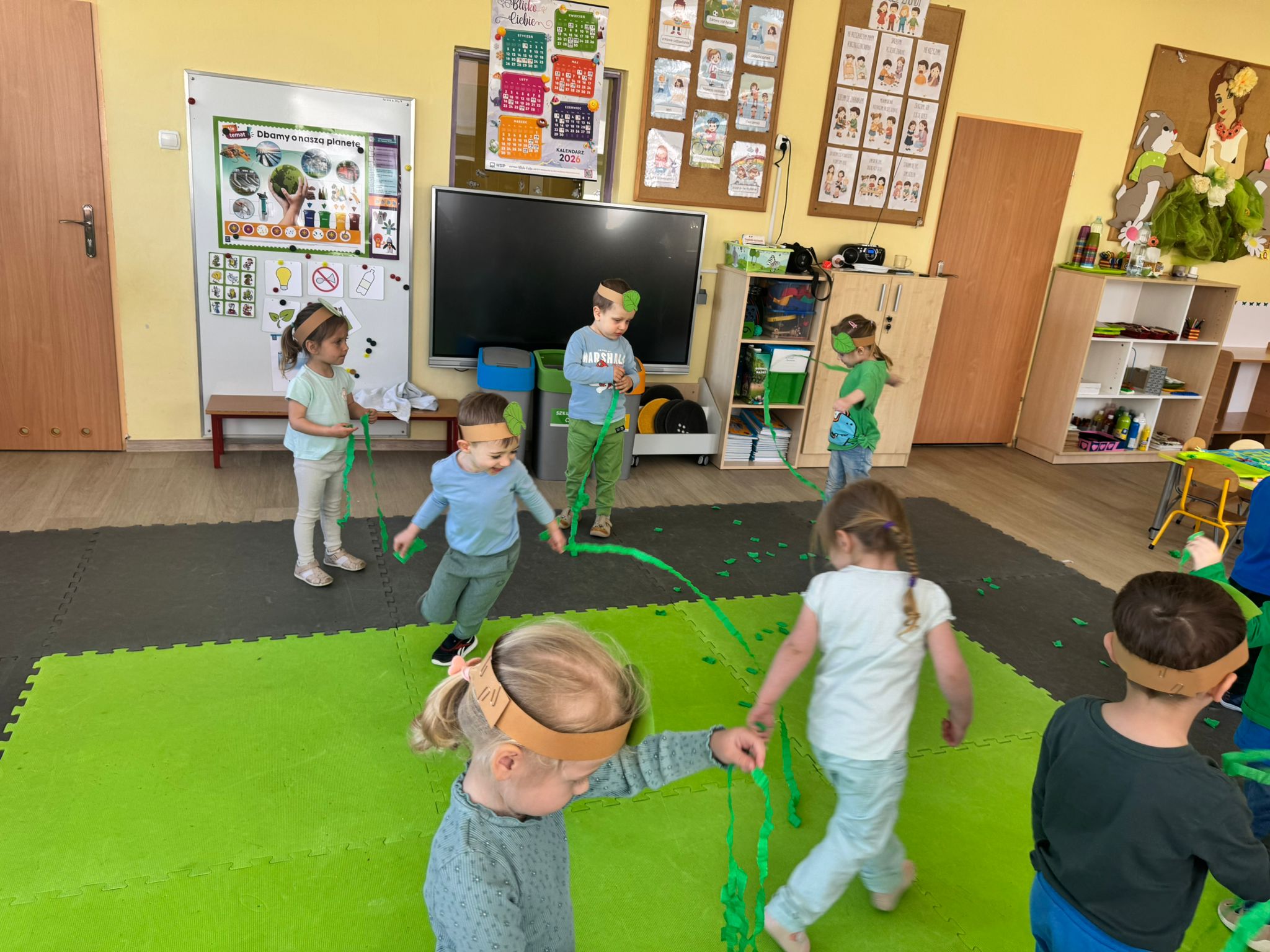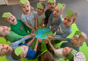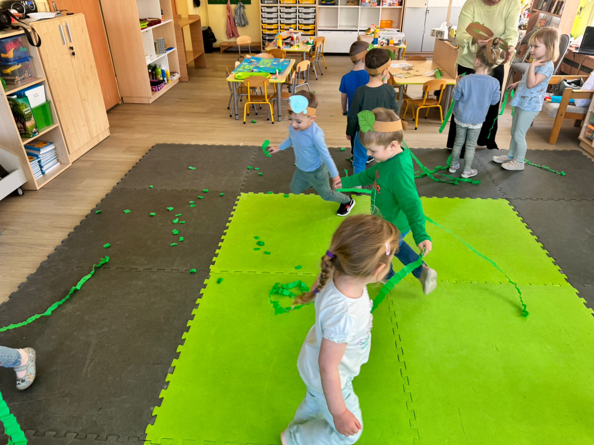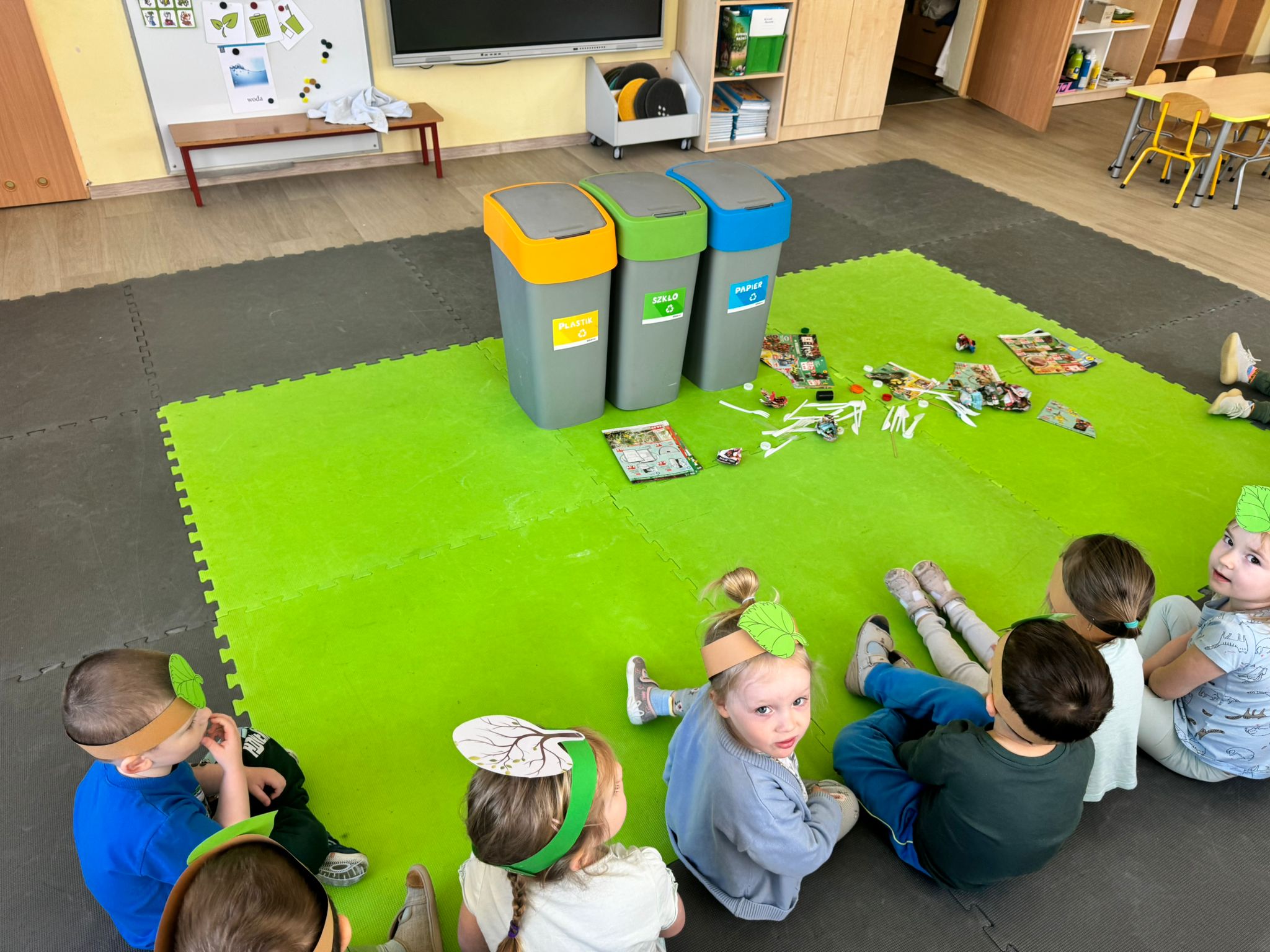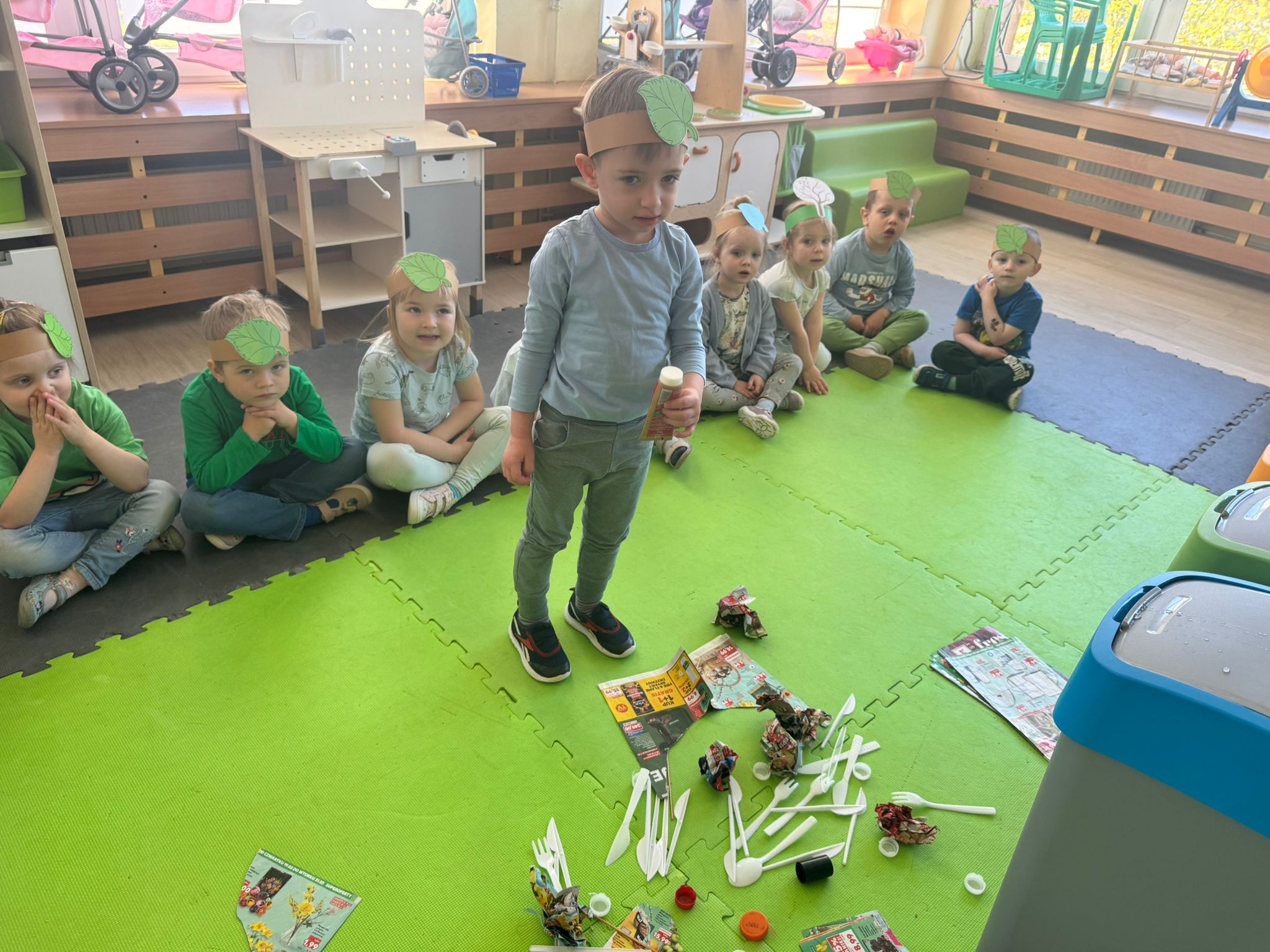 Maluszki świętowały Dzień Ziemi w radosnej i edukacyjnej atmosferze. Dzieci poznały podstawowe zasady dbania o naszą planetę oraz dowiedziały się, jak ważna jest ochrona środowiska. Uczyły się również segregować śmieci, rozpoznając odpowiednie kolory pojemników. Na zakończenie wspólnie zatańczyły „zielony taniec”, który był ich symboliczną obietnicą troski o przyrodę i dbania o Ziemię każdego dnia.