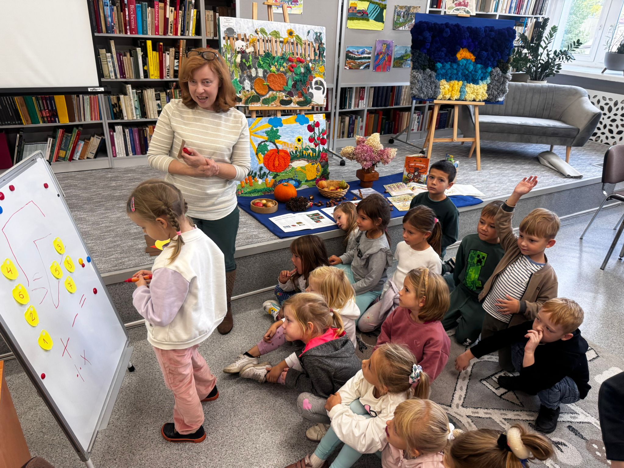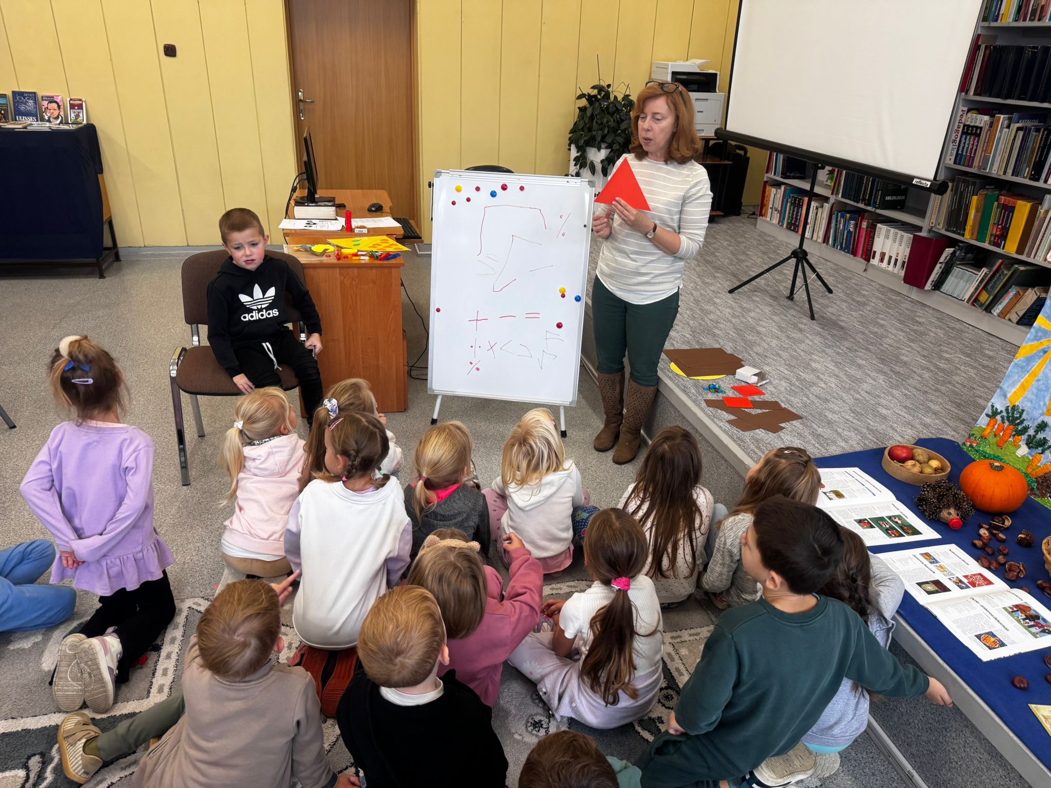 W bibliotece odbyły się zajęcia edukacyjne dla dzieci z elementami matematyki. Mali uczestnicy słuchali bajki matematycznej, rozwiązywali zagadki i bawili się liczbami. Spotkanie pokazało, że nauka matematyki może być świetną zabawą i inspiracją do dalszego odkrywania książek.