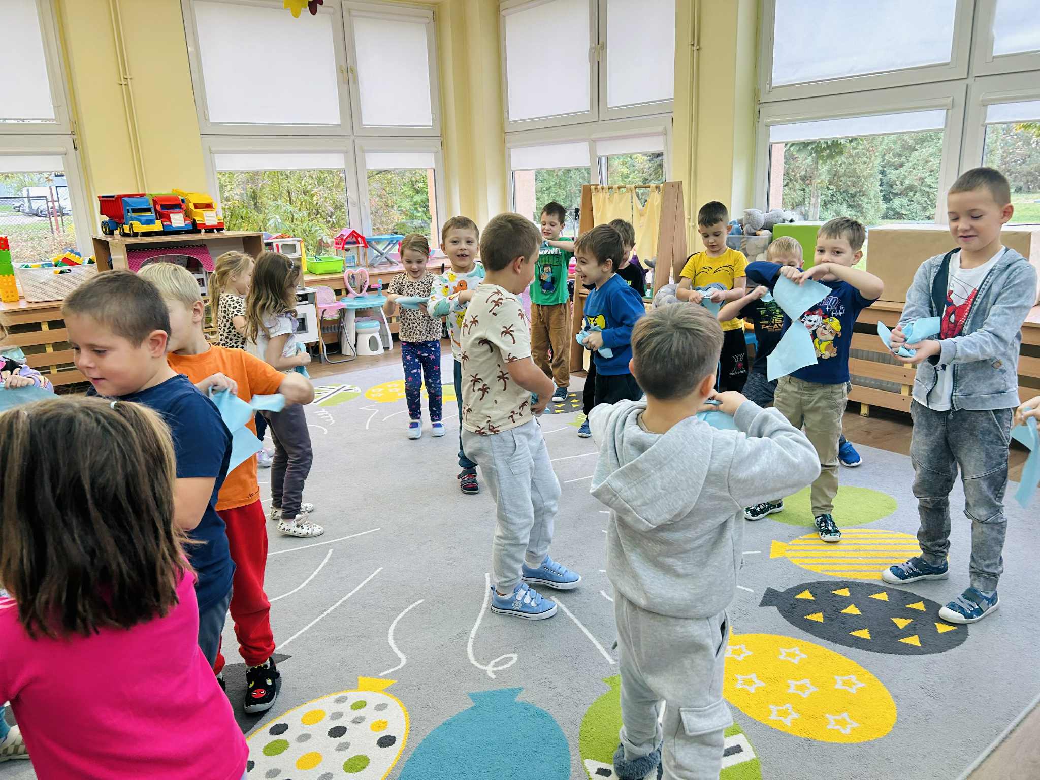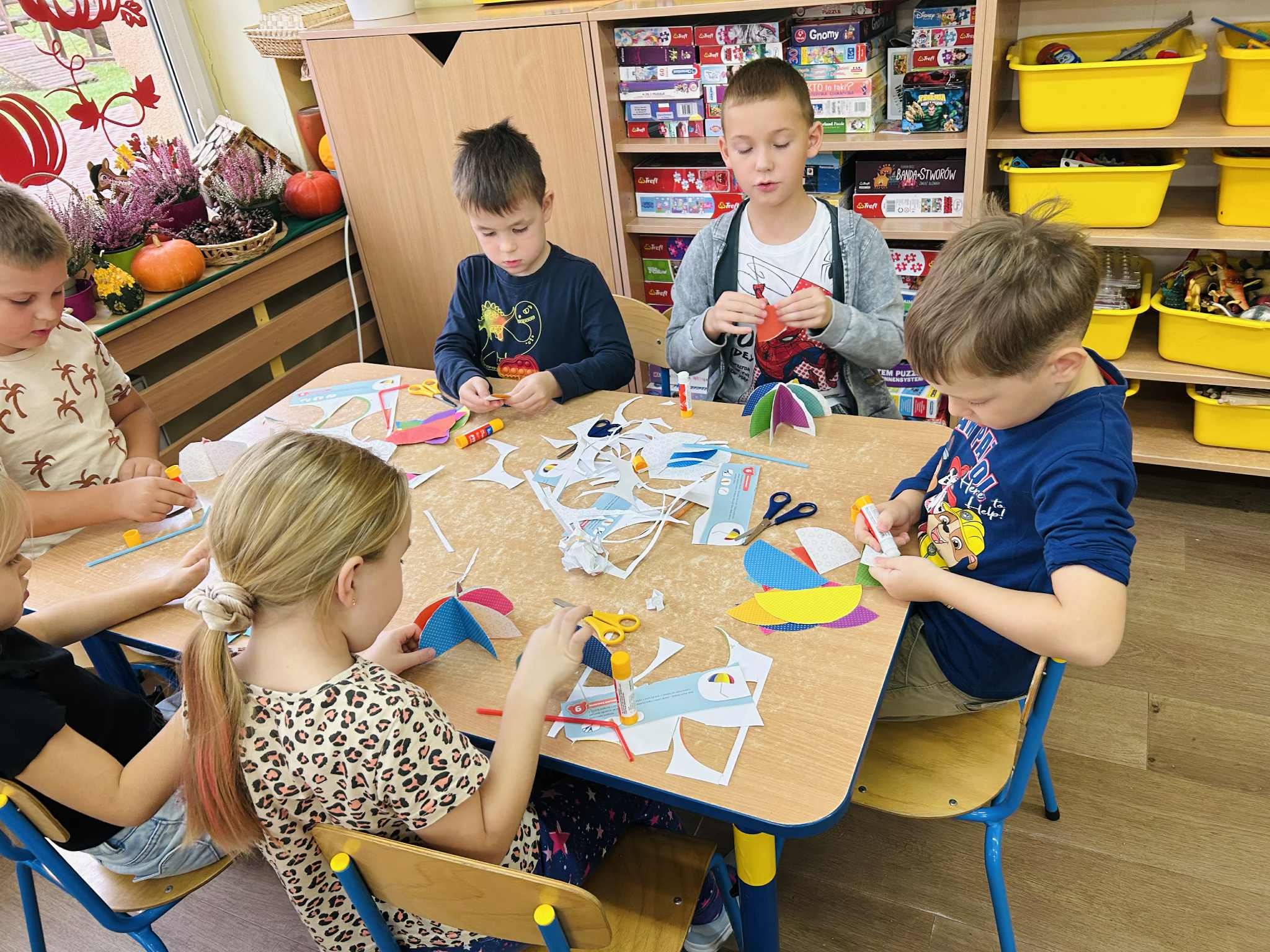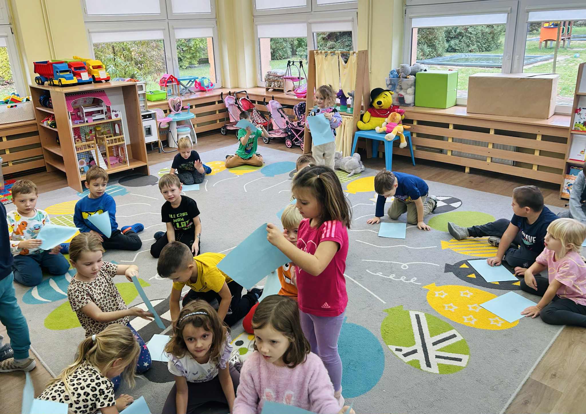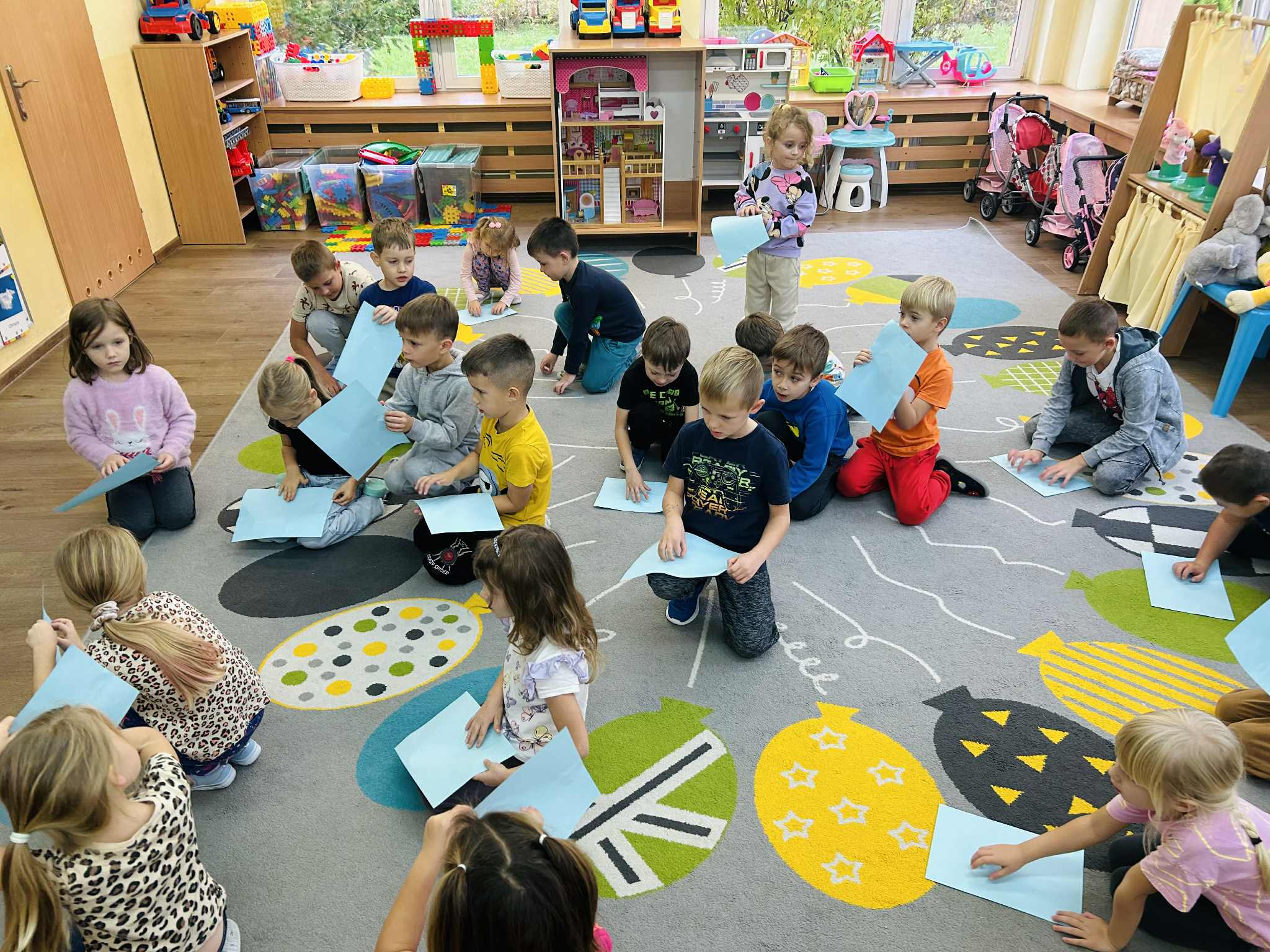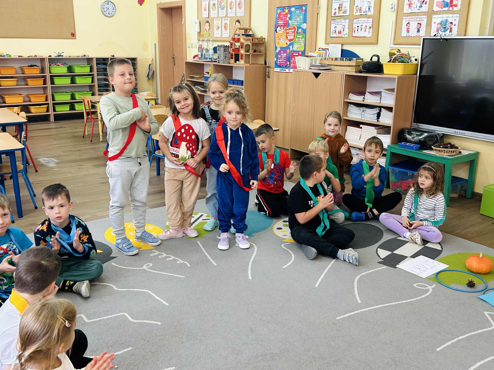 Choć jesienna pogoda bywa kapryśna, ponura i deszczowa, w naszej sali nie brakuje radości i dobrej zabawy. Przedszkolaki z grupy V pozostają w jesiennym klimacie, poznając uroki tej pory roku poprzez wspólne gry i zabawy.