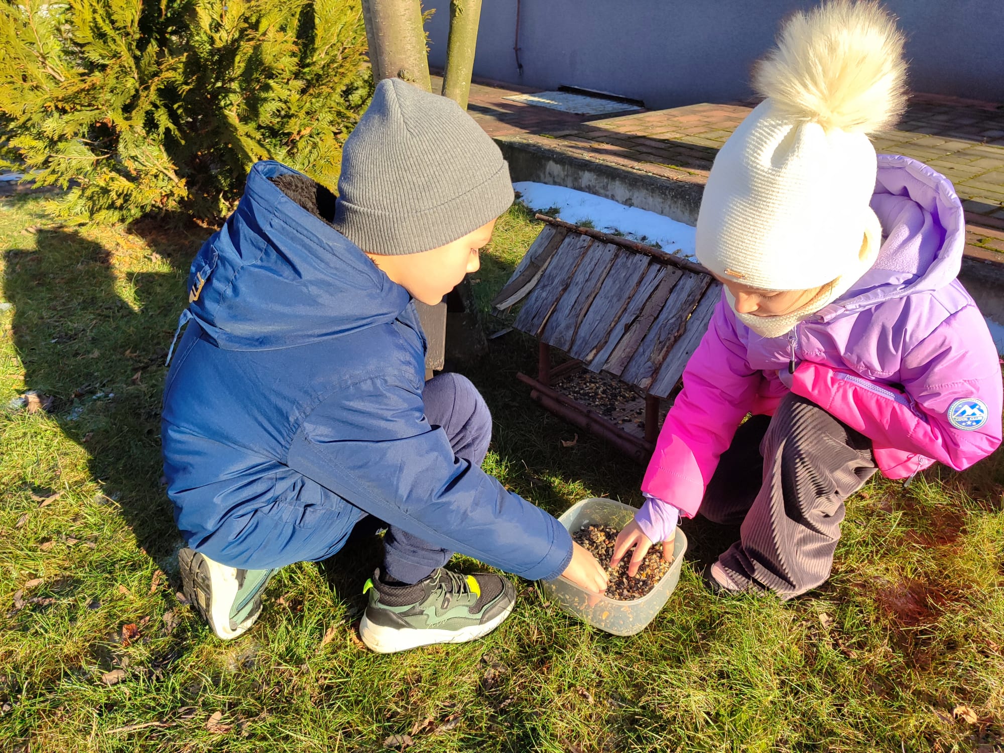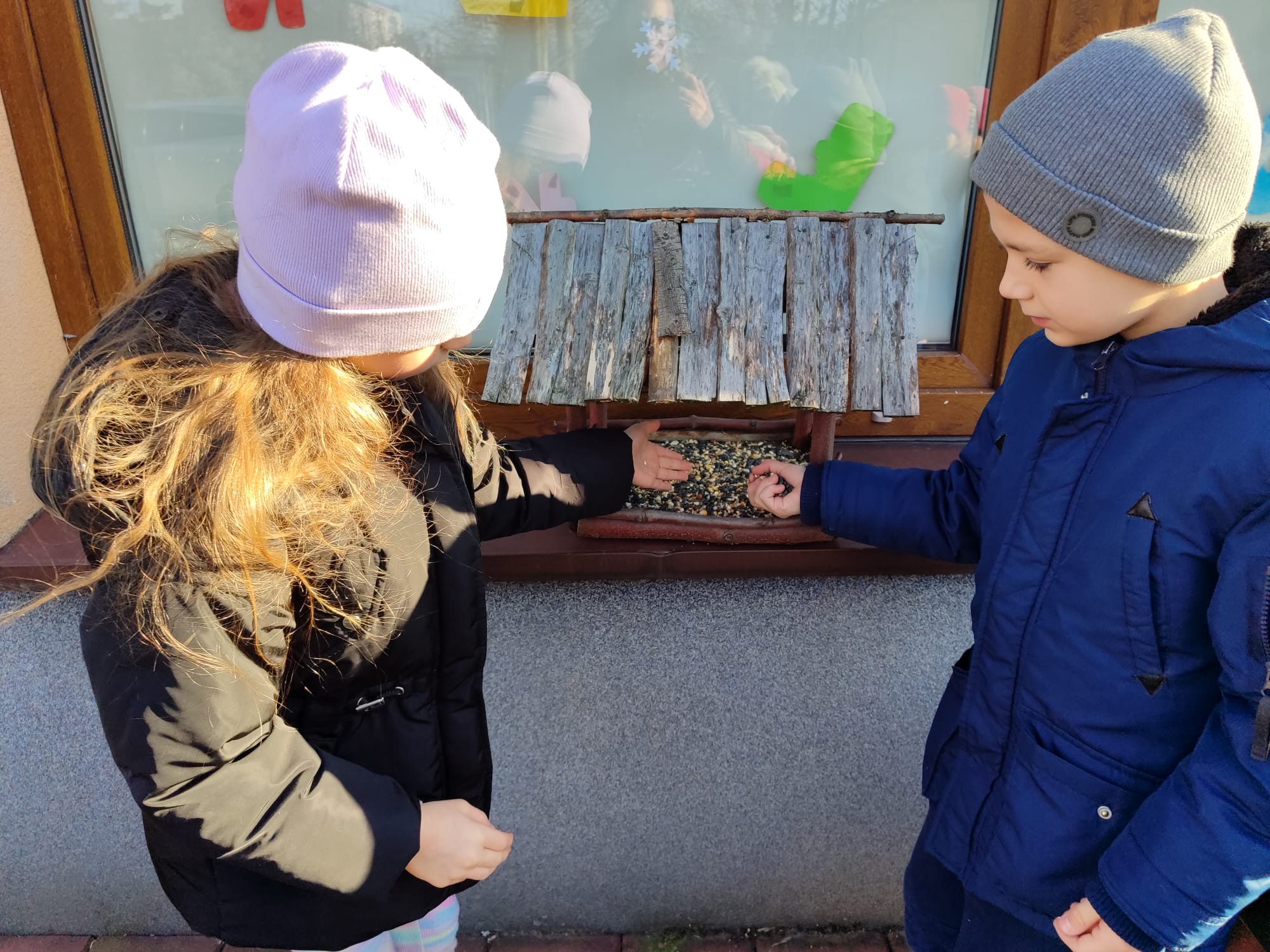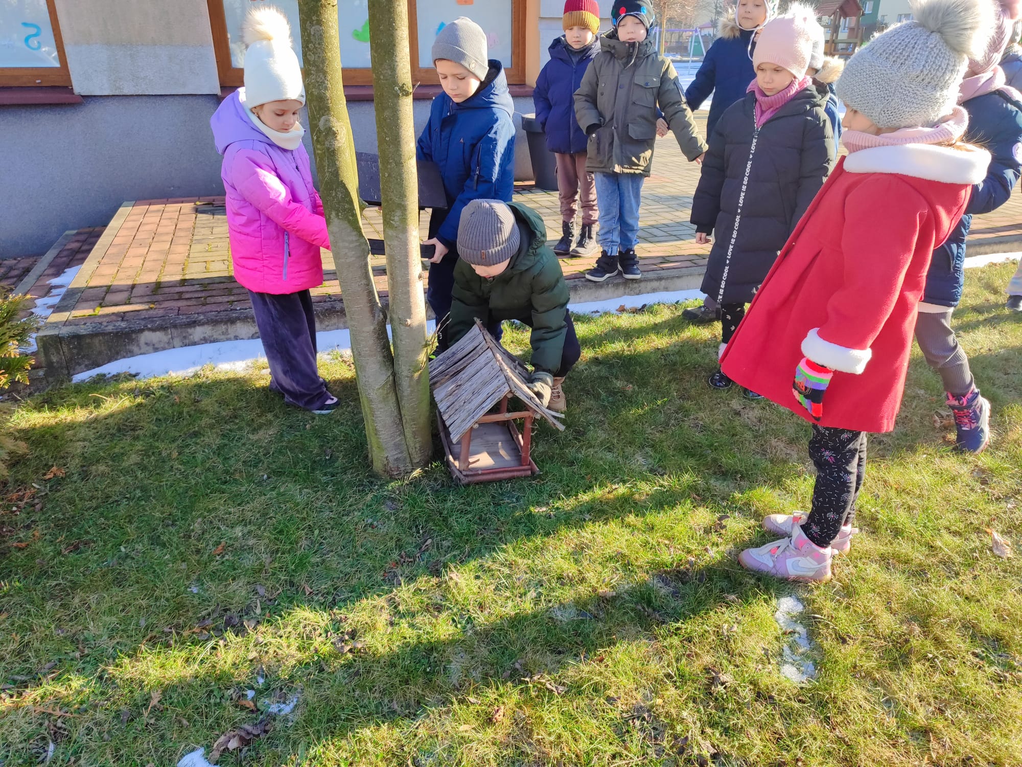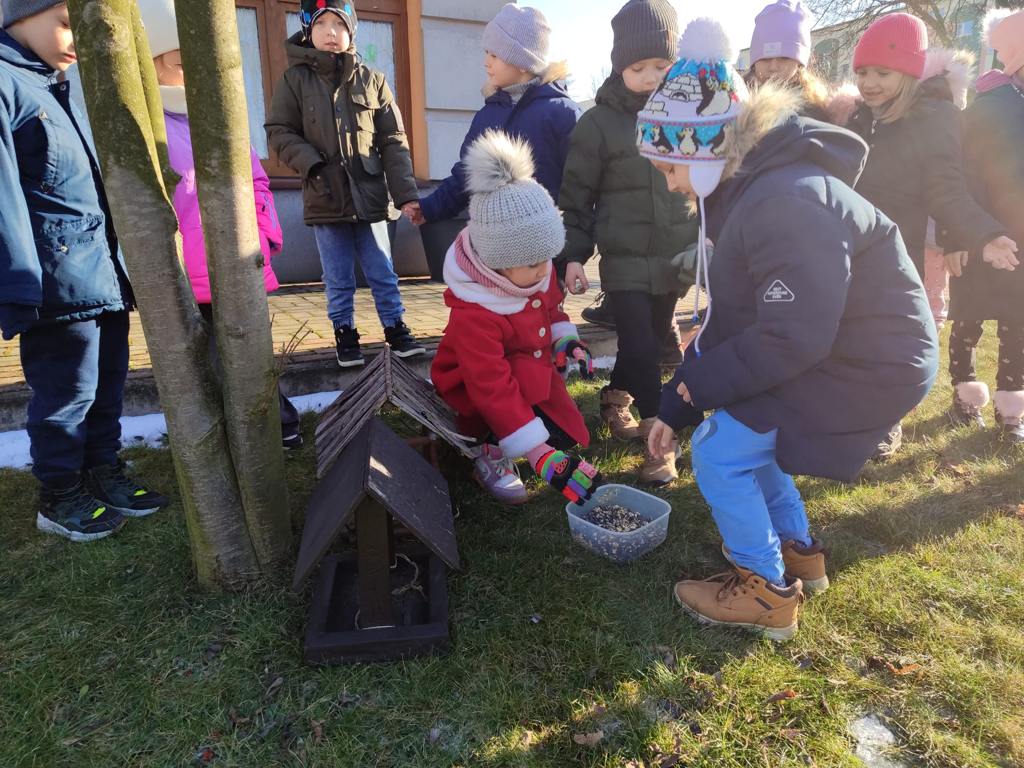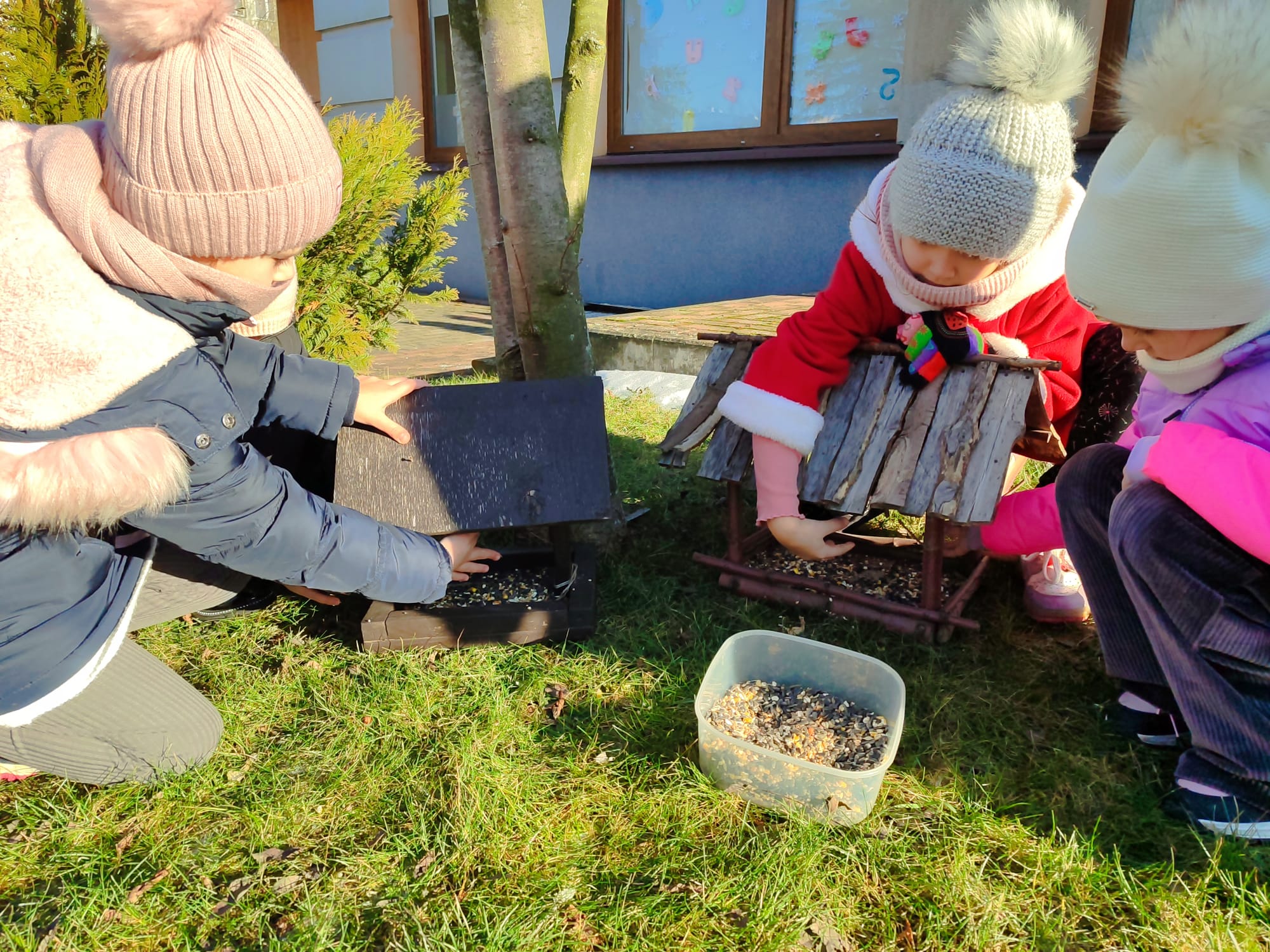 Przedszkolaki z grupy starszaków pamiętają o potrzebach ptaków, szczególnie w okresie zimowym. Dzieci wsypywały do karmników odpowiednią karmę dla ptaków, dbając o to, aby ptaki miały dostęp do pożywienia. Takie działania uczą dzieci empatii, troski o przyrodę oraz odpowiedzialności za zwierzęta. Dokarmianie ptaków sprawiło dzieciom wiele radości i było cenną lekcją ekologii.