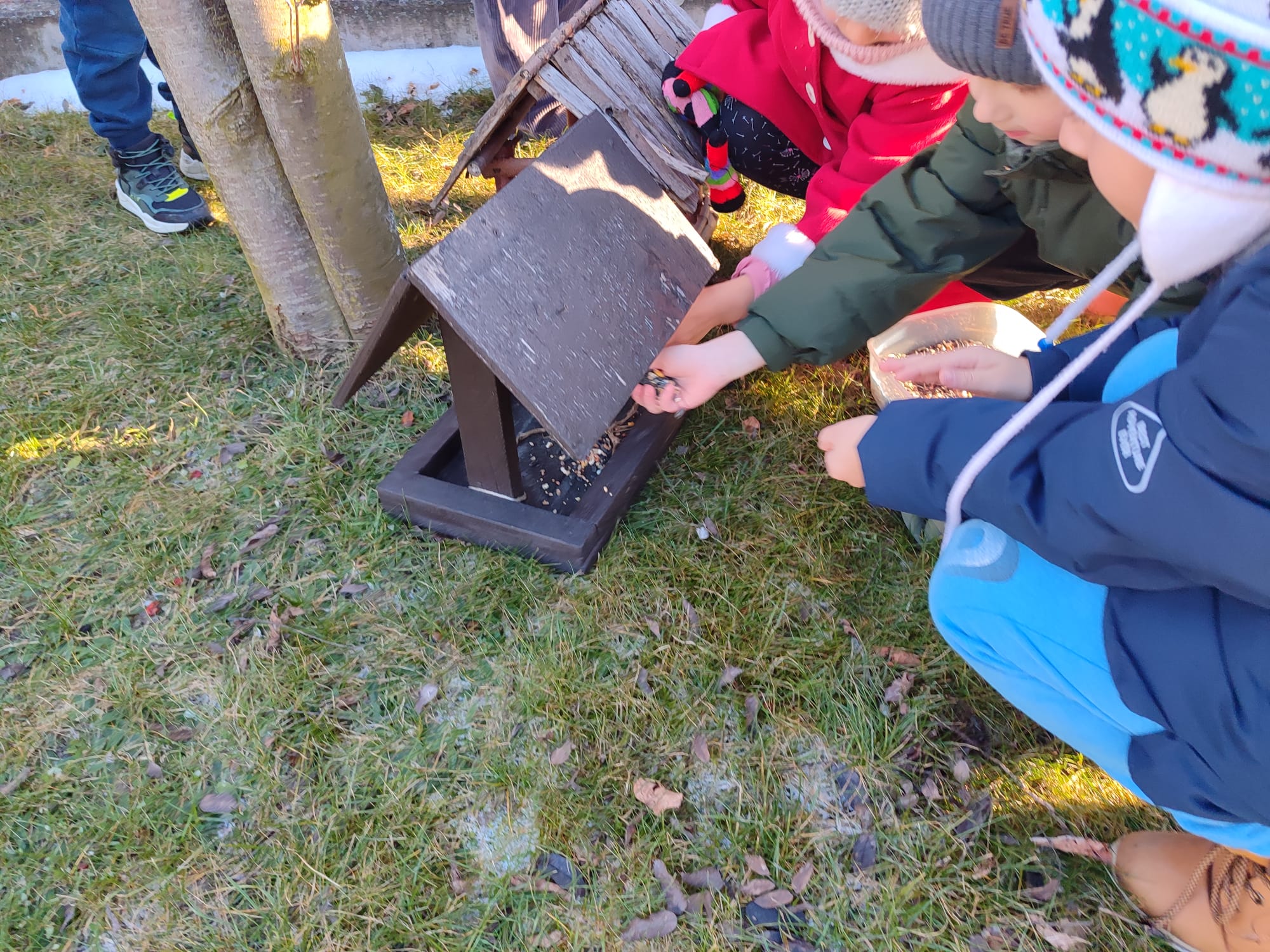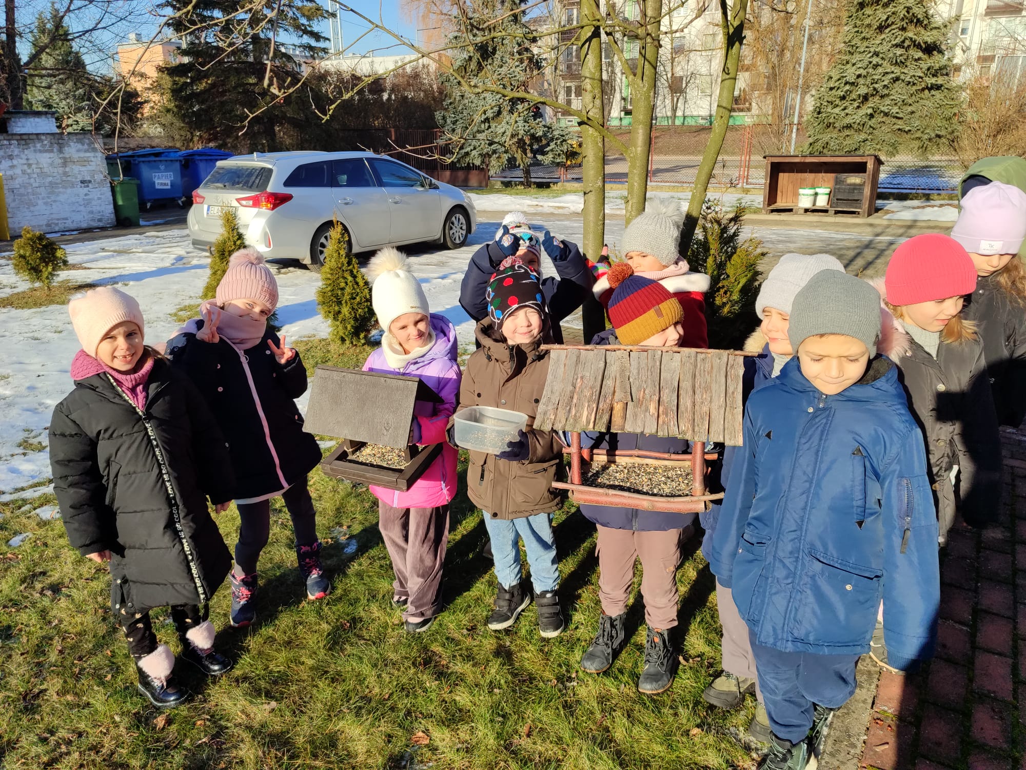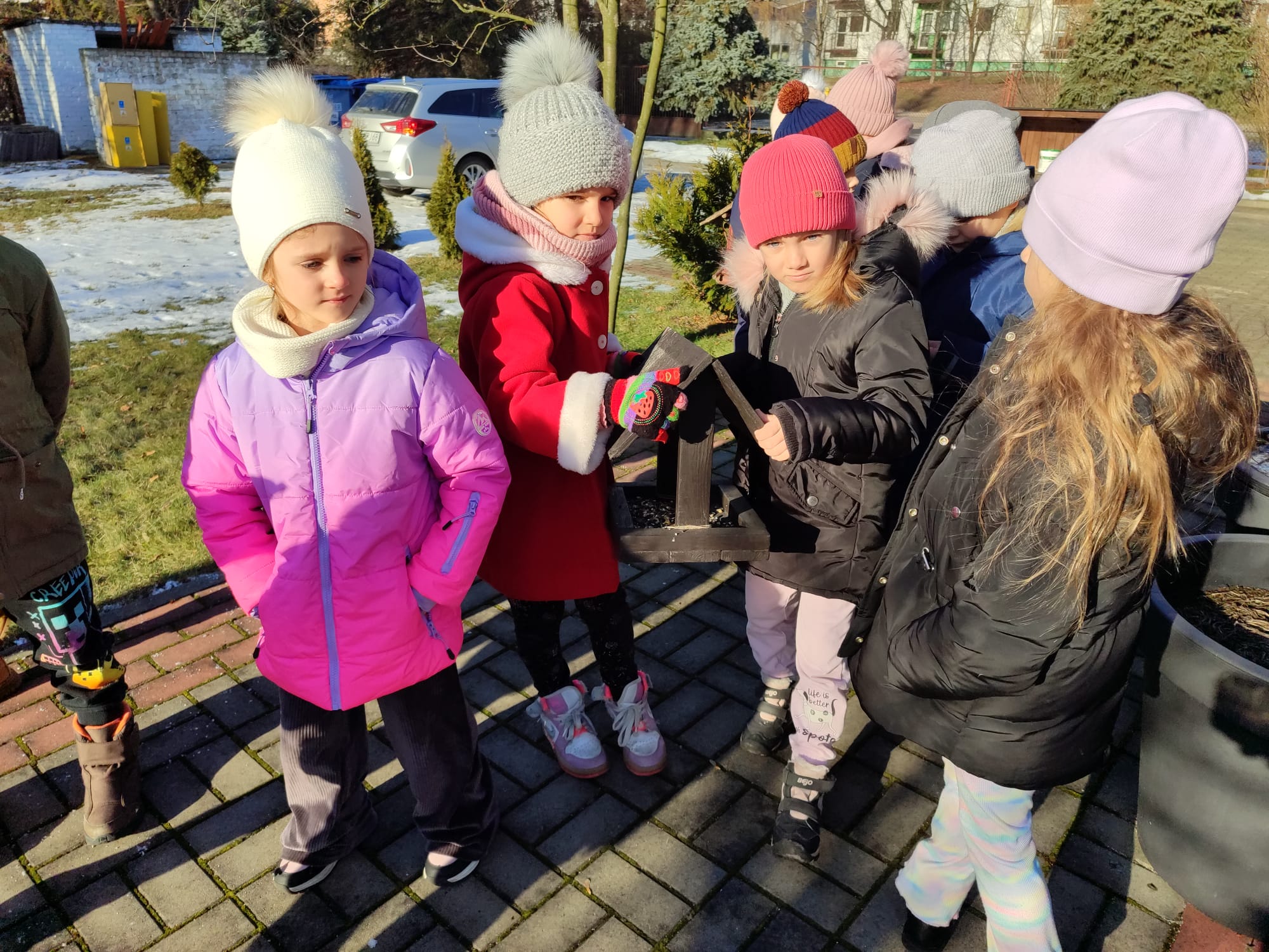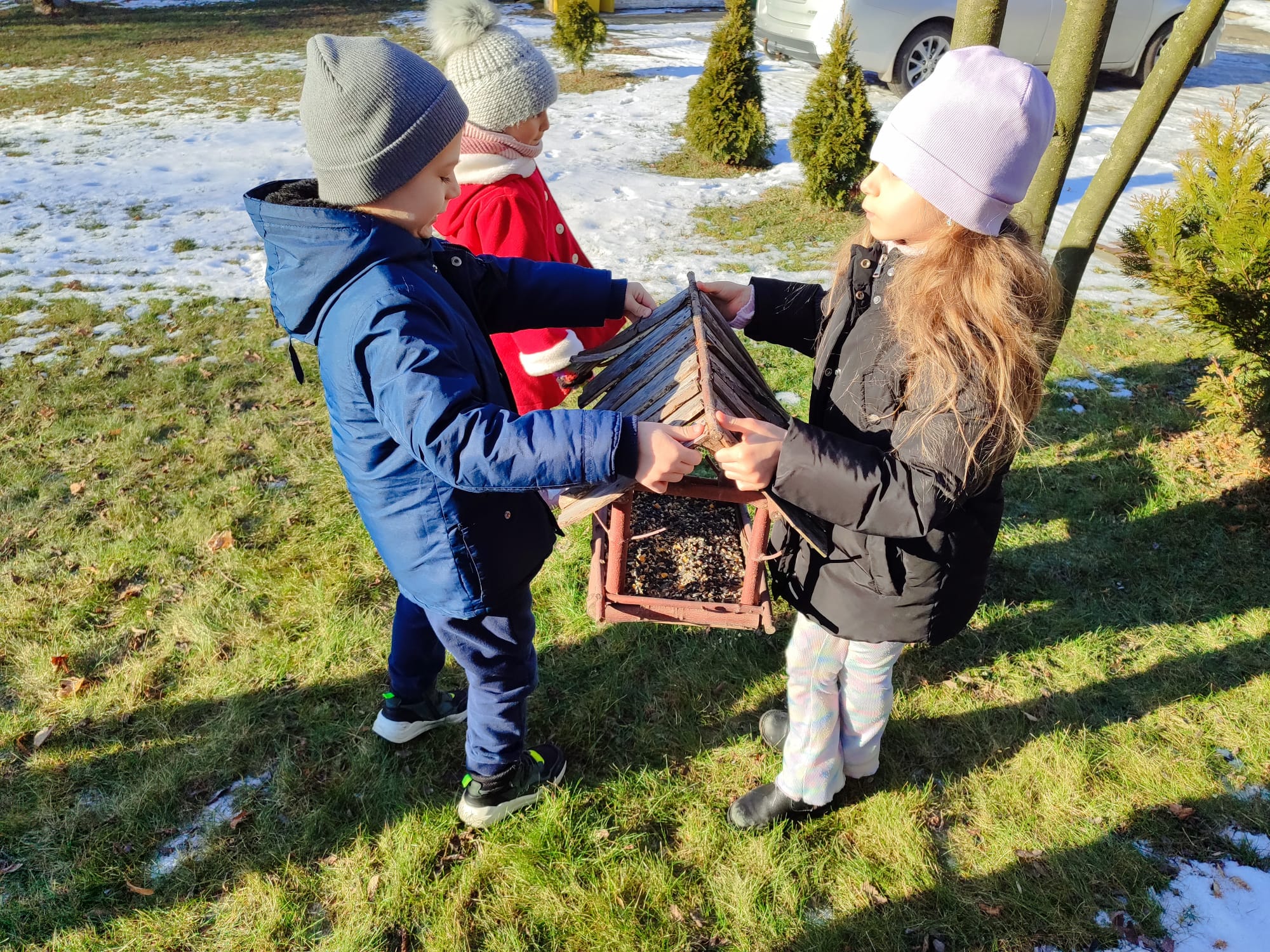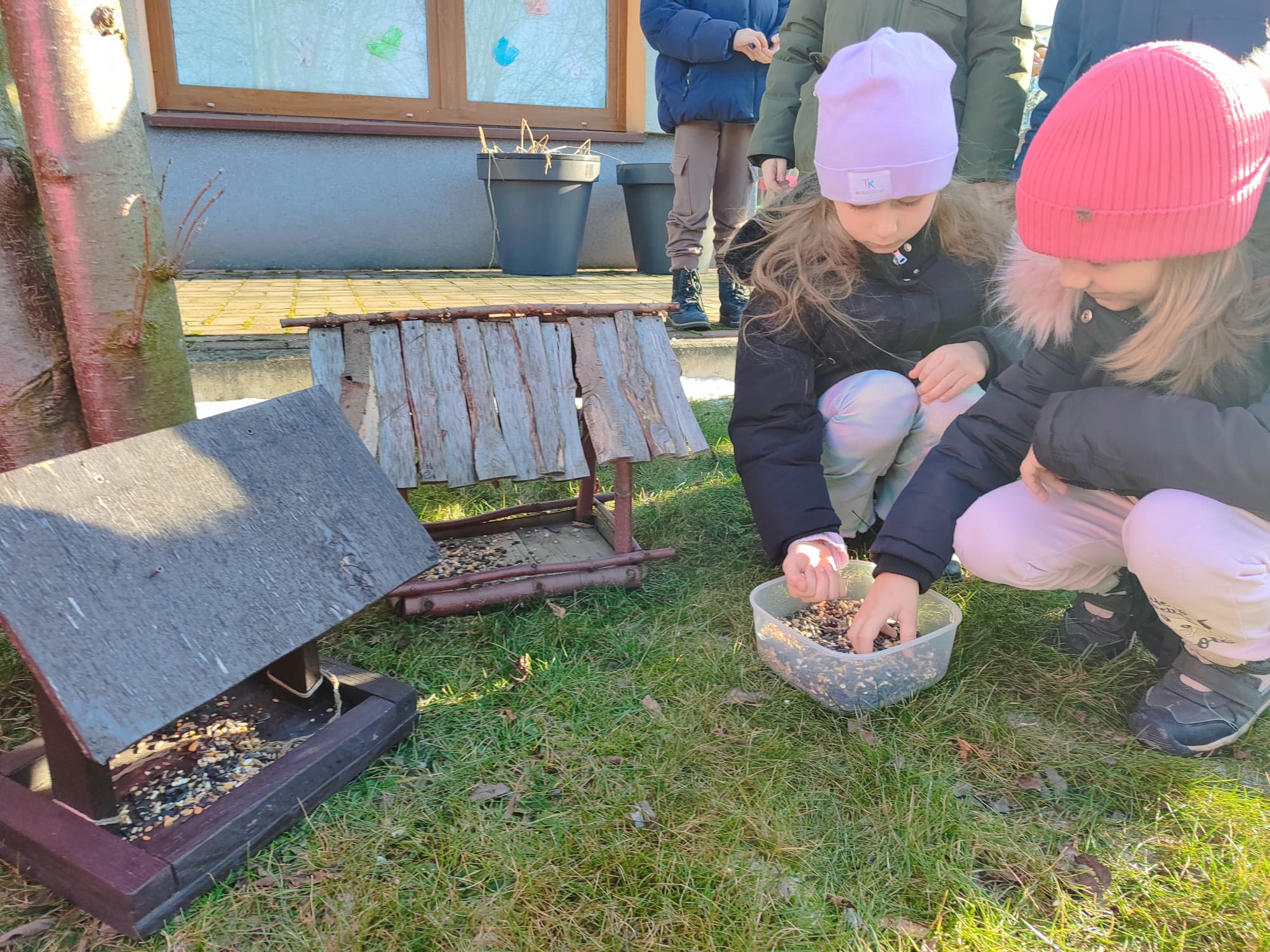 Przedszkolaki z grupy starszaków pamiętają o potrzebach ptaków, szczególnie w okresie zimowym. Dzieci wsypywały do karmników odpowiednią karmę dla ptaków, dbając o to, aby ptaki miały dostęp do pożywienia. Takie działania uczą dzieci empatii, troski o przyrodę oraz odpowiedzialności za zwierzęta. Dokarmianie ptaków sprawiło dzieciom wiele radości i było cenną lekcją ekologii.