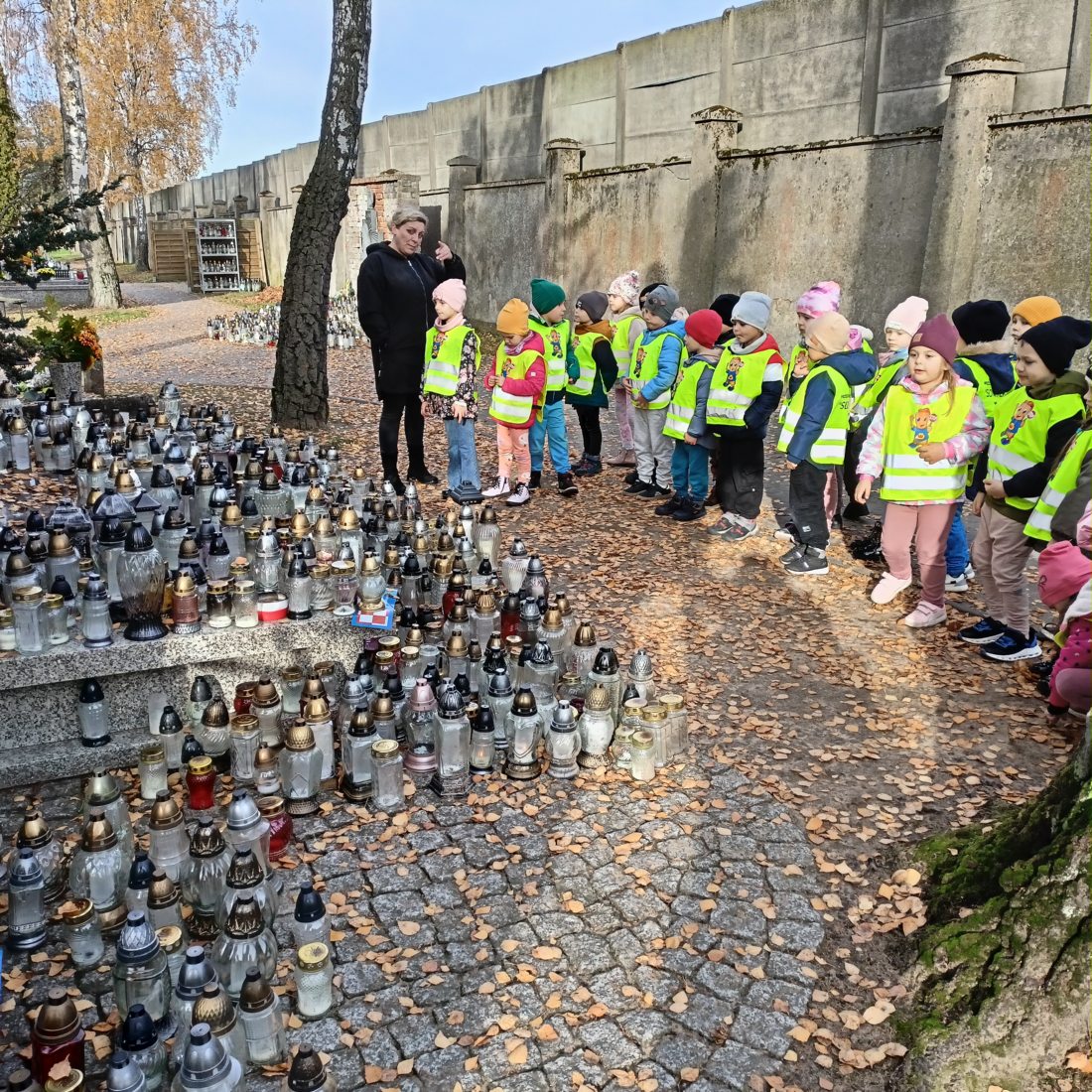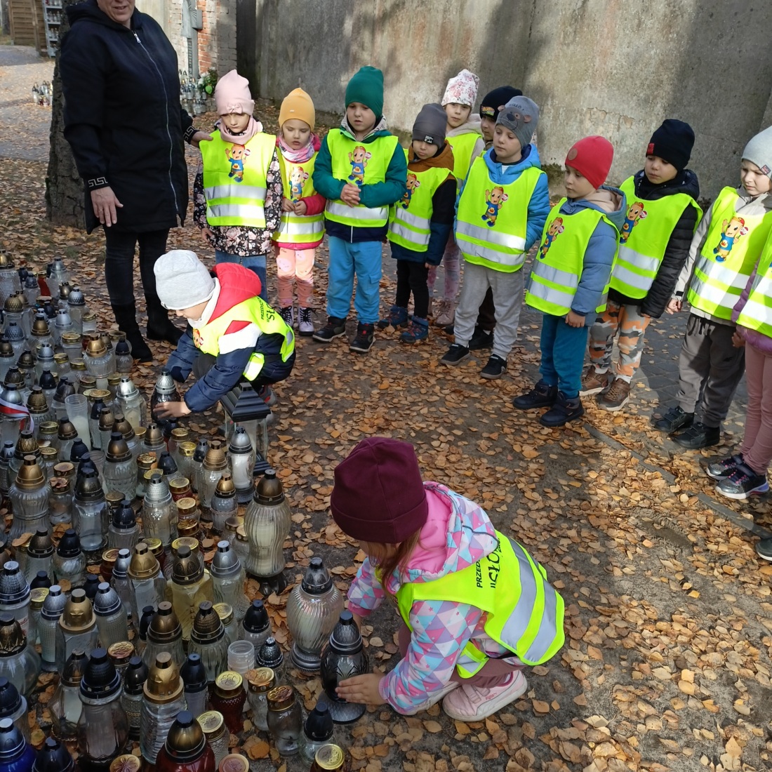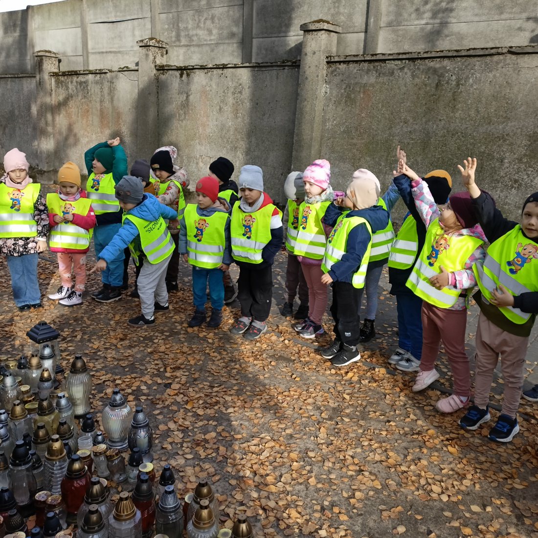 Dziś pięciolatki odbyły spacer na cmentarz w naszym mieście, aby zapalić znicze na grobach żołnierzy, którzy oddali życie za naszą ojczyzną.
