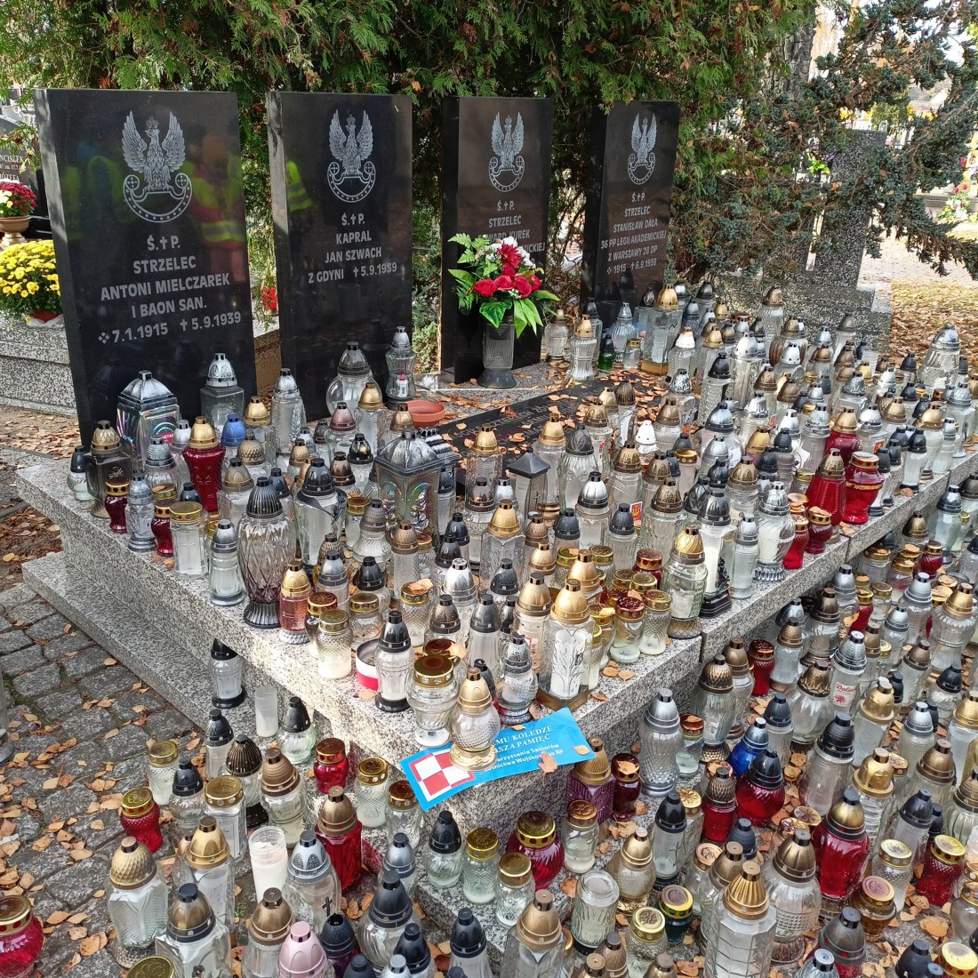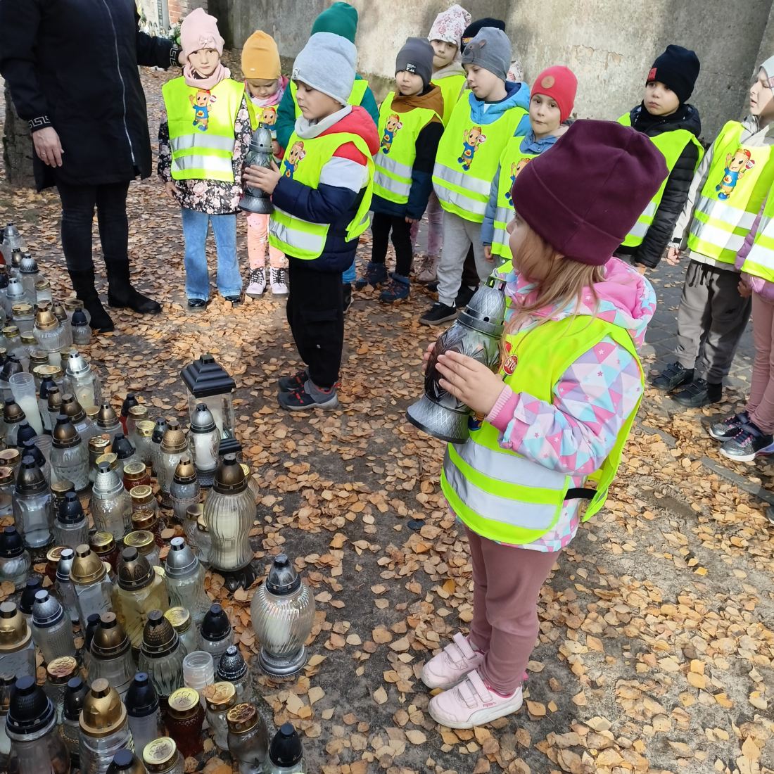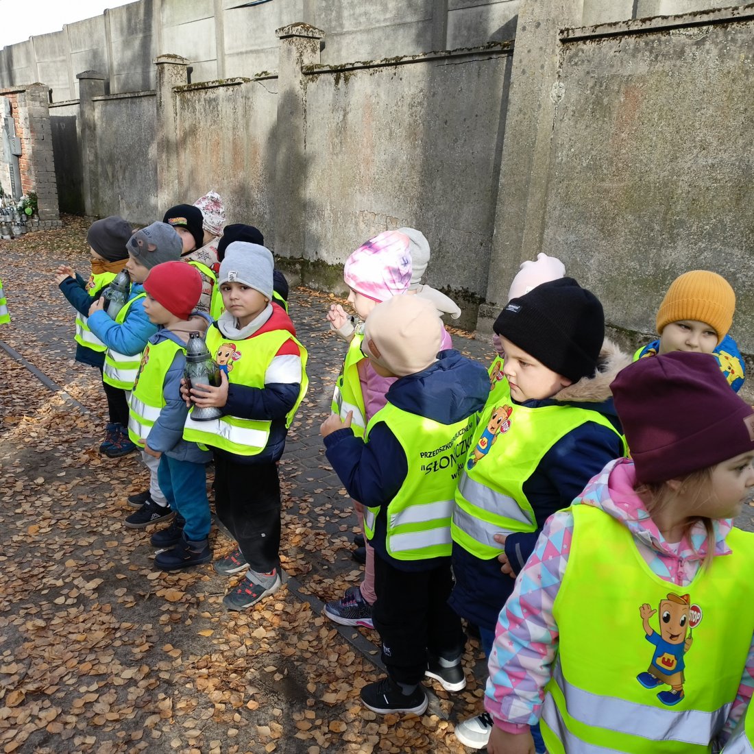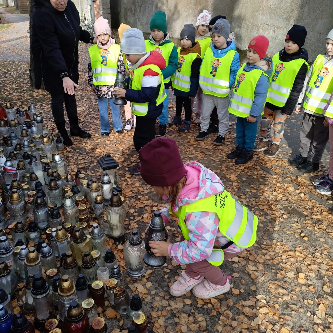 Dziś pięciolatki odbyły spacer na cmentarz w naszym mieście, aby zapalić znicze na grobach żołnierzy, którzy oddali życie za naszą ojczyzną.