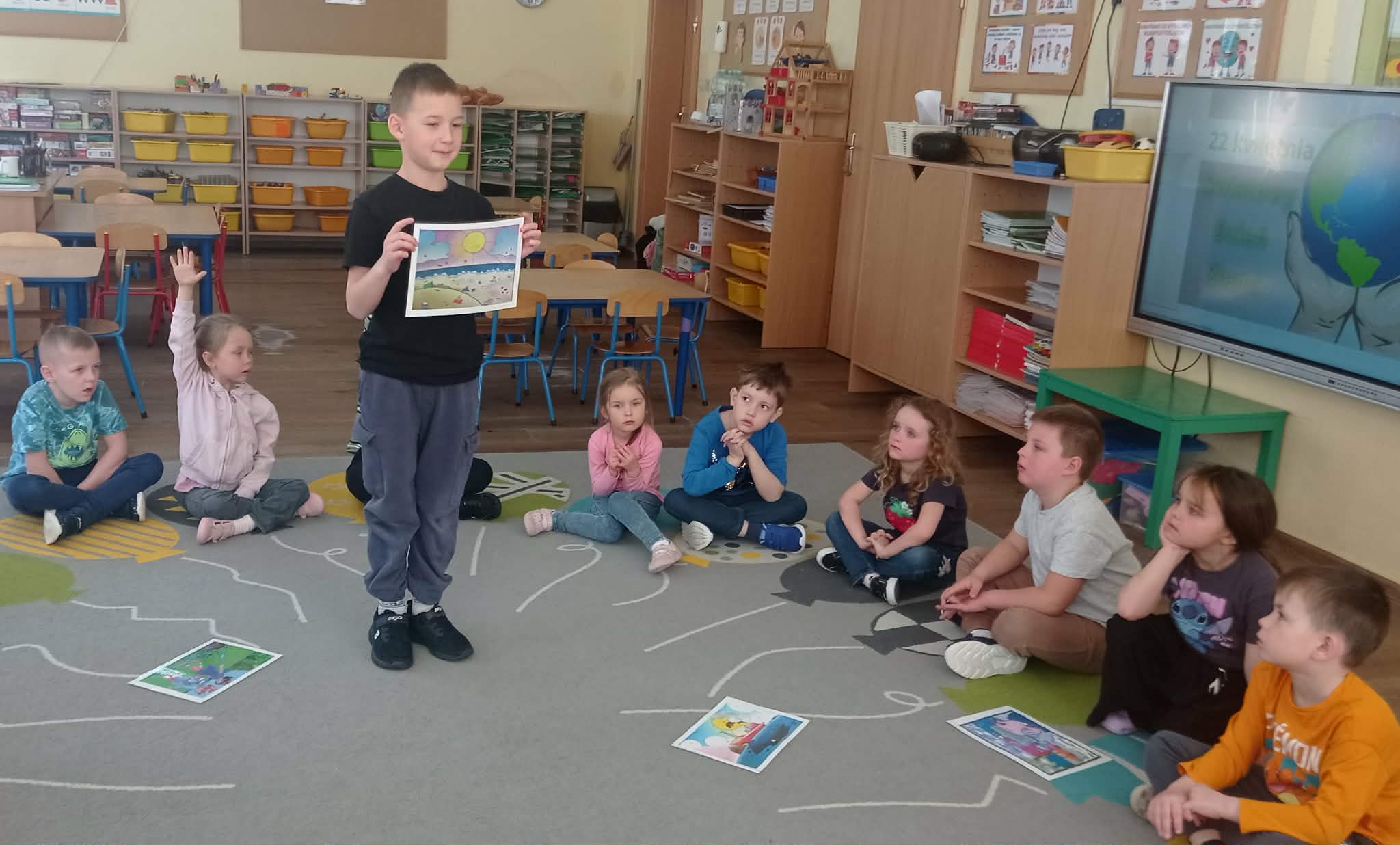 Dnia 22 kwietnia dzieci z grupy V obchodziły Światowy Dzień Ziemi. Była to doskonała okazja, aby porozmawiać o tym, jak dbać o naszą planetę. Przedszkolaki dowiedziały się dlaczego ważne jest oszczędzanie wody i energii, segregowanie śmieci oraz dbanie o rośliny i zwierzęta. Na koniec dzieci w formie plastycznej przedstawiły swoje pomysły, w jaki sposób mogą pomóc, aby chronić środowisko. Obchody tego dania były nie tylko ciekawą przygodą, ale także ważną lekcją odpowiedzialności za naszą planetę Ziemię.