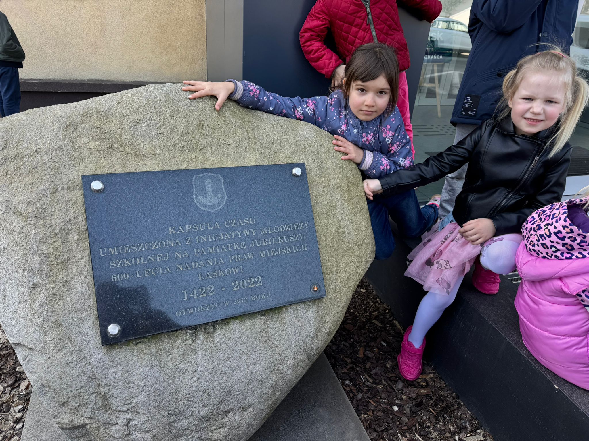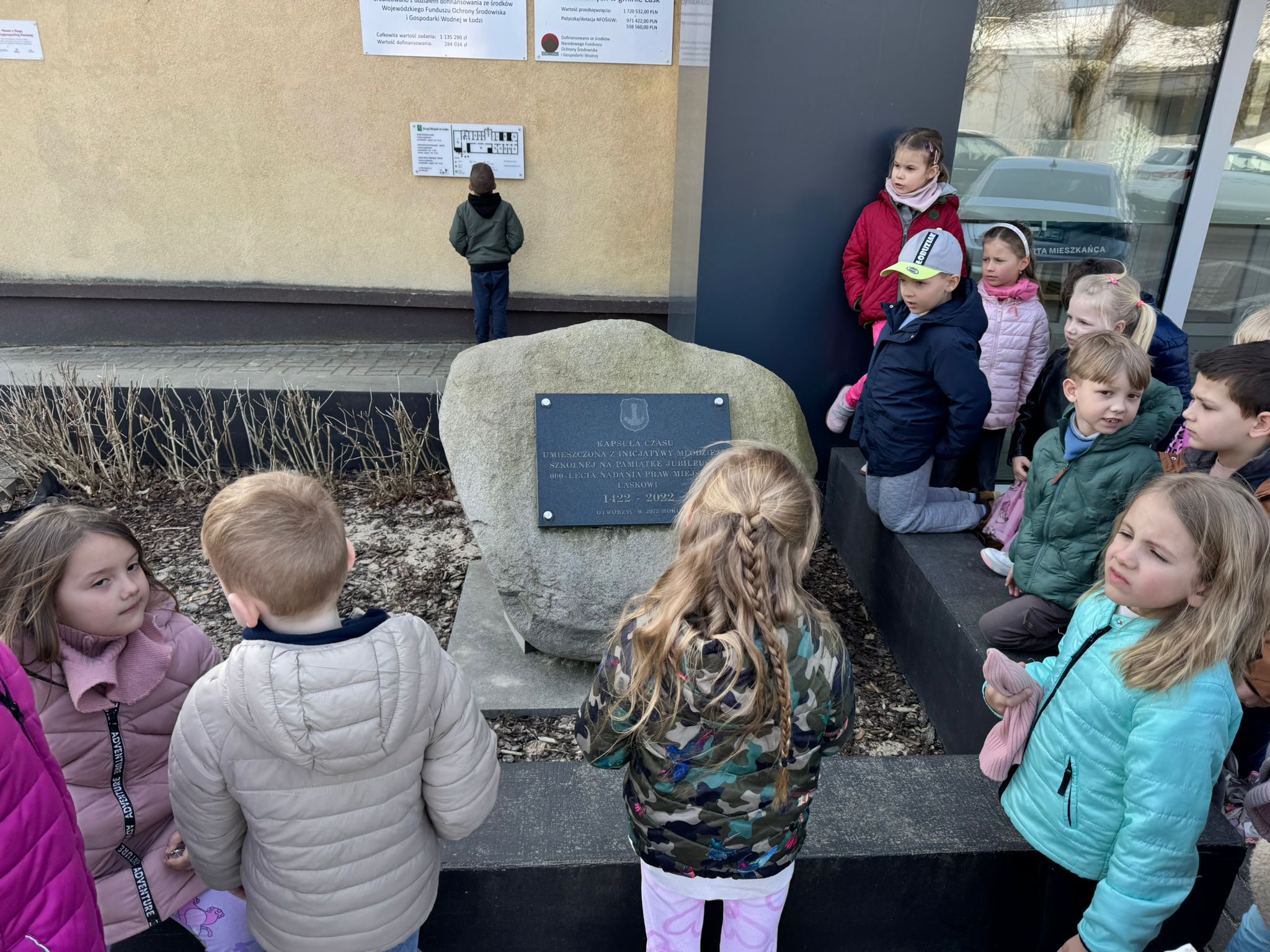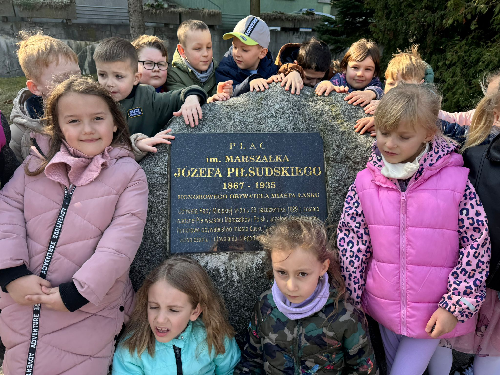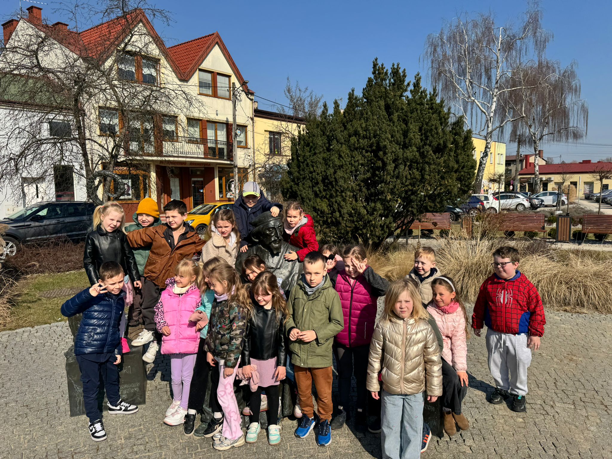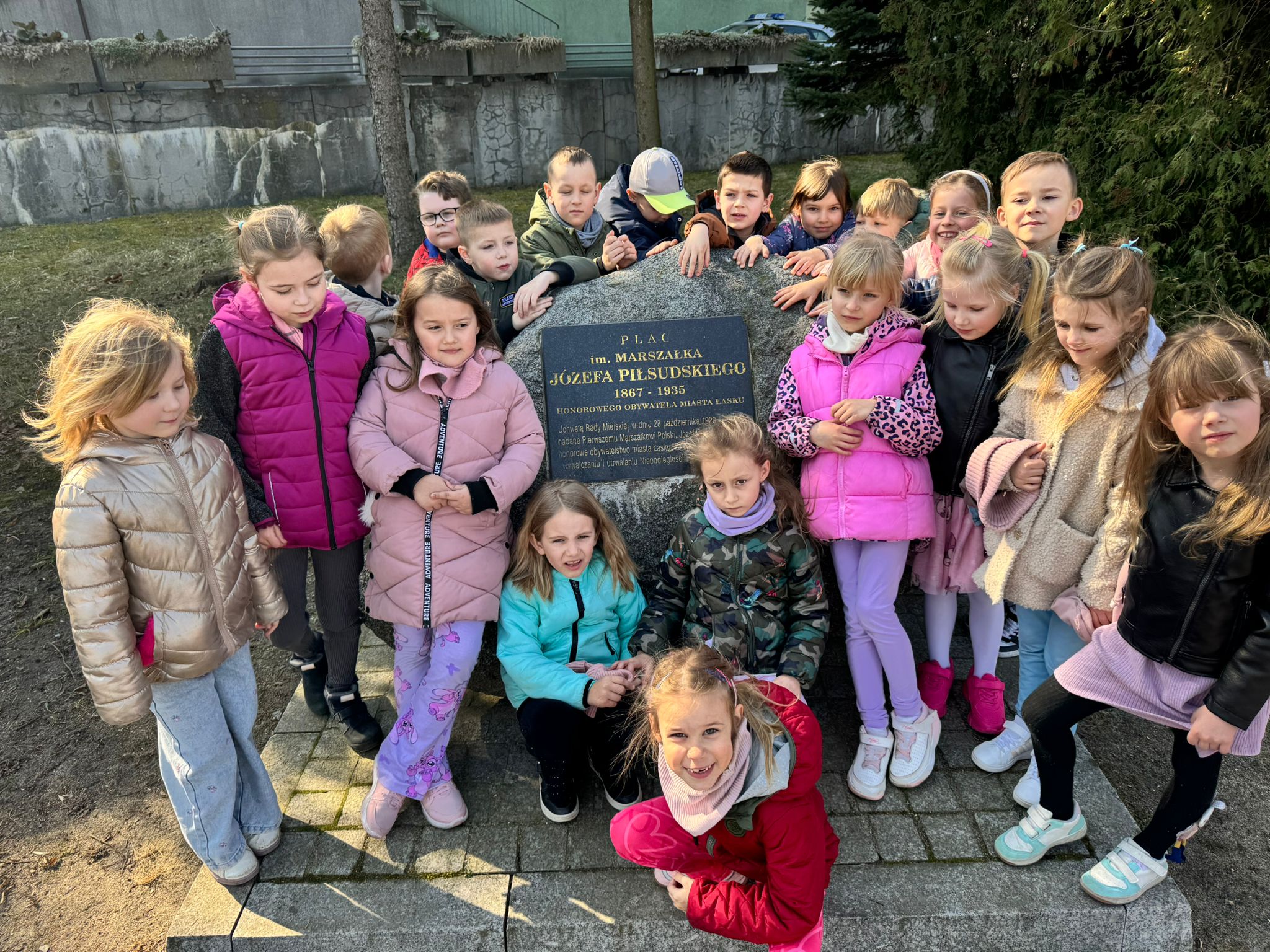 Dzieci z grupy IV podczas wiosennych spacerów poznają swoje miasto – Łask. Z zainteresowaniem odwiedzają pomnik Jana Łaskiego, gdzie dowiadują się o historii i ważnych postaciach związanych z miastem. Spacerując dalej, zatrzymują się przy pomniku Józefa Piłsudskiego, poznając jego rolę w dziejach Polski. Dużym zainteresowaniem cieszy się także kapsuła czasu znajdująca się przy urzędzie miasta, która pobudza wyobraźnię dzieci i zachęca do rozmów o przyszłości. Nieodłącznym punktem wycieczek jest również samolot, który wzbudza ciekawość i zachwyt najmłodszych. Dzięki takim spacerom dzieci uczą się swojej małej ojczyzny i budują więź z miejscem, w którym mieszkają.