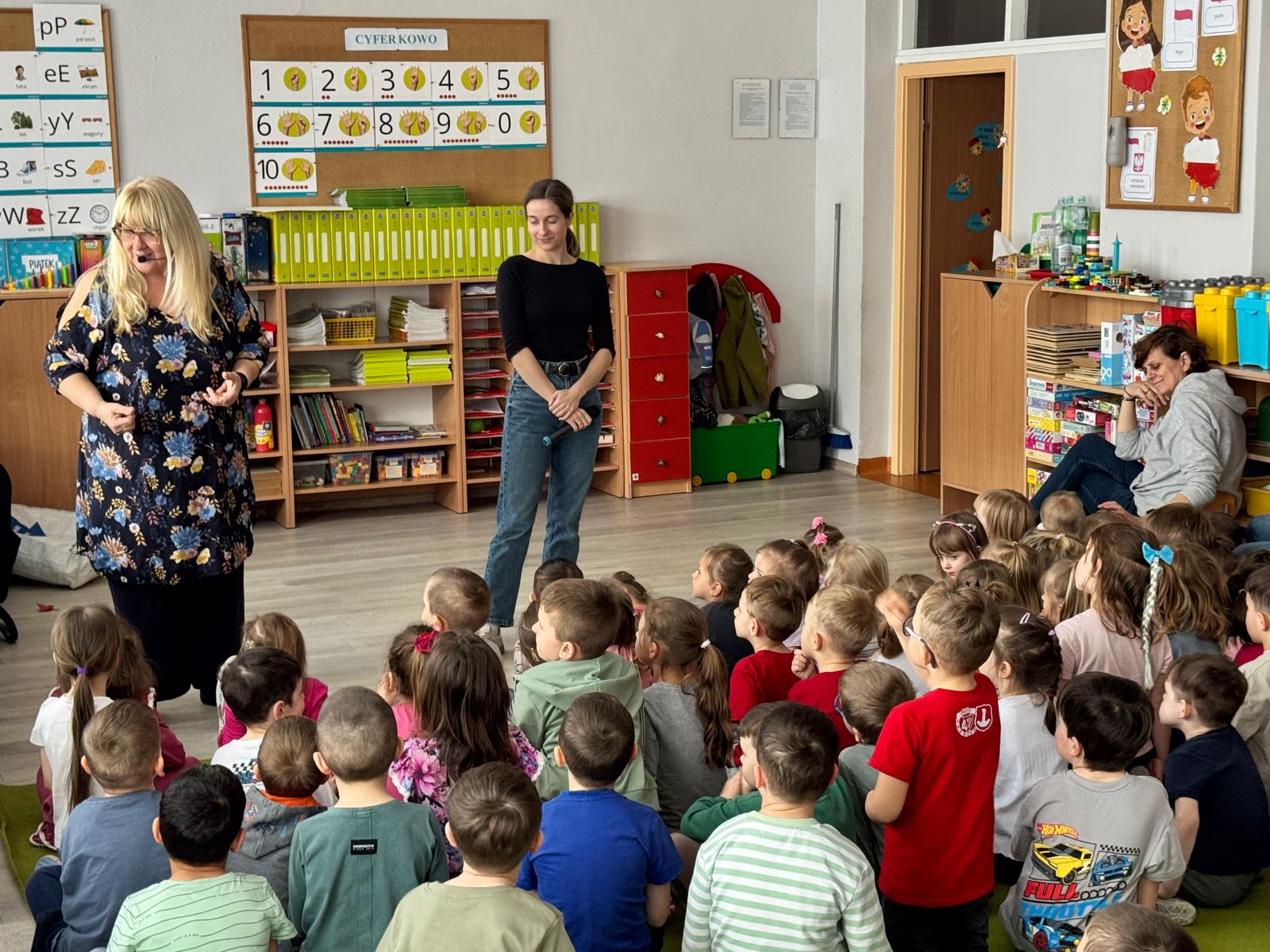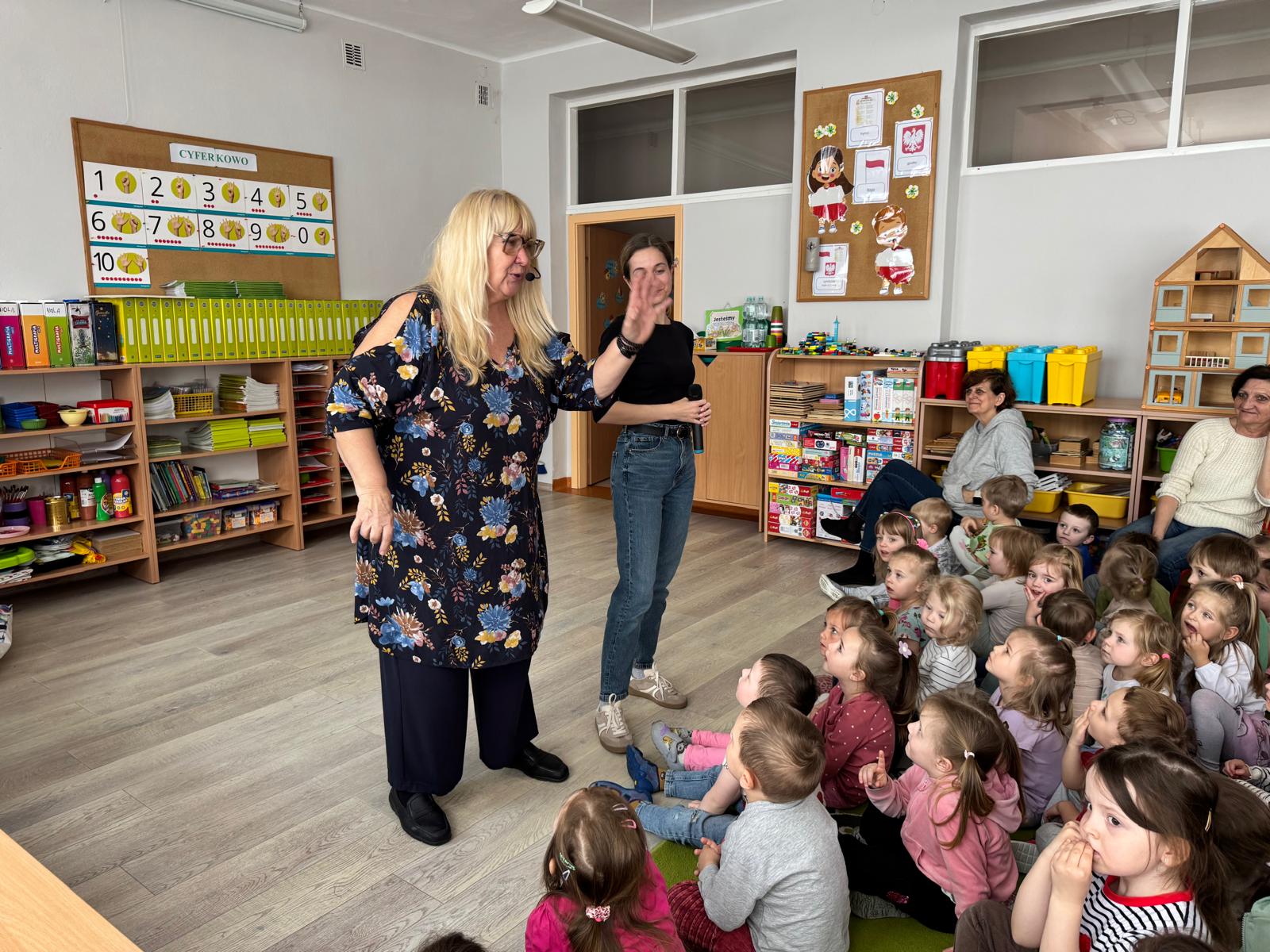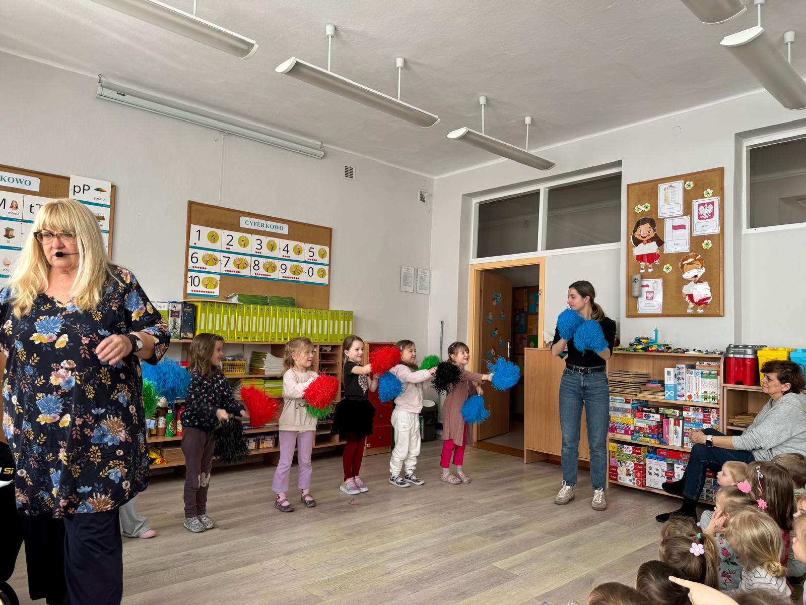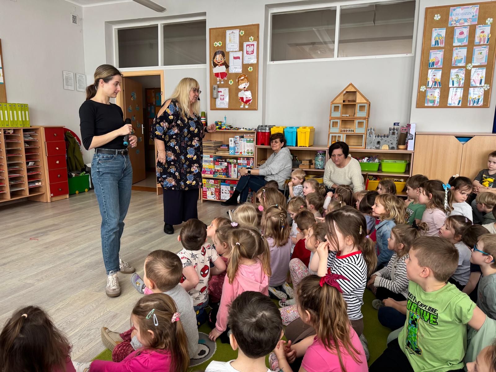 Podczas audycji muzycznej dzieci w ciekawy i angażujący sposób poznawały zasady zachowań ekologicznych. Poprzez piosenki i zabawy dowiedziały się, jak ważna jest segregacja śmieci oraz dbanie o środowisko na co dzień. Poruszono również temat zdrowego odżywiania i jego wpływu na nasze samopoczucie oraz planetę. W części praktycznej dzieci ustawiły się w „ekologiczne pociągi”, którymi wyruszyły na marsz dla Ziemi. Zajęcia dostarczyły wiele radości, a jednocześnie uwrażliwiły najmłodszych na potrzebę troski o środowisko naturalne.