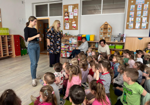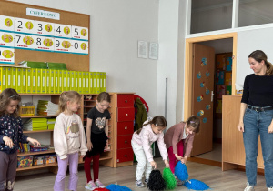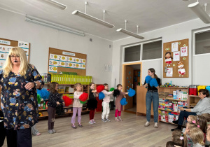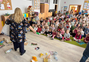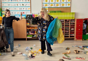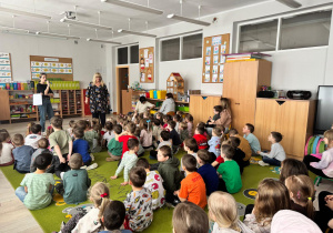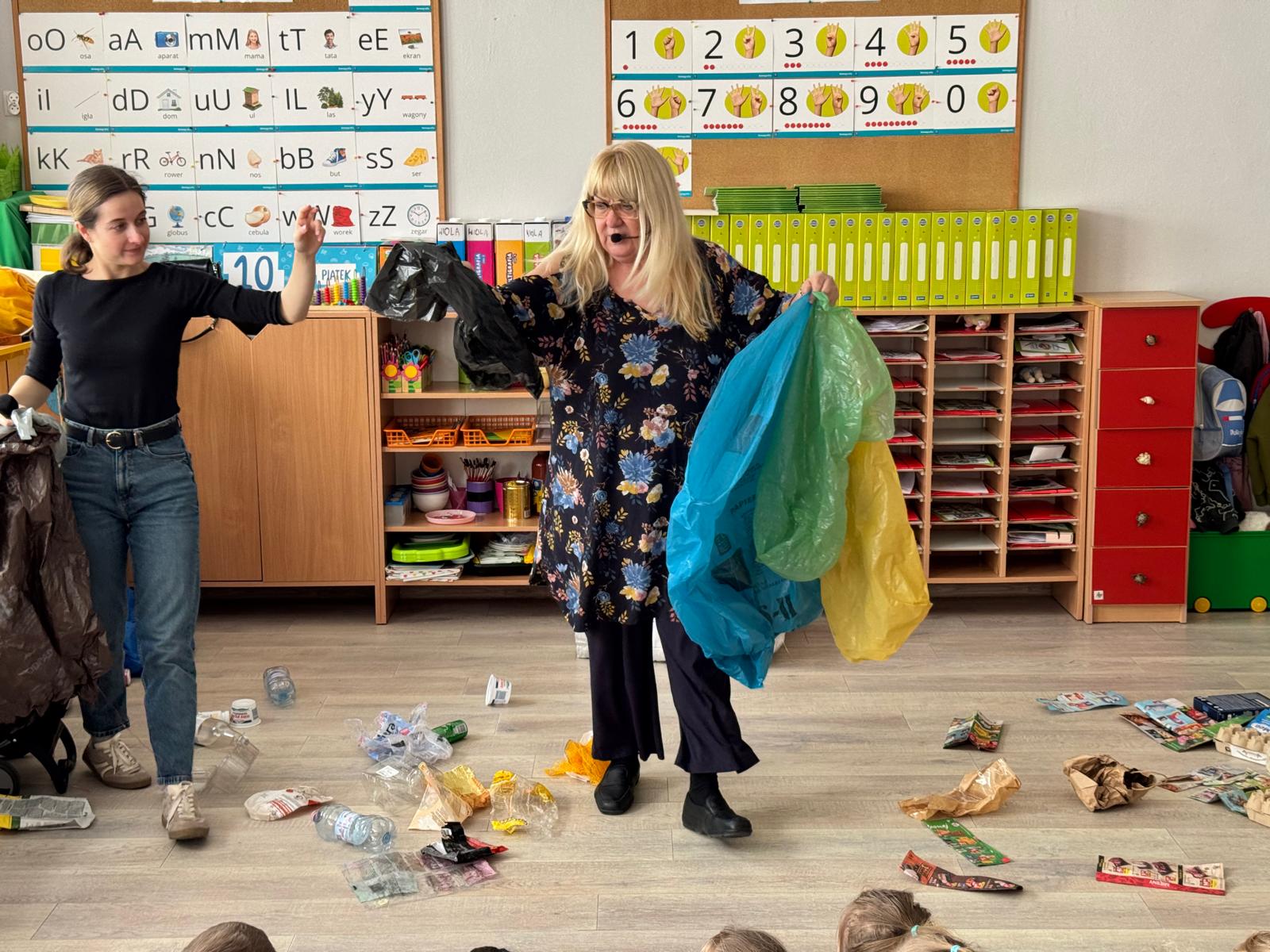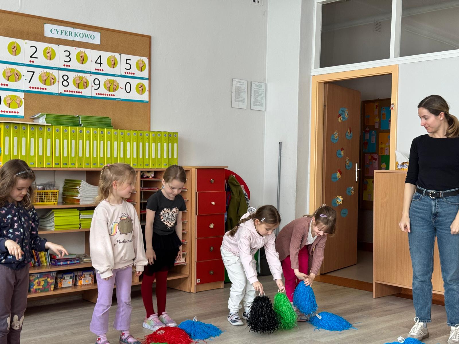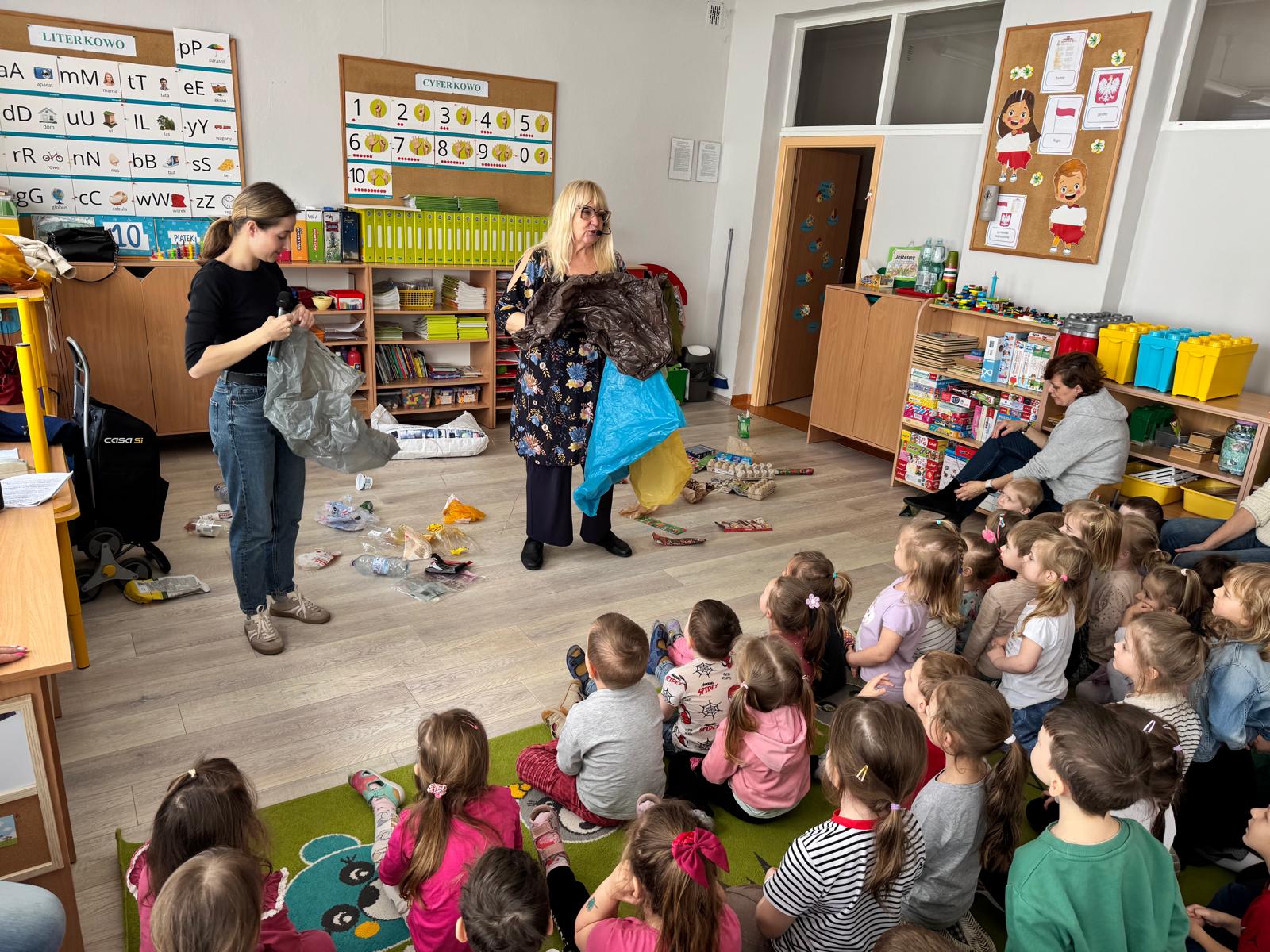 Podczas audycji muzycznej dzieci w ciekawy i angażujący sposób poznawały zasady zachowań ekologicznych. Poprzez piosenki i zabawy dowiedziały się, jak ważna jest segregacja śmieci oraz dbanie o środowisko na co dzień. Poruszono również temat zdrowego odżywiania i jego wpływu na nasze samopoczucie oraz planetę. W części praktycznej dzieci ustawiły się w „ekologiczne pociągi”, którymi wyruszyły na marsz dla Ziemi. Zajęcia dostarczyły wiele radości, a jednocześnie uwrażliwiły najmłodszych na potrzebę troski o środowisko naturalne.