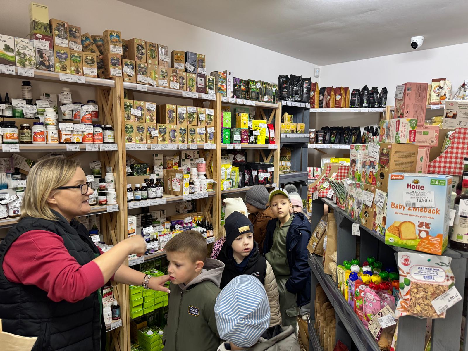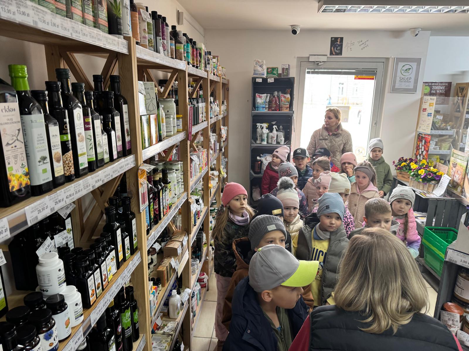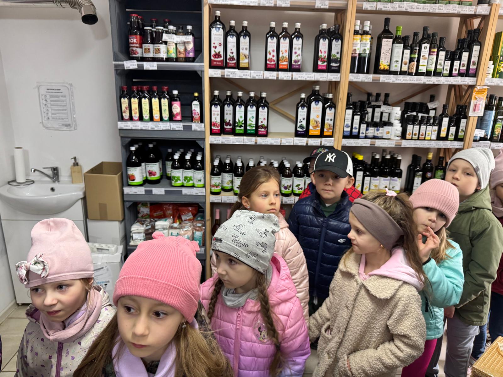 Grupa IV odwiedziła sklep ze zdrową żywnością. Dzieci z zaciekawieniem oglądały kolorowe owoce, warzywa oraz różne produkty ekologiczne. Pani sprzedawczyni opowiadała im, skąd pochodzą zdrowe produkty i dlaczego warto je jeść. Wycieczka była ciekawa i pouczająca, a także pomogła dzieciom lepiej zrozumieć, jak ważne jest dbanie o zdrowie. Takie doświadczenia wspierają wdrażanie najmłodszych do zdrowego stylu życia, ucząc ich dobrych nawyków żywieniowych już od najmłodszych lat.