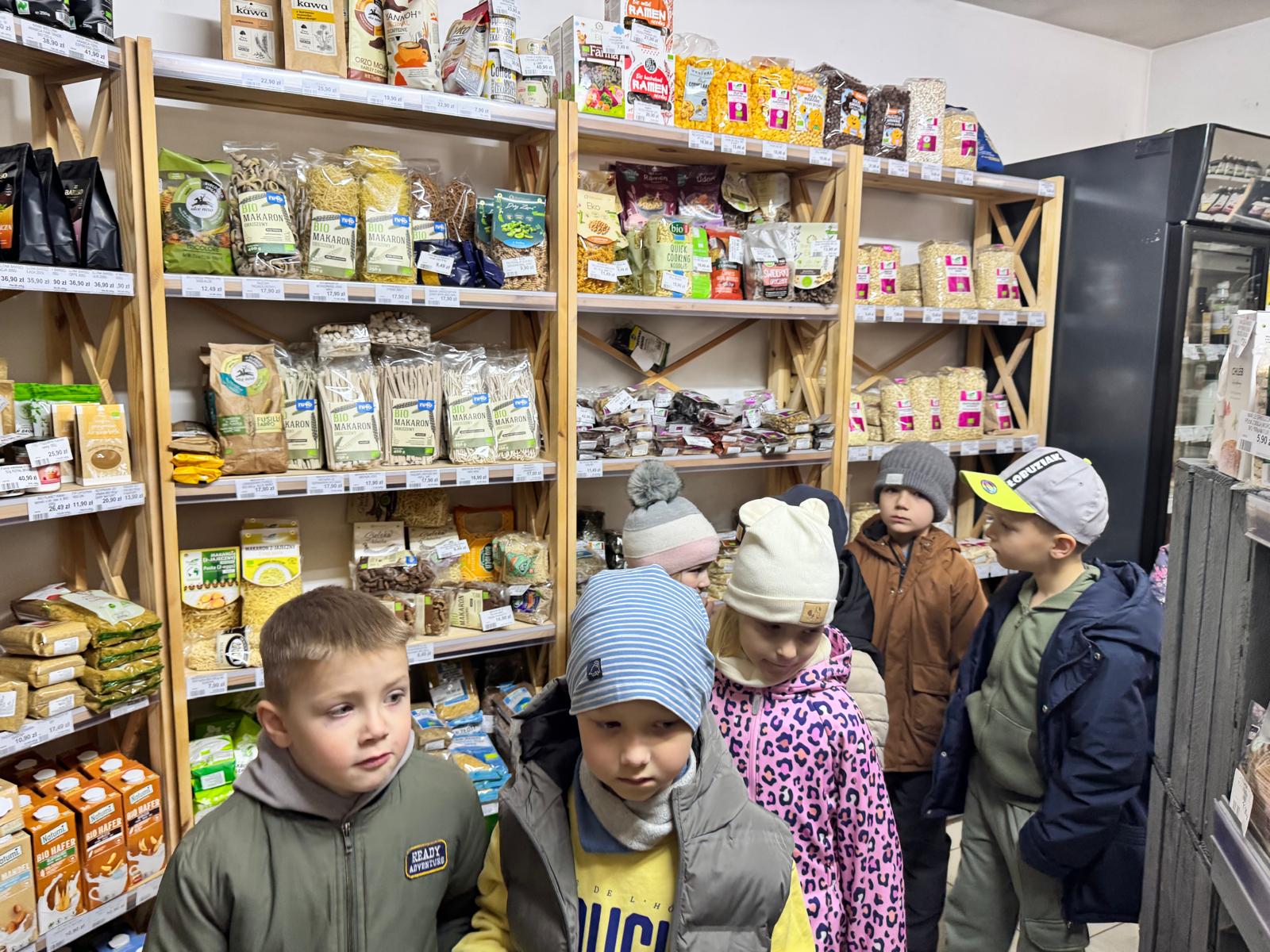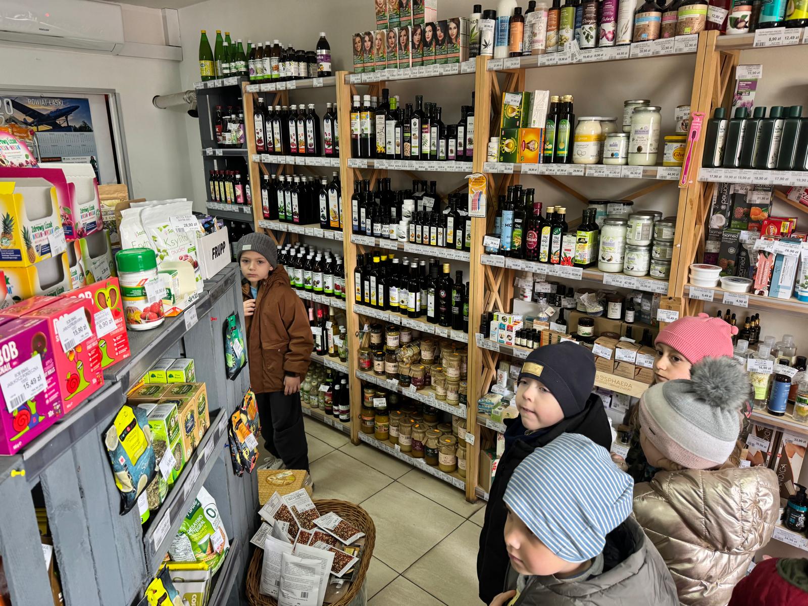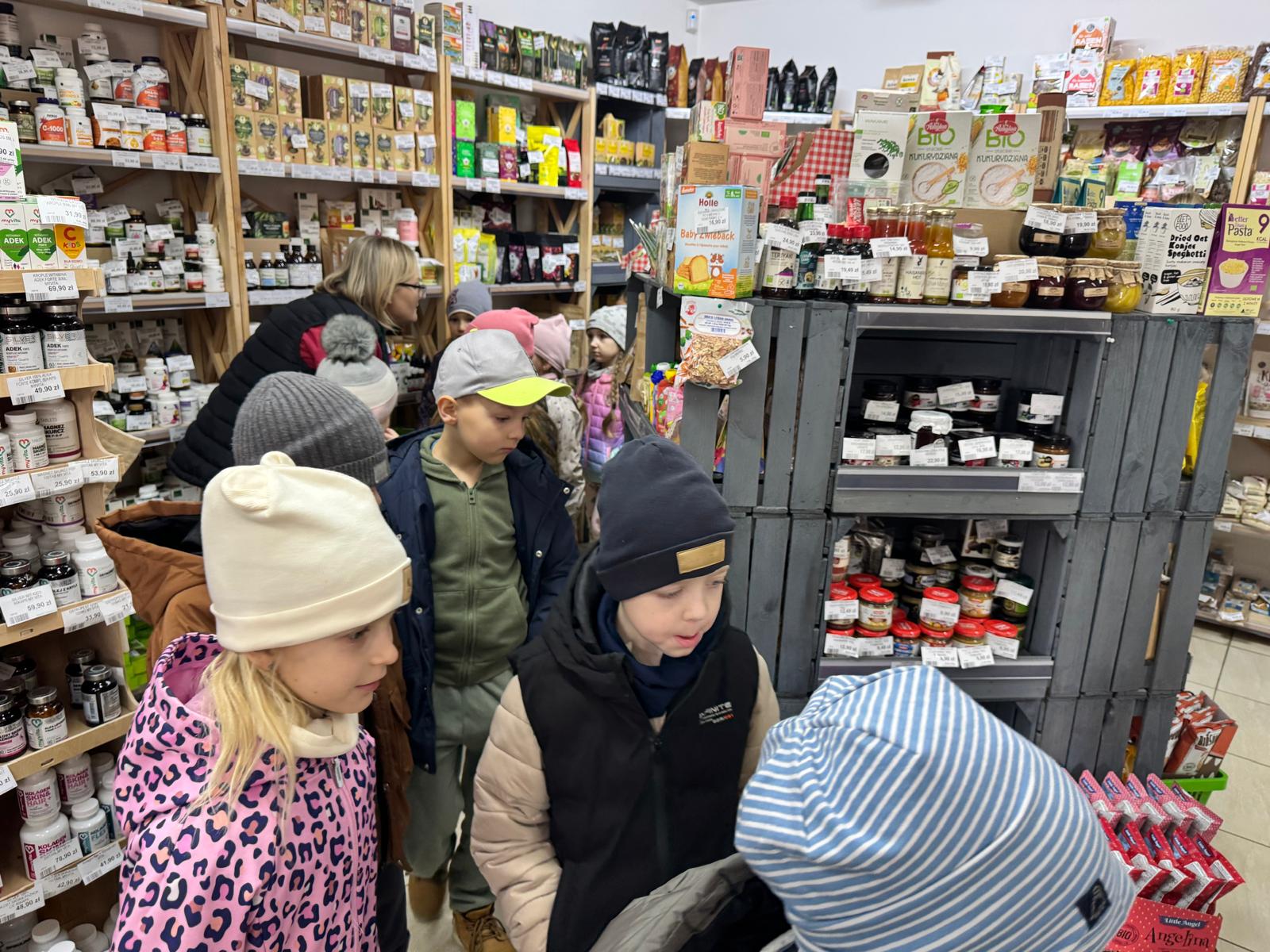 Grupa IV odwiedziła sklep ze zdrową żywnością. Dzieci z zaciekawieniem oglądały kolorowe owoce, warzywa oraz różne produkty ekologiczne. Pani sprzedawczyni opowiadała im, skąd pochodzą zdrowe produkty i dlaczego warto je jeść. Wycieczka była ciekawa i pouczająca, a także pomogła dzieciom lepiej zrozumieć, jak ważne jest dbanie o zdrowie. Takie doświadczenia wspierają wdrażanie najmłodszych do zdrowego stylu życia, ucząc ich dobrych nawyków żywieniowych już od najmłodszych lat.