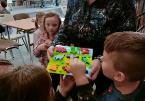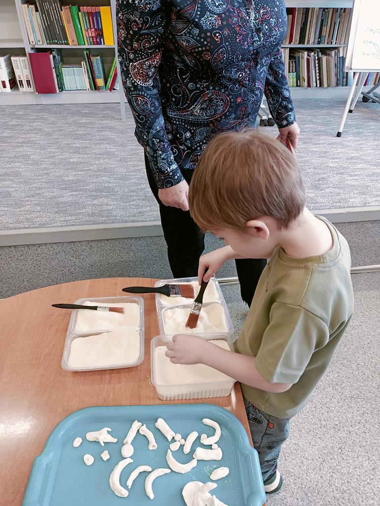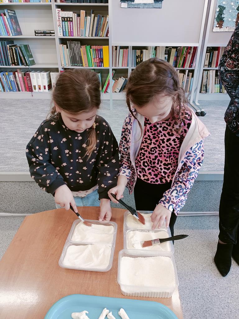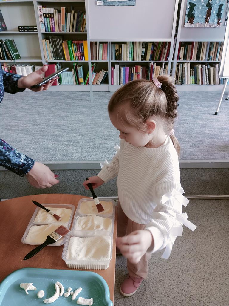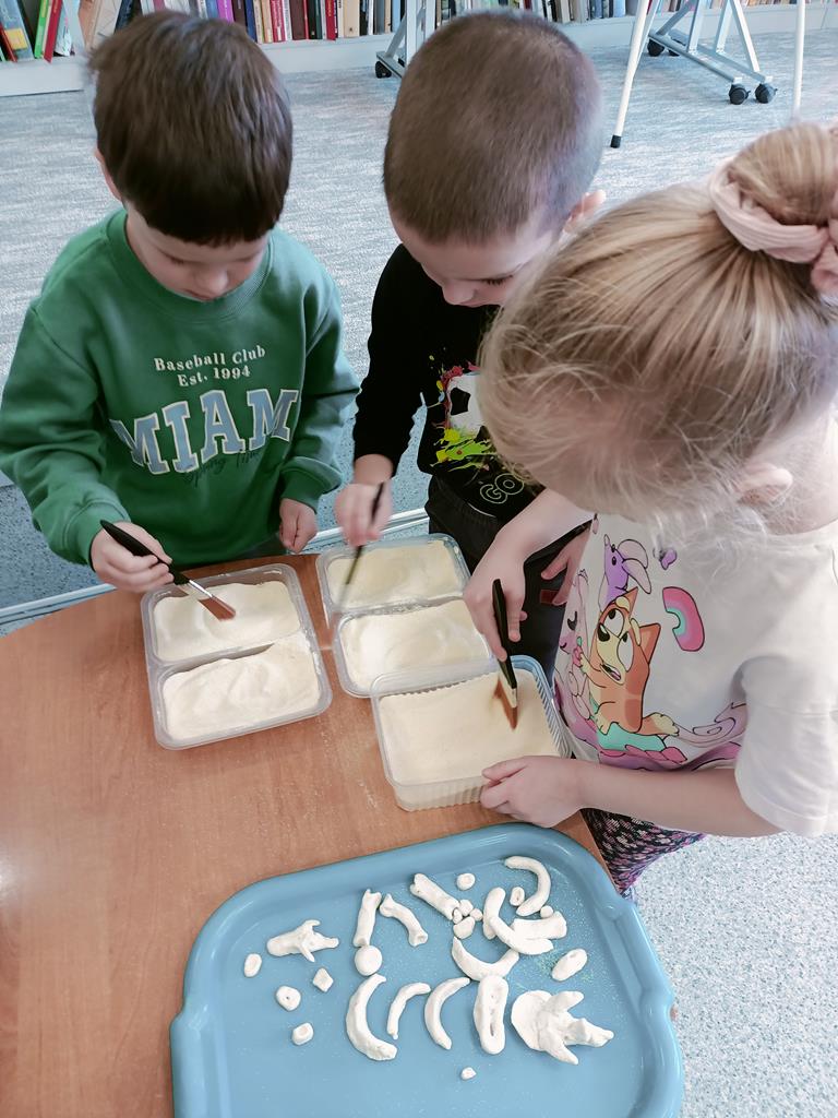 Dzieci odwiedziły dziś bibliotekę pedagogiczną, gdzie uczestniczyły w zajęciach pt. „Tropem dinozaurów”. Podczas spotkania przedszkolaki z dużym zainteresowaniem słuchały ciekawostek o prehistorycznych gadach, oglądały książki i ilustracje przedstawiające różne gatunki dinozaurów oraz brały udział w zabawach tematycznych. Nie zabrakło również wspólnego rozwiązywania zagadek i poszukiwania „śladów” dinozaurów. Zajęcia były nie tylko świetną zabawą, ale także okazją do poszerzenia wiedzy i rozwijania wyobraźni najmłodszych.