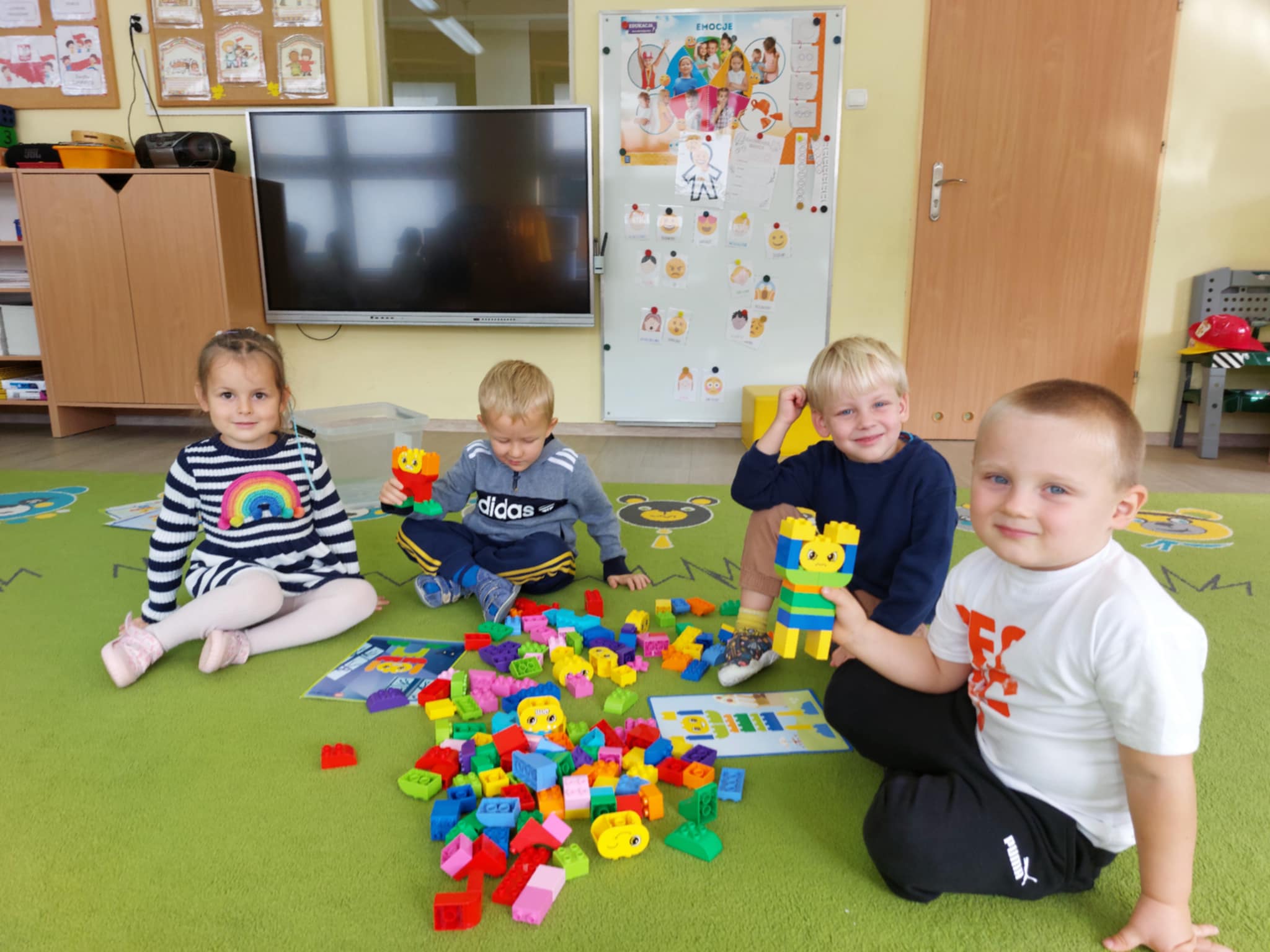 W tym tygodniu nasze przedszkolaki poznawały świat emocji – uczyły się je rozpoznawać, nazywać i wyrażać w bezpieczny sposób. Każdego dnia dzieci zaznaczały swoje samopoczucie w kalendarzu emocji, dzięki czemu mogły zauważyć, jak różne uczucia towarzyszą nam w ciągu dnia. Podczas zabaw ruchowych dzieci ćwiczyły rozładowywanie emocji poprzez ruch – tańce, gesty i mimikę. Z pomocą klocków LEGO DUPLO tworzyły postaci pokazujące różne emocje: radość, smutek, złość, strach czy zaskoczenie. Na zakończenie tygodnia powstało wspólne „Drzewo emocji” – kolorowa praca, na której każde dziecko umieściło swoją buźkę z emocją, jaką czuło tego dnia. Dzięki temu przedszkolaki mogły zobaczyć, że wszystkie emocje są ważne i potrzebne.