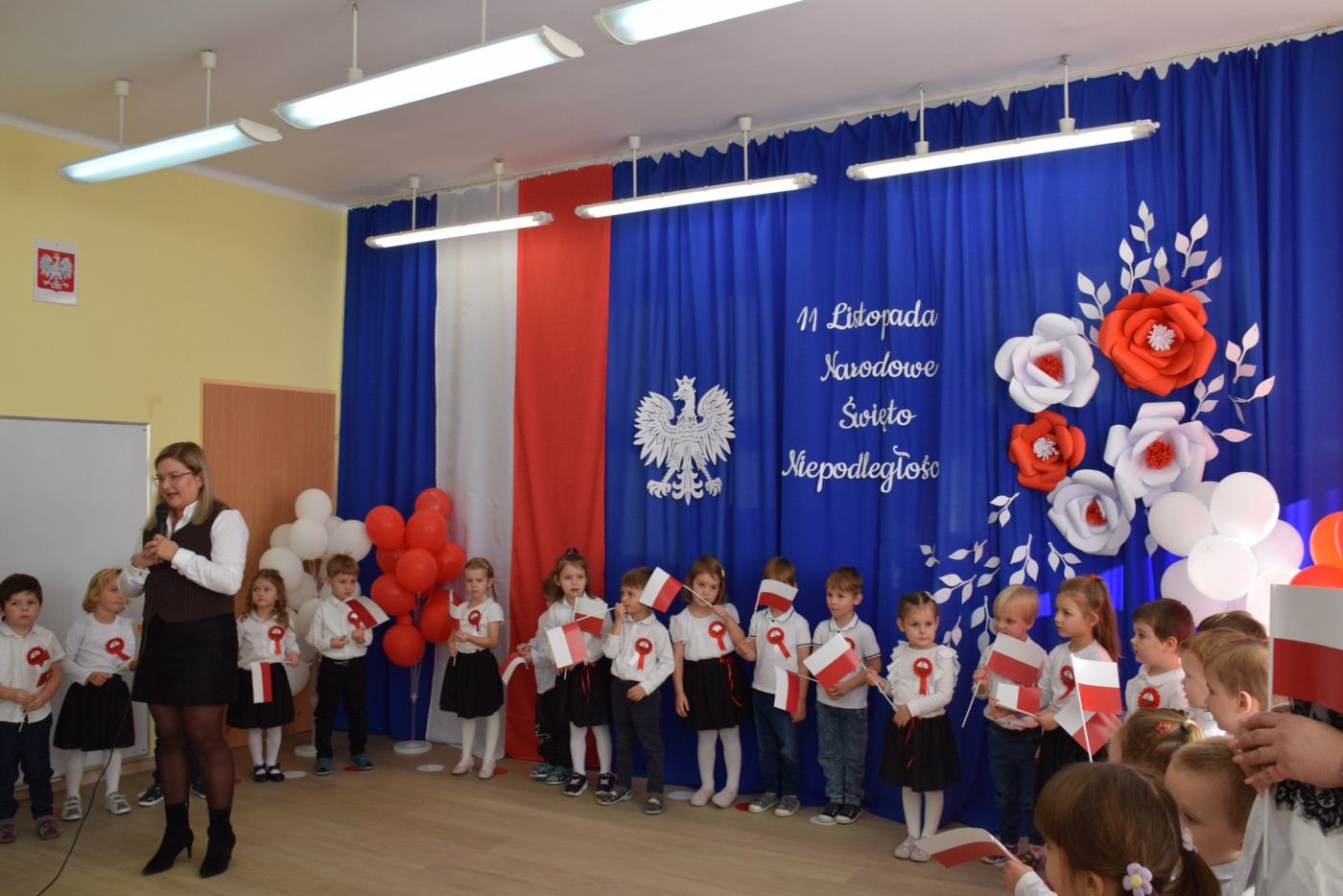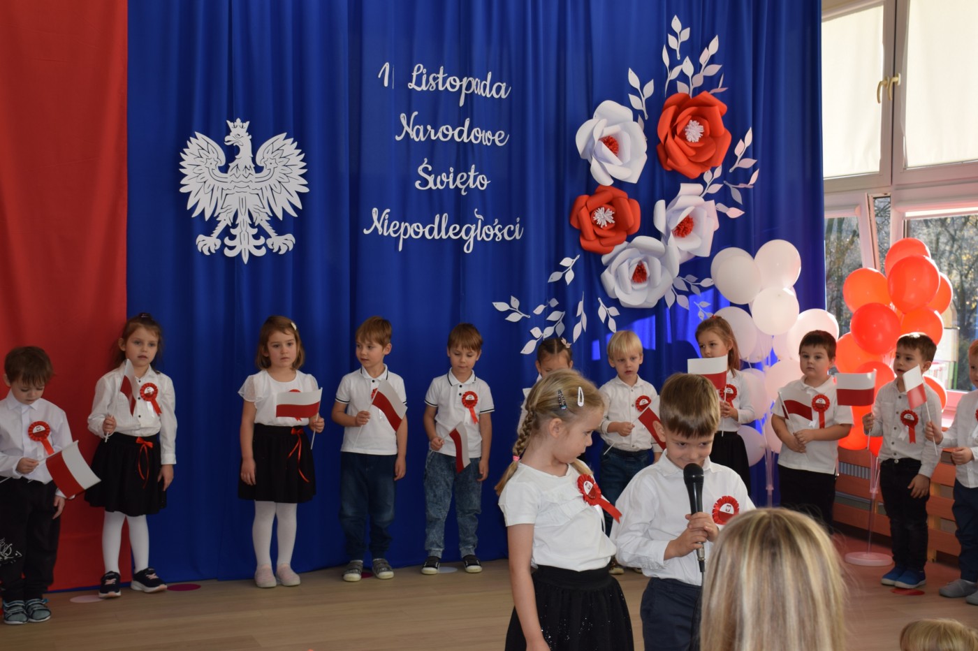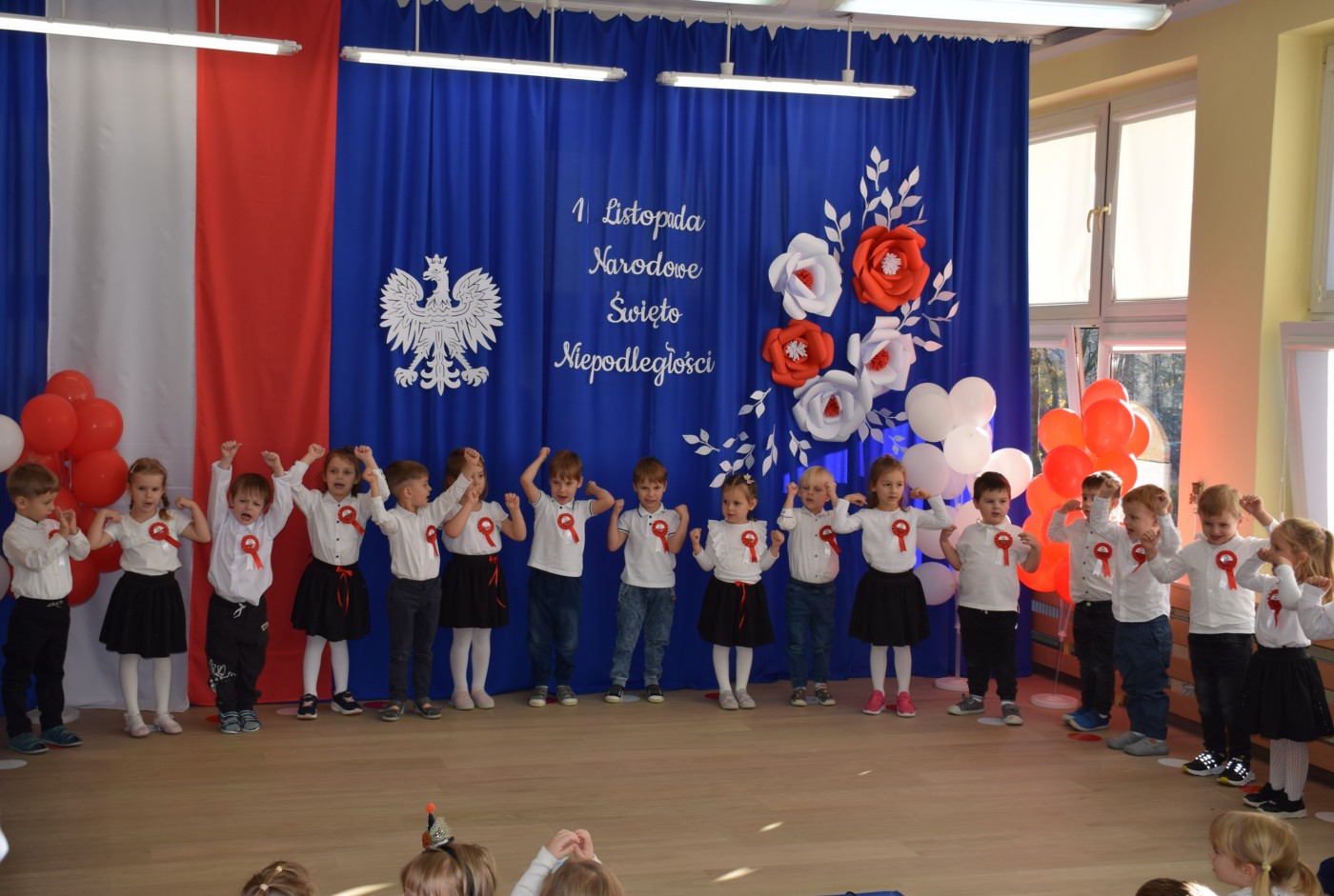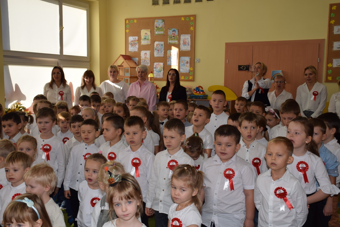 Dzieci z grupy II przygotowały część artystyczną, podczas której zaprezentowały wiersze i piosenki o tematyce patriotycznej. Następnie wszyscy wspólnie odśpiewali hymn państwowy „Mazurek Dąbrowskiego”, a minutą ciszy uczczono pamięć bohaterów walczących o wolność Polski.