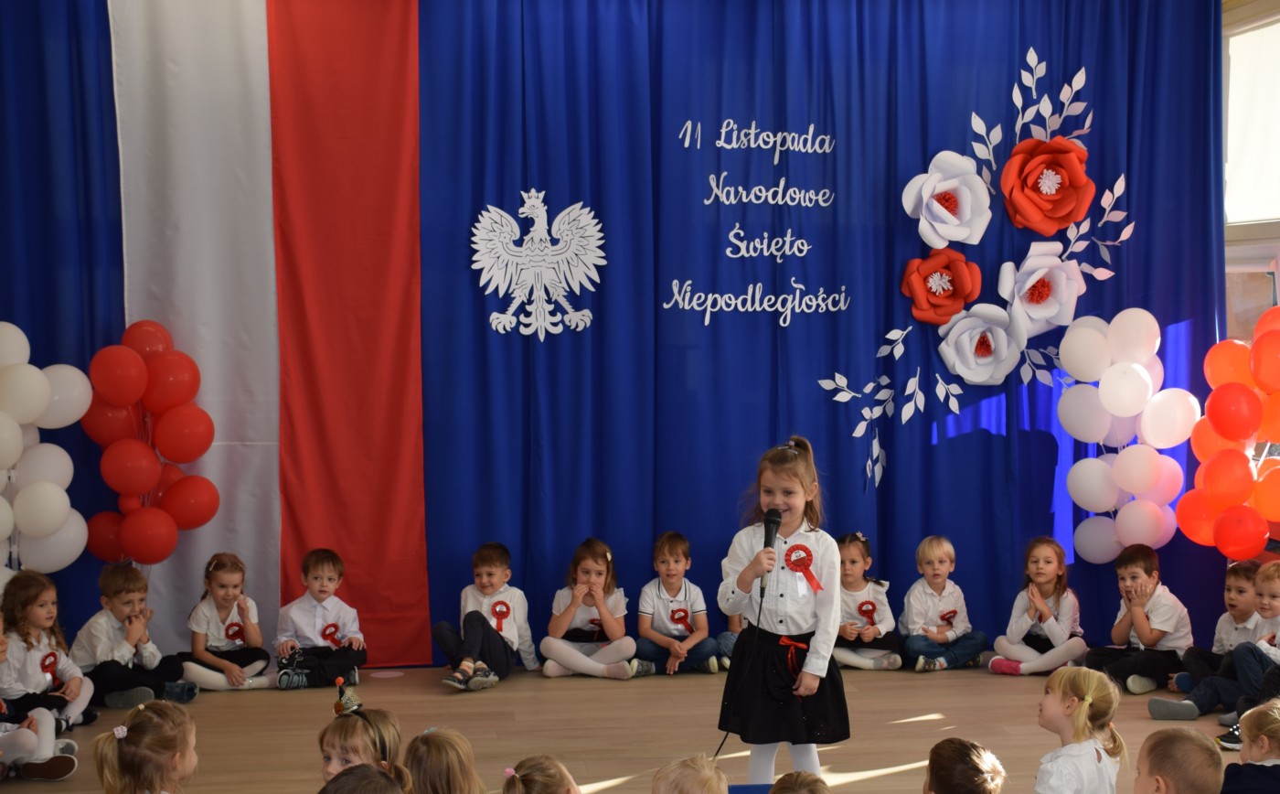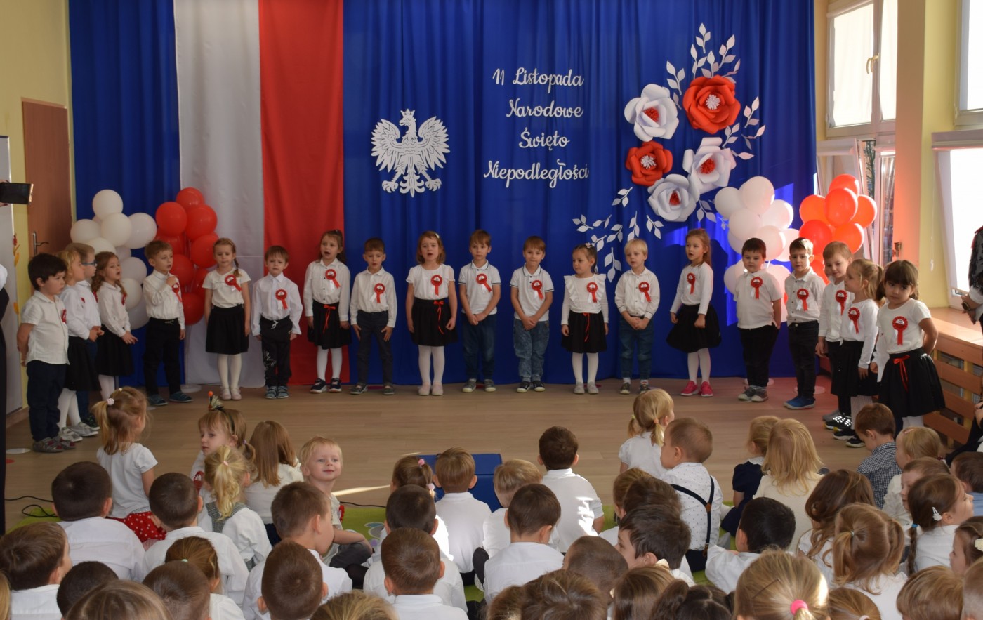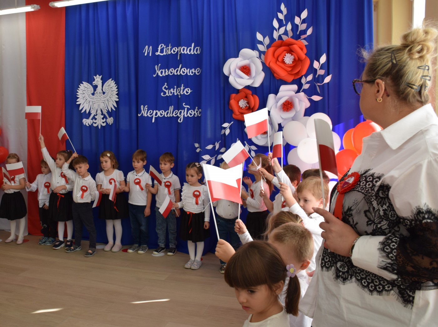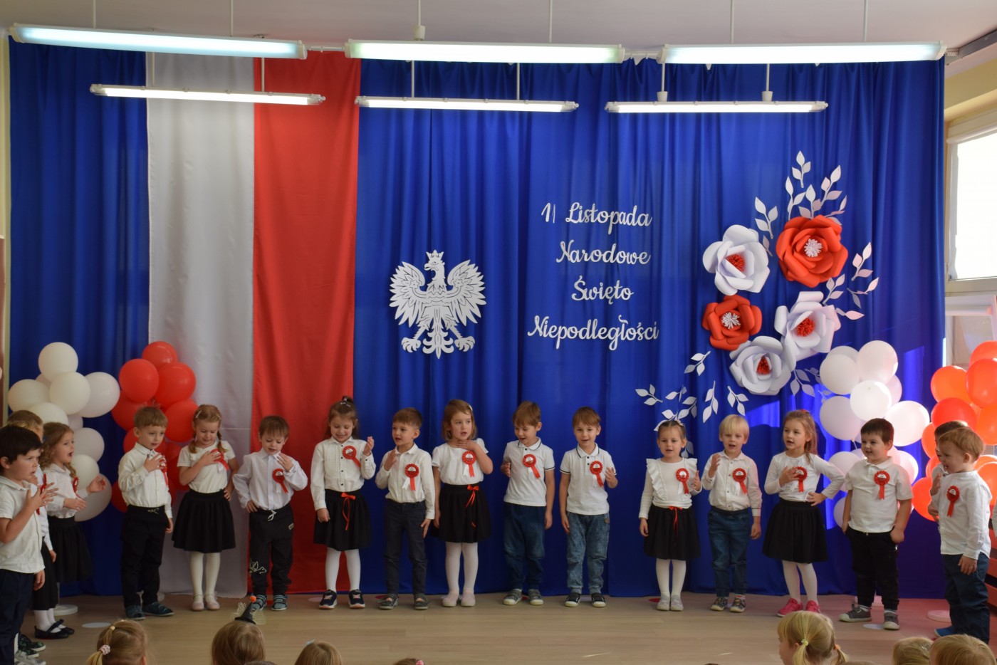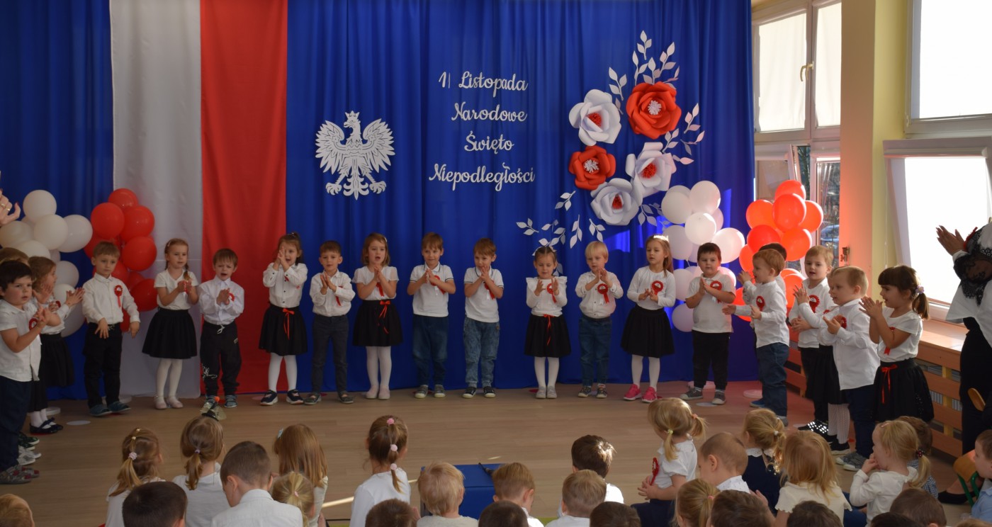 Dzieci z grupy II przygotowały część artystyczną, podczas której zaprezentowały wiersze i piosenki o tematyce patriotycznej. Następnie wszyscy wspólnie odśpiewali hymn państwowy „Mazurek Dąbrowskiego”, a minutą ciszy uczczono pamięć bohaterów walczących o wolność Polski.
