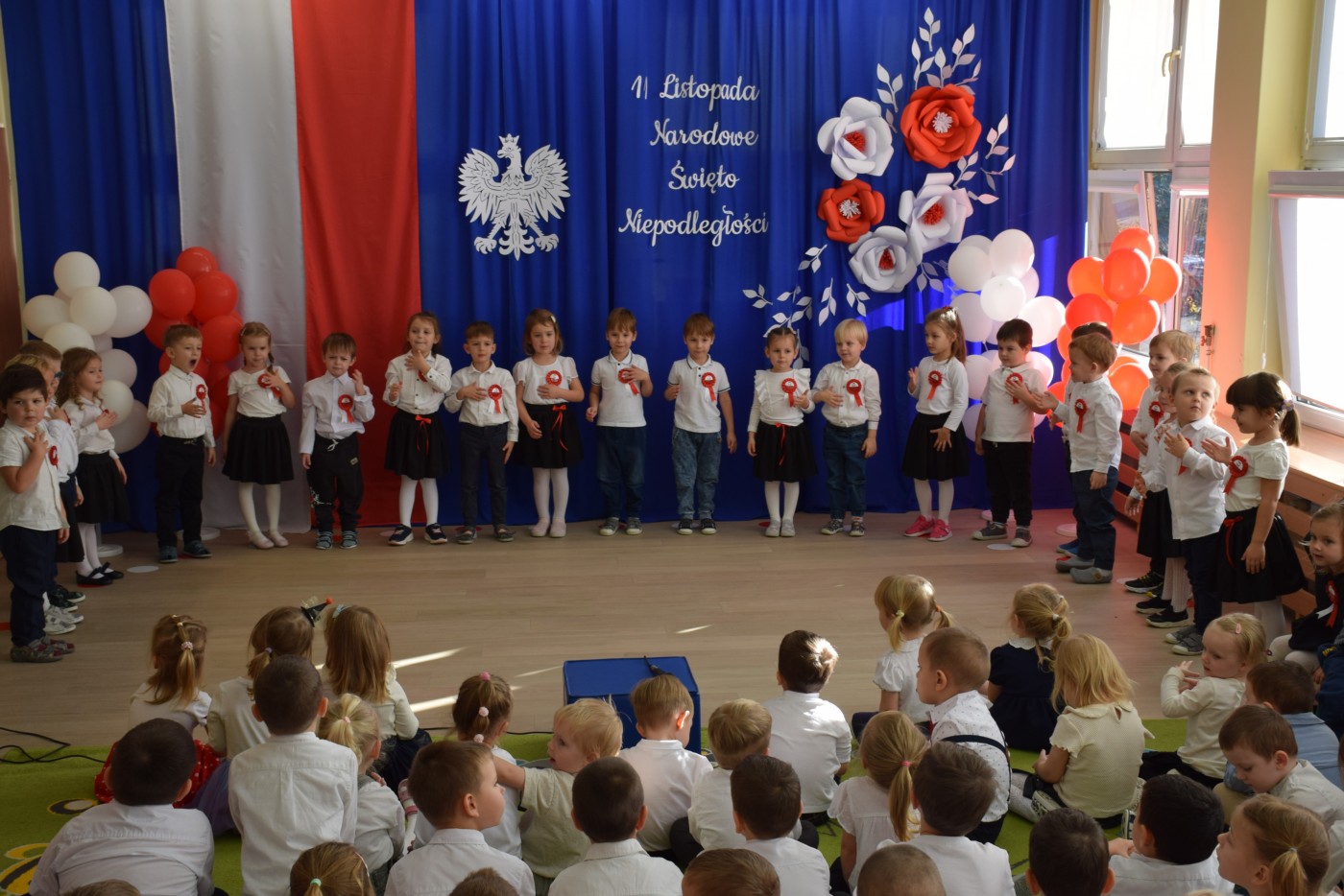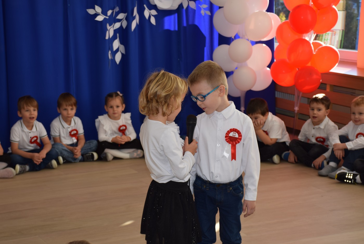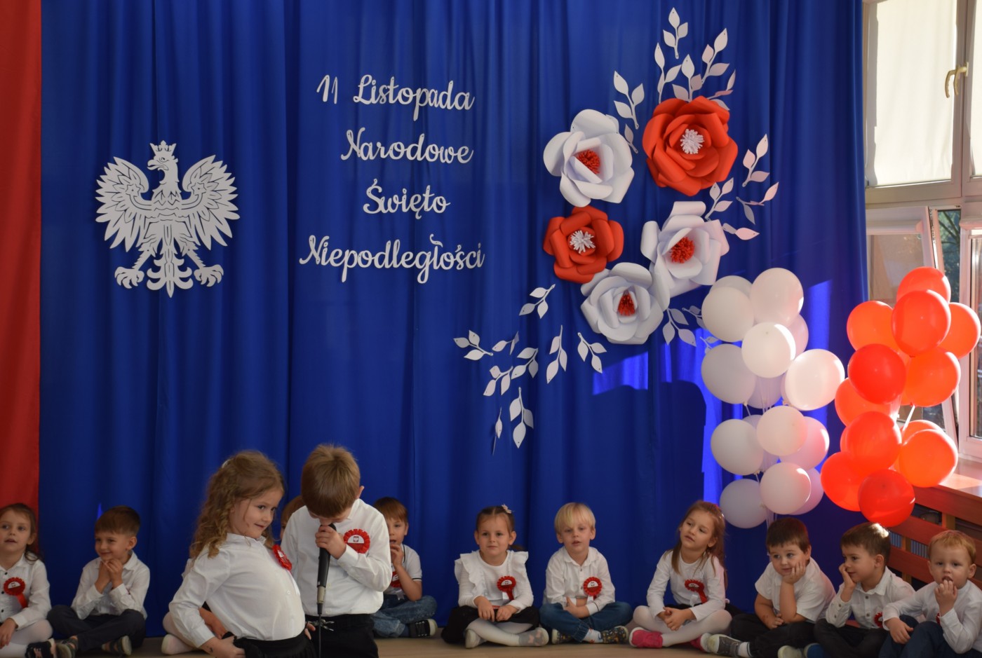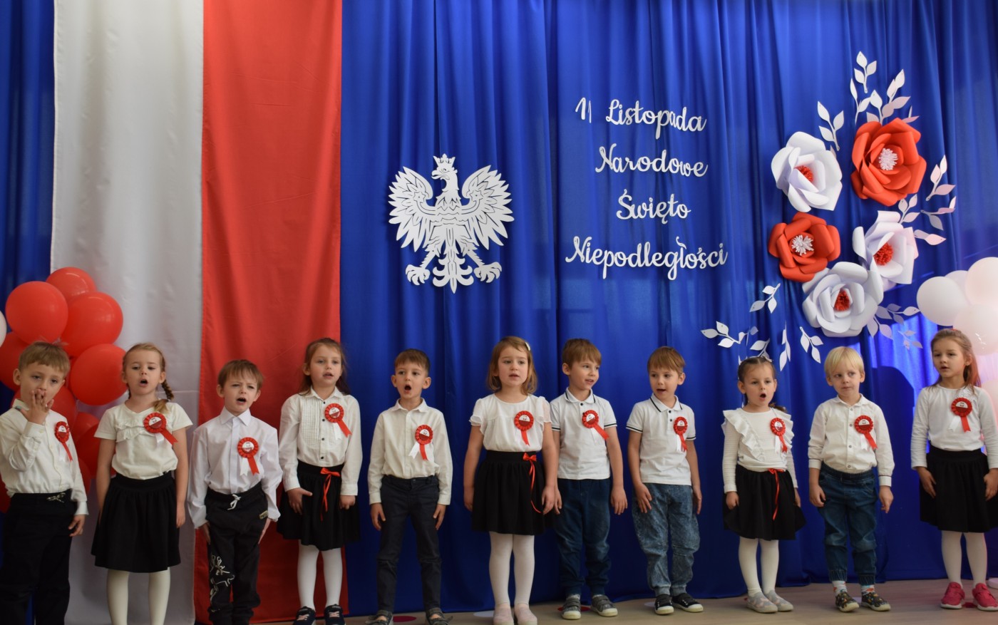 Dzieci z grupy II przygotowały część artystyczną, podczas której zaprezentowały wiersze i piosenki o tematyce patriotycznej. Następnie wszyscy wspólnie odśpiewali hymn państwowy „Mazurek Dąbrowskiego”, a minutą ciszy uczczono pamięć bohaterów walczących o wolność Polski.
