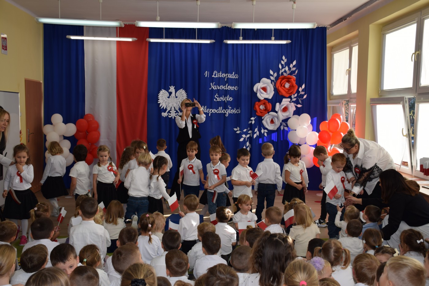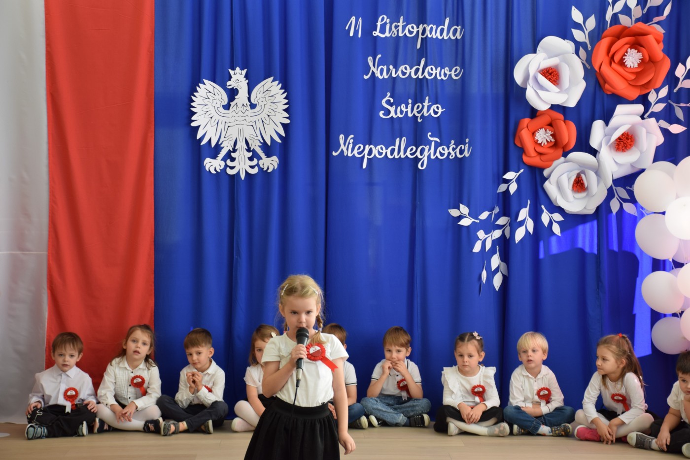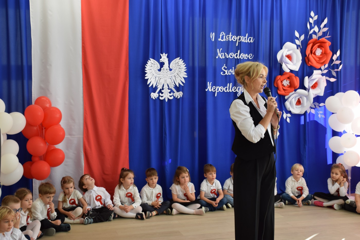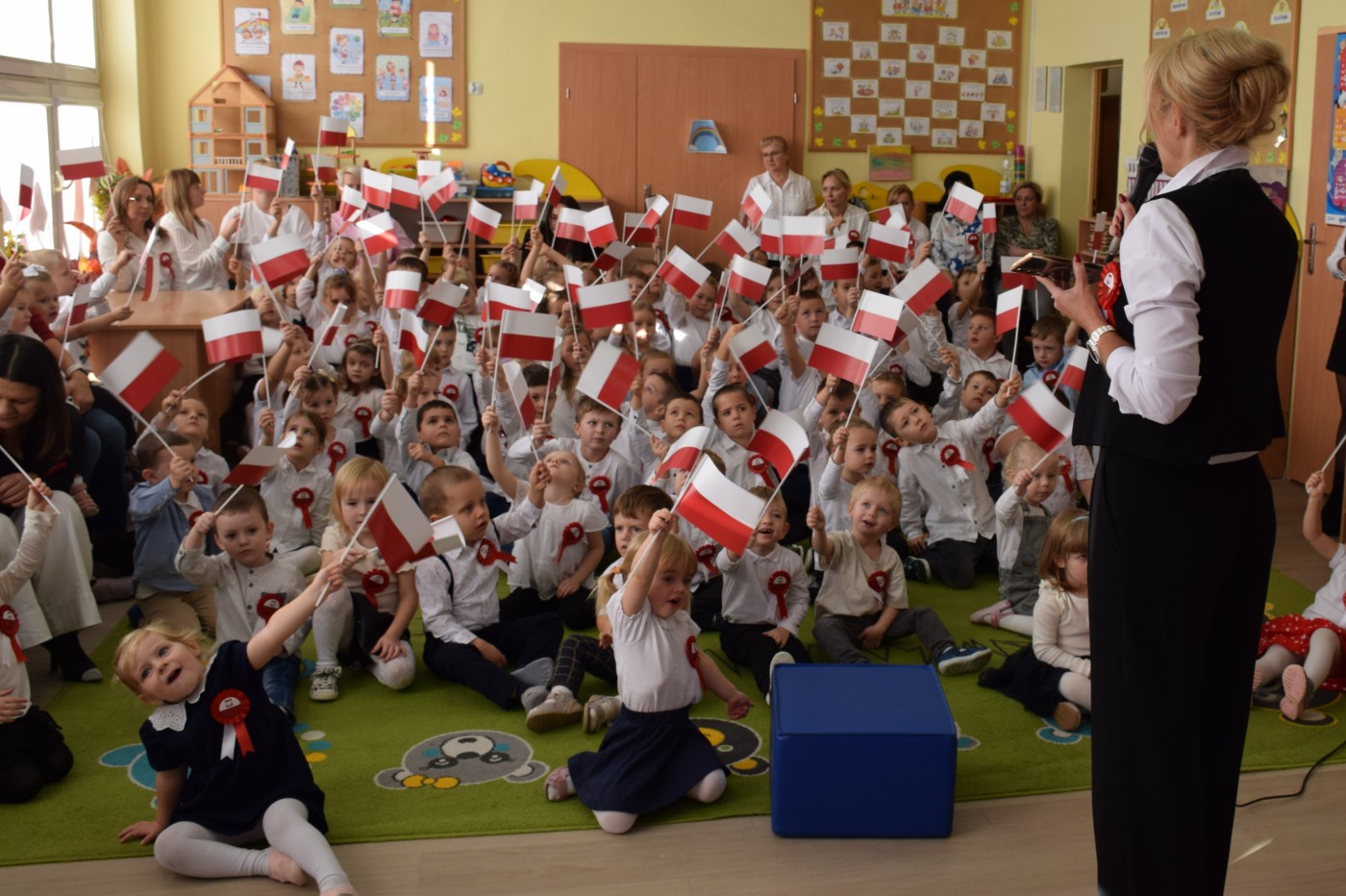 Dzieci z grupy II przygotowały część artystyczną, podczas której zaprezentowały wiersze i piosenki o tematyce patriotycznej. Następnie wszyscy wspólnie odśpiewali hymn państwowy „Mazurek Dąbrowskiego”, a minutą ciszy uczczono pamięć bohaterów walczących o wolność Polski.