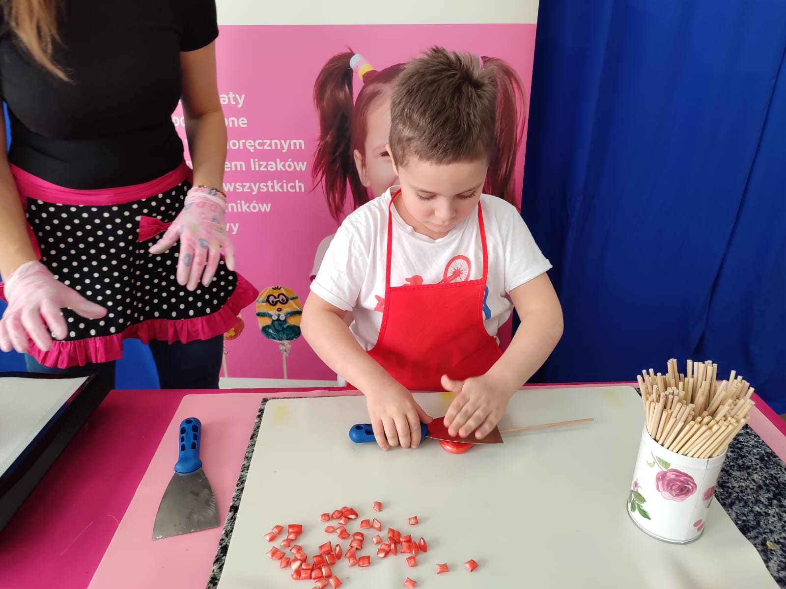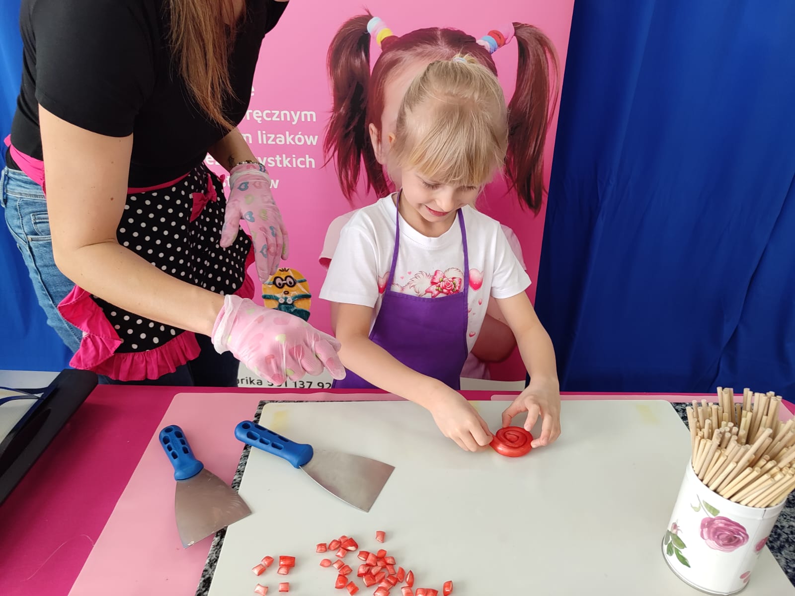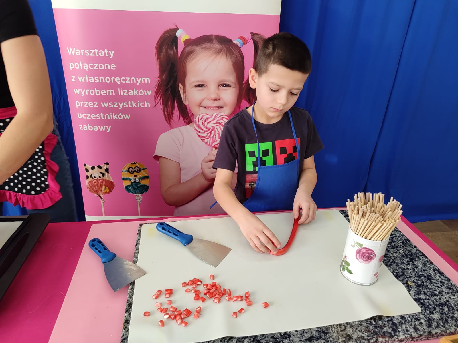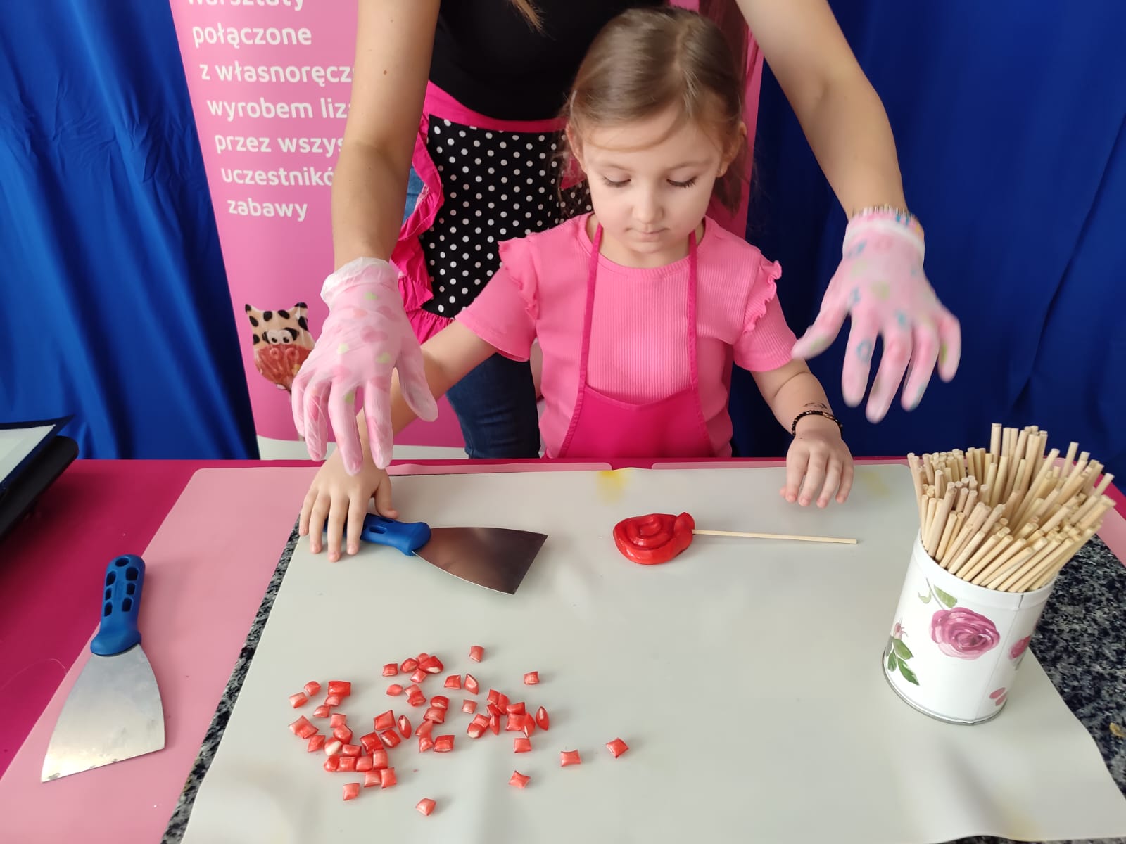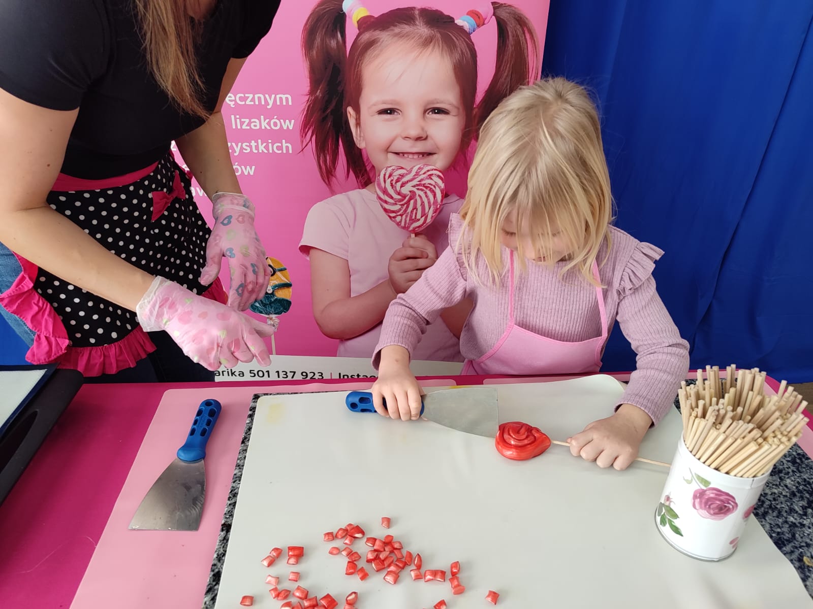 Podczas warsztatów wszyscy mieli okazję posmakować mini cukierków z tej samej masy, z której powstały lizaki. To były nie tylko pyszne, ale również bardzo kreatywne i pełne radości warsztaty.