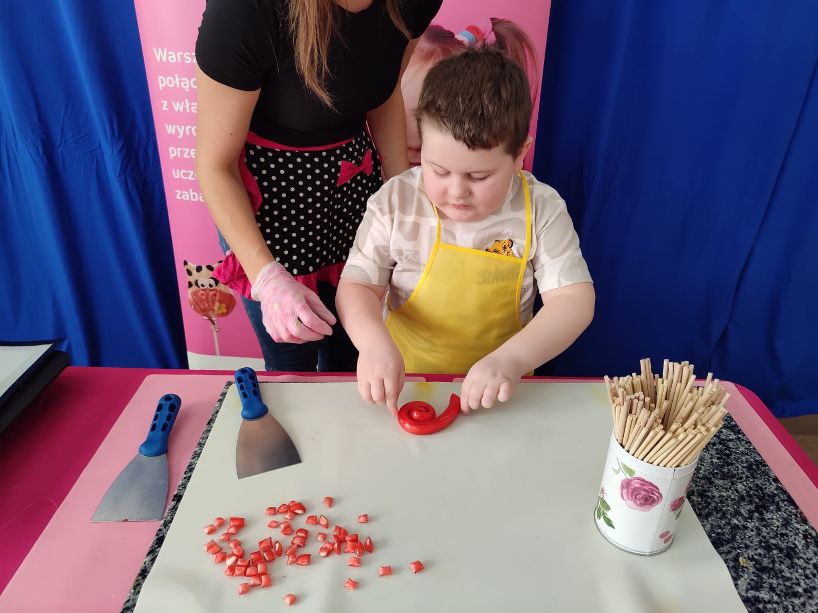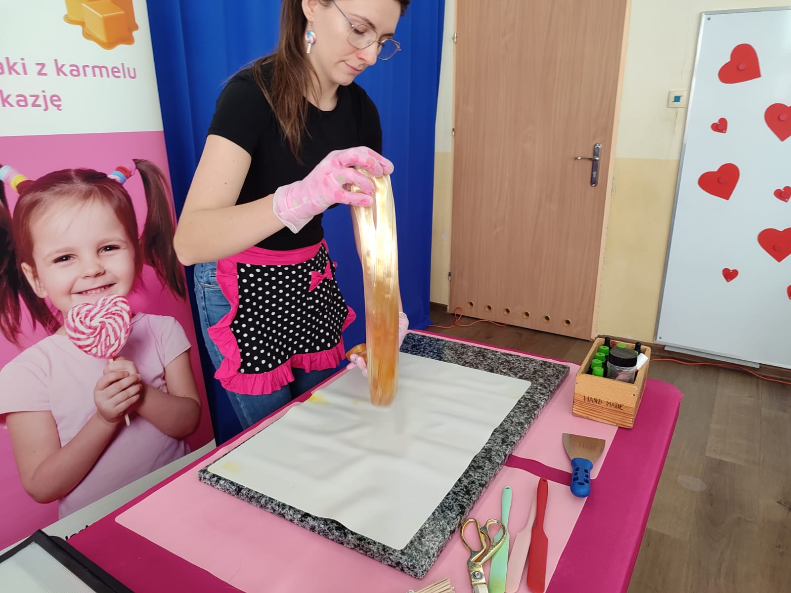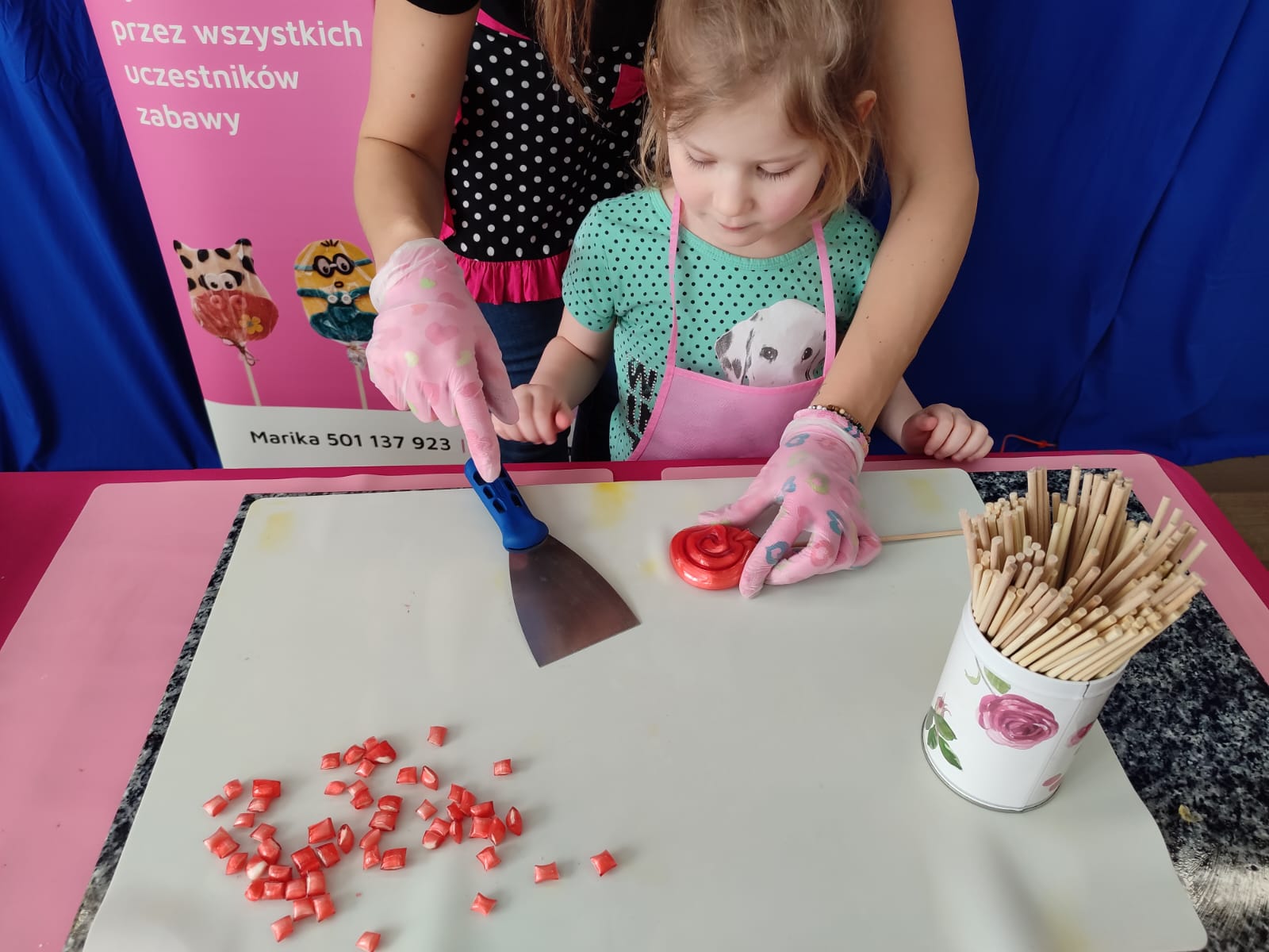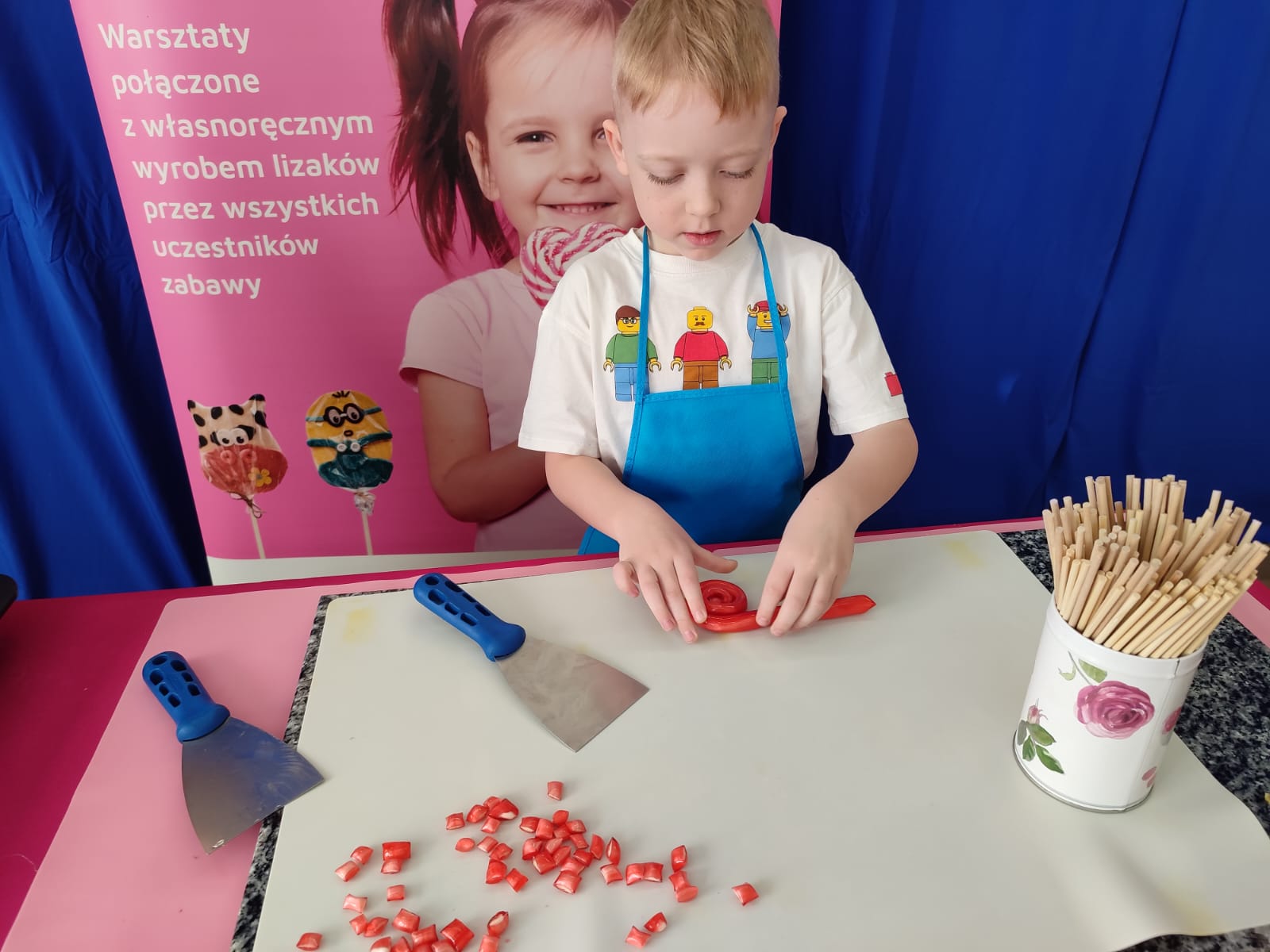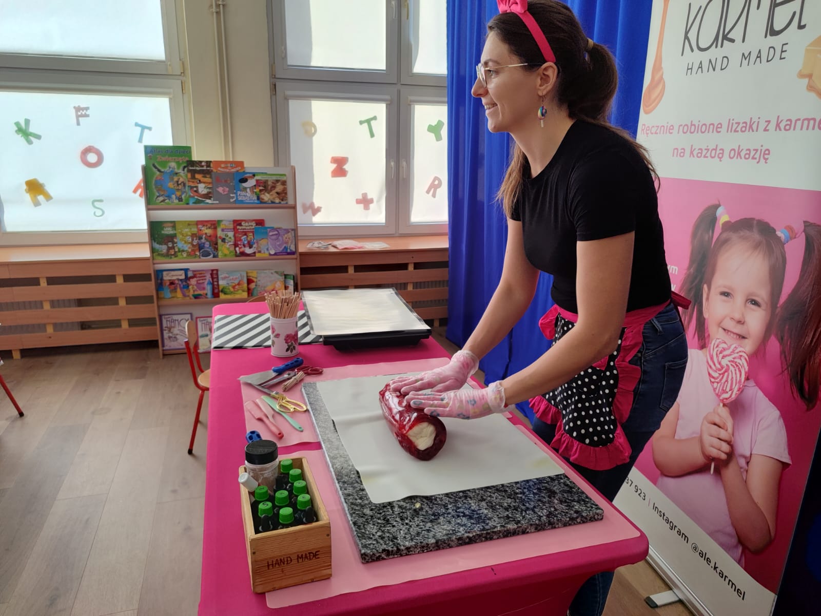 Podczas warsztatów wszyscy mieli okazję posmakować mini cukierków z tej samej masy, z której powstały lizaki. To były nie tylko pyszne, ale również bardzo kreatywne i pełne radości warsztaty.