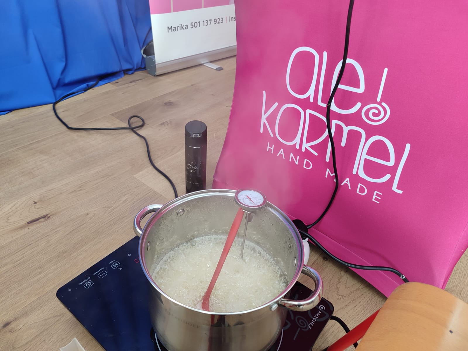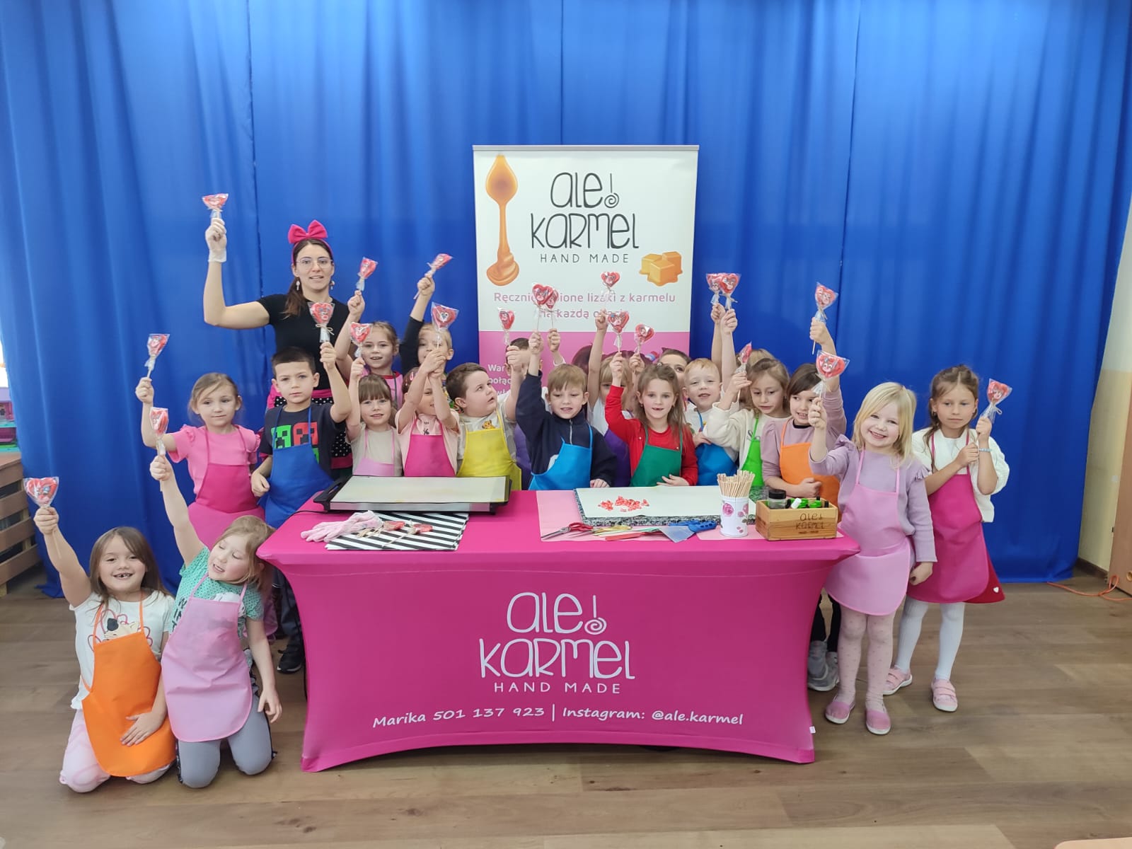 Podczas zajęć dzieci dzieci miały okazję zobaczyć, jak powstaje karmel oraz dowiedzieć się, z czego jest zrobiony. Z ogromnym zainteresowaniem obserwowały proces podgrzewania cukru i jego przemianę w złocisty, pachnący karmel.
