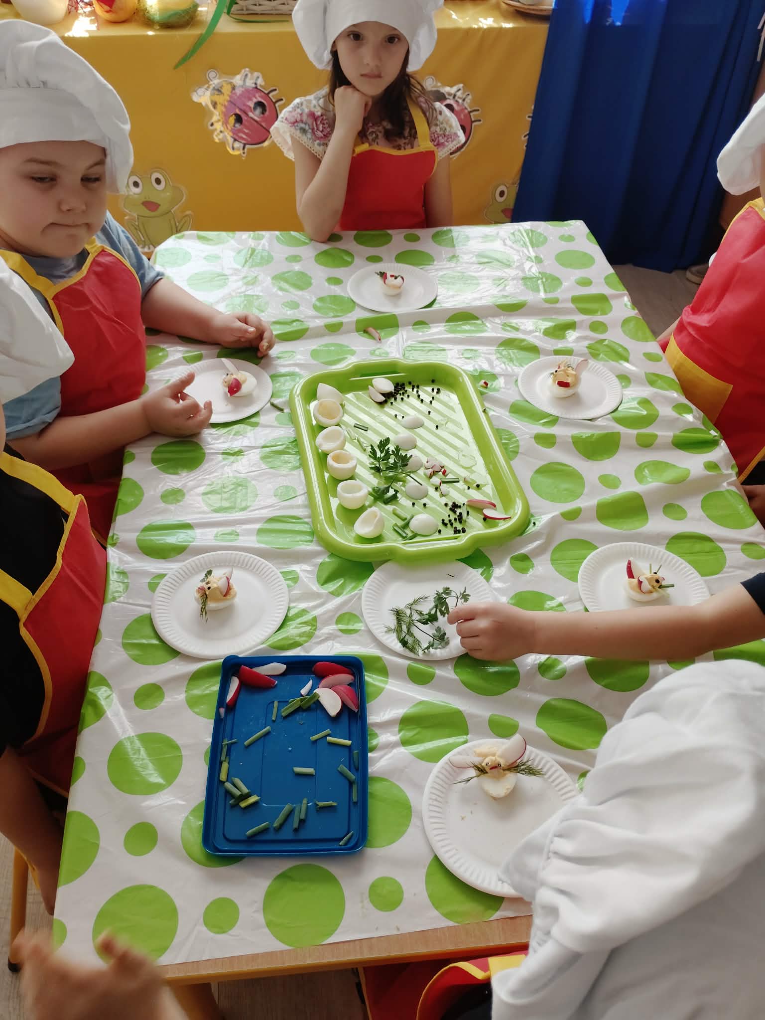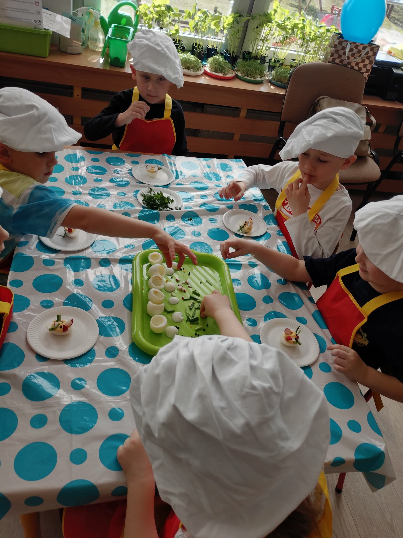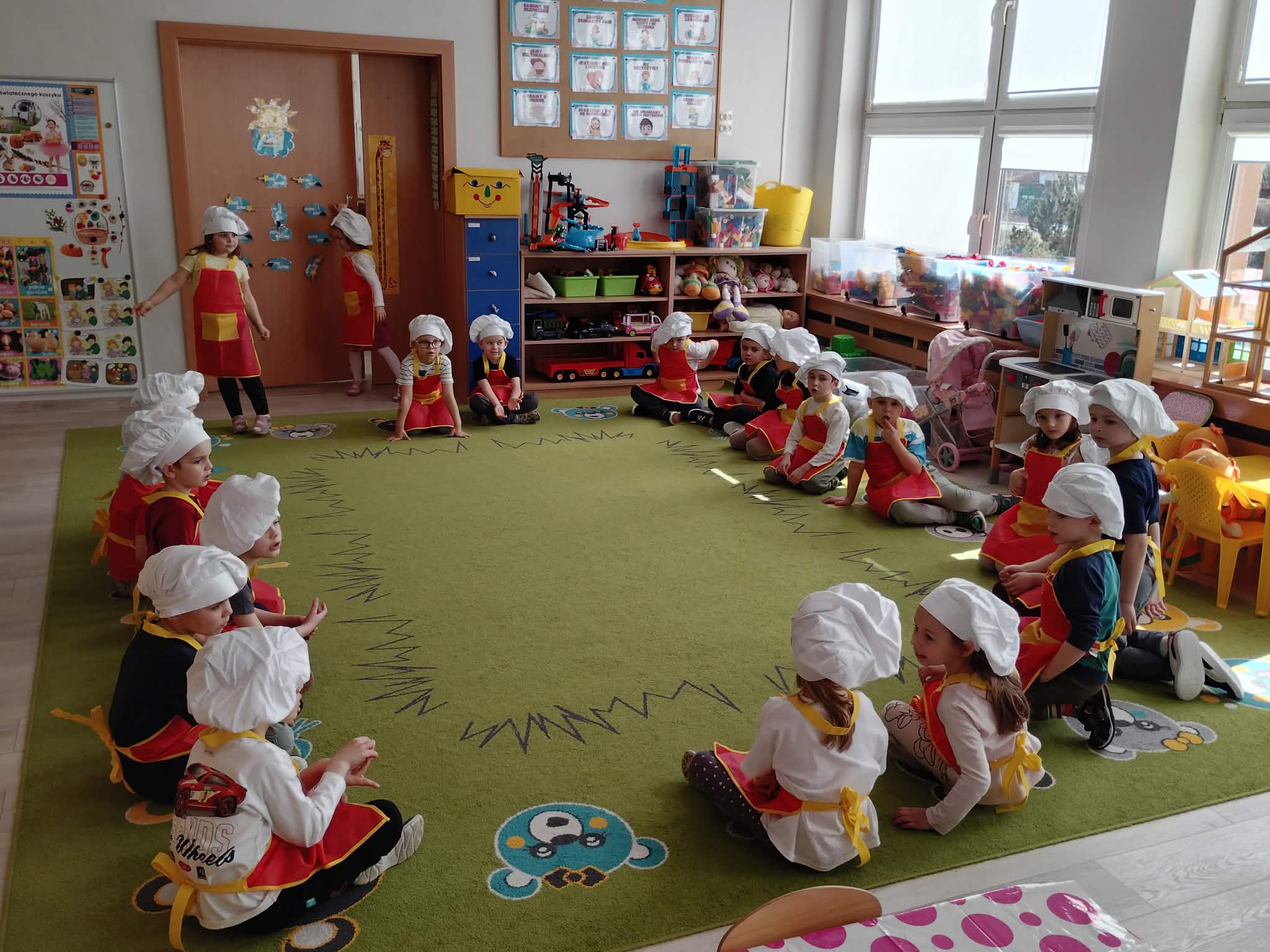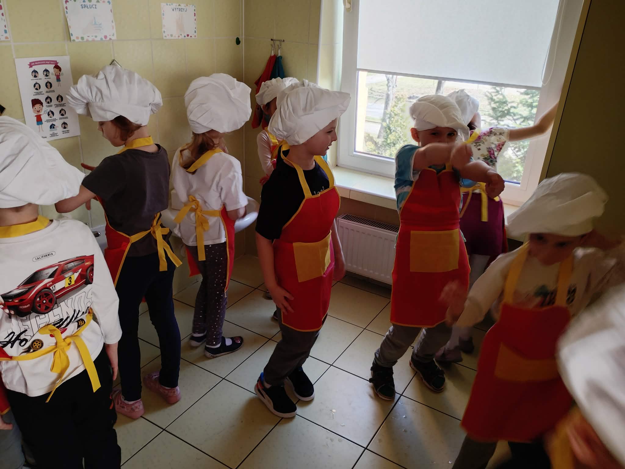 1 kwietna w gr.III odbyły się wyjątkowe warsztaty kulinarne o tematyce wielkanocnej. Dzieci z dużym zaangażowaniem uczestniczyły w przygotowywaniu jajek faszerowanych. Podczas zajęć przedszkolaki poznały kolejne etapy przygotowania potrawy – od obierania jajek, przez wydrążanie żółtek, aż po tworzenie farszu i dekorowanie gotowych dań.