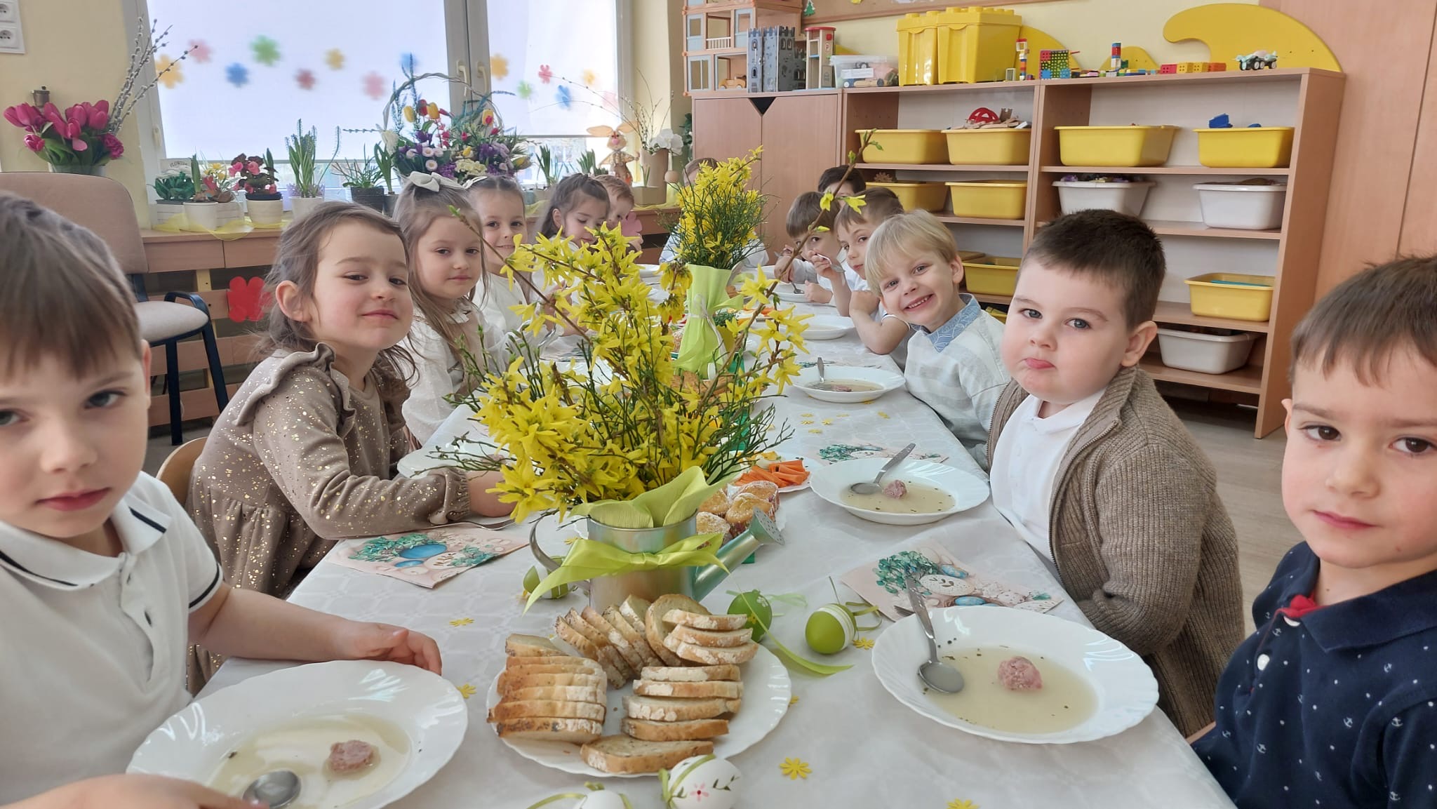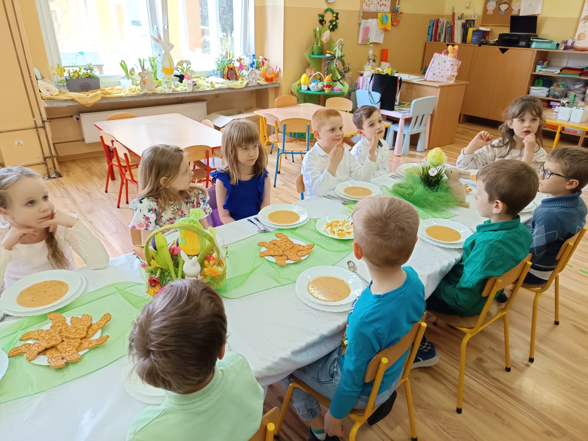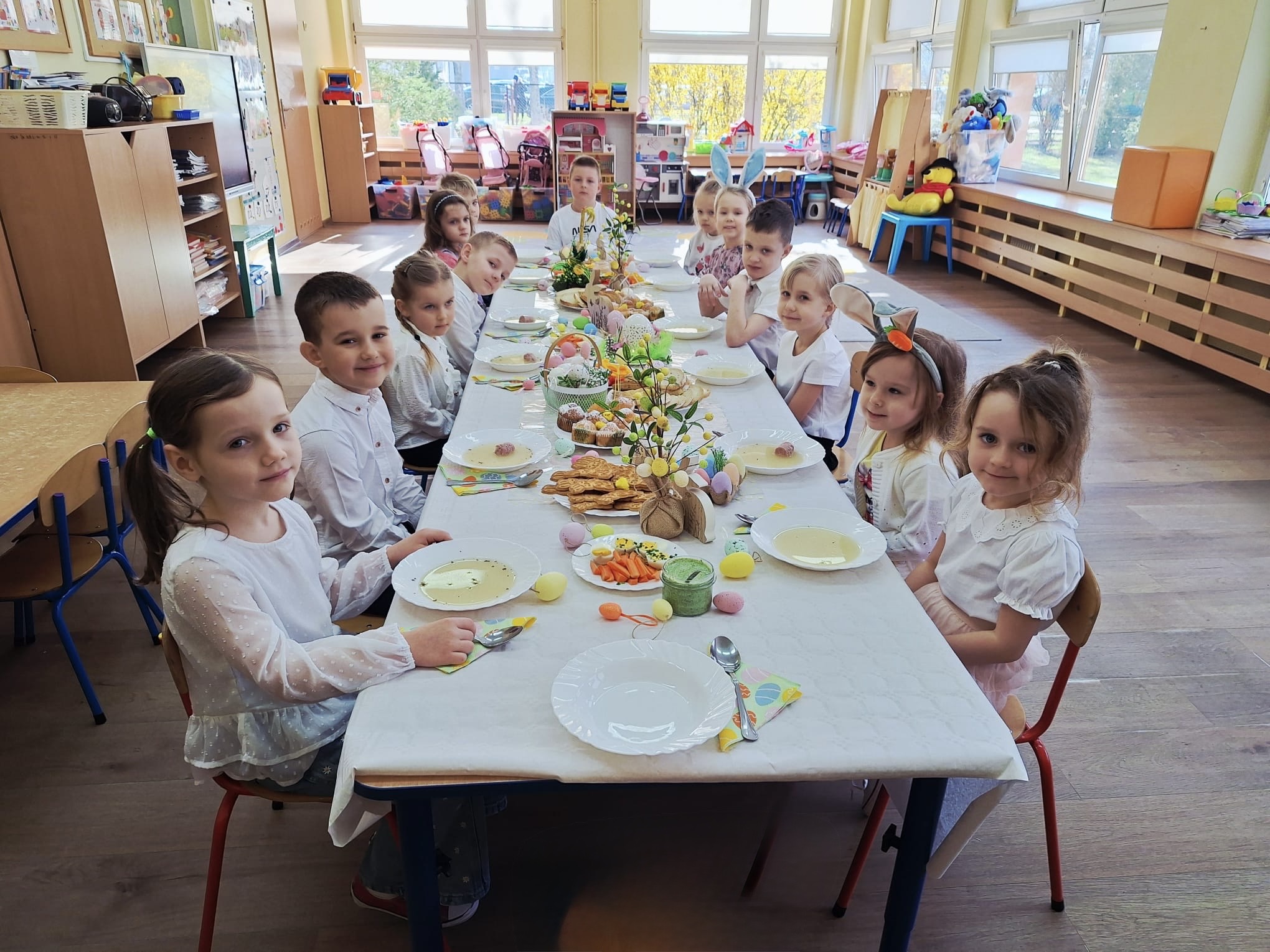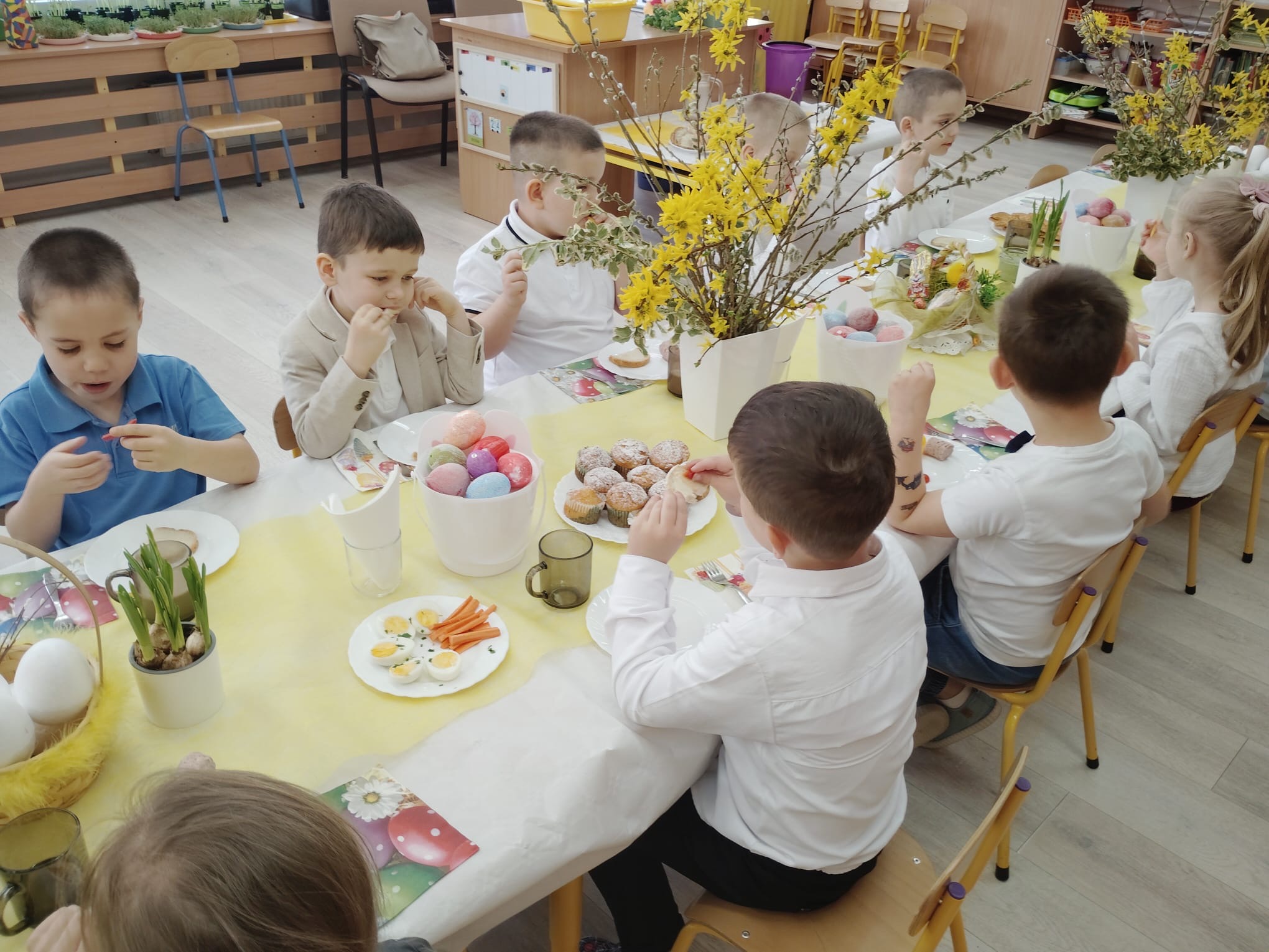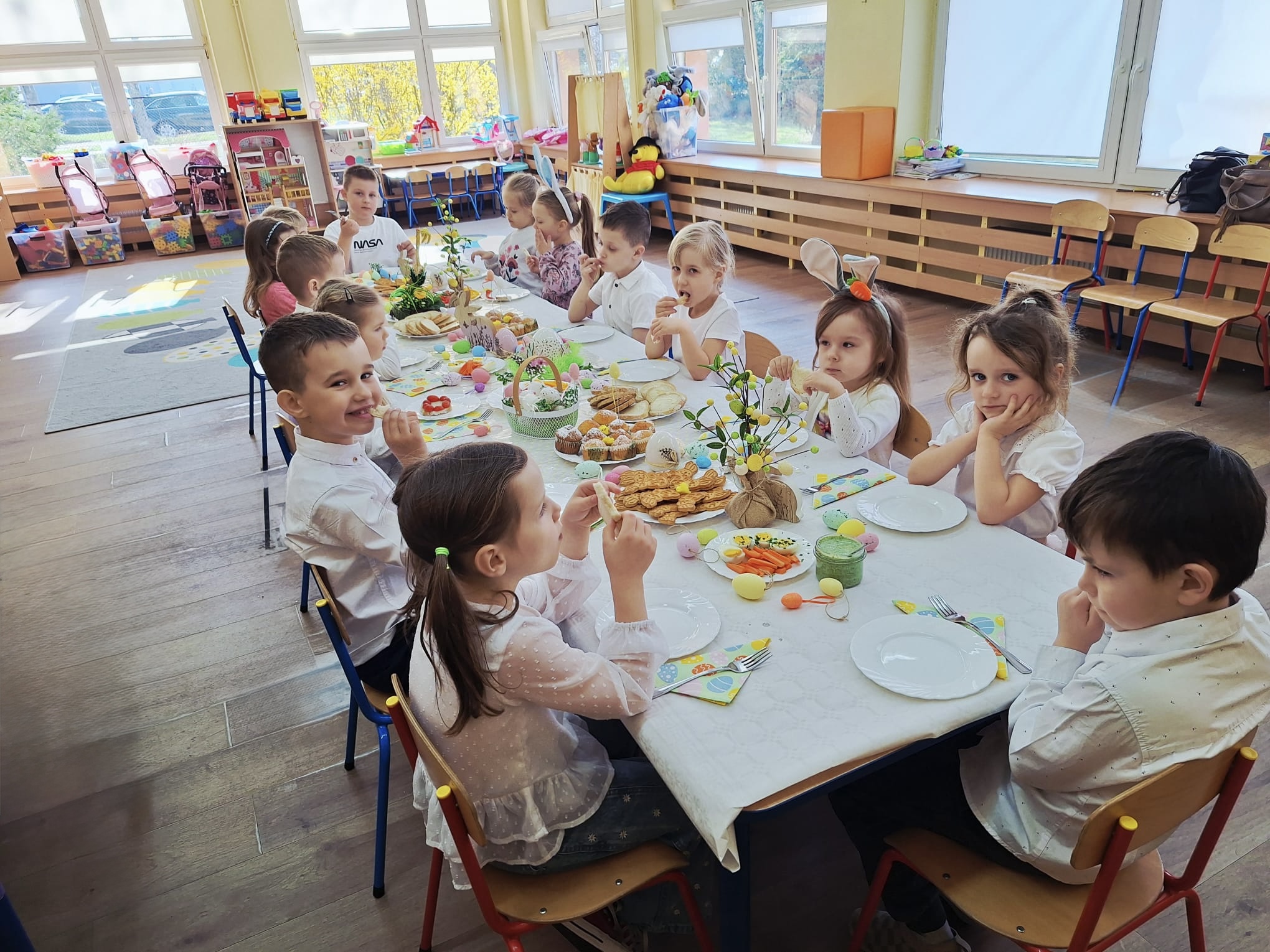W naszym przedszkolu piękną tradycją stał się wspólny posiłek wielkanocny. Każdego roku dzieci wraz z nauczycielami przygotowują się do tego wyjątkowego dnia, poznając zwyczaje i symbole związane z Wielkanocą. Wspólne śniadanie lub obiad jest okazją do integracji, rozmów oraz radosnego świętowania w miłej, rodzinnej atmosferze. Dzięki temu dzieci uczą się szacunku do tradycji oraz spędzania czasu razem z innymi.